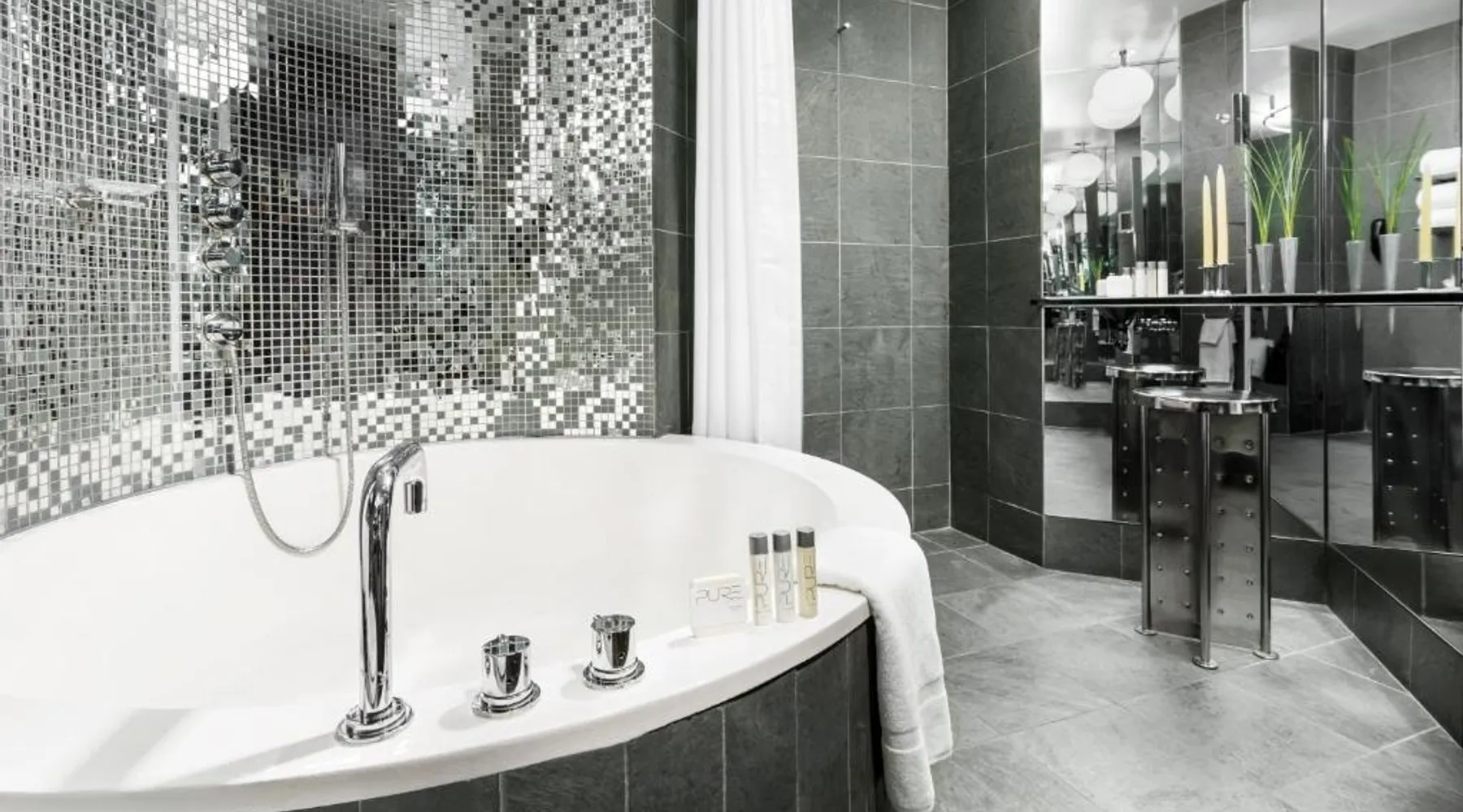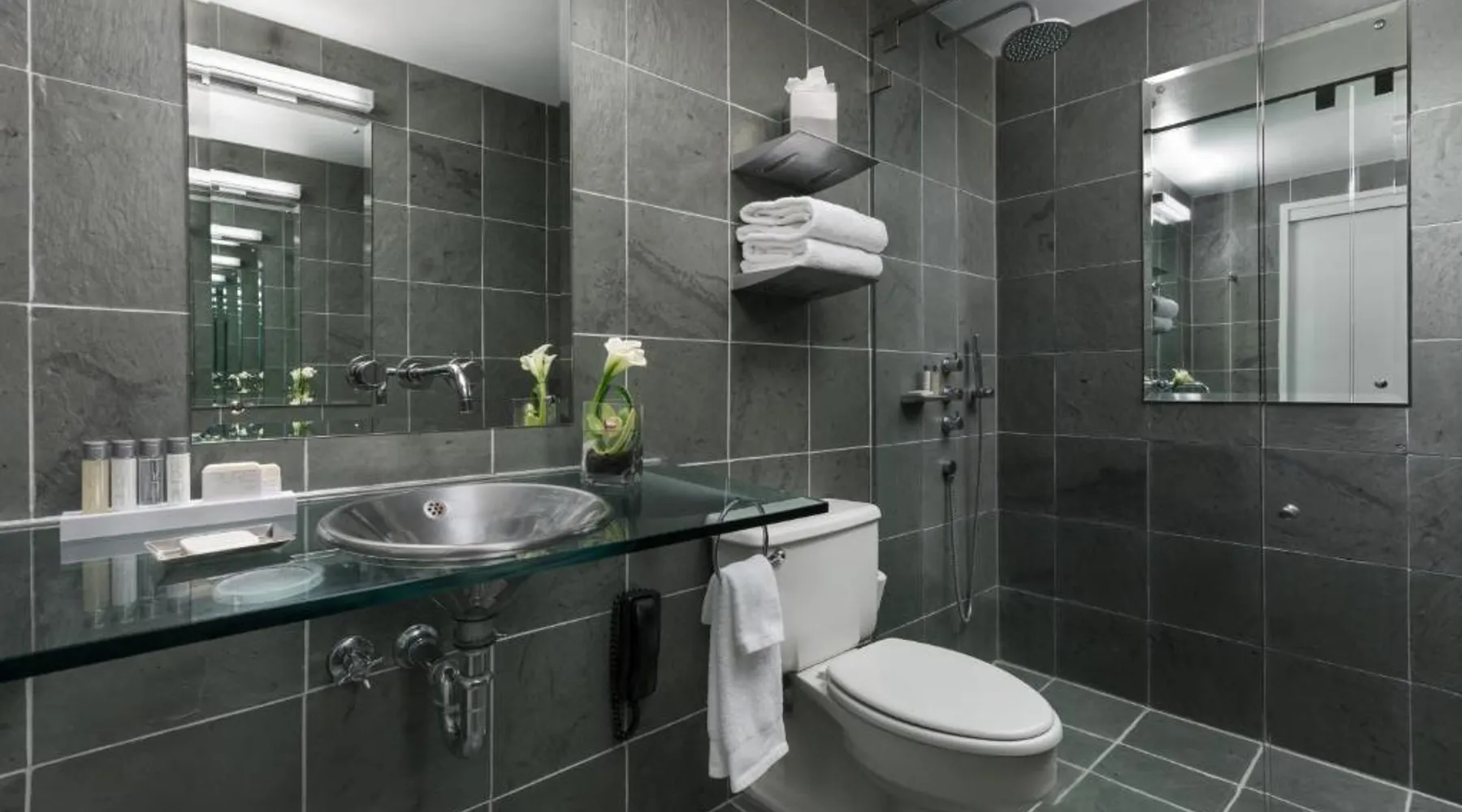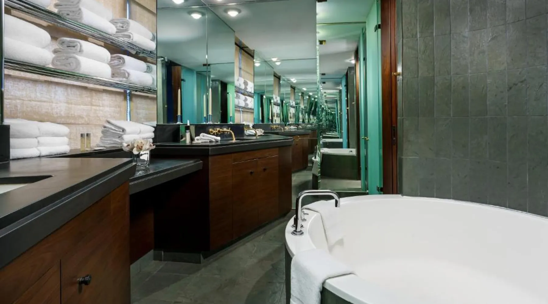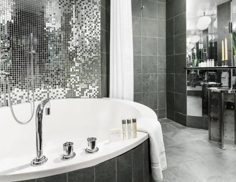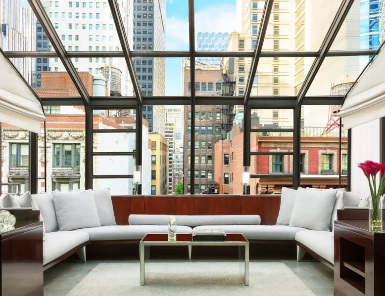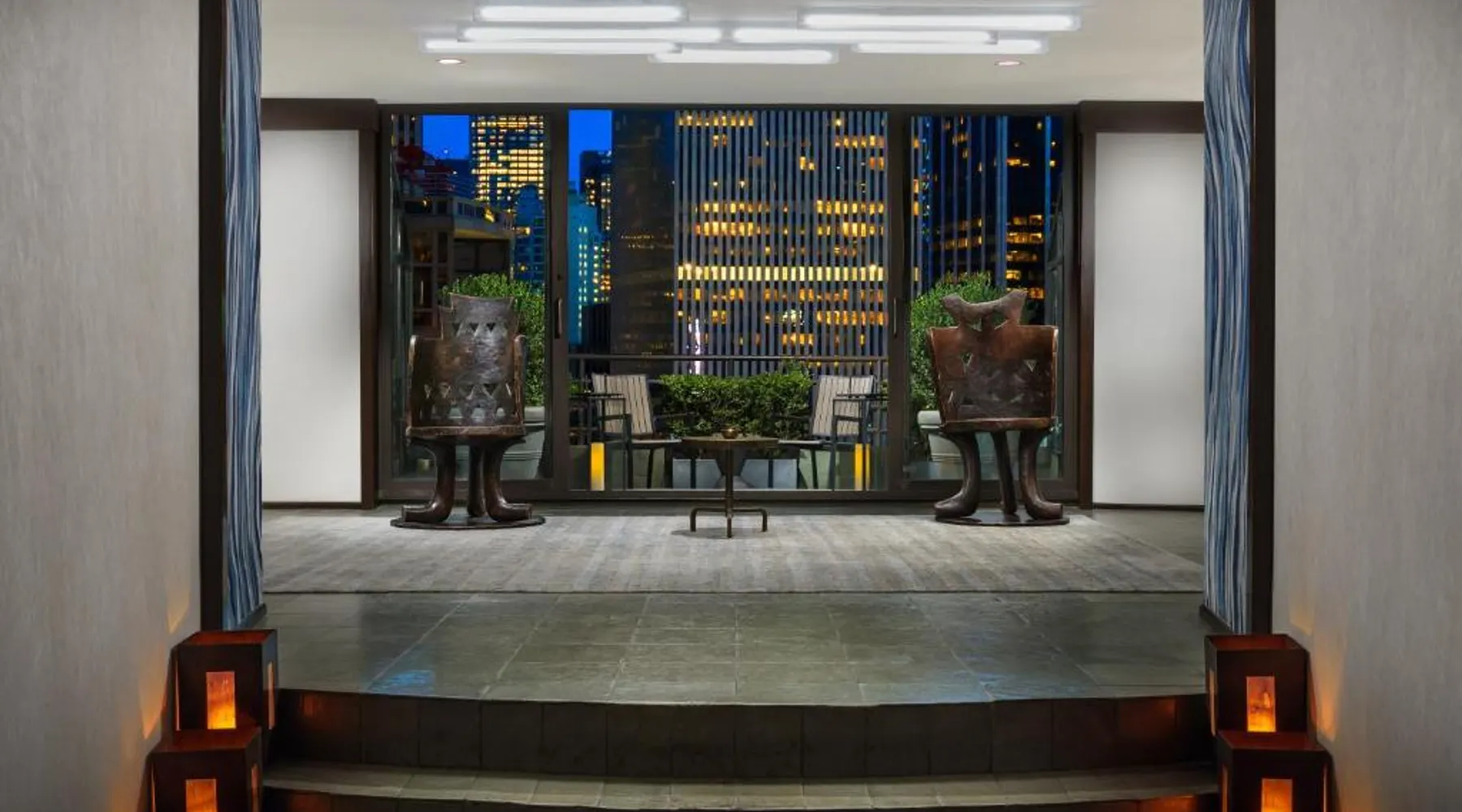 This New York City hotel is located on 44th Street and is 1056 feet from Times Square. It features guest rooms with flat-screen TVs. Each stylish and modern room at Royalton New York features a bathroom with a slate and glass shower. WiFi is available. Royalton New York is a design hotel with a large brass fireplace in the lobby. A business center is available . Radio City Music Hall and Bryant Park are 2113 feet from the property. Guests can also find 2 subway stations within 2297 feet of the property. This suite features a private bathroom, and air conditioning. This suite provides a TV. The unit has 1 bed.