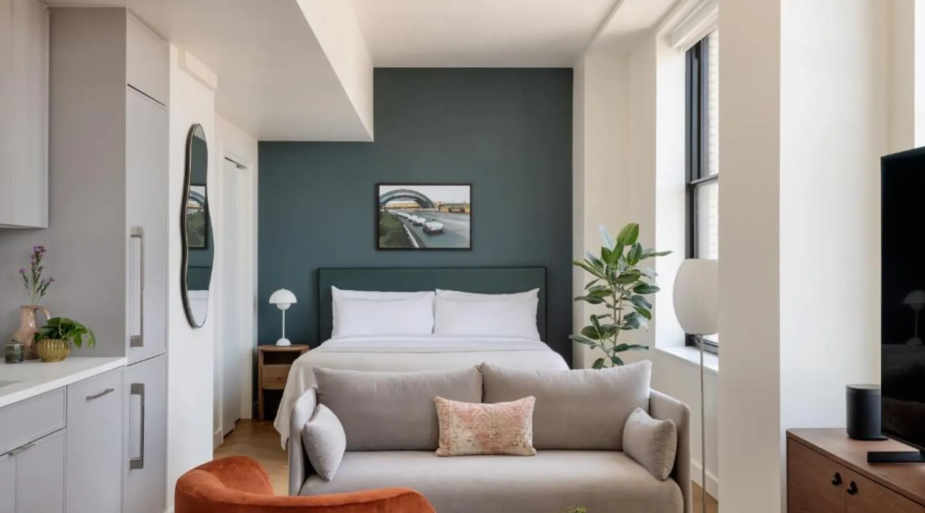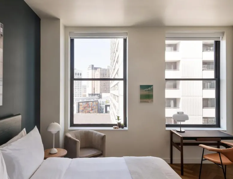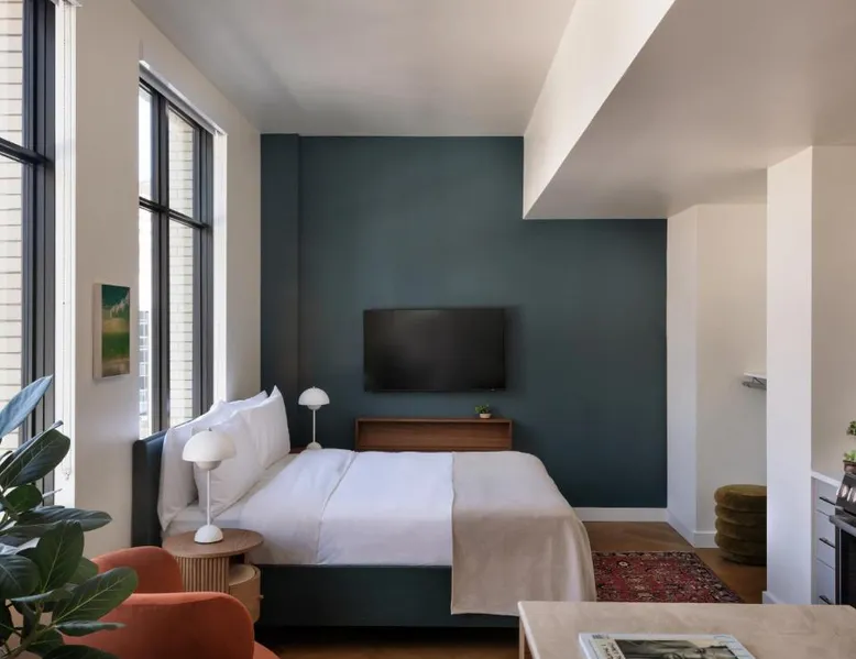 Prime Location: ROOST Detroit is located in Detroit city center, offering easy access to key attractions. The Music Hall Center is a 9-minute walk away, while the Detroit Opera House lies 1640 feet nearby. Exceptional Facilities: Guests enjoy a fitness center, sun terrace, restaurant, bar, and free WiFi. Additional amenities include a lounge, outdoor fireplace, fitness room, and 24-hour front desk. Comfortable Accommodations: Rooms feature air-conditioning, private bathrooms, and modern amenities such as flat-screen TVs and free toiletries. Family rooms and executive lounges cater to all travelers. Dining Experience: The family-friendly restaurant serves French, Japanese, Spanish, and Asian cuisines in a traditional, modern, and romantic ambiance. Dinner and cocktails are available. Nearby Attractions: The Detroit Cultural Center Historic District is a 5-minute walk, while the Fox Theater lies 2297 feet from the hotel. An ice-skating rink is also nearby. Providing free toiletries, this double room includes a private bathroom with a shower and a hairdryer. In the kitchen, guests will find a stovetop, a refrigerator, a dishwasher and kitchenware. The spacious air-conditioned double room provides a flat-screen TV with cable channels, a washing machine, a tea and coffee maker, executive lounge access as well as an inner courtyard view. The unit offers 1 bed.