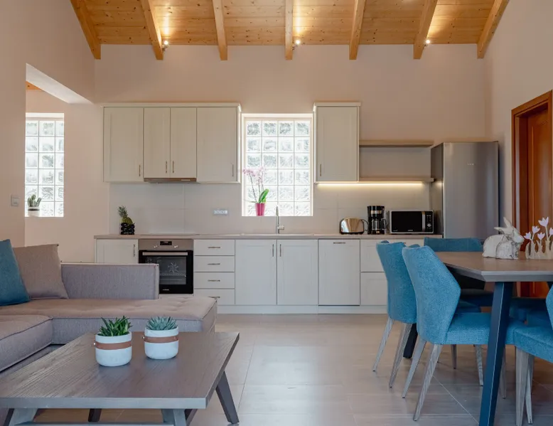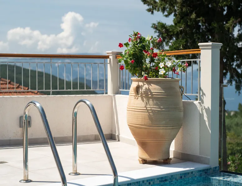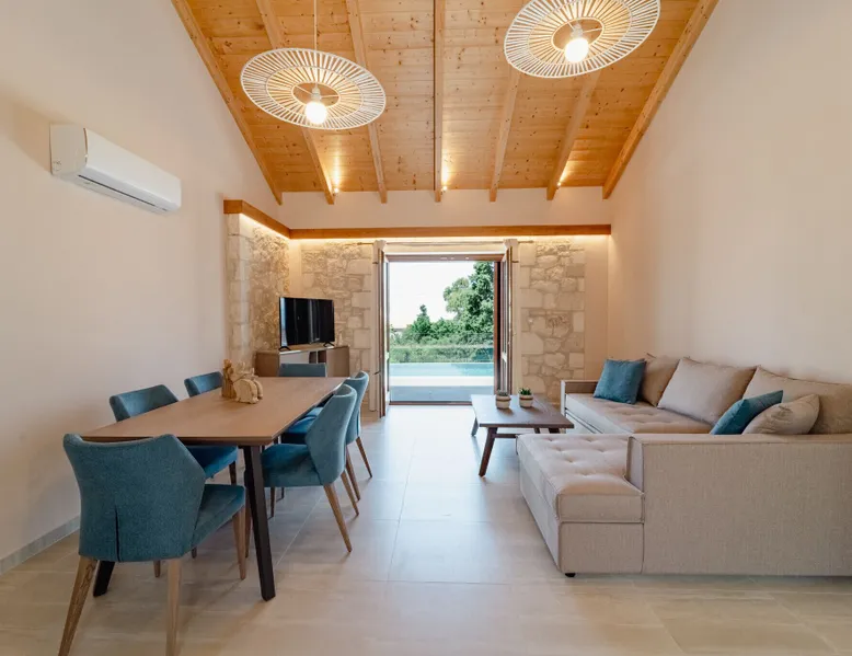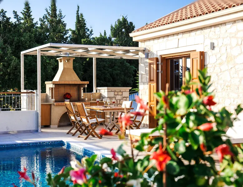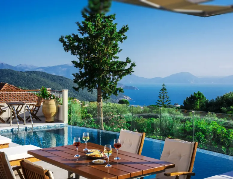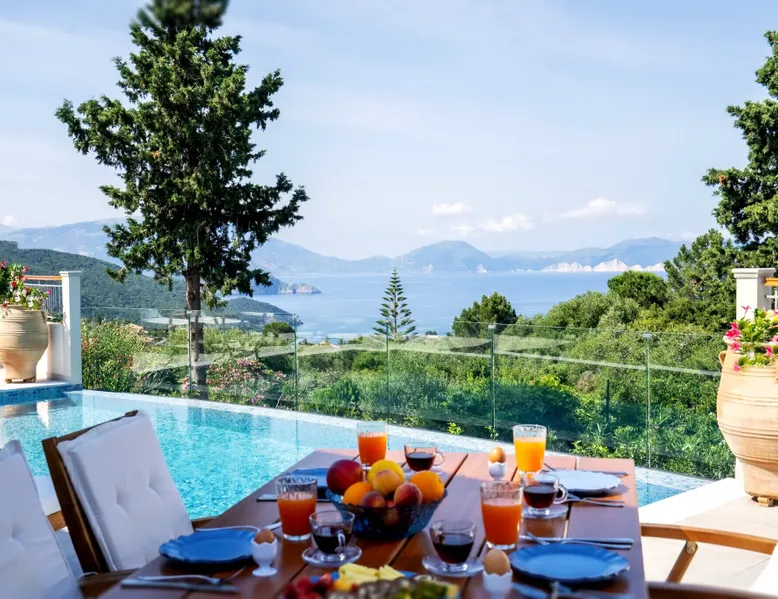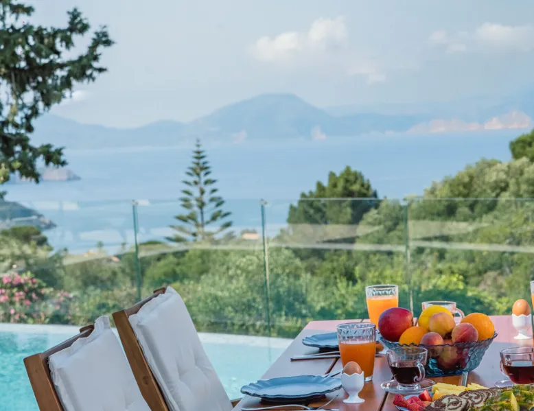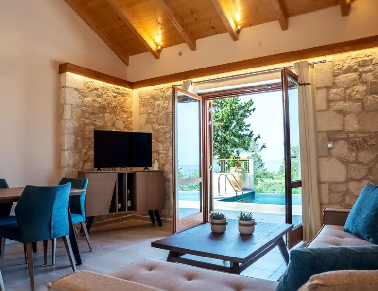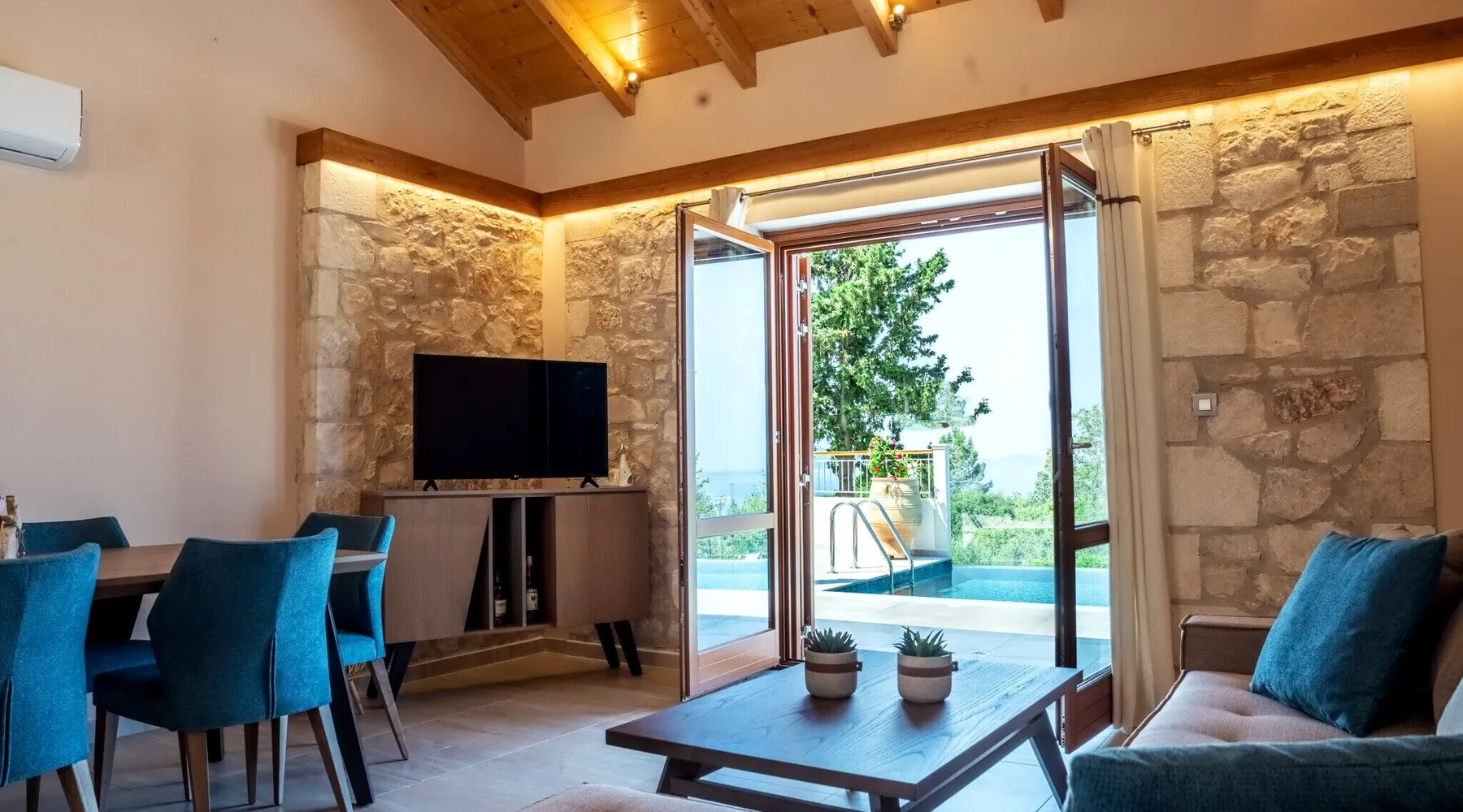 Beautifully designed using traditional materials, and making the most of the fantastic views across the bay, the lovely Pithari Stone Villa is a compact yet spacious base for 4, in an unspoilt corner of northern Kefalonia.Gorgeous views from the terrace and infinity pool take in the pine-studded hillside, red roofed villas and the sparkling blue Ionian Sea beyond. Comfortable sun loungers invite long, lazy days around the pool, with the covered dining terrace and large purpose-built BBQ providing the ingredients for al fresco breakfast, lunch and dinner! Watching the sun dip into the horizon from this spot is a truly magical holiday memory not to be missed.The light, modern and practical interior offers a sleek and well-equipped kitchen alongside dining table & chairs for 6. For those needing to switch off fully, the comfortable sofa is large enough to stretch out on whilst enjoying streaming services on the flat screen TV.Two simple but beautifully finished bedrooms give a choice of a double and a twin, both with doors to the sun-drenched terrace, luxurious en-suite shower rooms, and even boasting bathrobes & slippers!The villa is equipped for 4, but a 5th person can be accommodated on the comfortable sofa-bed.Pithari Stone Villa is ideally located to fully unwind and relax, yet with cosmopolitan, picture-perfect Fiskardo only 7km away. Perched on the edge of unspoilt, tiny Tzaramelata, with a traditional taverna in walking distance, there are also a handful of further amenities just 1.5kms away in Maganos - including a couple of tavernas, cafes and mini-market. Just 3kms drive will get you to the lovely beaches of Alaties and Agios Jerusalem, both with a taverna, and continuing further afield will soon open up many activities, such as yacht hire, kayaking, caves to explore, hiking trails and boat trips to neighbouring islands.Whether you wish to explore all that Kefalonia has to offer, or just to laze around the villa with a good book, Pithari Stone Villa makes a wonderful holiday base.Outside Pithari Stone Villa Infinity Swimming Pool - 3m x 5m, depth 0.90m x 1.50m tiled, ladder entry and glass barrier. Poolside Sea View Terrace - Sun beds with cushions, parasols, and lovely sea views.Covered Poolside Sea View Terrace - Built-in outdoor sofa with cushions, dining table with chairs and large BBQ with sink plus outdoor shower.Lower garden - Steps lead to the garden below the villa with a variety of local plants.Gates to rear with a large parking area.Inside Pithari Stone Villa Ground floorOpen Plan Living - Kitchen area - L shaped Sofa (sofa-bed), Smart 42” TV with satellite & Netflix, balcony doors open to sea view pool terrace and wifi. Air Con Unit.Dining area - Table with chairs plus balcony doors with sea view/pool terrace view.Kitchen area - Double sink, dishwasher, 4 ring ceramic hob and electric oven, microwave, Nespresso & filter coffee machine plus large fridge freezer.Double bedroom, en suite shower room - 1 Queen sized bed, open wardrobe & drawers, dressing table with mirror. French doors to the sea view terrace with table and chairs.En suite shower cubicle, wash basin with mirror, W.C and washing machine.Air Con unit.Twin bedroom, en suite shower room. - 2 Twin beds, open wardrobe & drawers, dressing table with mirror. French doors to sea view terrace. En suite shower cubicle, wash basin with mirror, W.C. Air Con unit.5th person accommodated on sofa-bedHousekeepingYour Villa will be prepared for you on arrival with fresh bath and hand towels and all beds made up.For stays of 7 nights or more - house towels will be changed every 3 - 4 days.For stays of 14 nights or more - bed linen will be changed every 7 days.Pool/beach towels - one per person for the duration of your stay.Parking - Inside the gated grounds of the villa at the rear of the villa.