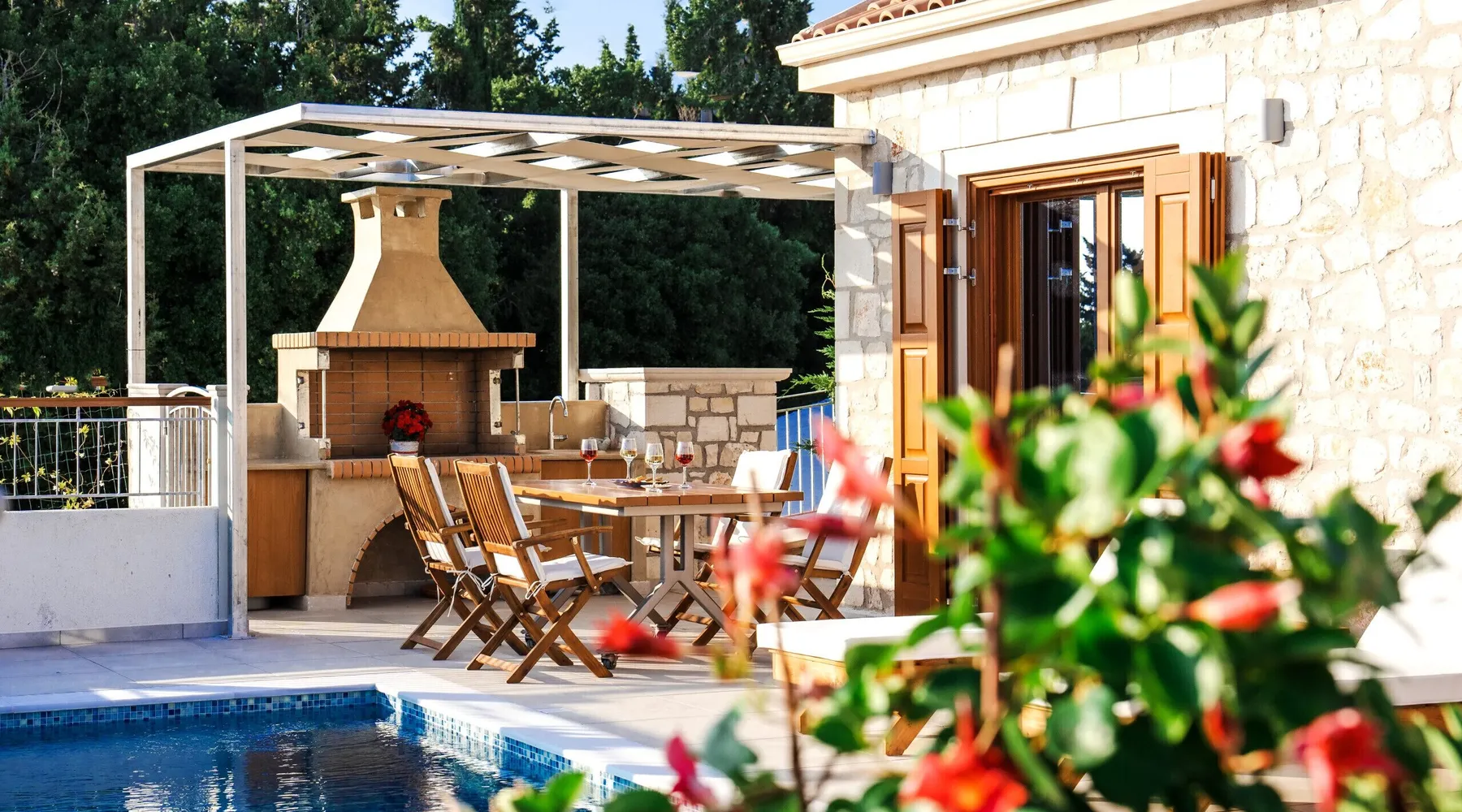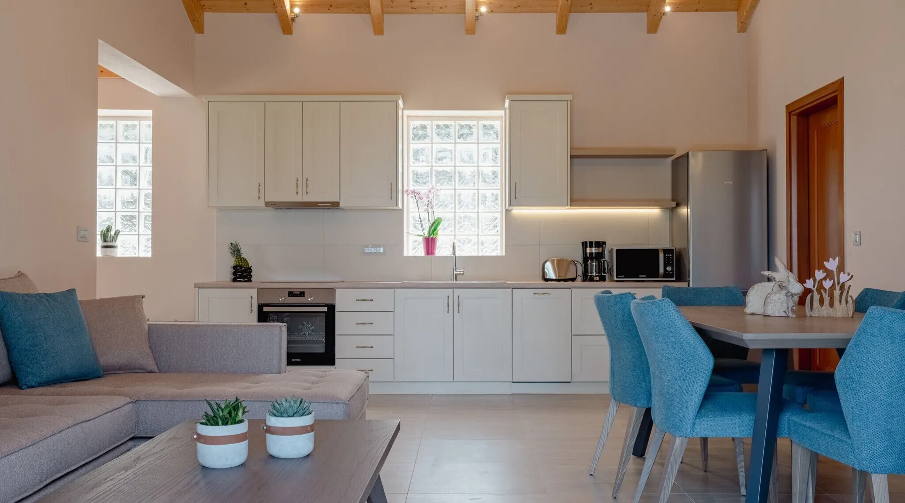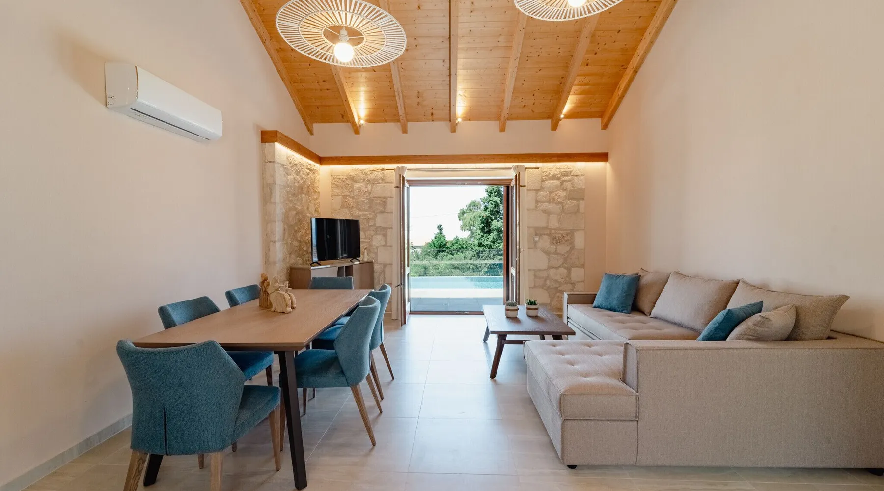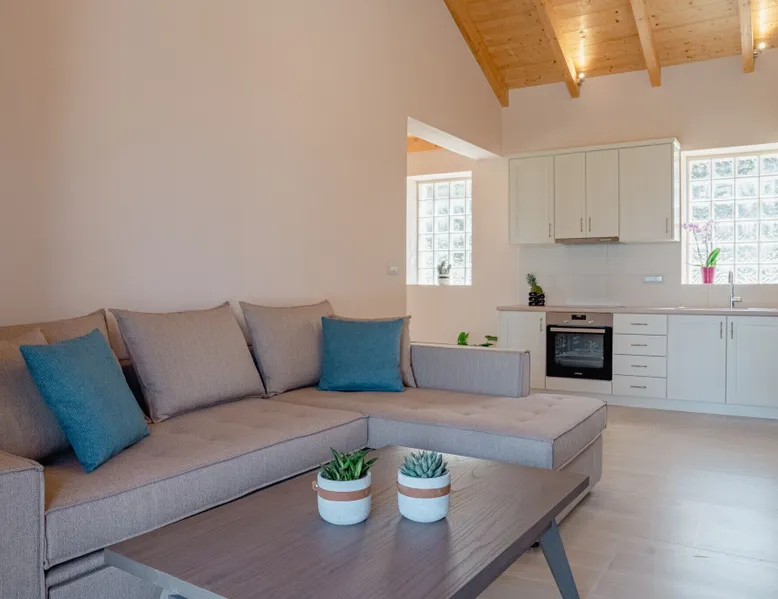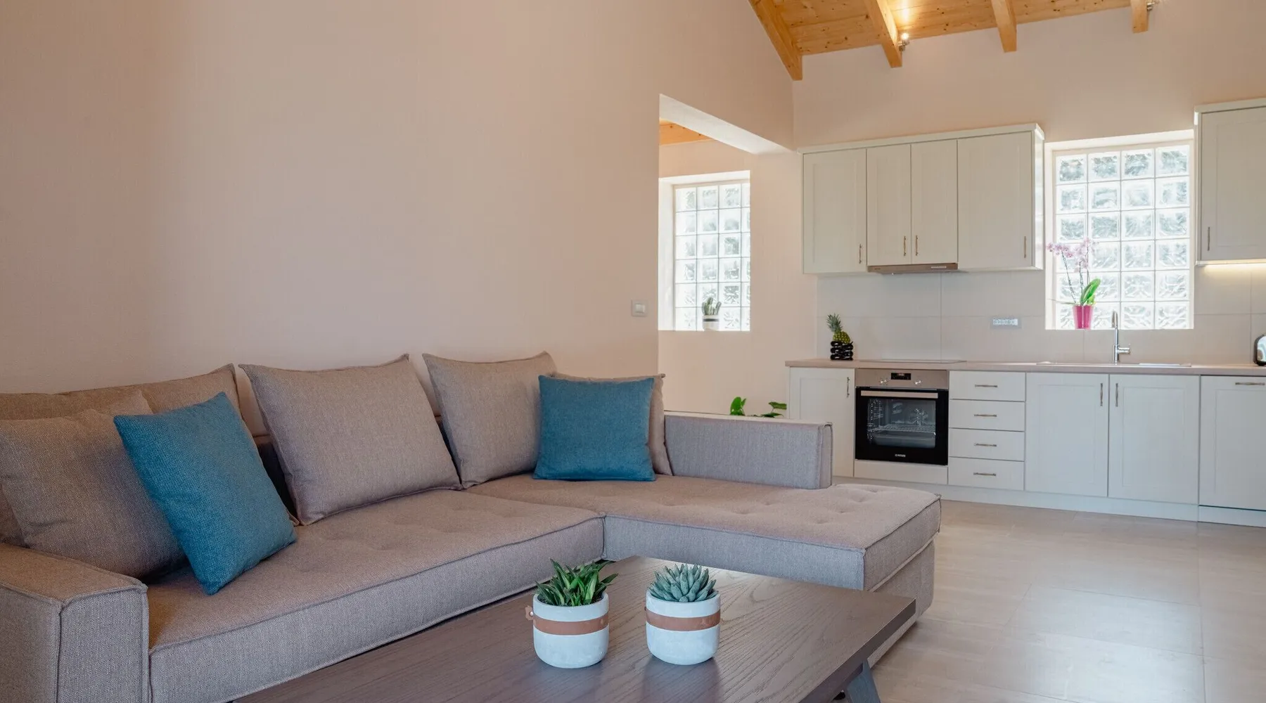 Beautifully designed using traditional materials, and making the most of the fantastic views across the bay, the lovely Pithari Stone Villa is a compact yet spacious base for 4, in an unspoilt corner of northern Kefalonia.Gorgeous views from the terrace and infinity pool take in the pine-studded hillside, red roofed villas and the sparkling blue Ionian Sea beyond. Comfortable sun loungers invite long, lazy days around the pool, with the covered dining terrace and large purpose-built BBQ providing the ingredients for al fresco breakfast, lunch and dinner! Watching the sun dip into the horizon from this spot is a truly magical holiday memory not to be missed.The light, modern and practical interior offers a sleek and well-equipped kitchen alongside dining table & chairs for 6. For those needing to switch off fully, the comfortable sofa is large enough to stretch out on whilst enjoying streaming services on the flat screen TV.Two simple but beautifully finished bedrooms give a choice of a double and a twin, both with doors to the sun-drenched terrace, luxurious en-suite shower rooms, and even boasting bathrobes & slippers!The villa is equipped for 4, but a 5th person can be accommodated on the comfortable sofa-bed.Pithari Stone Villa is ideally located to fully unwind and relax, yet with cosmopolitan, picture-perfect Fiskardo only 7km away. Perched on the edge of unspoilt, tiny Tzaramelata, with a traditional taverna in walking distance, there are also a handful of further amenities just 1.5kms away in Maganos - including a couple of tavernas, cafes and mini-market. Just 3kms drive will get you to the lovely beaches of Alaties and Agios Jerusalem, both with a taverna, and continuing further afield will soon open up many activities, such as yacht hire, kayaking, caves to explore, hiking trails and boat trips to neighbouring islands.Whether you wish to explore all that Kefalonia has to offer, or just to laze around the villa with a good book, Pithari Stone Villa makes a wonderful holiday base.Outside Pithari Stone Villa Infinity Swimming Pool - 3m x 5m, depth 0.90m x 1.50m tiled, ladder entry and glass barrier. Poolside Sea View Terrace - Sun beds with cushions, parasols, and lovely sea views.Covered Poolside Sea View Terrace - Built-in outdoor sofa with cushions, dining table with chairs and large BBQ with sink plus outdoor shower.Lower garden - Steps lead to the garden below the villa with a variety of local plants.Gates to rear with a large parking area.Inside Pithari Stone Villa Ground floorOpen Plan Living - Kitchen area - L shaped Sofa (sofa-bed), Smart 42” TV with satellite & Netflix, balcony doors open to sea view pool terrace and wifi. Air Con Unit.Dining area - Table with chairs plus balcony doors with sea view/pool terrace view.Kitchen area - Double sink, dishwasher, 4 ring ceramic hob and electric oven, microwave, Nespresso & filter coffee machine plus large fridge freezer.Double bedroom, en suite shower room - 1 Queen sized bed, open wardrobe & drawers, dressing table with mirror. French doors to the sea view terrace with table and chairs.En suite shower cubicle, wash basin with mirror, W.C and washing machine.Air Con unit.Twin bedroom, en suite shower room. - 2 Twin beds, open wardrobe & drawers, dressing table with mirror. French doors to sea view terrace. En suite shower cubicle, wash basin with mirror, W.C. Air Con unit.5th person accommodated on sofa-bedHousekeepingYour Villa will be prepared for you on arrival with fresh bath and hand towels and all beds made up.For stays of 7 nights or more - house towels will be changed every 3 - 4 days.For stays of 14 nights or more - bed linen will be changed every 7 days.Pool/beach towels - one per person for the duration of your stay.Parking - Inside the gated grounds of the villa at the rear of the villa.