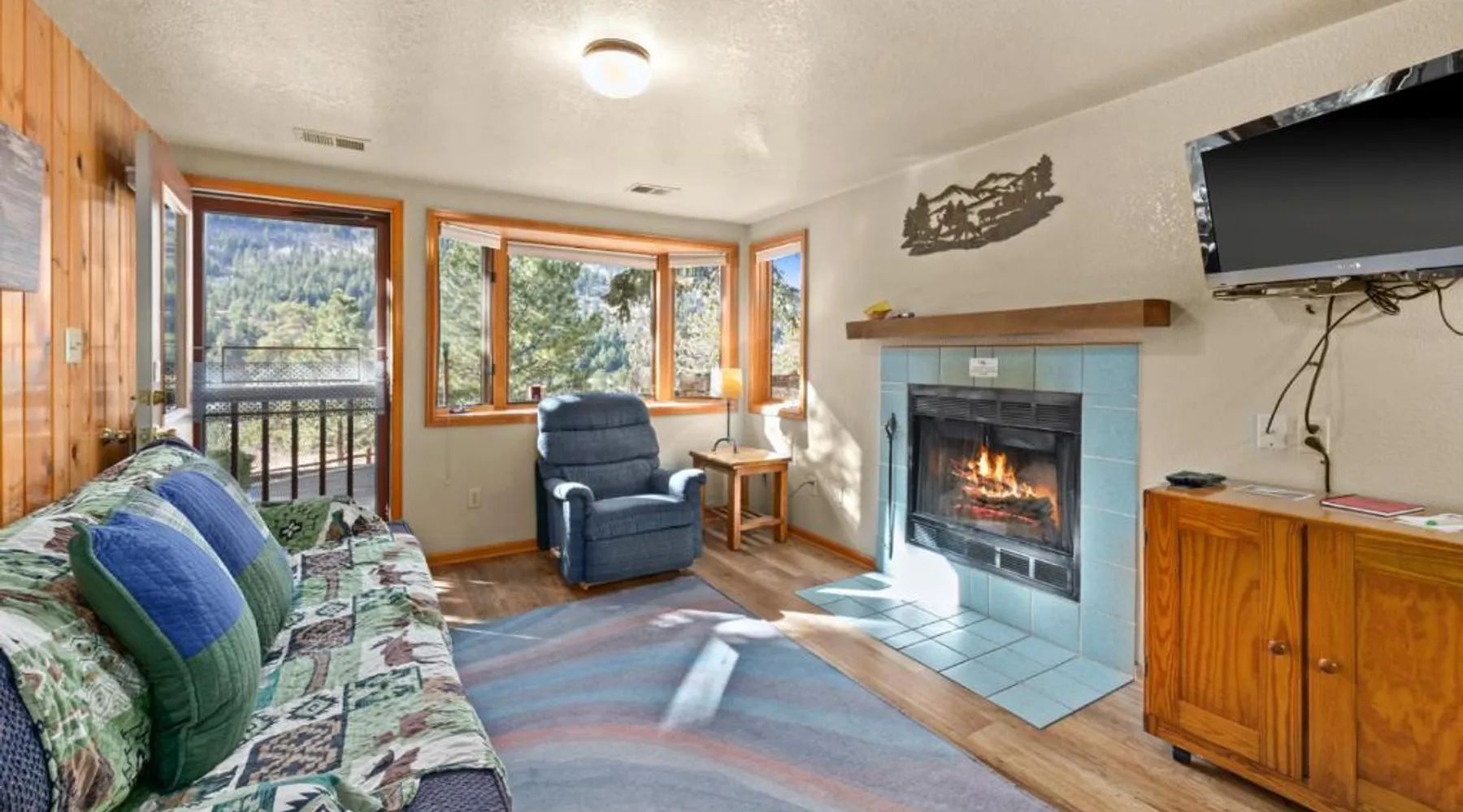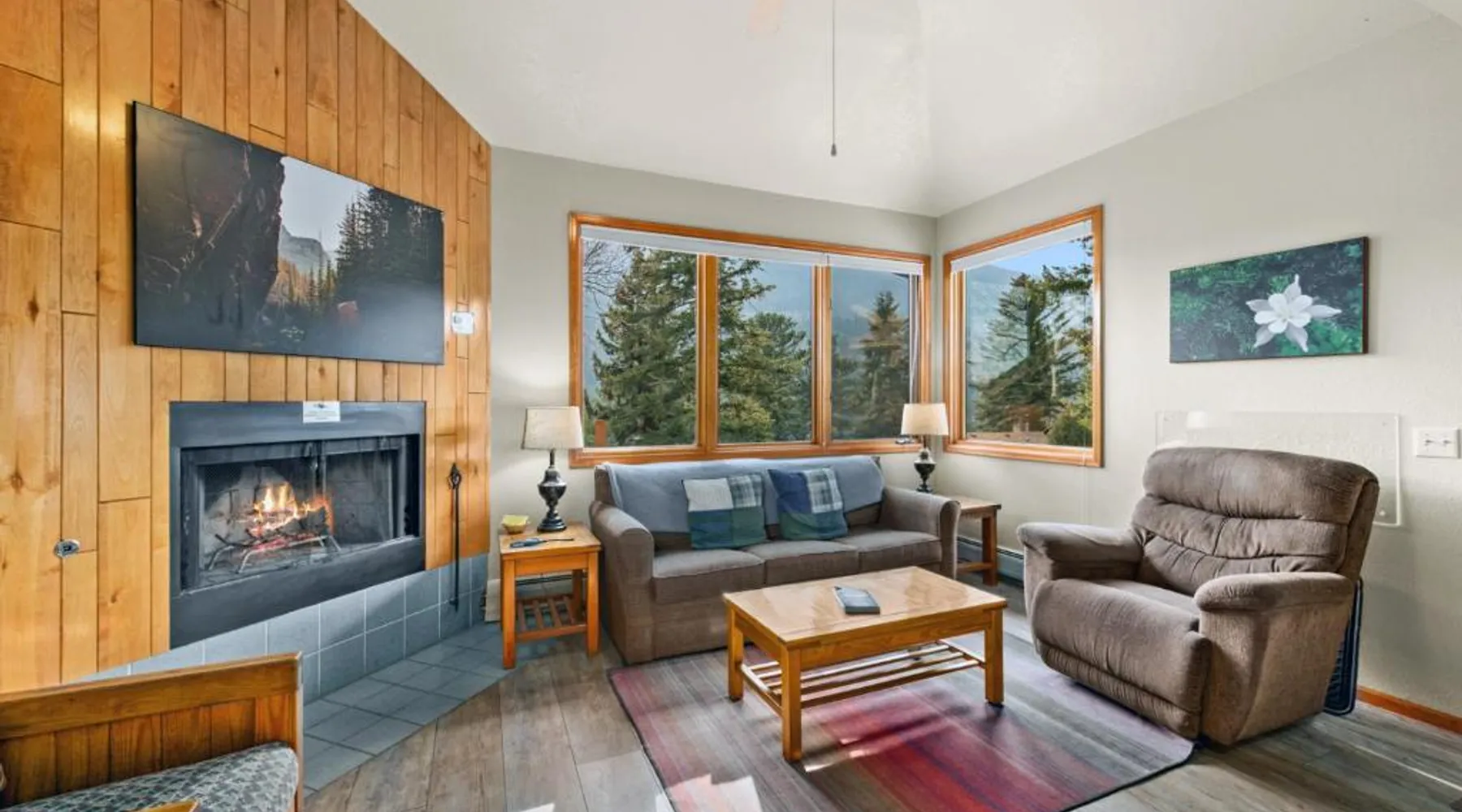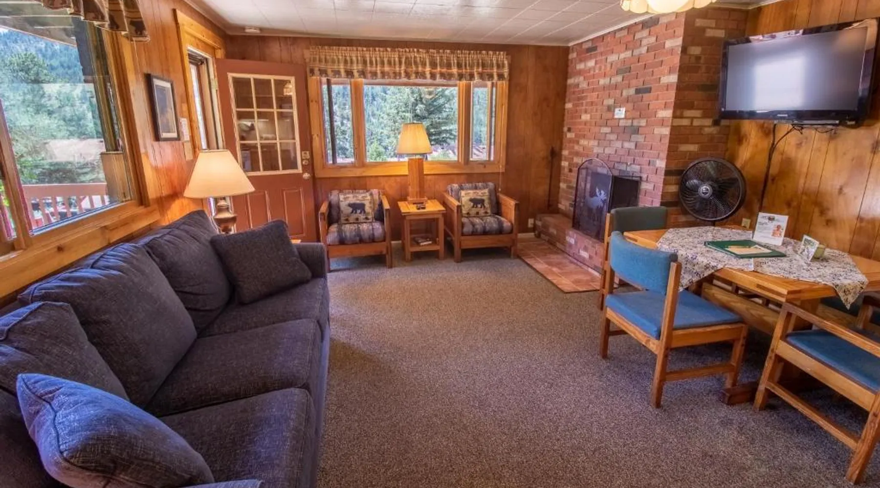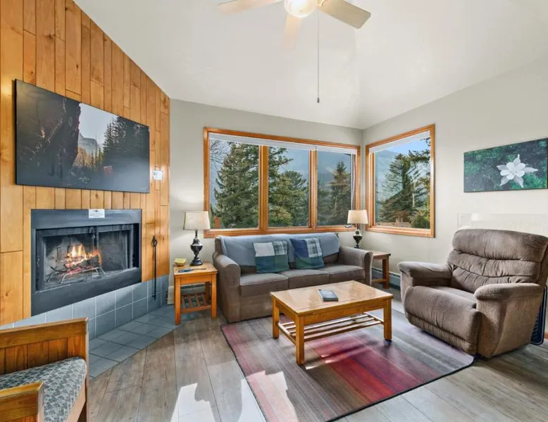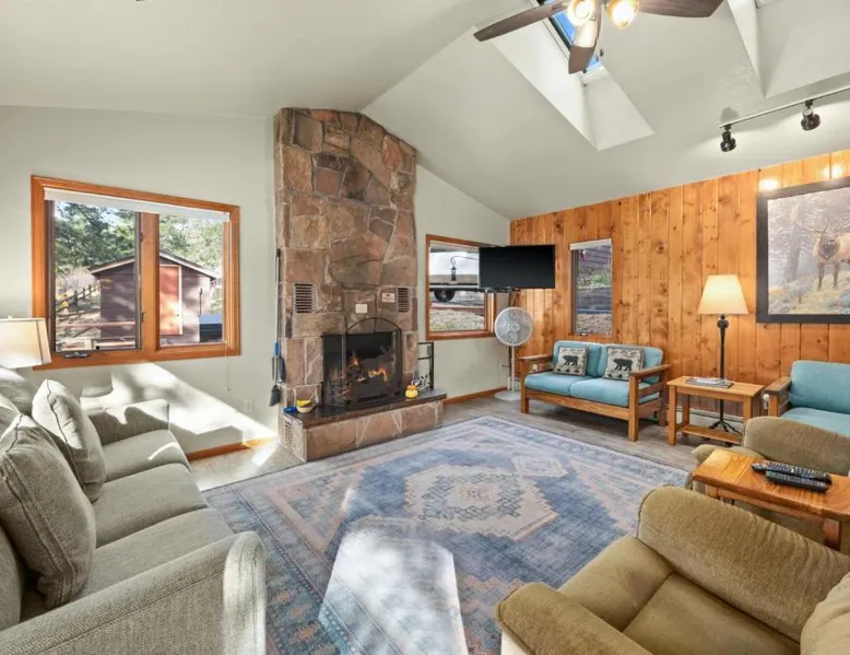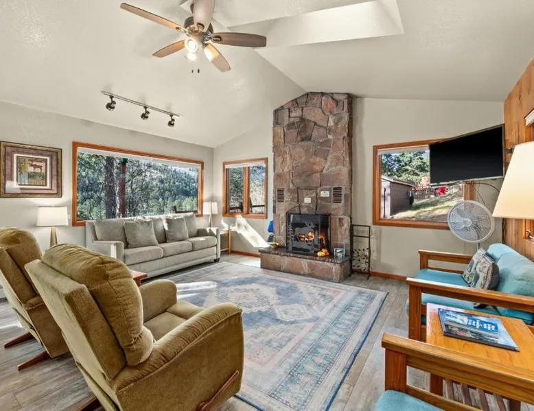 Comfortable Accommodations: McGregor Mountain Lodge in Estes Park offers family rooms with private bathrooms, balconies, and mountain views. Each room includes a kitchenette, refrigerator, microwave, and TV. Exceptional Facilities: Guests enjoy free WiFi, a lounge, outdoor fireplace, hot tub, outdoor play area, and barbecue facilities. Additional amenities include a children's playground, picnic area, and outdoor dining area. Convenient Location: Located 75 mi from Denver International Airport, the lodge is highly rated for its convenient location and scenic views. Nearby attractions include Rocky Mountain National Park and the Stanley Hotel. The fireplace is a top feature of this holiday home. Boasting a private entrance, this holiday home comes with 1 living room, 2 separate bedrooms and 1 bathroom with a bath and a shower. Guests will find a stovetop, a refrigerator, kitchenware and an oven in the kitchen. The holiday home also includes a barbecue. The holiday home features a flat-screen TV with cable channels, a coffee machine, a dining area, a wardrobe as well as mountain views. The unit has 3 beds.