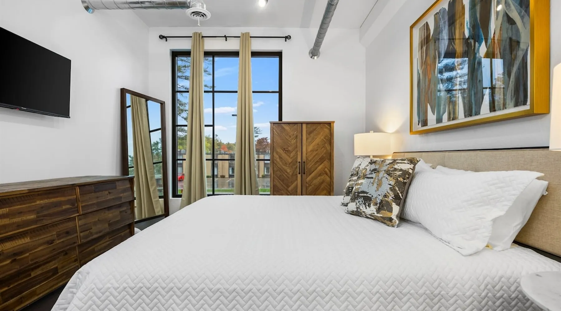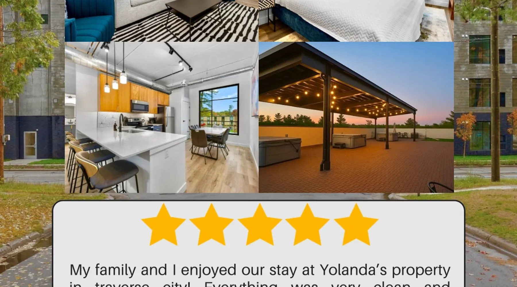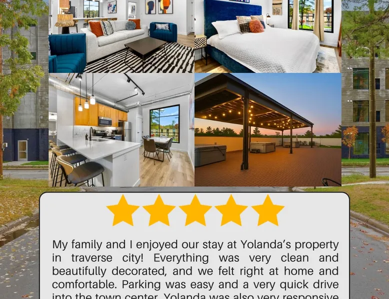 🍁 Discover your perfect hideaway at MoonlightShoresTC by ThePeacefulRetreats! ✨ Stay 6+ Nights & Save 10% — valid through 12/31/25 (holidays excluded) ❤️ What Our Guests Love ❤️ 💤 2 King + Queen Sofa Bed 🌌 Private Rooftop & 10 Community Hot Tubs — open 24/7, year-round 🧺 Washer/Dryer & Elevator 🚙 1 Reserved Parking + Extra Nearby 🥂 Prime Location: minutes to wineries, golf, beaches, TART Trails & front street shopping dining 🍴 Fully stocked kitchen The space 🌙 Welcome to MoonlightShoresTC Wake to golden autumn light on Old Mission Peninsula. Share quiet walks, sip local wine, and end the day beneath the stars in a warm hot tub. This fall, Northern Michigan is yours to savor—together! 🛏 SLEEPING ARRANGEMENTS Master Suite • King bed with blackout curtains • Roku TV, dresser, and full closet • Ensuite bathroom with walk-in shower • Plush towels + full bath amenities Guest Room • King bed • Tub Shower combo • Closet + extra blankets Living Room • Queen-size sleeper sofa 🛋 LIVING ROOM • Open-concept layout filled with natural light • Comfortable seating for relaxing or gathering • Stylish décor and cozy touches throughout 🎮 ENTERTAINMENT • Roku TVs in living room and master bedroom • Google Home Mini for music and info • Fast fiber Wi-Fi for streaming, remote work, or play 🍽 KITCHEN & DINING • Stainless steel appliances (fridge, stove, oven, microwave, dishwasher) • Fully stocked: cookware, dishes, utensils, blender • Keurig + drip coffee maker with starter supplies • Counter seating for 4 • Dining table seats 6 comfortably 🌅 OUTDOOR SPACE • Deck perfect for morning coffee or evening wine • Rooftop access with 10 hot tubs (open 24/7) • Steps to the beach, vineyards, TART Trails & parks • Ideal for sunsets, stargazing & outdoor relaxation 🧺 OTHER AMENITIES • In-unit washer & dryer • Iron + ironing board • 1 dedicated parking spot (extras nearby) • Elevator access for easy entry ✅ This property has special local compliance requirements which include a signed rental agreement, ID verification and optional damage waiver. To make this process easy for you, we use a secure and very simple, app-free platform called Happy Guest. It is not an app, and you do not have to sign up for an account - it’s a safe and secure website. It also gives you a guest portal with all the info about the home and all of my favorite local spots. Guest access 🕓 Check-in: 3 PM | 🕙 Check-out: 11 AM (Early check-in for $25/hour - subject to availability) Personalized key code to the unit will be provided 24 hours prior to check in. Other things to note 🚫 No Pets Allowed We love animals, but this property is not pet-friendly. Thank you for respecting our no-pet policy to help maintain a clean and allergen-free environment for all guests. 🕒 Booking Requirements • Government-issued ID verification required • No parties or events • Quiet hours after 10 PM 🚭 No Smoking Smoking is strictly prohibited inside the unit and on the rooftop. 🏡 Respect the Community This is a quiet, residential building—please be courteous to neighbors and follow all posted condo rules during your stay.
