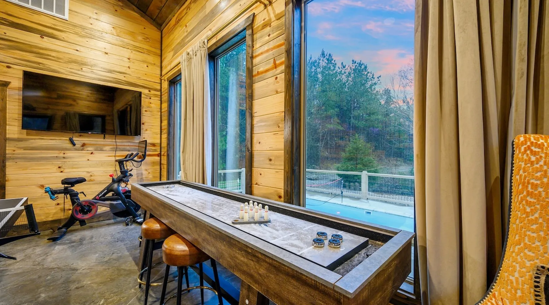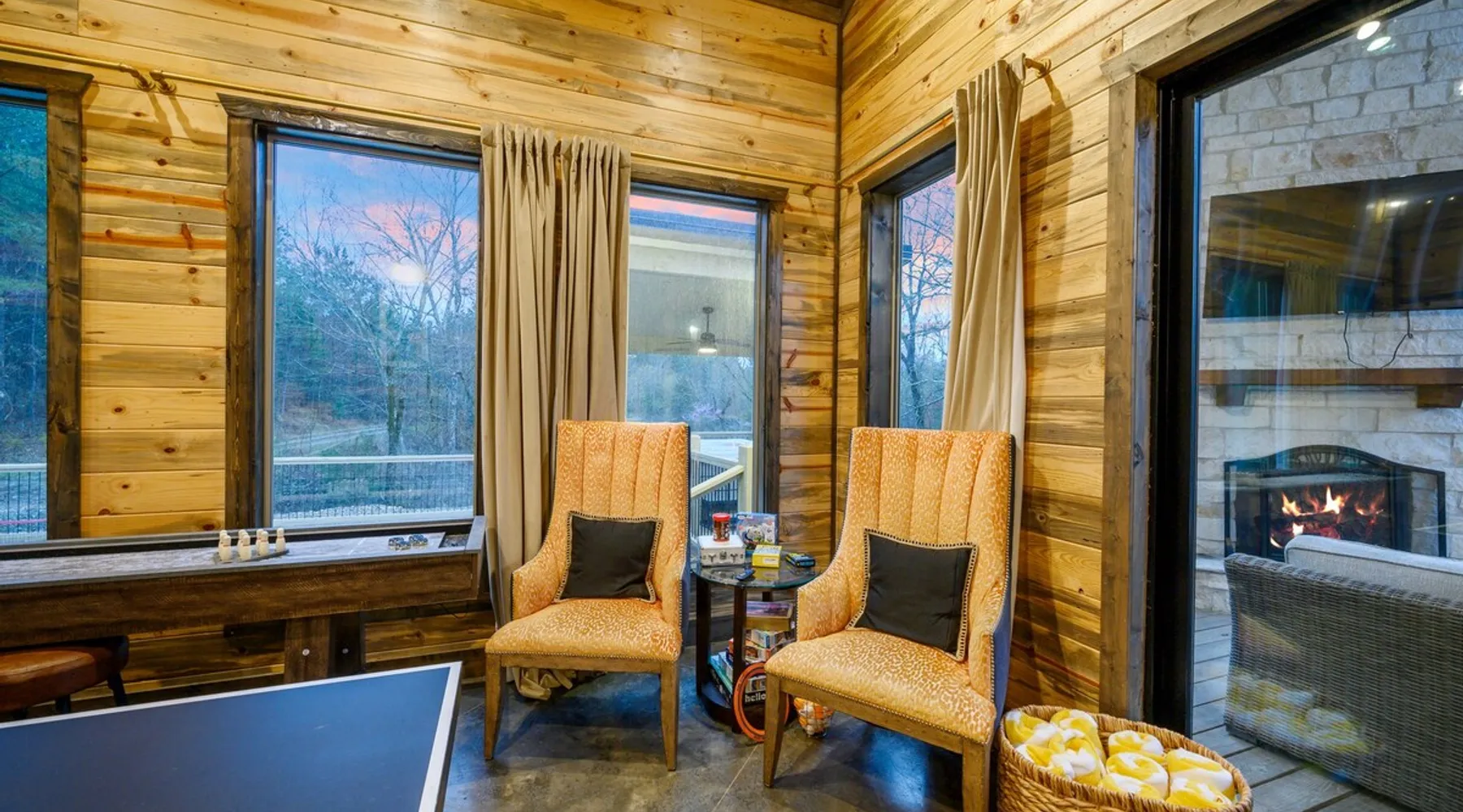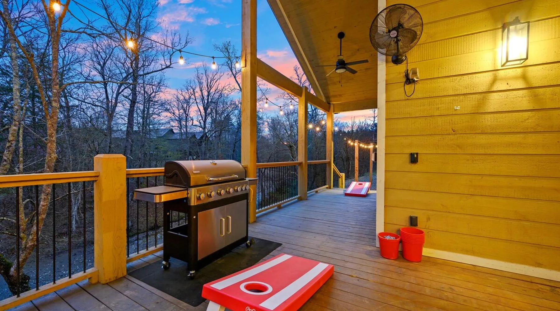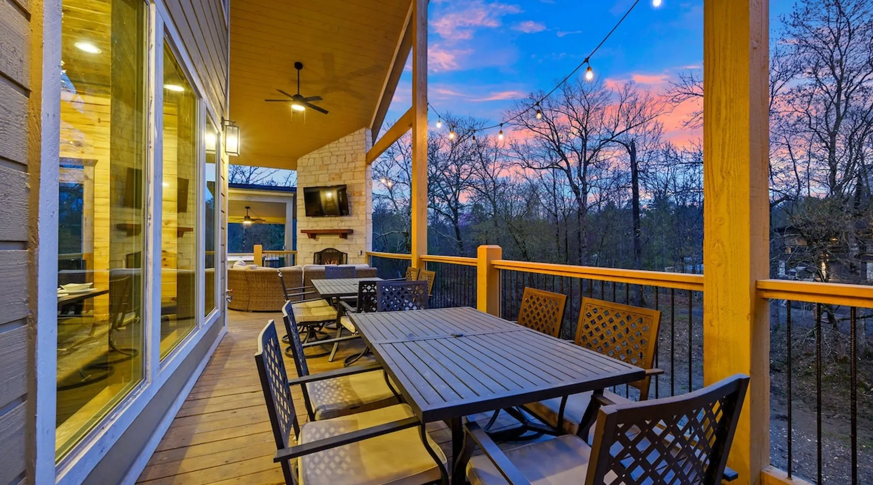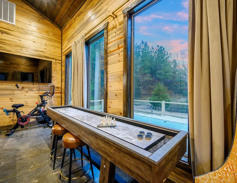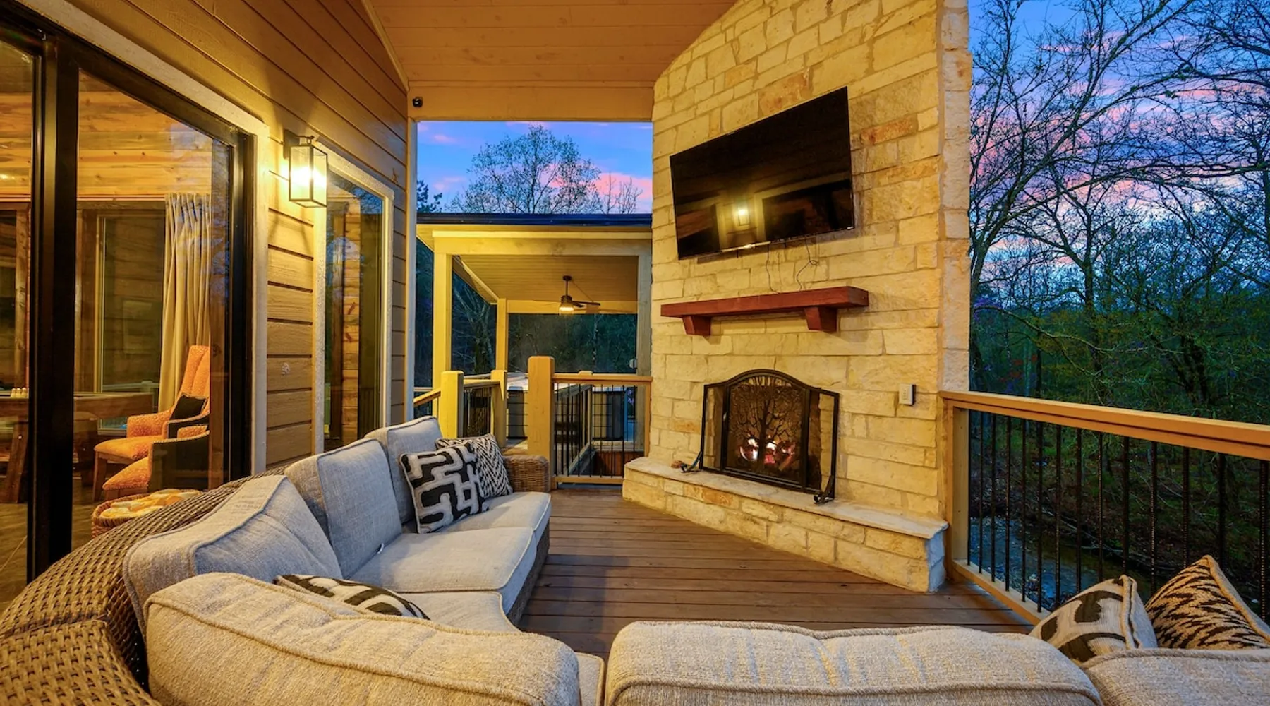 🏡 Pent Haus on the Creek Sleeps 20 | 5 Bedrooms (4 Kings + 1 Bunk Room) | 4.5 Bathrooms Pet Friendly | Pool | Game Room | Peloton | Outdoor Oasis Welcome to Pent Haus on the Creek, where luxury meets adventure in the heart of Hochatown. Whether you're soaking in the hot tub, breaking a sweat on the Peloton, or splashing in the pool (available year-round for a fee), this retreat is your go-to for making memories that are anything but ordinary. The space 🛋️ Living Room Large leather sectional & 2 accent chairs Gas fireplace for cozy nights Big-screen TV for movie marathons Throw blankets for extra comfort 🍽️ Kitchen & Dining Fully stocked kitchen with full-size appliances Keurig K-Cup + standard coffee maker Kitchen island seating for 12 Dining table seats 10 Perfect for meals, games, & laughter 🛏️ Bedrooms & Bathrooms 4 King Master Suites Two are located on the main floor and two on the second floor Each with a foot bench, nightstands, big-screen TV 3 Ensuite bathrooms: Double vanities + walk-in showers Upstairs master shares 4th bathroom with bunkroom Bunk Room 2 sets of triple-stacked full beds (sleeps 12) Large Connect Four game, bean bags, arcade console Big-screen TV = endless fun Half Bathroom Conveniently located for common area use 🎮 Game Room & Fitness Space Shuffleboard & ping pong table Peloton bike for fitness lovers Big-screen TV + board games 2 accent chairs for spectators or bookworms 🌳 Outdoor Living Heated pool Fee applies: $99/day for first 3 nights, $25/day after 48-hour notice required for heating, and must be heated for the full stay Outdoor seating + dining for 10 Gas fireplace & big-screen outdoor TV Hot tub for 6 Gas grill Firepit with seating Gaga ball pit, tetherball, playset, cornhole, & darts Year-round running creek for serene ambiance 🐾 PET FRIENDLY Up to 2 dogs allowed $125 per pet ⚡ EV Charging EV outlet available (guests to bring their own charger) 🔥 Firewood Provided 📌 General Info Full-size washer/dryer + iron & ironing board Free Wi-Fi Surveillance: Exterior cameras face entrances only, monitored at check-in for occupancy compliance Gas fireplaces available seasonally (October–May 15) Refund policy: 6% processing fee on refunds. Max occupancy: 20 guests – NO EXCEPTIONS Guest access Entire cabin is available for guest Other things to note FEATURES : • Sleeps up to 20 guests (4 king beds and 6 full bunk beds. Sleeps 14 adults -OR- 8 adults and 12 children) •Smart TV's with direct TV in all bedrooms and bunk room • Washer & dryer • Gas fireplaces on outdoor deck and in living room • Smooth top range in kitchen • Entertaining areas including a fire pit overlooking the creek • Beautiful creek situated below deck • Large outdoor hot tub drained and sanitized after each guest visit • Outdoor kitchen including gas grill • Outdoor cameras for added safety A starter supply of coffee/filters, paper towels, toilet paper, dish soap, dishwasher tablets, trash bags, bath/ hot tub towels, and laundry soap are provided, but guest may need to bring additional supplies. • FIREWORKS in the area are not allowed. • SMOKING is not allowed indoor MAXIMUM OCCUPANCY: 20 GUESTS (Please don't plan on adding other guests. Our septic tank can not accommodate this and a subs **PET FRIENDLY** - 2 dogs MAX - $125 per pet - MUST clean up after your pet. - Local Tour Guide located in each cabin It is located near all the best restaurants, activities, and park amenities. It is just a short drive to Broken Bow Lake, Beavers Bend State Park, popular hiking trails, restaurants, breweries, wineries, and downtown Hochatown, and access to all the outdoors activities you want – boating, hiking, fly-fishing, kayaking, zip-lining, ATV trails, horseback riding, Cedar Creek Golf Course, Choctaw Landing Casino, mini-golf, helicopter rides, mining for gold, train rides, go-carts, and a great petting zoo. Don’t forget these items when you come to visit: • Rain gear and light jackets (Our average rainfall is 55″-60″ each year). • We have beautiful scenic trails; good hiking boots are a must. • Water shoes for our vast shorelines and streams. • Insect repellent, sunblock, and other first-aid supplies. • Coffee and filters – enjoy this while sitting on the deck in the early morning. • Condiments --A starter supply of coffee/filters, salt/pepper, paper towels, toilet paper, bath soap, dish soap, dishwasher tablets, trash bags, and laundry soap is provided. Still, guests may need to bring additional supplies. If we are missing something or you have a question we haven't answered, please feel free to reach out to us directly at Bravo Cabin Rentals and we will personally respond as soon as possible. We look forward to making your next vacation in Broken Bow/Hochatown one you won’t forget!