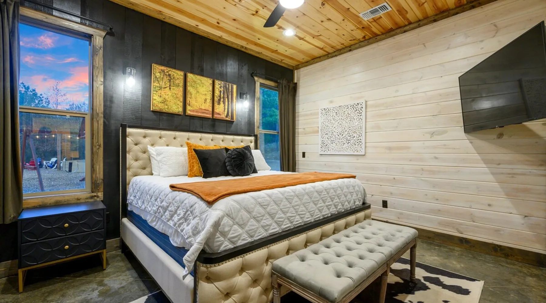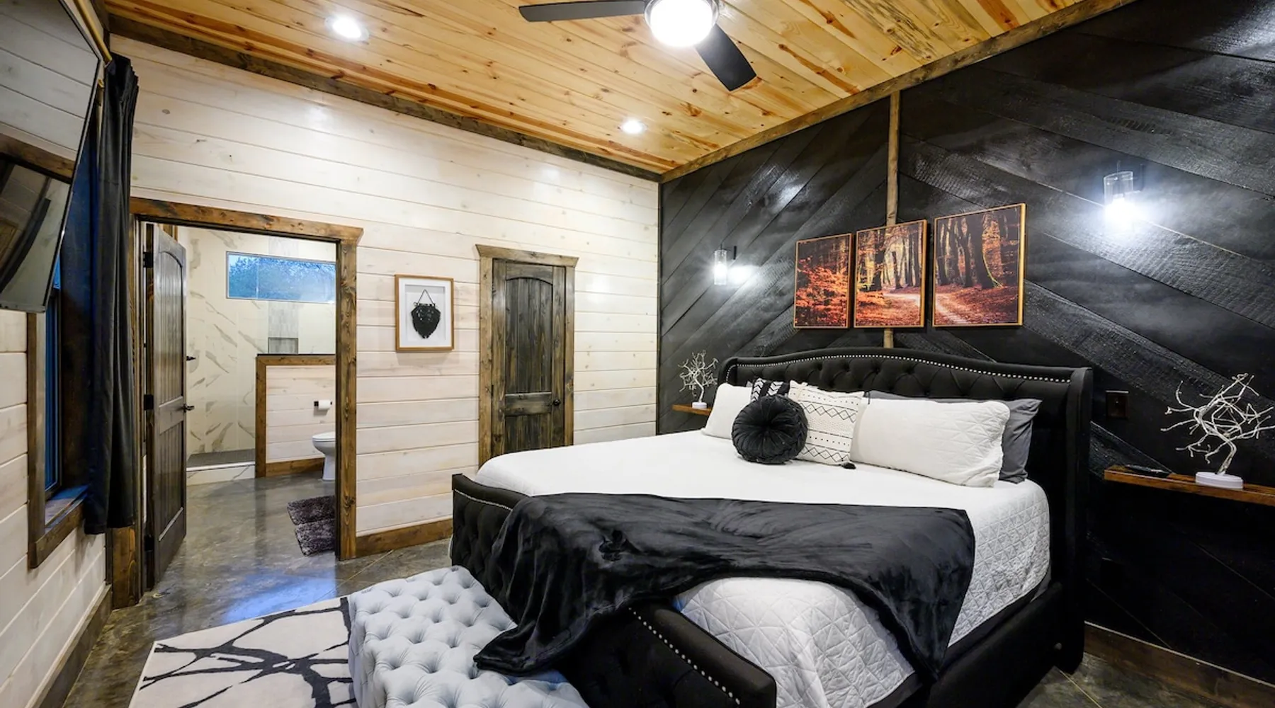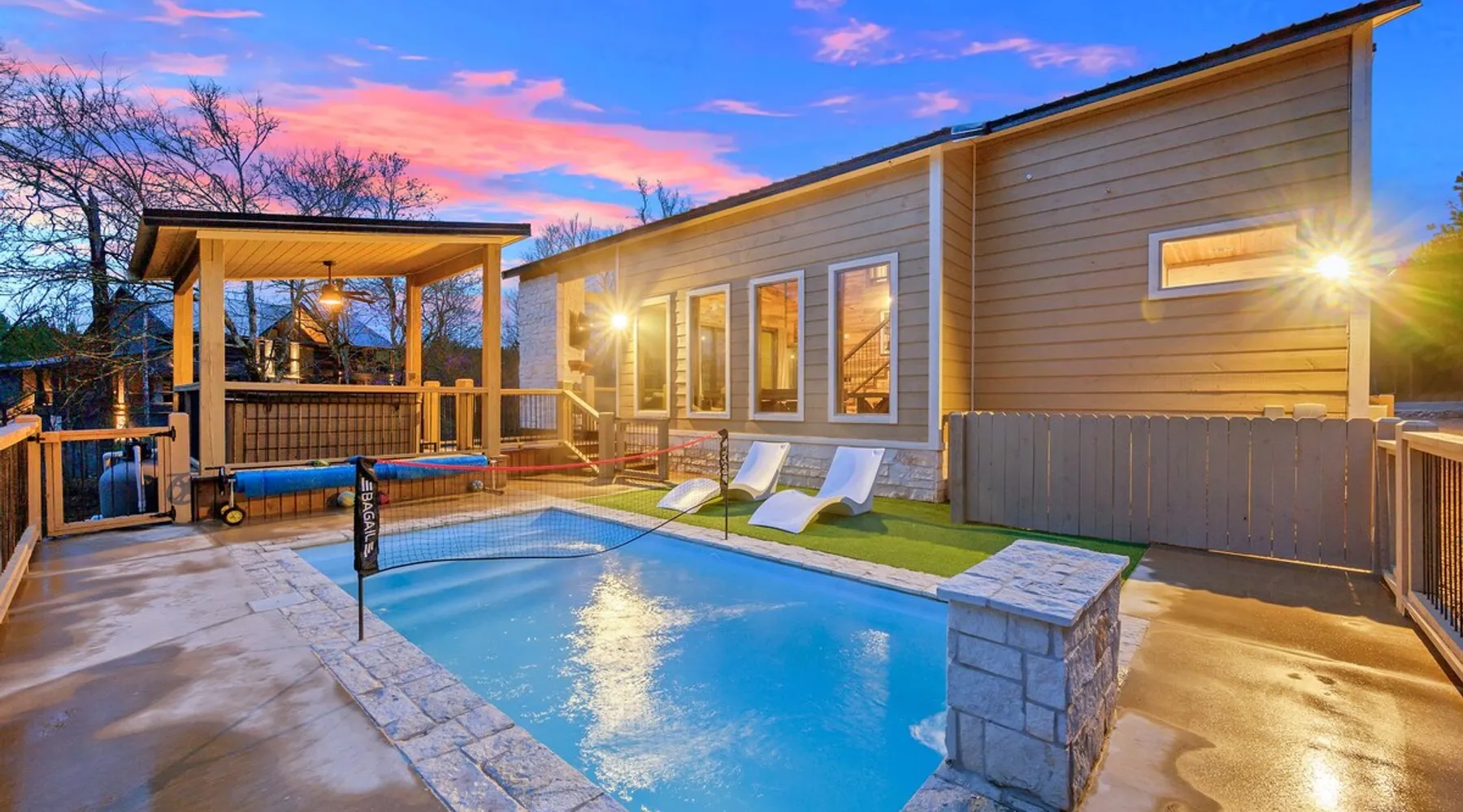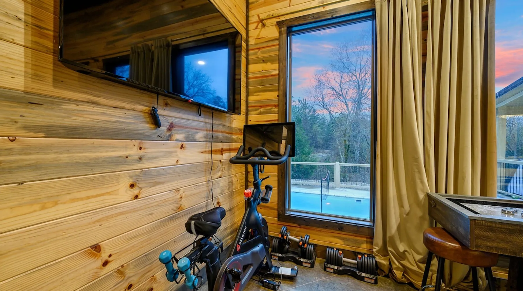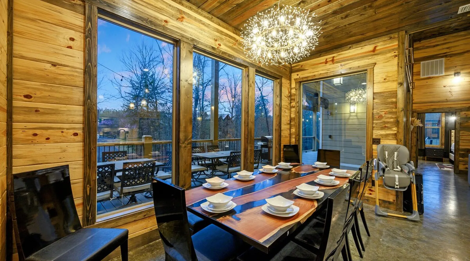 🏡 Pent Haus on the Creek Sleeps 20 | 5 Bedrooms (4 Kings + 1 Bunk Room) | 4.5 Bathrooms Pet Friendly | Pool | Game Room | Peloton | Outdoor Oasis Welcome to Pent Haus on the Creek, where luxury meets adventure in the heart of Hochatown. Whether you're soaking in the hot tub, breaking a sweat on the Peloton, or splashing in the pool (available year-round for a fee), this retreat is your go-to for making memories that are anything but ordinary. The space 🛋️ Living Room Large leather sectional & 2 accent chairs Gas fireplace for cozy nights Big-screen TV for movie marathons Throw blankets for extra comfort 🍽️ Kitchen & Dining Fully stocked kitchen with full-size appliances Keurig K-Cup + standard coffee maker Kitchen island seating for 12 Dining table seats 10 Perfect for meals, games, & laughter 🛏️ Bedrooms & Bathrooms 4 King Master Suites Two are located on the main floor and two on the second floor Each with a foot bench, nightstands, big-screen TV 3 Ensuite bathrooms: Double vanities + walk-in showers Upstairs master shares 4th bathroom with bunkroom Bunk Room 2 sets of triple-stacked full beds (sleeps 12) Large Connect Four game, bean bags, arcade console Big-screen TV = endless fun Half Bathroom Conveniently located for common area use 🎮 Game Room & Fitness Space Shuffleboard & ping pong table Peloton bike for fitness lovers Big-screen TV + board games 2 accent chairs for spectators or bookworms 🌳 Outdoor Living Heated pool Fee applies: $99/day for first 3 nights, $25/day after 48-hour notice required for heating, and must be heated for the full stay Outdoor seating + dining for 10 Gas fireplace & big-screen outdoor TV Hot tub for 6 Gas grill Firepit with seating Gaga ball pit, tetherball, playset, cornhole, & darts Year-round running creek for serene ambiance 🐾 PET FRIENDLY Up to 2 dogs allowed $125 per pet ⚡ EV Charging EV outlet available (guests to bring their own charger) 🔥 Firewood Provided 📌 General Info Full-size washer/dryer + iron & ironing board Free Wi-Fi Surveillance: Exterior cameras face entrances only, monitored at check-in for occupancy compliance Gas fireplaces available seasonally (October–May 15) Refund policy: 6% processing fee on refunds. Max occupancy: 20 guests – NO EXCEPTIONS Guest access Entire cabin is available for guest Other things to note FEATURES : • Sleeps up to 20 guests (4 king beds and 6 full bunk beds. Sleeps 14 adults -OR- 8 adults and 12 children) •Smart TV's with direct TV in all bedrooms and bunk room • Washer & dryer • Gas fireplaces on outdoor deck and in living room • Smooth top range in kitchen • Entertaining areas including a fire pit overlooking the creek • Beautiful creek situated below deck • Large outdoor hot tub drained and sanitized after each guest visit • Outdoor kitchen including gas grill • Outdoor cameras for added safety A starter supply of coffee/filters, paper towels, toilet paper, dish soap, dishwasher tablets, trash bags, bath/ hot tub towels, and laundry soap are provided, but guest may need to bring additional supplies. • FIREWORKS in the area are not allowed. • SMOKING is not allowed indoor MAXIMUM OCCUPANCY: 20 GUESTS (Please don't plan on adding other guests. Our septic tank can not accommodate this and a subs **PET FRIENDLY** - 2 dogs MAX - $125 per pet - MUST clean up after your pet. - Local Tour Guide located in each cabin It is located near all the best restaurants, activities, and park amenities. It is just a short drive to Broken Bow Lake, Beavers Bend State Park, popular hiking trails, restaurants, breweries, wineries, and downtown Hochatown, and access to all the outdoors activities you want – boating, hiking, fly-fishing, kayaking, zip-lining, ATV trails, horseback riding, Cedar Creek Golf Course, Choctaw Landing Casino, mini-golf, helicopter rides, mining for gold, train rides, go-carts, and a great petting zoo. Don’t forget these items when you come to visit: • Rain gear and light jackets (Our average rainfall is 55″-60″ each year). • We have beautiful scenic trails; good hiking boots are a must. • Water shoes for our vast shorelines and streams. • Insect repellent, sunblock, and other first-aid supplies. • Coffee and filters – enjoy this while sitting on the deck in the early morning. • Condiments --A starter supply of coffee/filters, salt/pepper, paper towels, toilet paper, bath soap, dish soap, dishwasher tablets, trash bags, and laundry soap is provided. Still, guests may need to bring additional supplies. If we are missing something or you have a question we haven't answered, please feel free to reach out to us directly at Bravo Cabin Rentals and we will personally respond as soon as possible. We look forward to making your next vacation in Broken Bow/Hochatown one you won’t forget!