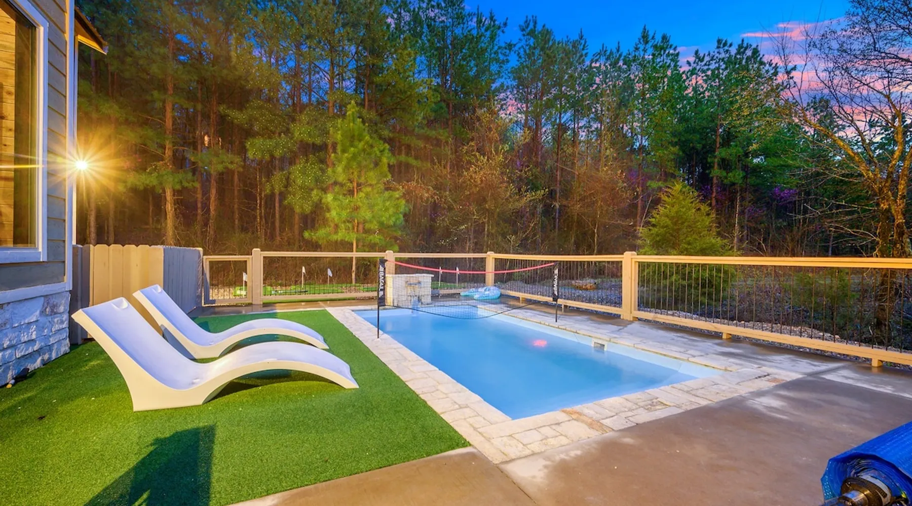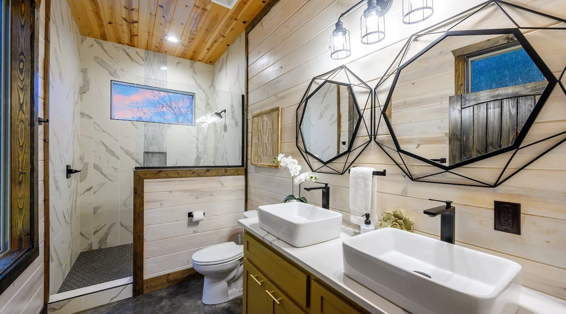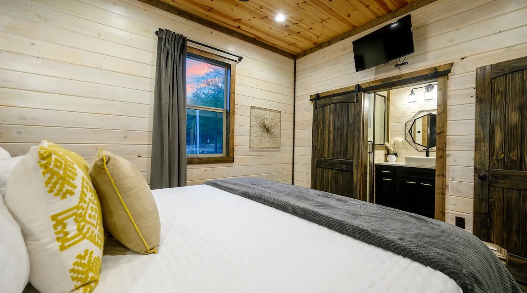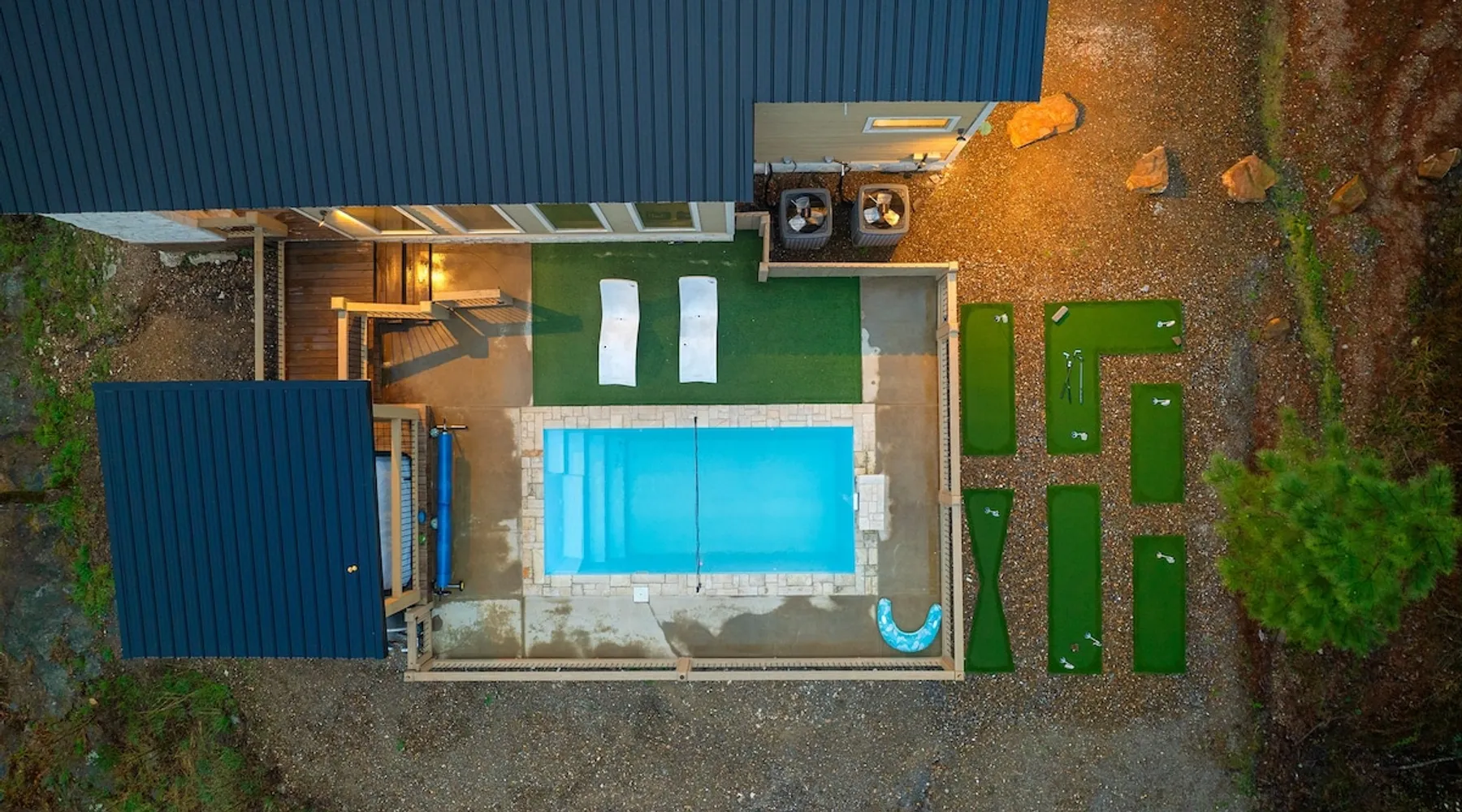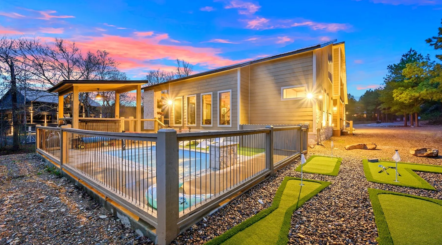 🏡 Pent Haus on the Creek Sleeps 20 | 5 Bedrooms (4 Kings + 1 Bunk Room) | 4.5 Bathrooms Pet Friendly | Pool | Game Room | Peloton | Outdoor Oasis Welcome to Pent Haus on the Creek, where luxury meets adventure in the heart of Hochatown. Whether you're soaking in the hot tub, breaking a sweat on the Peloton, or splashing in the pool (available year-round for a fee), this retreat is your go-to for making memories that are anything but ordinary. The space 🛋️ Living Room Large leather sectional & 2 accent chairs Gas fireplace for cozy nights Big-screen TV for movie marathons Throw blankets for extra comfort 🍽️ Kitchen & Dining Fully stocked kitchen with full-size appliances Keurig K-Cup + standard coffee maker Kitchen island seating for 12 Dining table seats 10 Perfect for meals, games, & laughter 🛏️ Bedrooms & Bathrooms 4 King Master Suites Two are located on the main floor and two on the second floor Each with a foot bench, nightstands, big-screen TV 3 Ensuite bathrooms: Double vanities + walk-in showers Upstairs master shares 4th bathroom with bunkroom Bunk Room 2 sets of triple-stacked full beds (sleeps 12) Large Connect Four game, bean bags, arcade console Big-screen TV = endless fun Half Bathroom Conveniently located for common area use 🎮 Game Room & Fitness Space Shuffleboard & ping pong table Peloton bike for fitness lovers Big-screen TV + board games 2 accent chairs for spectators or bookworms 🌳 Outdoor Living Heated pool Fee applies: $99/day for first 3 nights, $25/day after 48-hour notice required for heating, and must be heated for the full stay Outdoor seating + dining for 10 Gas fireplace & big-screen outdoor TV Hot tub for 6 Gas grill Firepit with seating Gaga ball pit, tetherball, playset, cornhole, & darts Year-round running creek for serene ambiance 🐾 PET FRIENDLY Up to 2 dogs allowed $125 per pet ⚡ EV Charging EV outlet available (guests to bring their own charger) 🔥 Firewood Provided 📌 General Info Full-size washer/dryer + iron & ironing board Free Wi-Fi Surveillance: Exterior cameras face entrances only, monitored at check-in for occupancy compliance Gas fireplaces available seasonally (October–May 15) Refund policy: 6% processing fee on refunds. Max occupancy: 20 guests – NO EXCEPTIONS Guest access Entire cabin is available for guest Other things to note FEATURES : • Sleeps up to 20 guests (4 king beds and 6 full bunk beds. Sleeps 14 adults -OR- 8 adults and 12 children) •Smart TV's with direct TV in all bedrooms and bunk room • Washer & dryer • Gas fireplaces on outdoor deck and in living room • Smooth top range in kitchen • Entertaining areas including a fire pit overlooking the creek • Beautiful creek situated below deck • Large outdoor hot tub drained and sanitized after each guest visit • Outdoor kitchen including gas grill • Outdoor cameras for added safety A starter supply of coffee/filters, paper towels, toilet paper, dish soap, dishwasher tablets, trash bags, bath/ hot tub towels, and laundry soap are provided, but guest may need to bring additional supplies. • FIREWORKS in the area are not allowed. • SMOKING is not allowed indoor MAXIMUM OCCUPANCY: 20 GUESTS (Please don't plan on adding other guests. Our septic tank can not accommodate this and a subs **PET FRIENDLY** - 2 dogs MAX - $125 per pet - MUST clean up after your pet. - Local Tour Guide located in each cabin It is located near all the best restaurants, activities, and park amenities. It is just a short drive to Broken Bow Lake, Beavers Bend State Park, popular hiking trails, restaurants, breweries, wineries, and downtown Hochatown, and access to all the outdoors activities you want – boating, hiking, fly-fishing, kayaking, zip-lining, ATV trails, horseback riding, Cedar Creek Golf Course, Choctaw Landing Casino, mini-golf, helicopter rides, mining for gold, train rides, go-carts, and a great petting zoo. Don’t forget these items when you come to visit: • Rain gear and light jackets (Our average rainfall is 55″-60″ each year). • We have beautiful scenic trails; good hiking boots are a must. • Water shoes for our vast shorelines and streams. • Insect repellent, sunblock, and other first-aid supplies. • Coffee and filters – enjoy this while sitting on the deck in the early morning. • Condiments --A starter supply of coffee/filters, salt/pepper, paper towels, toilet paper, bath soap, dish soap, dishwasher tablets, trash bags, and laundry soap is provided. Still, guests may need to bring additional supplies. If we are missing something or you have a question we haven't answered, please feel free to reach out to us directly at Bravo Cabin Rentals and we will personally respond as soon as possible. We look forward to making your next vacation in Broken Bow/Hochatown one you won’t forget!