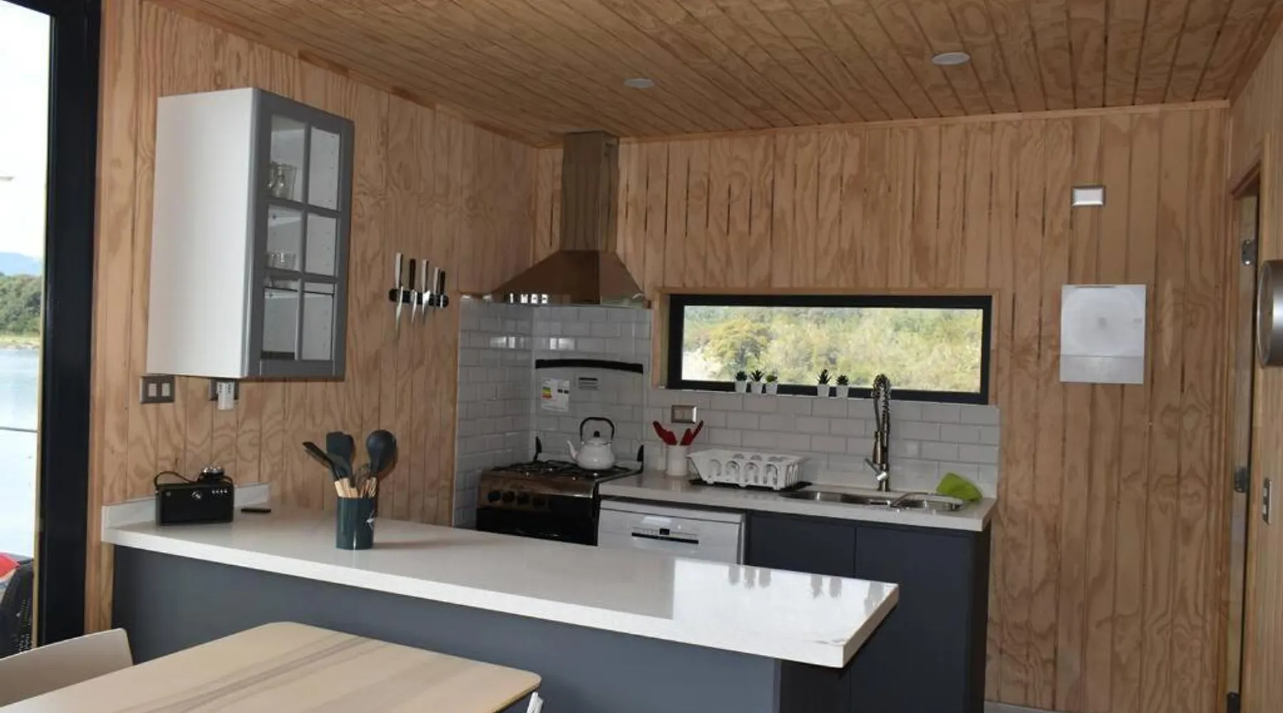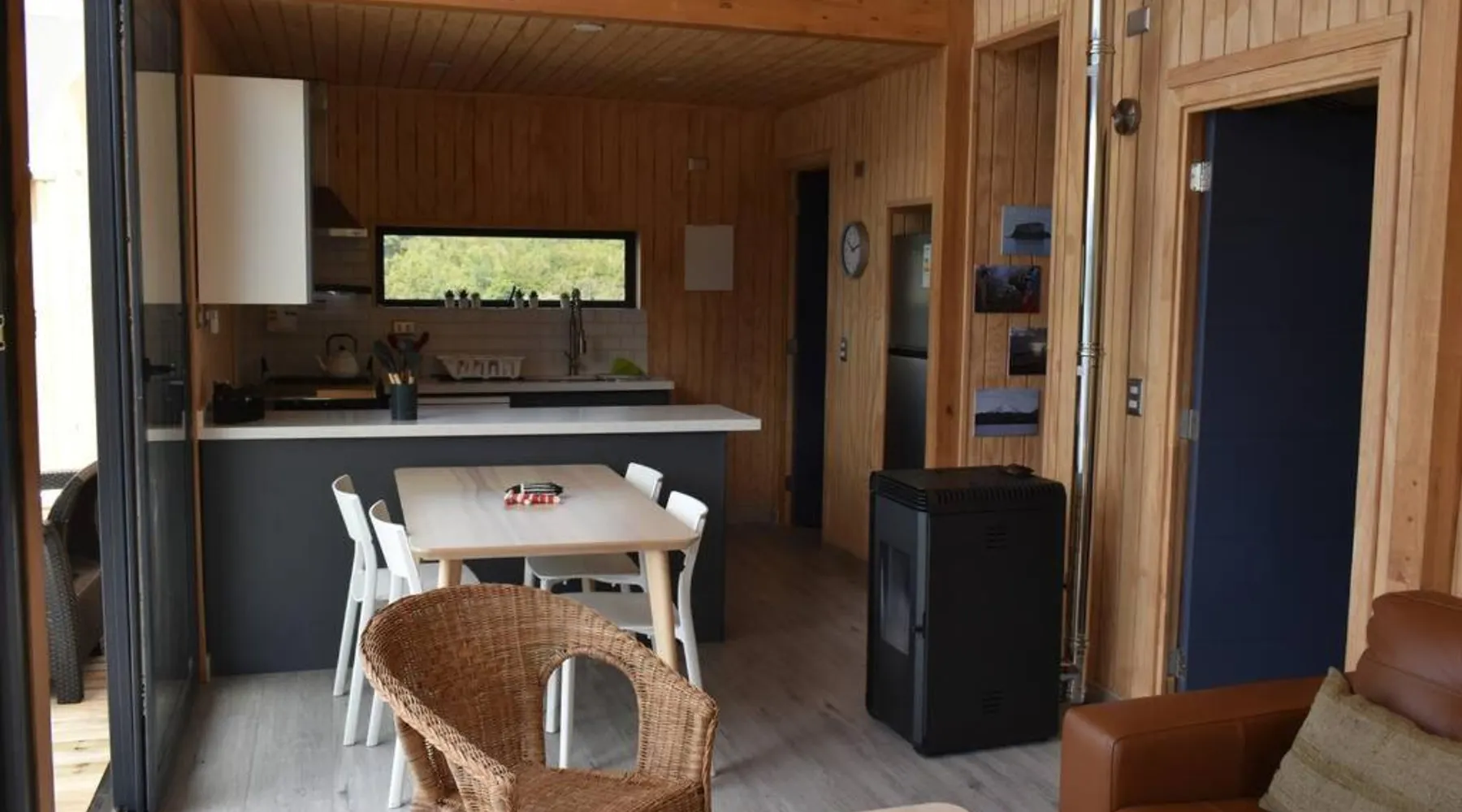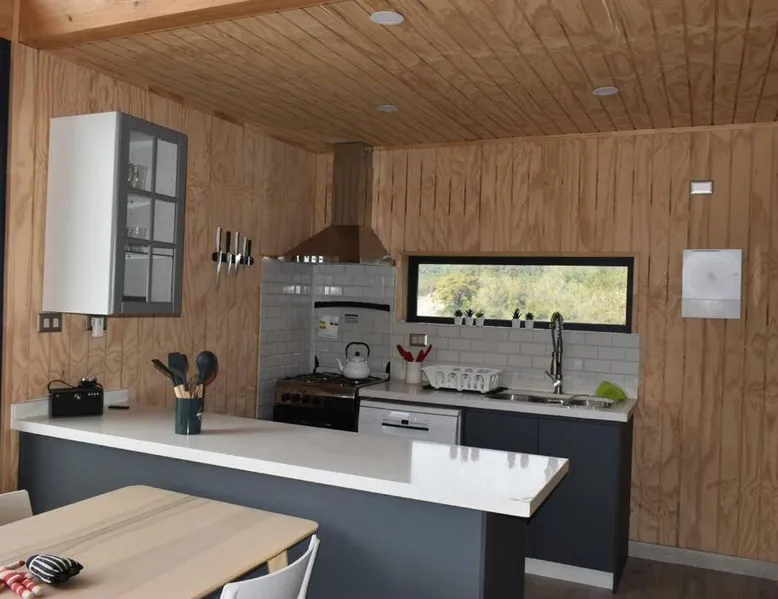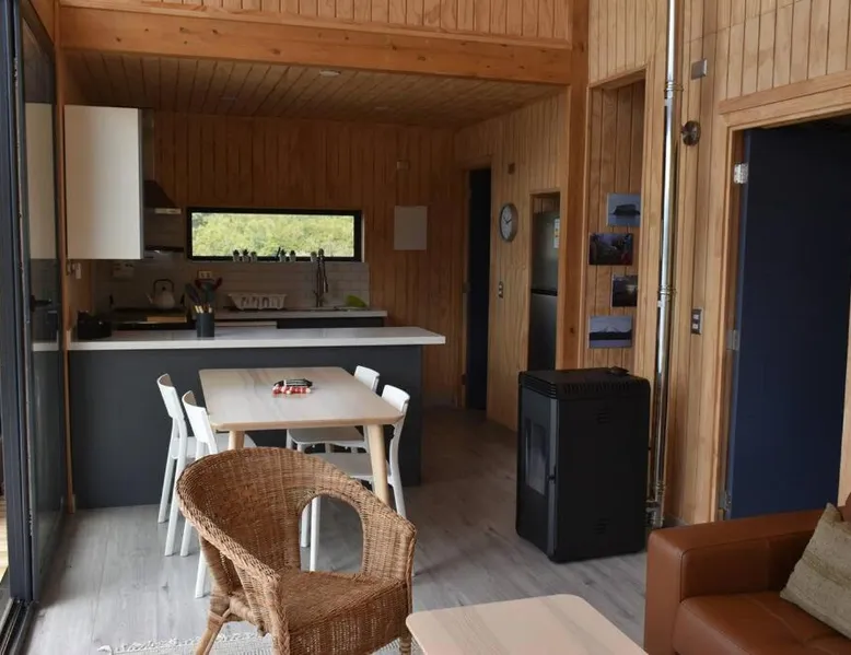 Comfortable Accommodations: Impressive Don Santiago Cabin in Chaiten offers two bedrooms and two bathrooms. The property features a spacious terrace, perfect for relaxation. Modern Amenities: Guests can enjoy a fully equipped kitchen with a refrigerator, dishwasher, oven, and tea and coffee maker. The living area includes a TV and private entrance. Convenient Location: Located 130 mi from Mocopulli Airport, the holiday home provides free on-site private parking. Reception staff speak English and Spanish. Highly rated by guests. In the kitchen, guests will find a refrigerator, a dishwasher and an oven. This holiday home features a private entrance, a tea and coffee maker, a flat-screen TV and a terrace. The unit offers 3 beds.