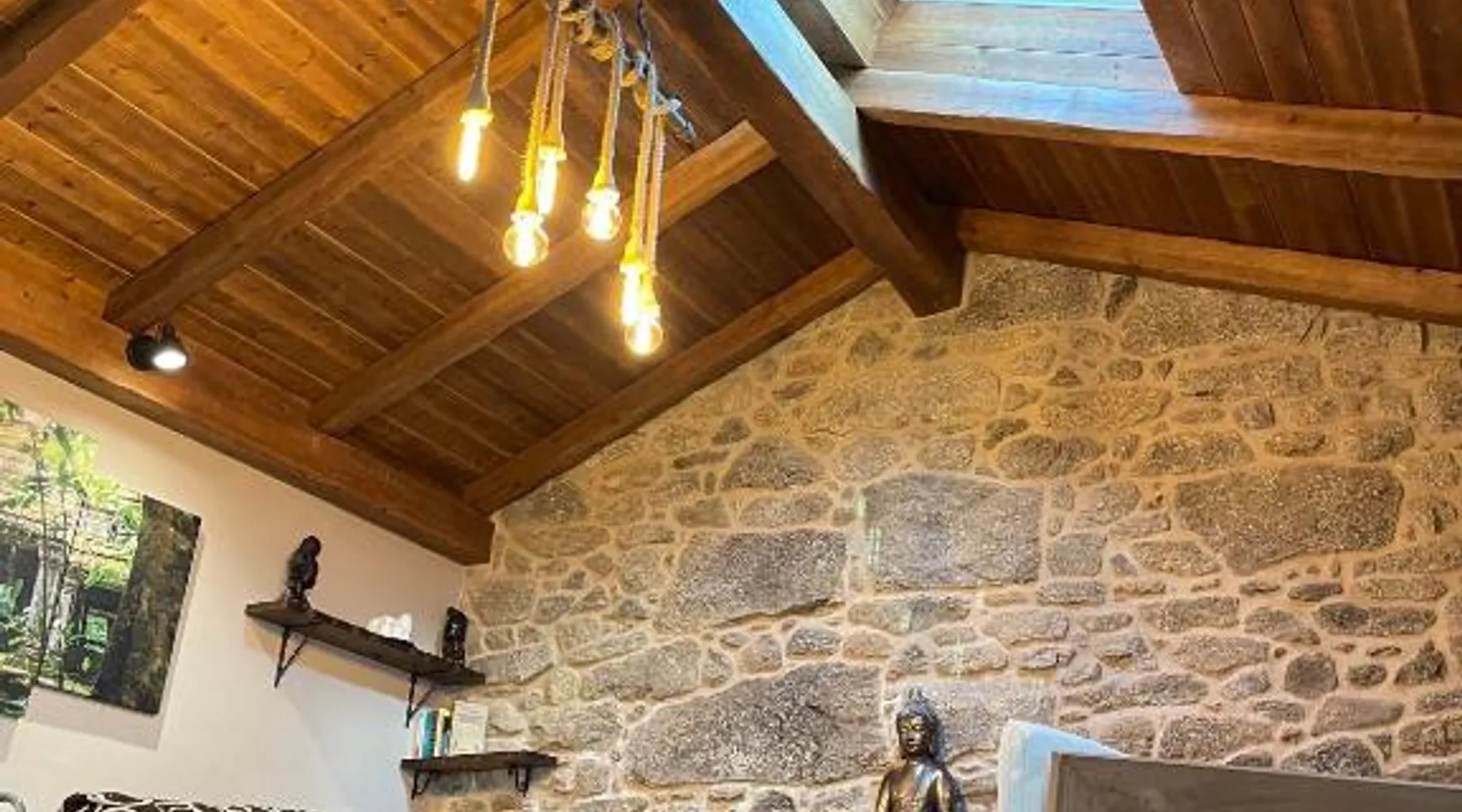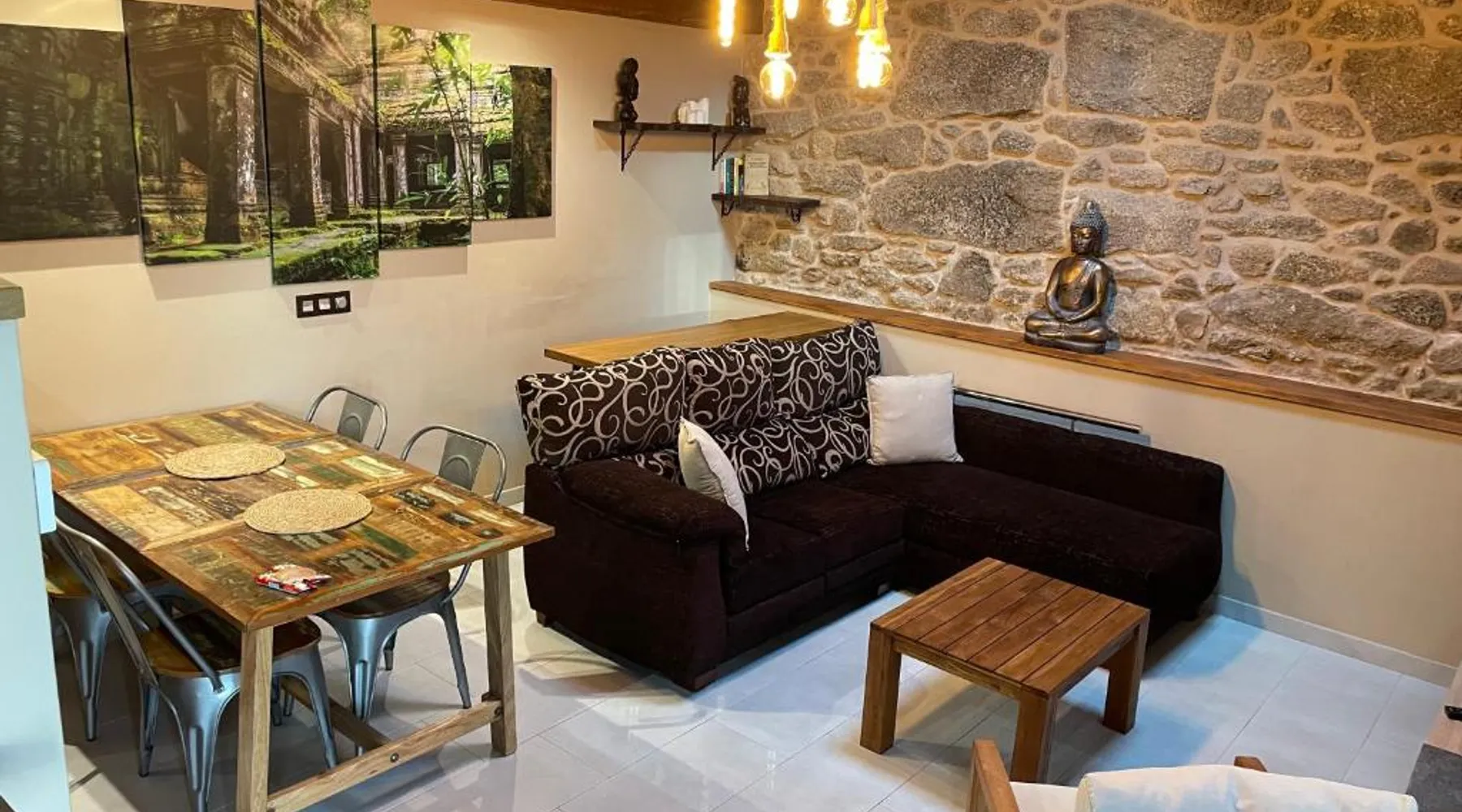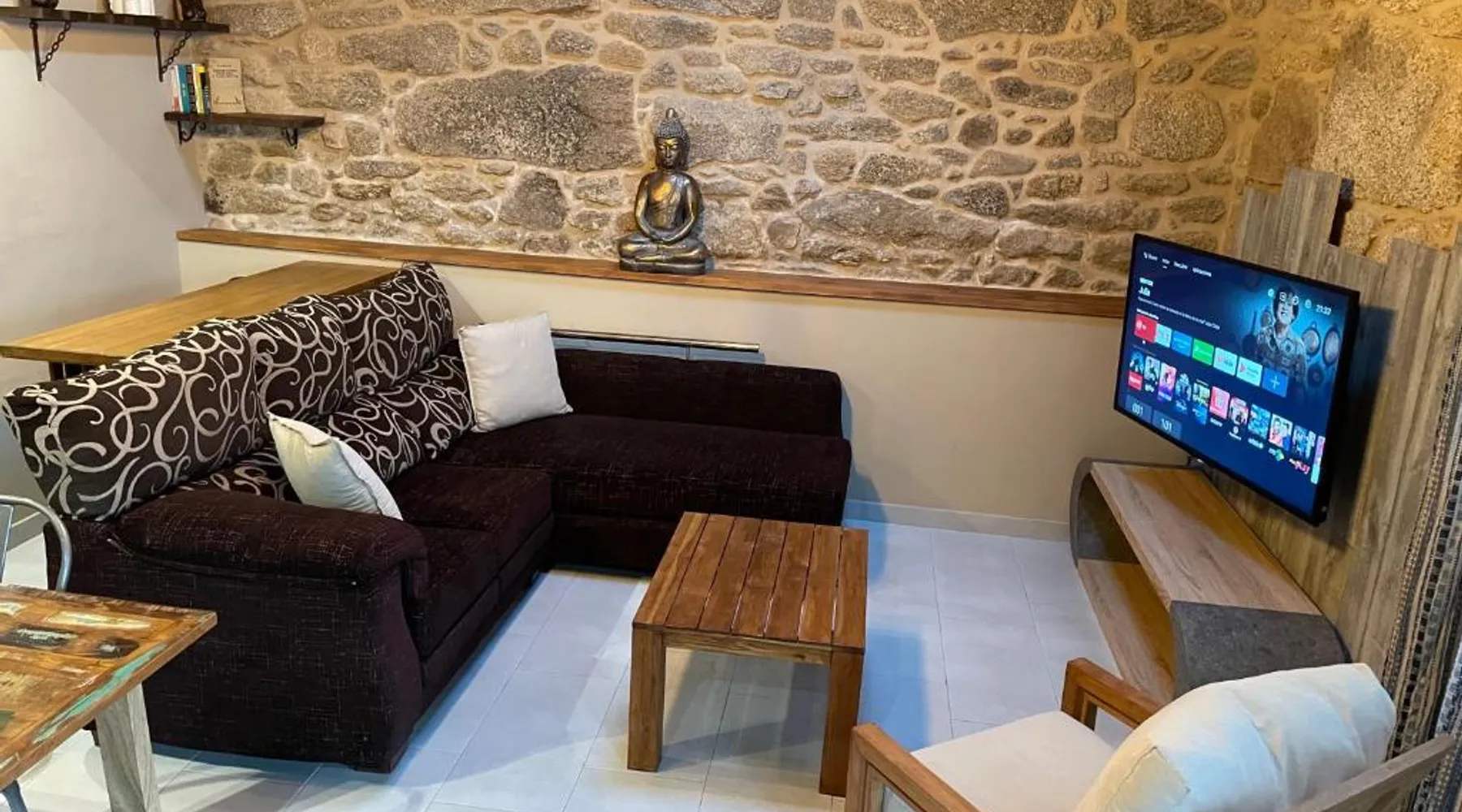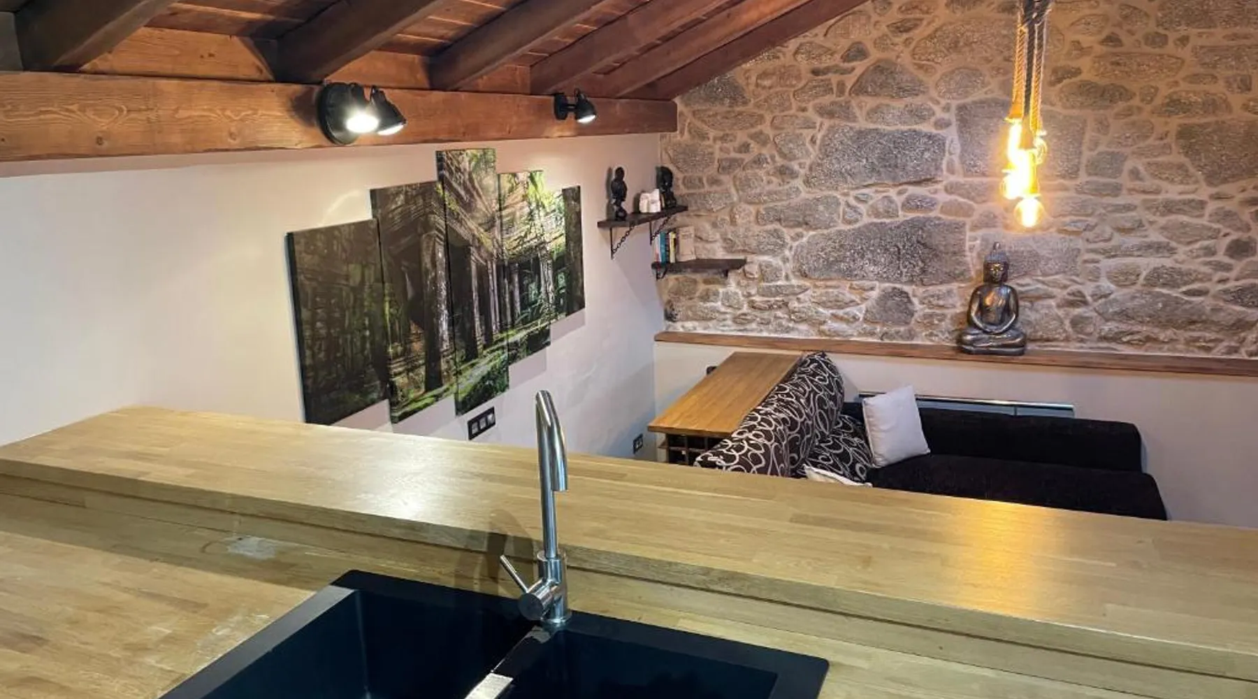 Comfortable Accommodations: Suleiro de Xusto in Carnota offers a holiday home with one bedroom and a bathroom. Guests enjoy sea views, air-conditioning, and a terrace. The ground-floor unit features a private entrance and garden views. Leisure Facilities: The property includes a sun terrace, garden, tennis court, and free WiFi. Additional amenities include an outdoor fireplace, solarium, and barbecue facilities. Free on-site private parking is available. Local Attractions: Praia Corna Becerra is a 15-minute walk away, while Ezaro Waterfall lies 3.7 mi from the property. Santiago de Compostela Airport is 52 mi distant. Activities such as fishing, bike tours, canoeing, hiking, and cycling are nearby. Guest Satisfaction: Highly rated for room comfort, cleanliness, and convenient location. Guests will find a stovetop, a refrigerator, kitchenware and an oven in the kitchen. The holiday home also comes with a barbecue. This air-conditioned holiday home is consisted of of a flat-screen TV with cable channels, a shared bathroom as well as a terrace with sea views. The unit has 1 bed.