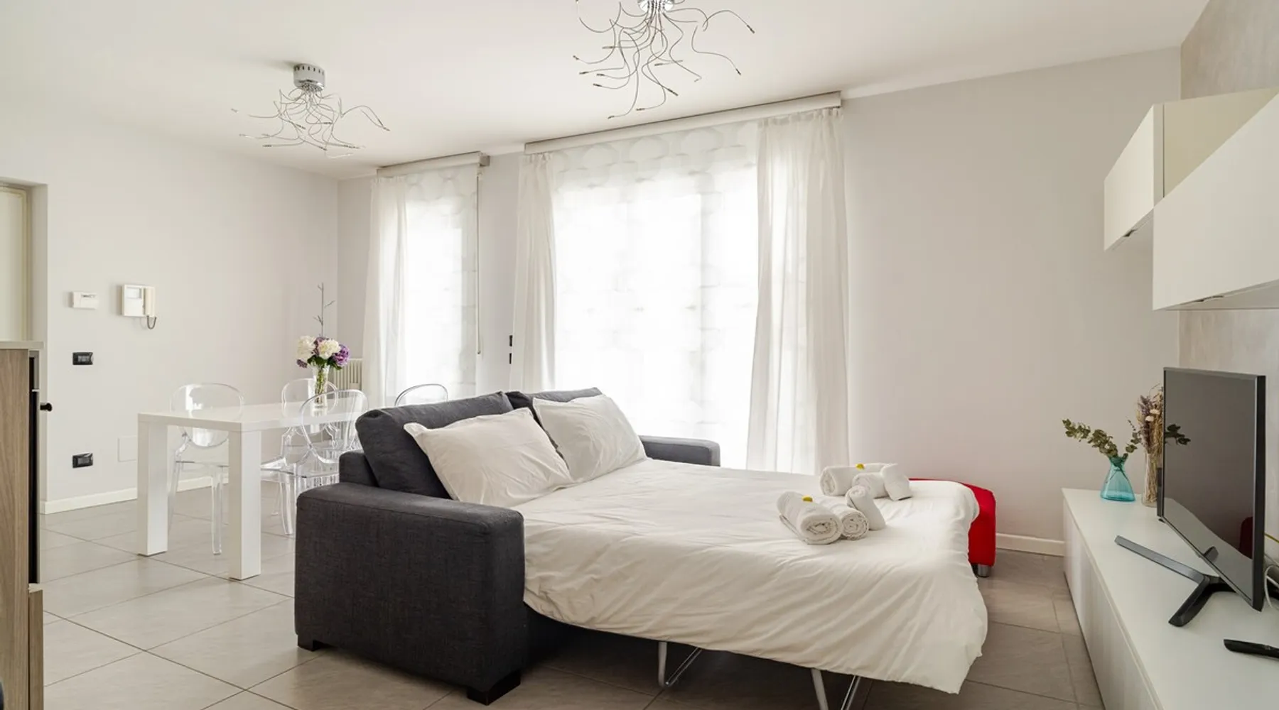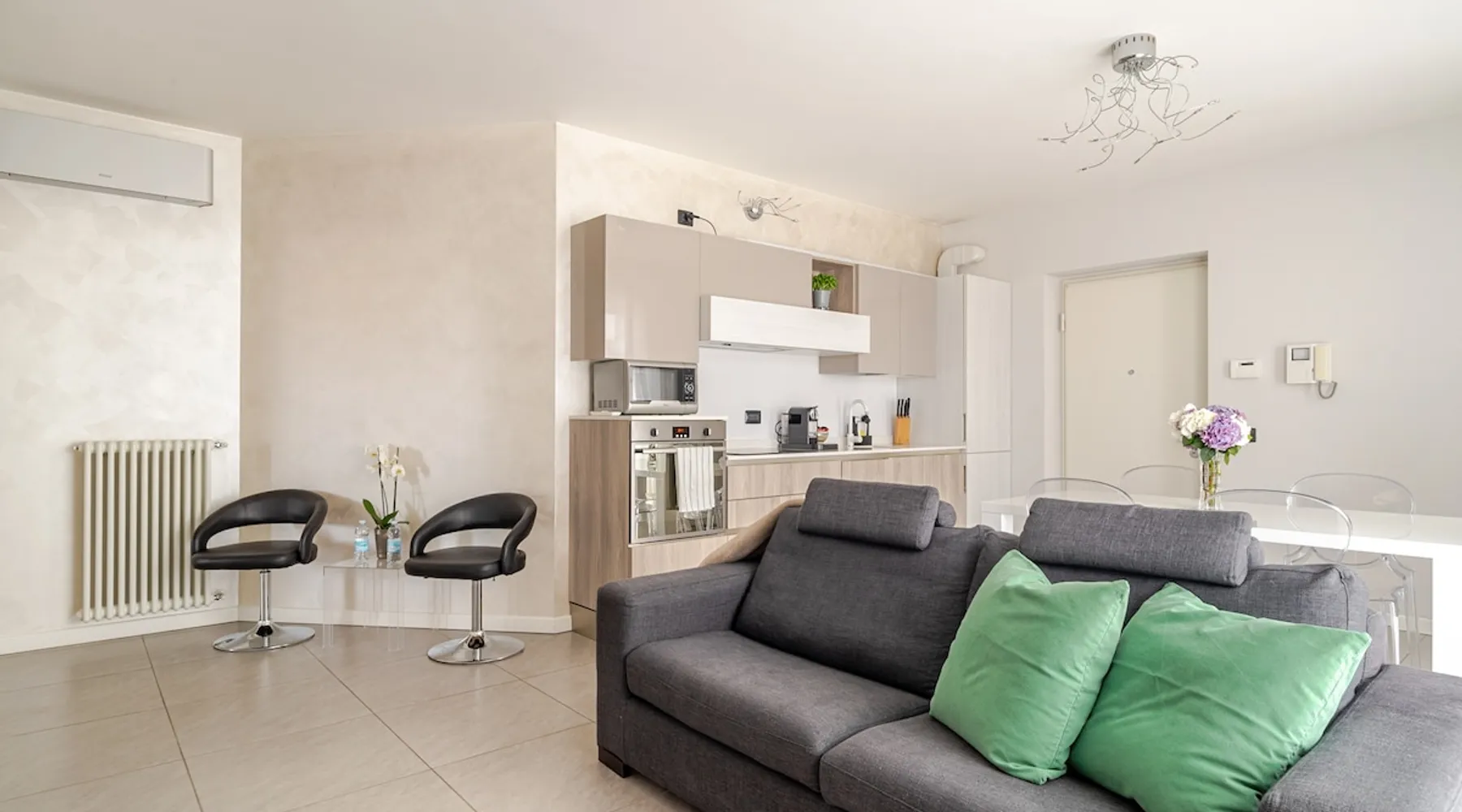 This spacious 73-square-meter one-bedroom apartment with terrace is located in a modern and elegant building on the second floor. Stylishly furnished, it offers all the comforts of a prestigious suite. The apartment features a 43” Smart TV by Samsung, high-speed fiber internet Wi-Fi, a hairdryer, a Nespresso coffee and cappuccino machine, microwave, and a fully equipped kitchen with all necessary appliances. Situated just steps away from the city center and the main shops and services. The space One bedroom apartment with king size bed (180x200),kitchen/living-room with sofa bed (160x195), bathroom, corridor, terrace and garage. Guest access Entire apartment Other things to note The strategic location of Dalmine Luxury Suite offers easy access to various attractions: * Only 2 km from the Dalmine highway exit, facilitating travel around the region. * Only 3.5 km from Le due torri shopping center. * 5 km from the San Marco Zingonia Polyclinic, making the apartment an ideal choice for those visiting the healthcare facility. * 7 km from Bergamo train station and Papa Giovanni XXIII Hospital, perfect for anyone with medical needs or in the city for business. * 9 km from Orio al Serio International Airport and Oriocenter shopping center, providing convenience during your travels. * 10 km from Minitalia Leolandia amusement park and Le Cornelle wildlife park, perfect for families and nature enthusiasts. * 14 km from Policlinico San Pietro, offering a convenient solution for those visiting this medical facility. * 27 km from the renowned Qc Terme di San Pellegrino, for a relaxing and wellness experience. Choose Dalmine Luxury Suite for a stay of luxury and comfort, immersed in the enchanting setting of Bergamo. Registration Details IT016091C2E8309HGP