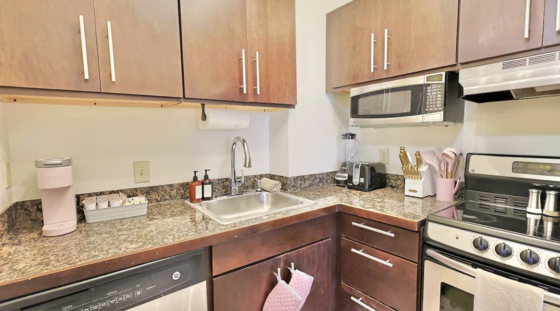 Embrace the bright side of life in this Floral - Dolly inspired midtown studio suite! Features include a queen sized bed, brand new furnishings, and fully stocked essentials while being just a short walk from the vibrant Old City, Gay Street, and Market Square. ~ Free Parking ~ Minutes From Crafty Bastard Brewery ~ Walk to Old City & Downtown Knoxville ~ Secure building with resident only access The space The Patterson building is an antique building of Knoxville's expansive industrial era and holds loads of historical character of Knoxville's glory days. This studio is located on the 2nd floor of the building with indoor and outdoor stair access. Serving as a stylish spot for business trips or a fun, friends getaway, guests have ample space for working, dining, and cooking with the well thought out layout of maximizing this space with everything needed for a successful stay. * (1) Comfortable Queen Sized Bed * Free Parking or Free Street Parking * 43" Smart TV with Netflix, Prime, HBO and more * Basic cooking essentials * Full Sized Dining area / Working Space * Large Stylish Sofa Guest access The building is home to multiple residents. Guests will have access to their own private 2nd floor studio. Other things to note IMPORTANT NOTICE: Guests will be provided a link to our Guest Portal to complete within the first 48 hours after booking to verify booking details. For any questions regarding the Guest Portal feel free to send us a message. ALL RESERVATION CHANGES OR CANCELLATIONS are best completed within the FIRST 48 HOURS after confirmed booking. All guests please take into consideration our strict cancellation policy. If there is a chance you would need to cancel your reservation it may benefit you to purchase travel insurance to insure you receive your desires reimbursement. Halo Hospitality is NOT responsible for insuring our guests. The area may have homeless individuals occasionally passing through or nearby. While it hasn’t posed any issues for past guests, we always want to be transparent so you can make the best decision for your comfort. Please feel free to reach out if you have any questions or concerns.