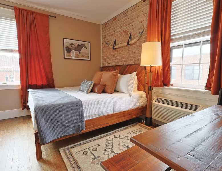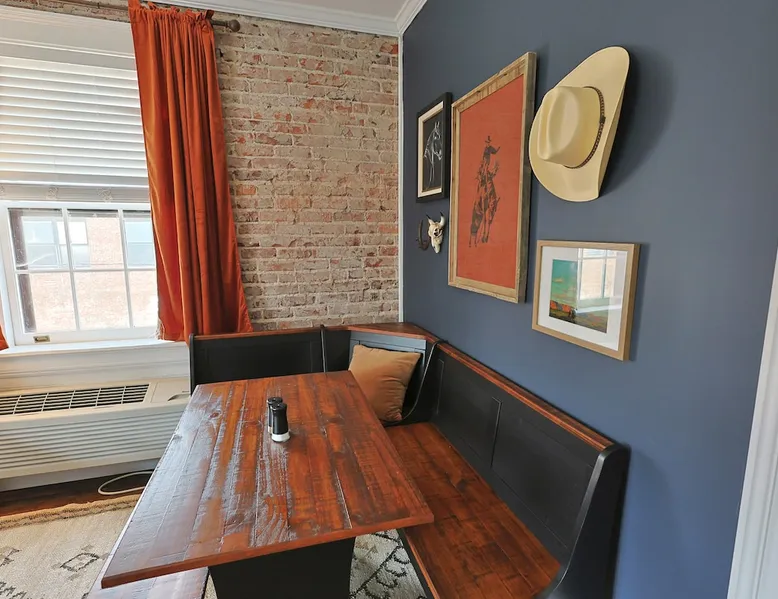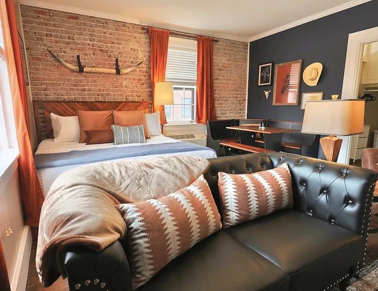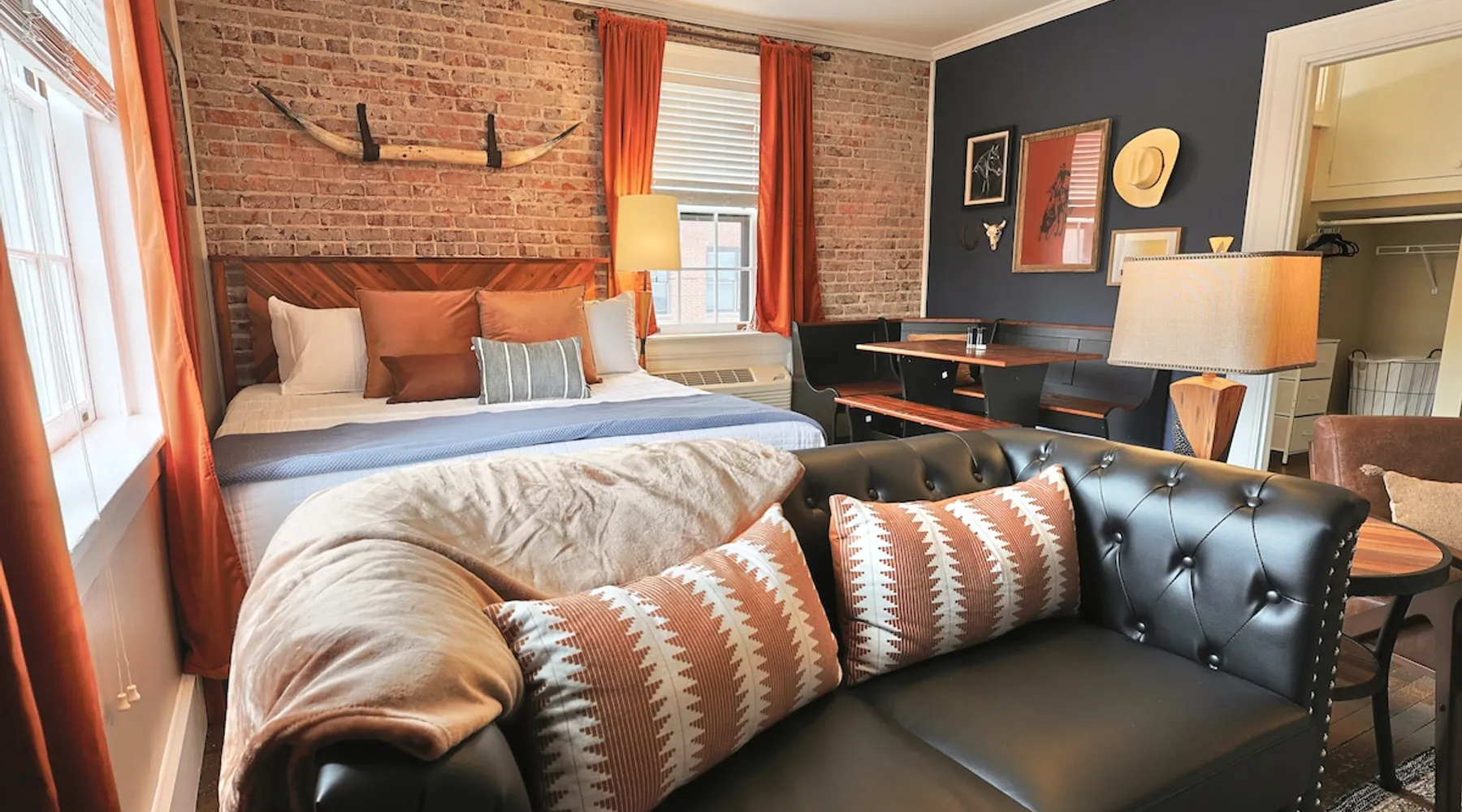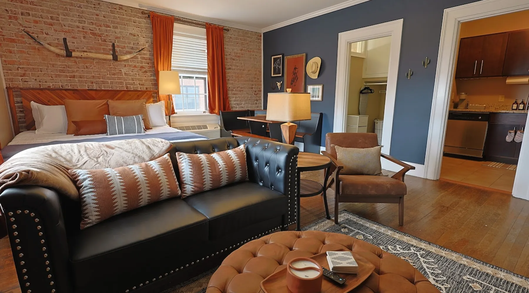 Premium quality with adventurous style are the key details that make this ranch style suite a top notch stay for a quick or long get away to Knoxville. Features include a king sized bed, brand new furnishings, and fully stocked essentials while being just a short walk from the vibrant Old City, Gay Street, and Market Square. ~ Free Parking ~ Minutes From Crafty Bastard Brewery ~ Walk to Old City & Downtown Knoxville ~ Secure building with resident only access The space The Patterson building is an antique building of Knoxville's expansive industrial era and holds loads of historical character of Knoxville's glory days. This studio is located on the 2nd floor of the building with indoor and outdoor stair access. Serving as a stylish spot for business trips or a couples getaway, guests have ample space for working, dining, and cooking with the well thought out layout of maximizing this space with everything needed for a successful stay. * (1) Comfortable King Sized Bed * Free Parking or Free Street Parking * 43" Smart TV with Netflix, Prime, HBO and more * Basic cooking essentials * Full Sized Dining area / Working Space * Loveseat & Accent chair Guest access The building is home to multiple residents. Guests will have access to their own private 2nd floor studio. Other things to note IMPORTANT NOTICE: Guests will be provided a link to our Guest Portal to complete within the first 48 hours after booking to verify booking details. For any questions regarding the Guest Portal feel free to send us a message. ALL RESERVATION CHANGES OR CANCELLATIONS are best completed within the FIRST 48 HOURS after confirmed booking. All guests please take into consideration our strict cancellation policy. If there is a chance you would need to cancel your reservation it may benefit you to purchase travel insurance to insure you receive your desires reimbursement. Halo Hospitality is NOT responsible for insuring our guests. The area may have homeless individuals occasionally passing through or nearby. While it hasn’t posed any issues for past guests, we always want to be transparent so you can make the best decision for your comfort. Please feel free to reach out if you have any questions or concerns.