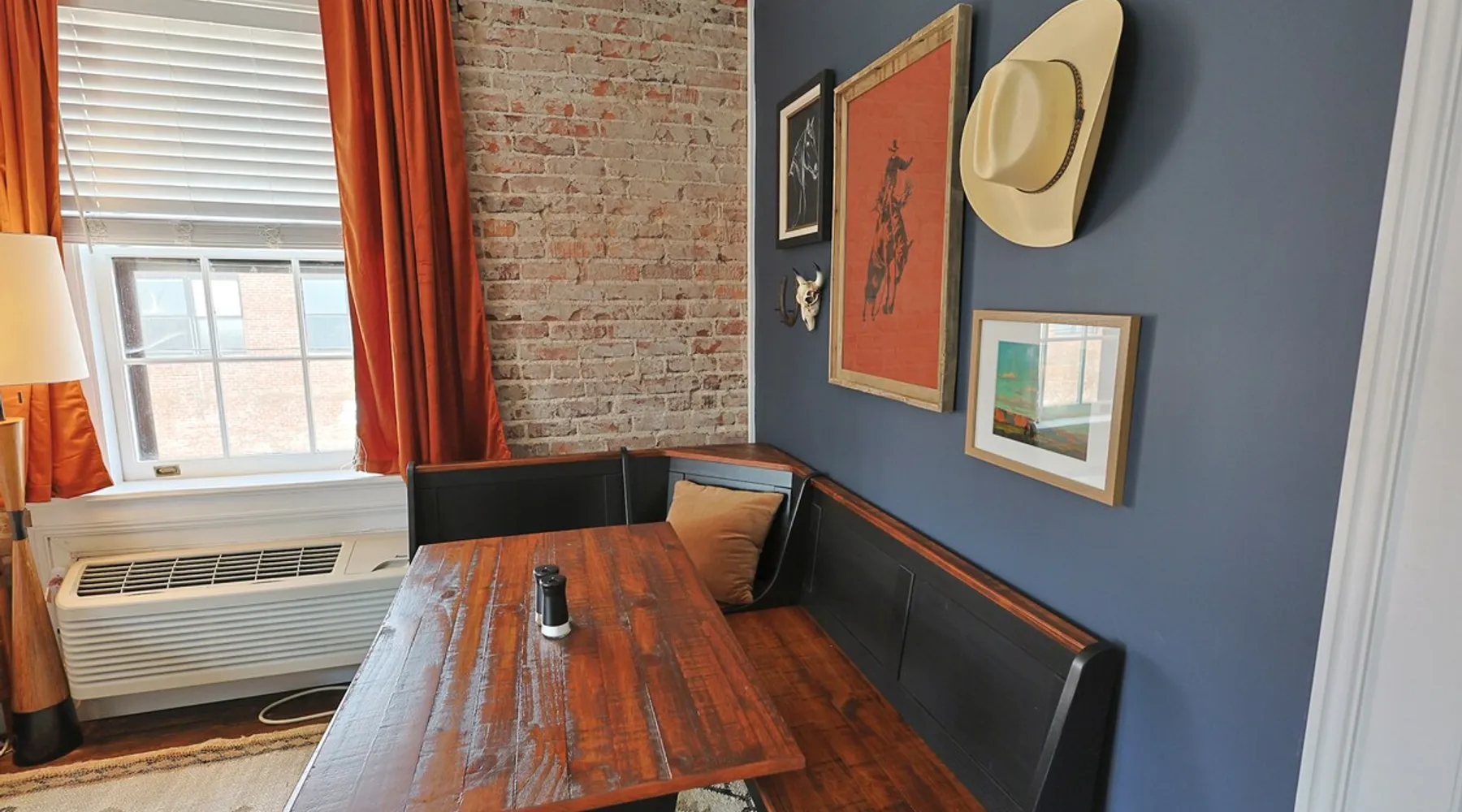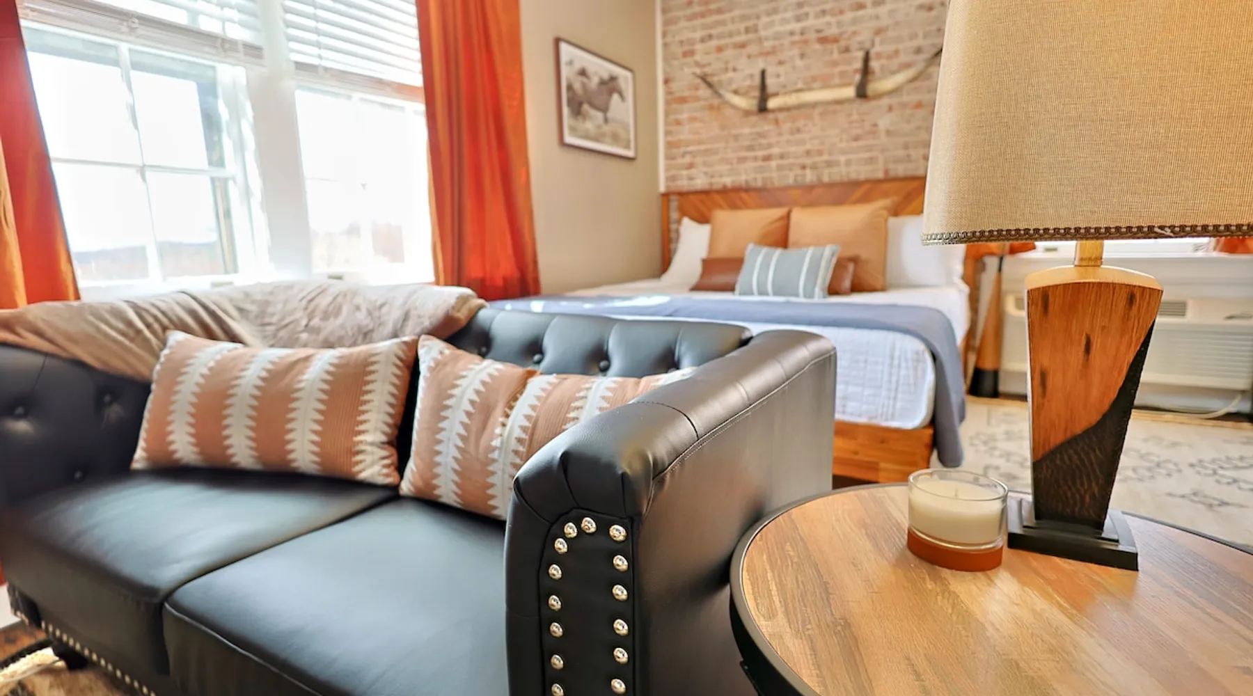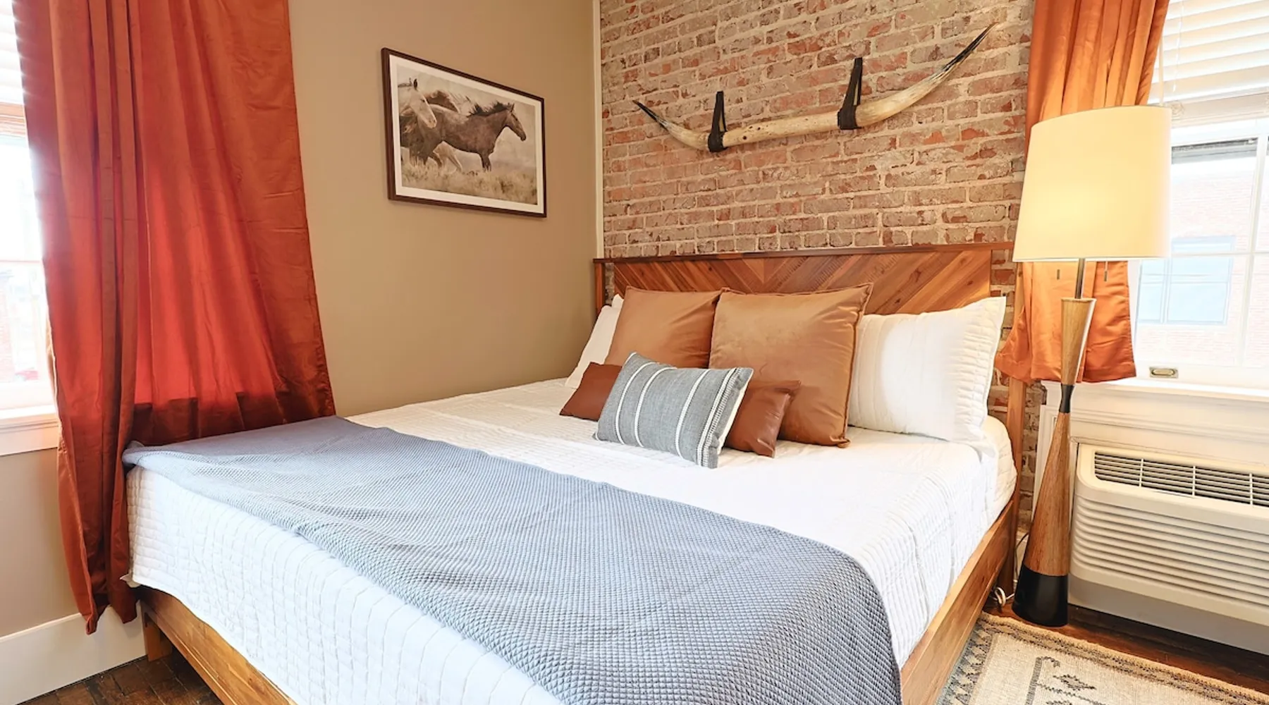 Premium quality with adventurous style are the key details that make this ranch style suite a top notch stay for a quick or long get away to Knoxville. Features include a king sized bed, brand new furnishings, and fully stocked essentials while being just a short walk from the vibrant Old City, Gay Street, and Market Square. ~ Free Parking ~ Minutes From Crafty Bastard Brewery ~ Walk to Old City & Downtown Knoxville ~ Secure building with resident only access The space The Patterson building is an antique building of Knoxville's expansive industrial era and holds loads of historical character of Knoxville's glory days. This studio is located on the 2nd floor of the building with indoor and outdoor stair access. Serving as a stylish spot for business trips or a couples getaway, guests have ample space for working, dining, and cooking with the well thought out layout of maximizing this space with everything needed for a successful stay. * (1) Comfortable King Sized Bed * Free Parking or Free Street Parking * 43" Smart TV with Netflix, Prime, HBO and more * Basic cooking essentials * Full Sized Dining area / Working Space * Loveseat & Accent chair Guest access The building is home to multiple residents. Guests will have access to their own private 2nd floor studio. Other things to note IMPORTANT NOTICE: Guests will be provided a link to our Guest Portal to complete within the first 48 hours after booking to verify booking details. For any questions regarding the Guest Portal feel free to send us a message. ALL RESERVATION CHANGES OR CANCELLATIONS are best completed within the FIRST 48 HOURS after confirmed booking. All guests please take into consideration our strict cancellation policy. If there is a chance you would need to cancel your reservation it may benefit you to purchase travel insurance to insure you receive your desires reimbursement. Halo Hospitality is NOT responsible for insuring our guests. The area may have homeless individuals occasionally passing through or nearby. While it hasn’t posed any issues for past guests, we always want to be transparent so you can make the best decision for your comfort. Please feel free to reach out if you have any questions or concerns.