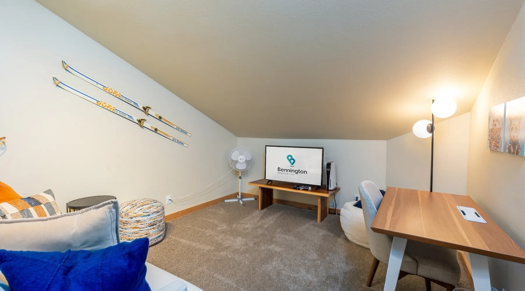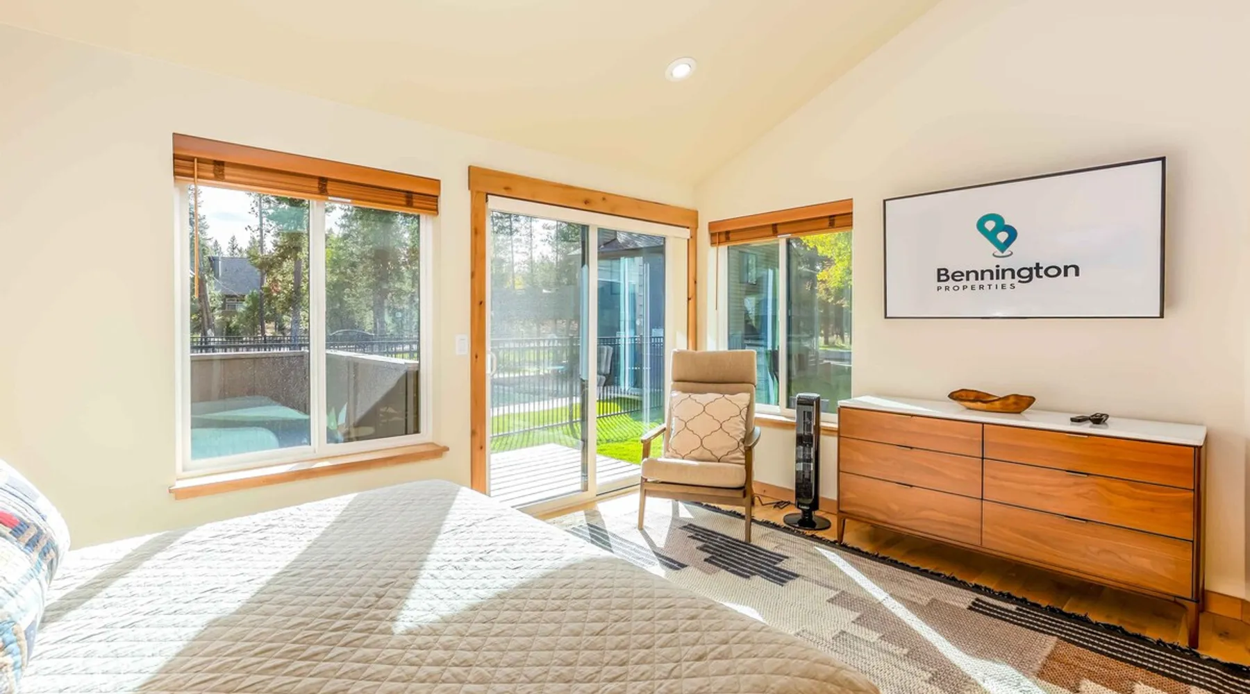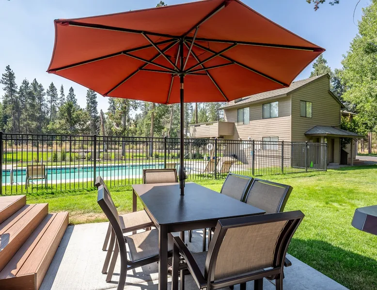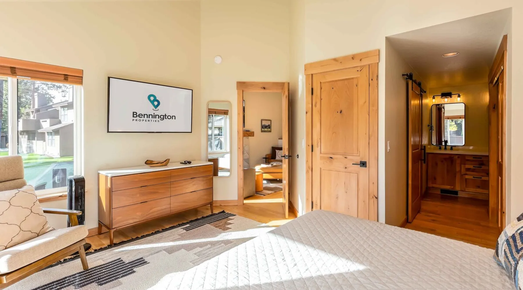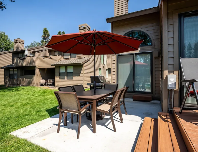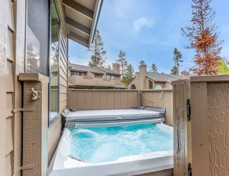 Nestled in the beautiful Sunriver, Oregon, this charming condo offers a comfortable and convenient retreat for your vacation. With a variety of sleeping arrangements including a king bedroom, queen bedroom, and two twins, this home is perfect for families or groups of friends. Enjoy your favorite shows as you unwind in front of the fireplace after a day of exploring the area. The space Looking for a Fairway Village Condo? This is one of the largest units in Fairway Village with over 1500 Sq. Ft of living space. This thoughtfully decorated condo gives a sense of charm from the moment you step on to the porch, with cozy seating to welcome you. As you enter the home you'll notice the vaulted ceilings, natural light and charming art in the great room layout. The living room has a new gas fireplace, wine fridge and large TV and is adjacent to the dining area and kitchen where you'll enjoy stainless steel appliances, and all the tools you'll need to whip up a gourmet masterpiece. The spacious ensuite bedroom is on the first floor with large bathroom, tile counter tops, tile shower and access out to the hot tub and swimming pool from this bedroom. A second bedroom featuring two twin beds and work station, completes this level Head upstairs to find he second ensuite bedroom with queen sized bed and attached full bathroom. When you're looking for a spot to chill after a long day of adventuring in Sunriver, check out the bonus room with a workstation, large tv, PlayStation and sleeper sofa. All bedrooms have smart TVs for your streaming apps. This home has a single car garage with sauna and, a great outdoor living space with a new concrete patio overlooking the swimming pool. Also available for you to enjoy are six adult cruiser-style bikes. Planning a family reunion or group get together? Reserve this home along with Fairway Village 3, Fairway Village 15 and Fairway Village 27. Other things to note AGE RESTRICTIONS: Guests must be 23 years or older to rent Bennington homes and the person reserving must occupy the home the whole reservation.