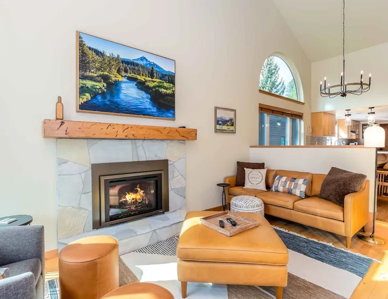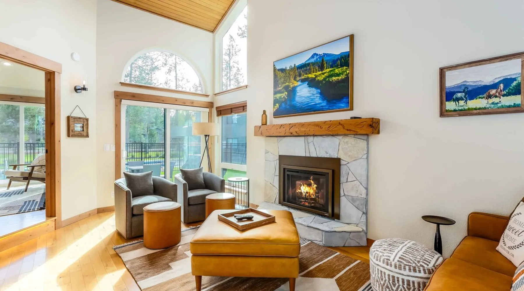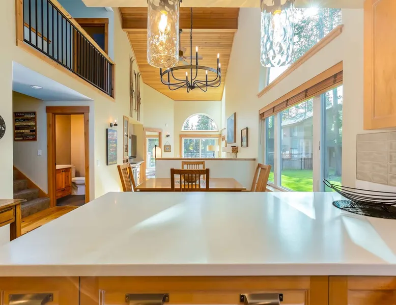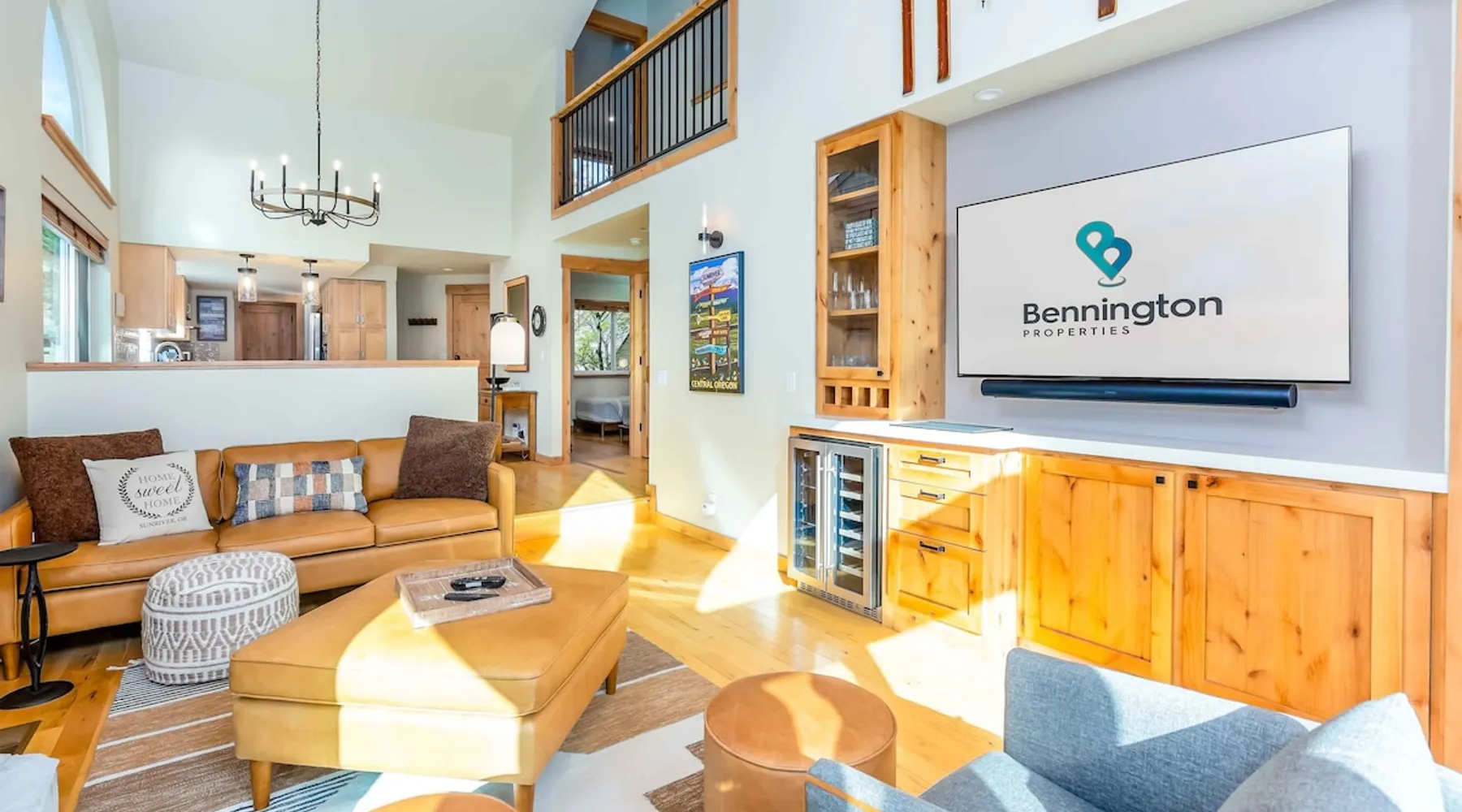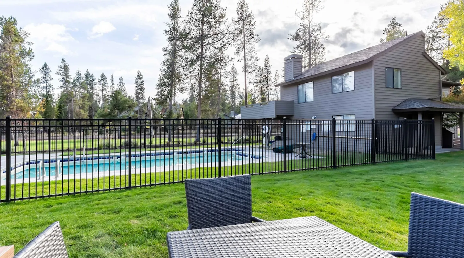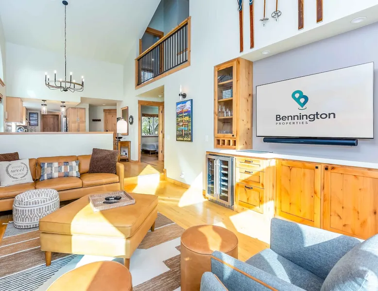 Nestled in the beautiful Sunriver, Oregon, this charming condo offers a comfortable and convenient retreat for your vacation. With a variety of sleeping arrangements including a king bedroom, queen bedroom, and two twins, this home is perfect for families or groups of friends. Enjoy your favorite shows as you unwind in front of the fireplace after a day of exploring the area. The space Looking for a Fairway Village Condo? This is one of the largest units in Fairway Village with over 1500 Sq. Ft of living space. This thoughtfully decorated condo gives a sense of charm from the moment you step on to the porch, with cozy seating to welcome you. As you enter the home you'll notice the vaulted ceilings, natural light and charming art in the great room layout. The living room has a new gas fireplace, wine fridge and large TV and is adjacent to the dining area and kitchen where you'll enjoy stainless steel appliances, and all the tools you'll need to whip up a gourmet masterpiece. The spacious ensuite bedroom is on the first floor with large bathroom, tile counter tops, tile shower and access out to the hot tub and swimming pool from this bedroom. A second bedroom featuring two twin beds and work station, completes this level Head upstairs to find he second ensuite bedroom with queen sized bed and attached full bathroom. When you're looking for a spot to chill after a long day of adventuring in Sunriver, check out the bonus room with a workstation, large tv, PlayStation and sleeper sofa. All bedrooms have smart TVs for your streaming apps. This home has a single car garage with sauna and, a great outdoor living space with a new concrete patio overlooking the swimming pool. Also available for you to enjoy are six adult cruiser-style bikes. Planning a family reunion or group get together? Reserve this home along with Fairway Village 3, Fairway Village 15 and Fairway Village 27. Other things to note AGE RESTRICTIONS: Guests must be 23 years or older to rent Bennington homes and the person reserving must occupy the home the whole reservation.