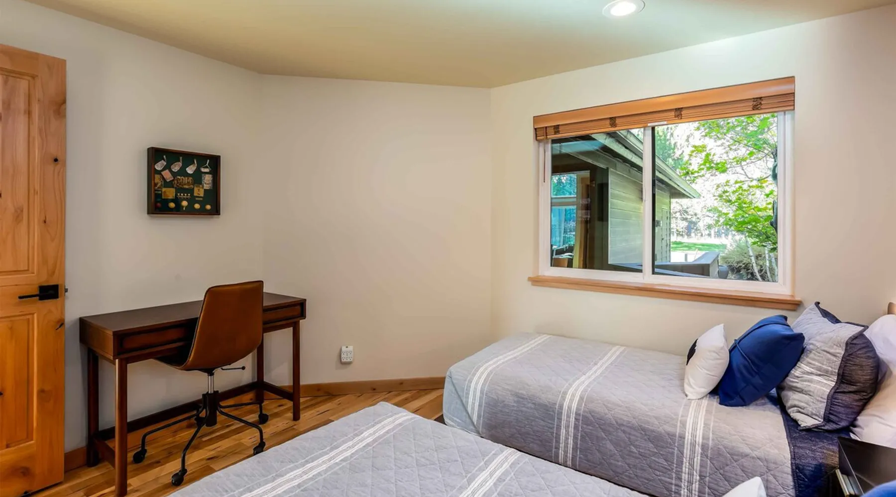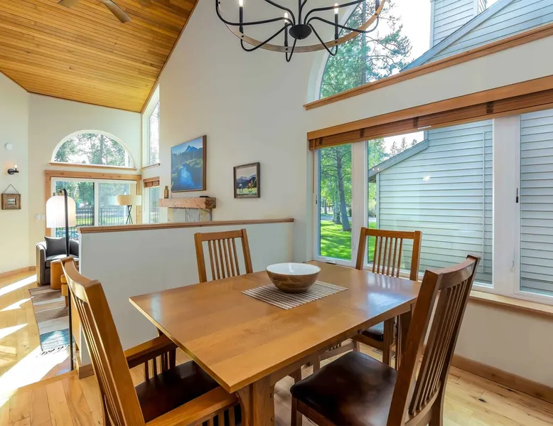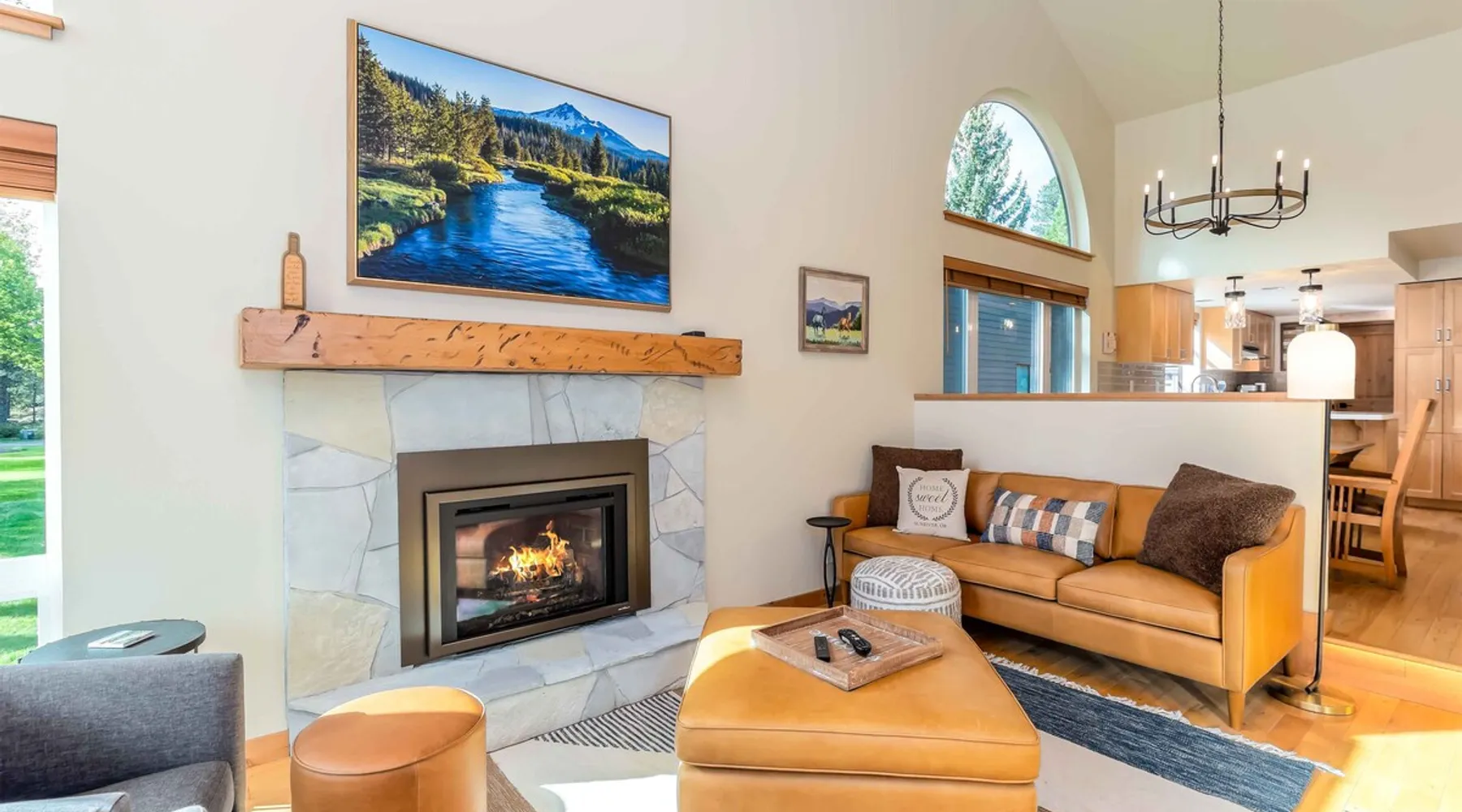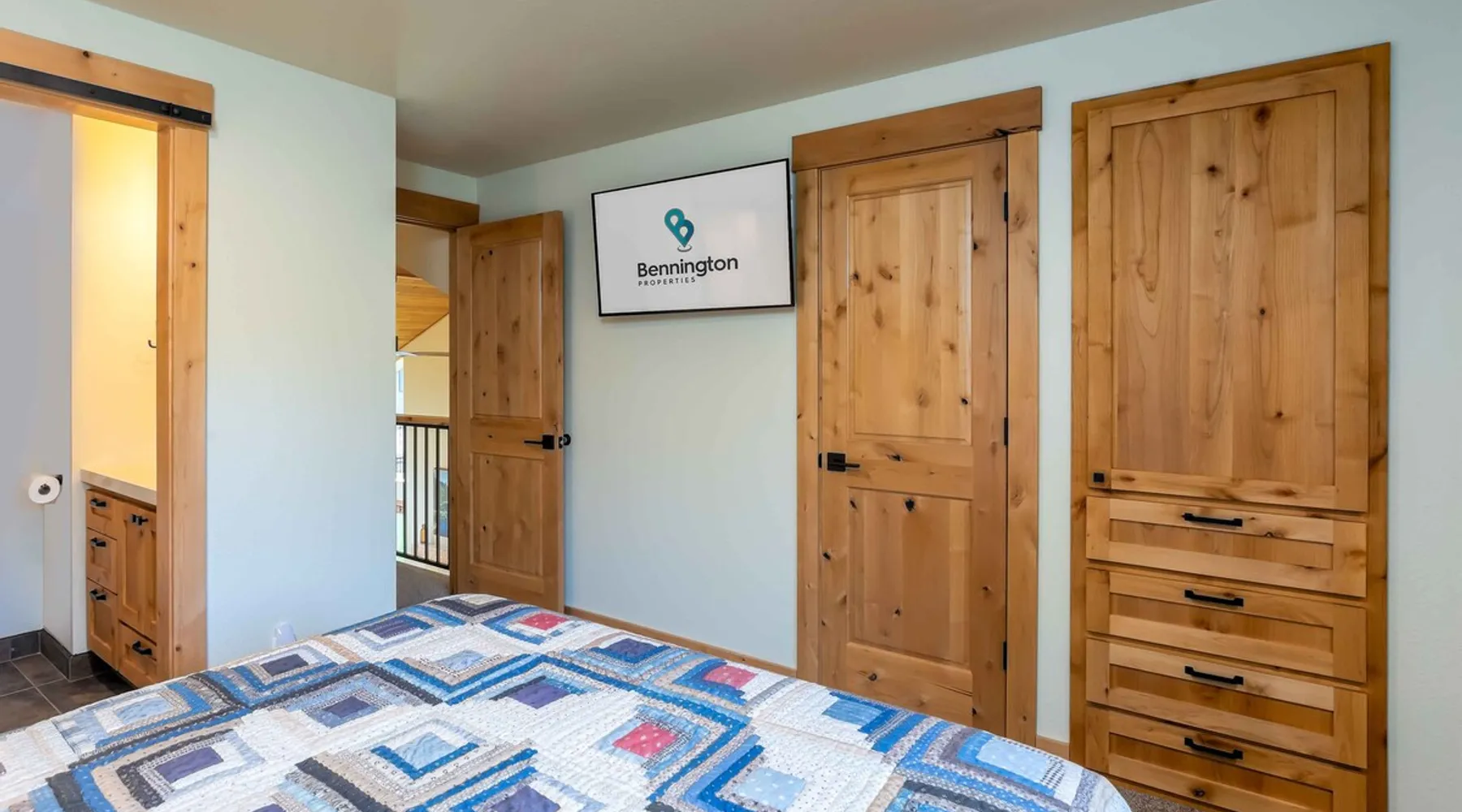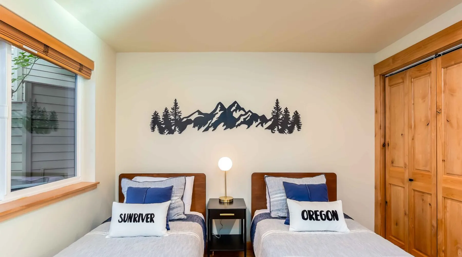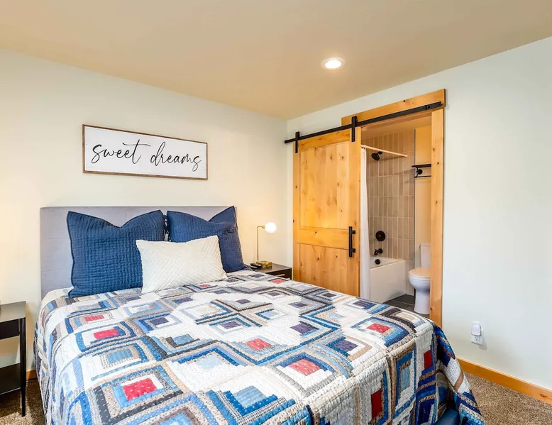 Nestled in the beautiful Sunriver, Oregon, this charming condo offers a comfortable and convenient retreat for your vacation. With a variety of sleeping arrangements including a king bedroom, queen bedroom, and two twins, this home is perfect for families or groups of friends. Enjoy your favorite shows as you unwind in front of the fireplace after a day of exploring the area. The space Looking for a Fairway Village Condo? This is one of the largest units in Fairway Village with over 1500 Sq. Ft of living space. This thoughtfully decorated condo gives a sense of charm from the moment you step on to the porch, with cozy seating to welcome you. As you enter the home you'll notice the vaulted ceilings, natural light and charming art in the great room layout. The living room has a new gas fireplace, wine fridge and large TV and is adjacent to the dining area and kitchen where you'll enjoy stainless steel appliances, and all the tools you'll need to whip up a gourmet masterpiece. The spacious ensuite bedroom is on the first floor with large bathroom, tile counter tops, tile shower and access out to the hot tub and swimming pool from this bedroom. A second bedroom featuring two twin beds and work station, completes this level Head upstairs to find he second ensuite bedroom with queen sized bed and attached full bathroom. When you're looking for a spot to chill after a long day of adventuring in Sunriver, check out the bonus room with a workstation, large tv, PlayStation and sleeper sofa. All bedrooms have smart TVs for your streaming apps. This home has a single car garage with sauna and, a great outdoor living space with a new concrete patio overlooking the swimming pool. Also available for you to enjoy are six adult cruiser-style bikes. Planning a family reunion or group get together? Reserve this home along with Fairway Village 3, Fairway Village 15 and Fairway Village 27. Other things to note AGE RESTRICTIONS: Guests must be 23 years or older to rent Bennington homes and the person reserving must occupy the home the whole reservation.