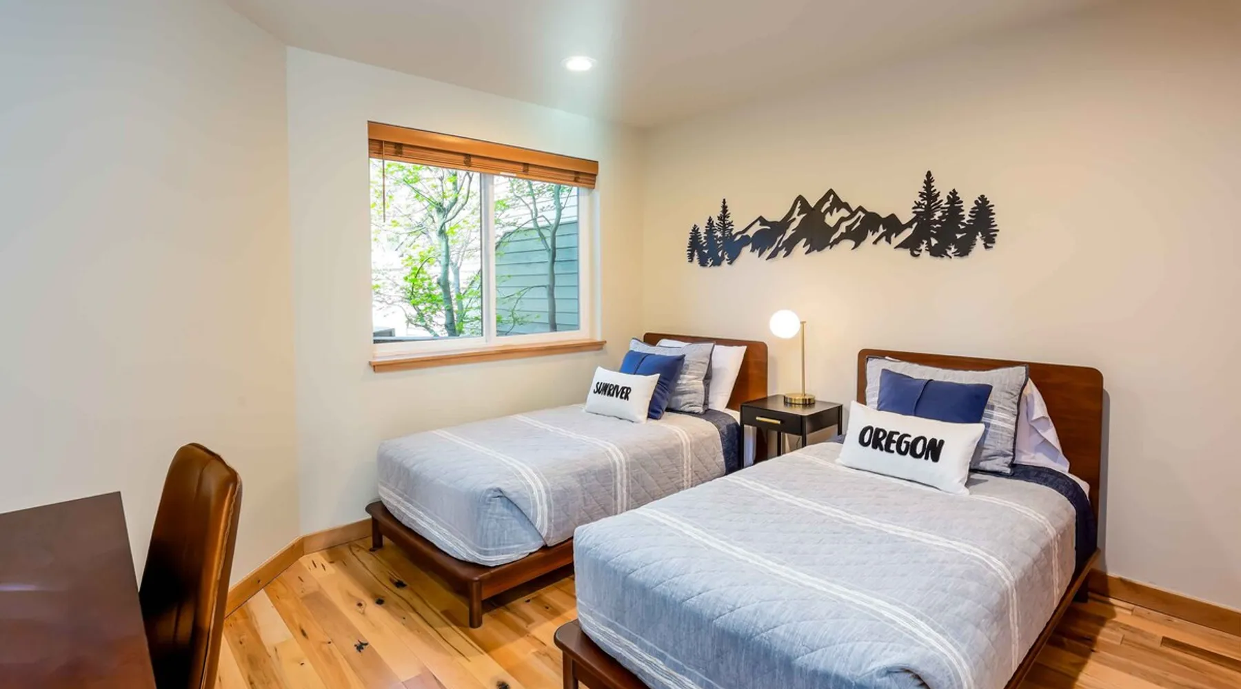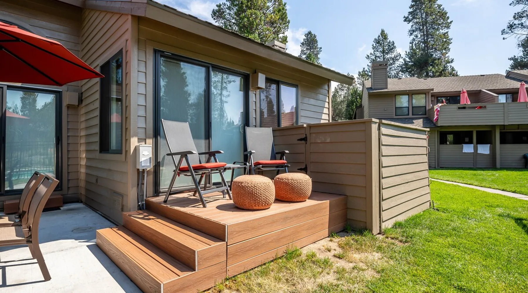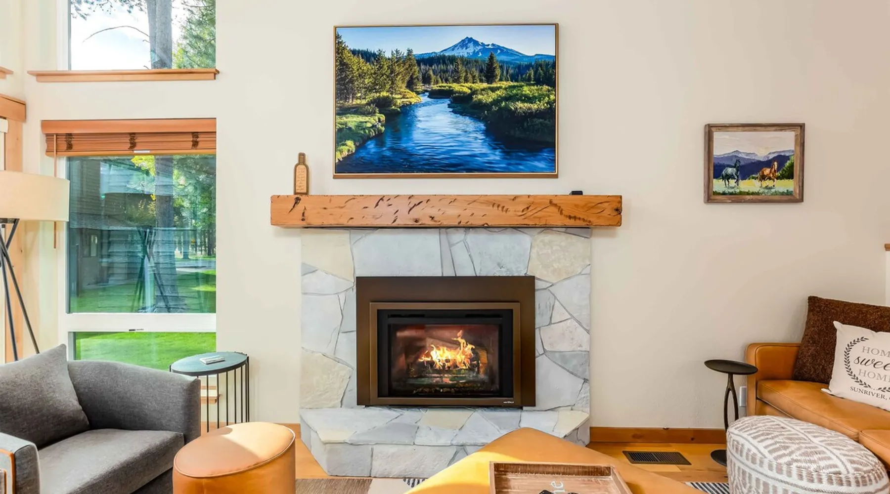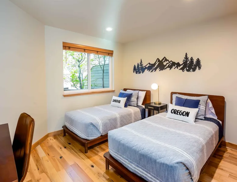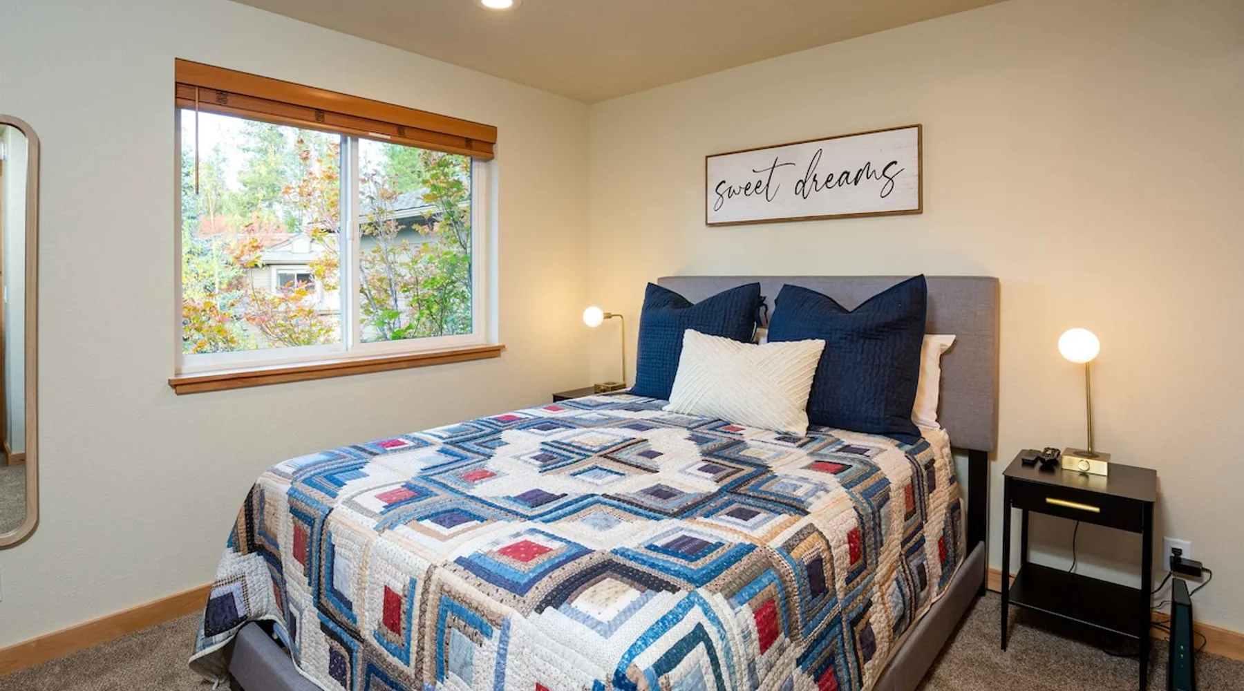Nestled in the beautiful Sunriver, Oregon, this charming condo offers a comfortable and convenient retreat for your vacation. With a variety of sleeping arrangements including a king bedroom, queen bedroom, and two twins, this home is perfect for families or groups of friends. Enjoy your favorite shows as you unwind in front of the fireplace after a day of exploring the area. The space Looking for a Fairway Village Condo? This is one of the largest units in Fairway Village with over 1500 Sq. Ft of living space. This thoughtfully decorated condo gives a sense of charm from the moment you step on to the porch, with cozy seating to welcome you. As you enter the home you'll notice the vaulted ceilings, natural light and charming art in the great room layout. The living room has a new gas fireplace, wine fridge and large TV and is adjacent to the dining area and kitchen where you'll enjoy stainless steel appliances, and all the tools you'll need to whip up a gourmet masterpiece. The spacious ensuite bedroom is on the first floor with large bathroom, tile counter tops, tile shower and access out to the hot tub and swimming pool from this bedroom. A second bedroom featuring two twin beds and work station, completes this level Head upstairs to find he second ensuite bedroom with queen sized bed and attached full bathroom. When you're looking for a spot to chill after a long day of adventuring in Sunriver, check out the bonus room with a workstation, large tv, PlayStation and sleeper sofa. All bedrooms have smart TVs for your streaming apps. This home has a single car garage with sauna and, a great outdoor living space with a new concrete patio overlooking the swimming pool. Also available for you to enjoy are six adult cruiser-style bikes. Planning a family reunion or group get together? Reserve this home along with Fairway Village 3, Fairway Village 15 and Fairway Village 27. Other things to note AGE RESTRICTIONS: Guests must be 23 years or older to rent Bennington homes and the person reserving must occupy the home the whole reservation.
