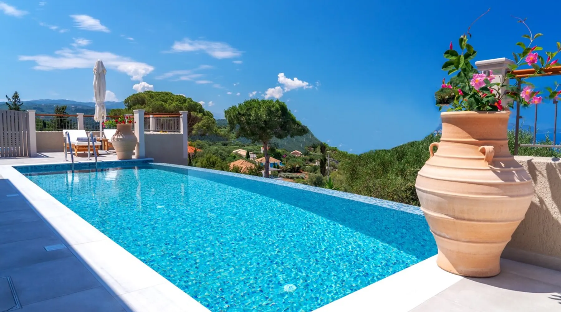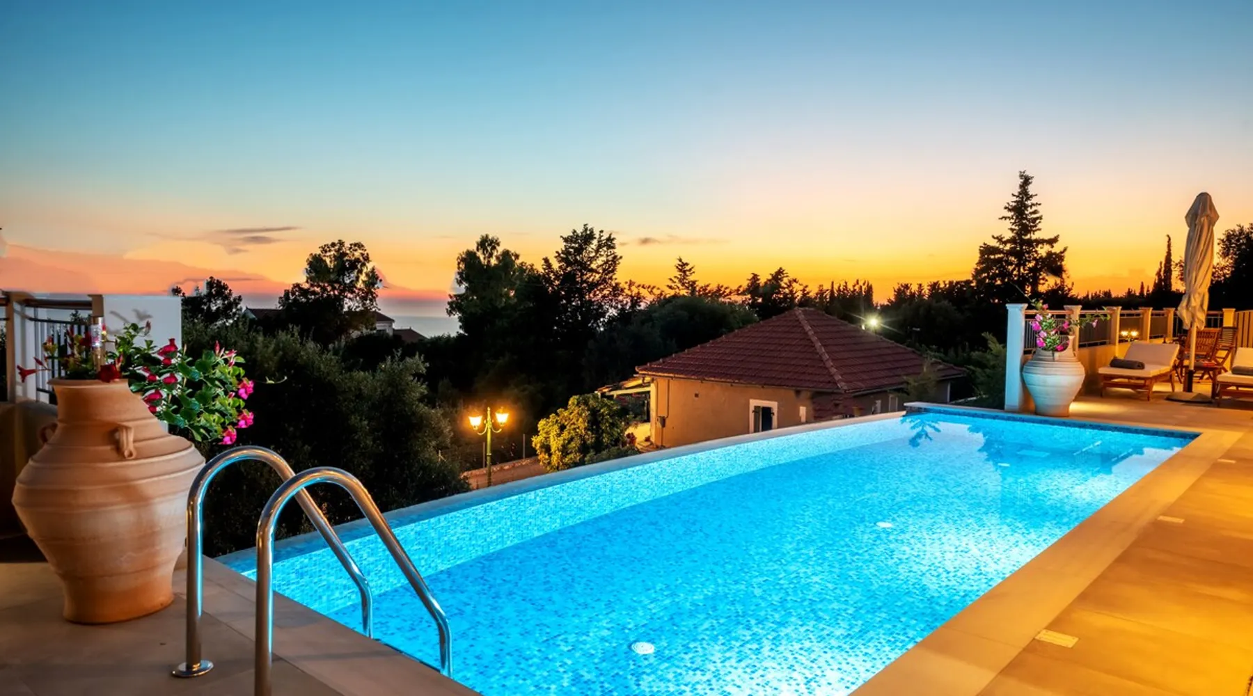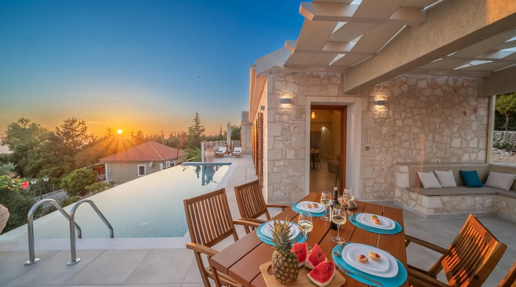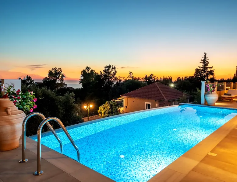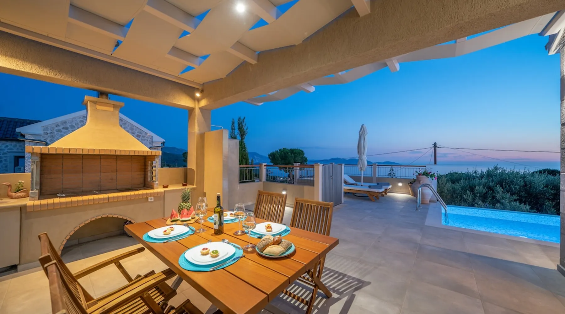 Pithari Sunset Villa is located on the edge of Tzaramelata, an unspoilt hamlet with beaches, services and beautiful walking trails on the doorstep. Boasting stunning panoramic views from the beautiful terrace and infinity pool, this two bedroomed luxurious villa is close to Fiskardo, with it's picturesque harbour and plethora of restaurants, activities and amenities. The space Pithari Sunset Villa is located on the edge of Tzaramelata, an unspoilt hamlet with beaches, services and beautiful walking trails on the doorstep. Boasting stunning panoramic views from the beautiful terrace and infinity pool, this two bedroomed luxurious villa is close to Fiskardo, with it's picturesque harbour and plethora of restaurants, activities and amenities. Carefully designed, using traditional style and materials, the villa offers spacious, comfortable and well-equipped accommodation, ideal for a small family or friends. The sleek terrace looks out across the valley to the sea beyond, with the sparkling pool set front & centre. Comfortable sun loungers await, ready to sink into with a good book & a cold drink, or just to snooze in the sun (or the shade of the parasol, if you prefer!). Outside dining is a must, and this is made easy at Pithari Sunset Villa, with double doors leading from the living space to the dining terrace, shaded and complete with large purpose built BBQ, built-in stone bench seating and table & chairs for 4. Tasteful decor and comfortable beds in the double and twin bedrooms make for a great night’s sleep, and the double doors to the terrace make waking up early for an al fresco breakfast very appealing! Bathrobes & slippers are supplied in both of the room’s spacious en-suite showers, and the washing machine is housed in one bathroom. The villa is equipped for 4, but a 5th person can be accommodated on the comfortable sofa-bed. Delicious food is within walking distance in Kokkino Chorio at the Rancho Ionio, with its traditional oven. Maganos village is just 1.5km away and boasts a couple of tavernas & cafes, as well as mini markets who will deliver to the villa. The gorgeous beaches of Alaties and Agios Jerusalem, both with a taverna, are only 3 kms away. For the more adventurous types, there are plenty of choices - perhaps go kayaking, hire a yacht for the day, take to the many hiking trails in the region, hop on a ferry to the mythical Ithaca island or join a boat trip departing from the cosmopolitan port of Fiskardo, just 7km away. This is a great location in the laid-back northern part of Kefalonia. Whether you wish to explore the region or just laze around the villa with a good book, Pithari Sunset Villa is a wonderful villa to unwind and relax in the beautiful surroundings. Outside Pithari Sunset Villa Infinity Swimming Pool - 3m x 5m, depth 0.90m x 1.50m tiled, ladder entry and glass barrier. Poolside Sea View Terrace - Sun beds with cushions, parasols, and lovely sea views. Covered Poolside Sea View Terrace - Built-in outdoor sofa with cushions, dining table with chairs and large Bbq with sink, plus outdoor shower. Lower Parking - Steps lead to the parking area inside the grounds of the villa. Gates to rear with a large parking area. Inside Pithari Sunset Villa Ground floor Open Plan Living - Kitchen area - L shaped Sofa-bed, Smart 42” Tv with satellite & Netflix, balcony doors open to sea view pool terrace and WiFi. Air Con Unit. Dining area - Table with chairs plus balcony doors with sea view/pool terrace view. Kitchen area - Double sink, dishwasher, 4 ring ceramic hob and electric oven, microwave, Nespresso & filter coffee machine plus large fridge freezer. Double bedroom, en suite shower room - 1 Queen sized bed, built-in wardrobe & drawers, dressing table with mirror. French doors to the sea view terrace with table and chairs. En suite shower cubicle, wash basin with mirror, W. c and washing machine. Air Con unit. Twin bedroom, en suite shower room. - 2 Twin beds, built-in wardrobe & drawers, dressing table with mirror. French doors to sea view terrace. En suite shower cubicle, wash basin with mirror, W. c. Air Con unit. 5th person will be accommodated on the comfortable sofa-bed. Housekeeping: Your Villa will be prepared for you on arrival with fresh bath and hand towels and all beds made up. For stays of 7 nights or more - house towels will be changed every 3 - 4 days. For stays of 14 nights or more - bed linen will be changed every 7 days. Pool/beach towels - one per person for the duration of your stay. Parking - Inside the gated grounds of the villa at the rear of the villa. Other things to note Included Services: - Swimming pool: Services available according to season Opening date: 01/05. Closing date: 31/10. - Welcome Bag (Greece) - tree-nation, 2x trees planted - Pool/Beach Towels - Bed linen: Change each 4 days - Towels: Change each 3 days Optional Services: - Cot/Crib: Price: Included in the booking. - Baby High Chair: Price: Included in the booking. - Second Cot : Price: EUR 30.00 per booking. - Second High Chair: Price: EUR 30.00 per booking. Registration details 1247704