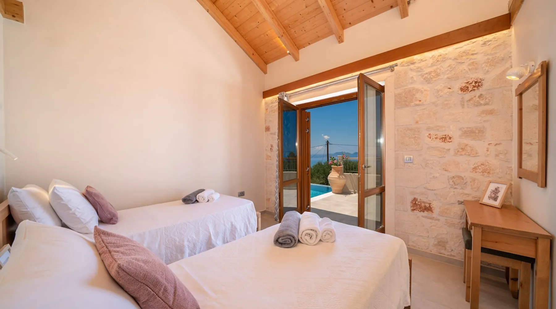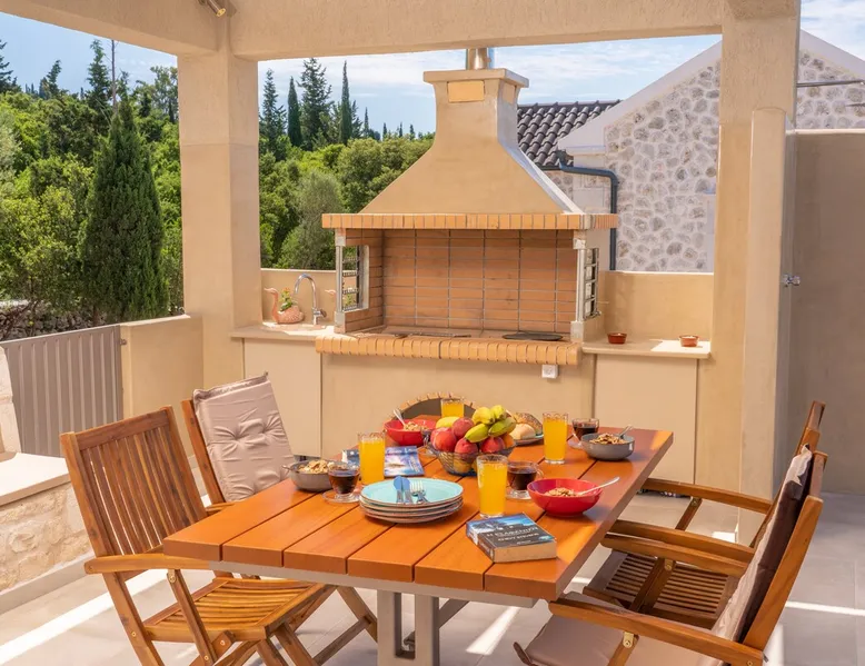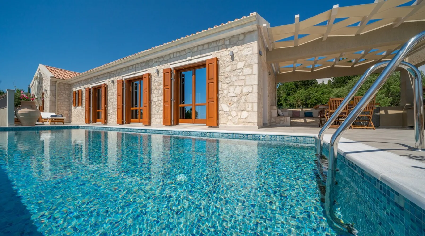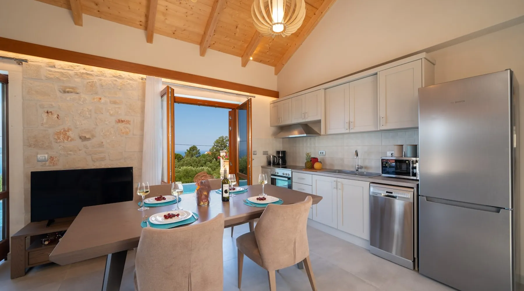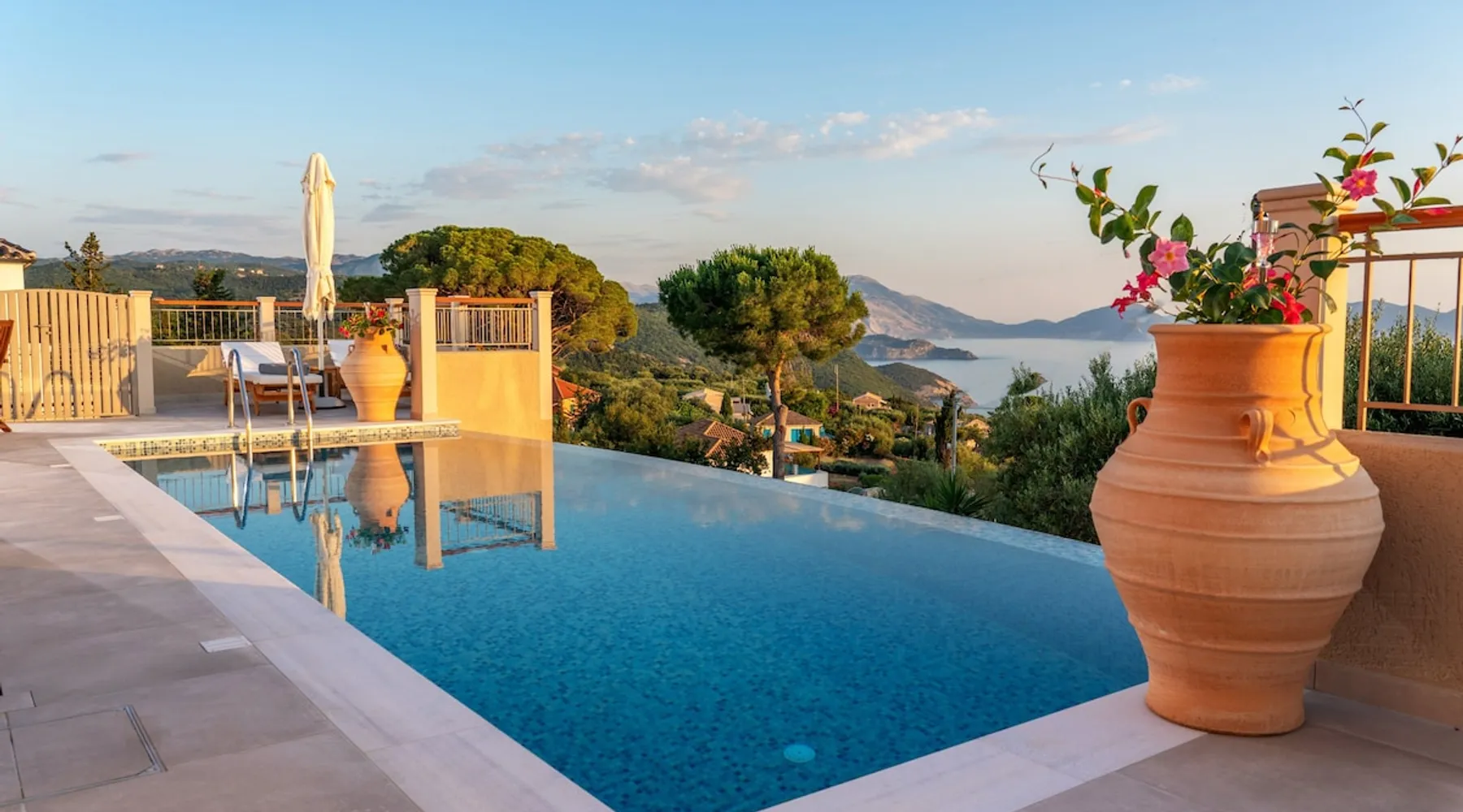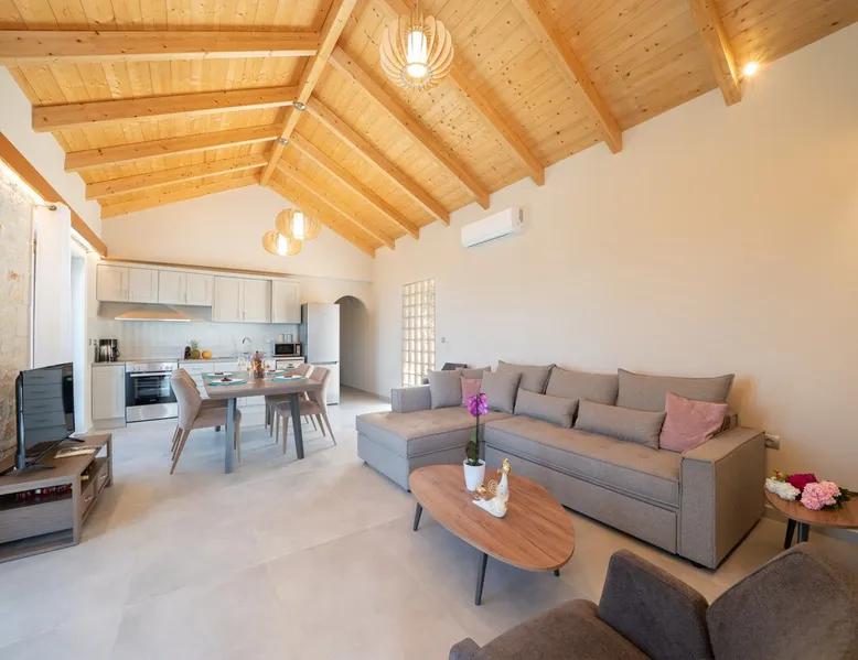 Pithari Sunset Villa is located on the edge of Tzaramelata, an unspoilt hamlet with beaches, services and beautiful walking trails on the doorstep. Boasting stunning panoramic views from the beautiful terrace and infinity pool, this two bedroomed luxurious villa is close to Fiskardo, with it's picturesque harbour and plethora of restaurants, activities and amenities. The space Pithari Sunset Villa is located on the edge of Tzaramelata, an unspoilt hamlet with beaches, services and beautiful walking trails on the doorstep. Boasting stunning panoramic views from the beautiful terrace and infinity pool, this two bedroomed luxurious villa is close to Fiskardo, with it's picturesque harbour and plethora of restaurants, activities and amenities. Carefully designed, using traditional style and materials, the villa offers spacious, comfortable and well-equipped accommodation, ideal for a small family or friends. The sleek terrace looks out across the valley to the sea beyond, with the sparkling pool set front & centre. Comfortable sun loungers await, ready to sink into with a good book & a cold drink, or just to snooze in the sun (or the shade of the parasol, if you prefer!). Outside dining is a must, and this is made easy at Pithari Sunset Villa, with double doors leading from the living space to the dining terrace, shaded and complete with large purpose built BBQ, built-in stone bench seating and table & chairs for 4. Tasteful decor and comfortable beds in the double and twin bedrooms make for a great night’s sleep, and the double doors to the terrace make waking up early for an al fresco breakfast very appealing! Bathrobes & slippers are supplied in both of the room’s spacious en-suite showers, and the washing machine is housed in one bathroom. The villa is equipped for 4, but a 5th person can be accommodated on the comfortable sofa-bed. Delicious food is within walking distance in Kokkino Chorio at the Rancho Ionio, with its traditional oven. Maganos village is just 1.5km away and boasts a couple of tavernas & cafes, as well as mini markets who will deliver to the villa. The gorgeous beaches of Alaties and Agios Jerusalem, both with a taverna, are only 3 kms away. For the more adventurous types, there are plenty of choices - perhaps go kayaking, hire a yacht for the day, take to the many hiking trails in the region, hop on a ferry to the mythical Ithaca island or join a boat trip departing from the cosmopolitan port of Fiskardo, just 7km away. This is a great location in the laid-back northern part of Kefalonia. Whether you wish to explore the region or just laze around the villa with a good book, Pithari Sunset Villa is a wonderful villa to unwind and relax in the beautiful surroundings. Outside Pithari Sunset Villa Infinity Swimming Pool - 3m x 5m, depth 0.90m x 1.50m tiled, ladder entry and glass barrier. Poolside Sea View Terrace - Sun beds with cushions, parasols, and lovely sea views. Covered Poolside Sea View Terrace - Built-in outdoor sofa with cushions, dining table with chairs and large Bbq with sink, plus outdoor shower. Lower Parking - Steps lead to the parking area inside the grounds of the villa. Gates to rear with a large parking area. Inside Pithari Sunset Villa Ground floor Open Plan Living - Kitchen area - L shaped Sofa-bed, Smart 42” Tv with satellite & Netflix, balcony doors open to sea view pool terrace and WiFi. Air Con Unit. Dining area - Table with chairs plus balcony doors with sea view/pool terrace view. Kitchen area - Double sink, dishwasher, 4 ring ceramic hob and electric oven, microwave, Nespresso & filter coffee machine plus large fridge freezer. Double bedroom, en suite shower room - 1 Queen sized bed, built-in wardrobe & drawers, dressing table with mirror. French doors to the sea view terrace with table and chairs. En suite shower cubicle, wash basin with mirror, W. c and washing machine. Air Con unit. Twin bedroom, en suite shower room. - 2 Twin beds, built-in wardrobe & drawers, dressing table with mirror. French doors to sea view terrace. En suite shower cubicle, wash basin with mirror, W. c. Air Con unit. 5th person will be accommodated on the comfortable sofa-bed. Housekeeping: Your Villa will be prepared for you on arrival with fresh bath and hand towels and all beds made up. For stays of 7 nights or more - house towels will be changed every 3 - 4 days. For stays of 14 nights or more - bed linen will be changed every 7 days. Pool/beach towels - one per person for the duration of your stay. Parking - Inside the gated grounds of the villa at the rear of the villa. Other things to note Included Services: - Swimming pool: Services available according to season Opening date: 01/05. Closing date: 31/10. - Welcome Bag (Greece) - tree-nation, 2x trees planted - Pool/Beach Towels - Bed linen: Change each 4 days - Towels: Change each 3 days Optional Services: - Cot/Crib: Price: Included in the booking. - Baby High Chair: Price: Included in the booking. - Second Cot : Price: EUR 30.00 per booking. - Second High Chair: Price: EUR 30.00 per booking. Registration details 1247704