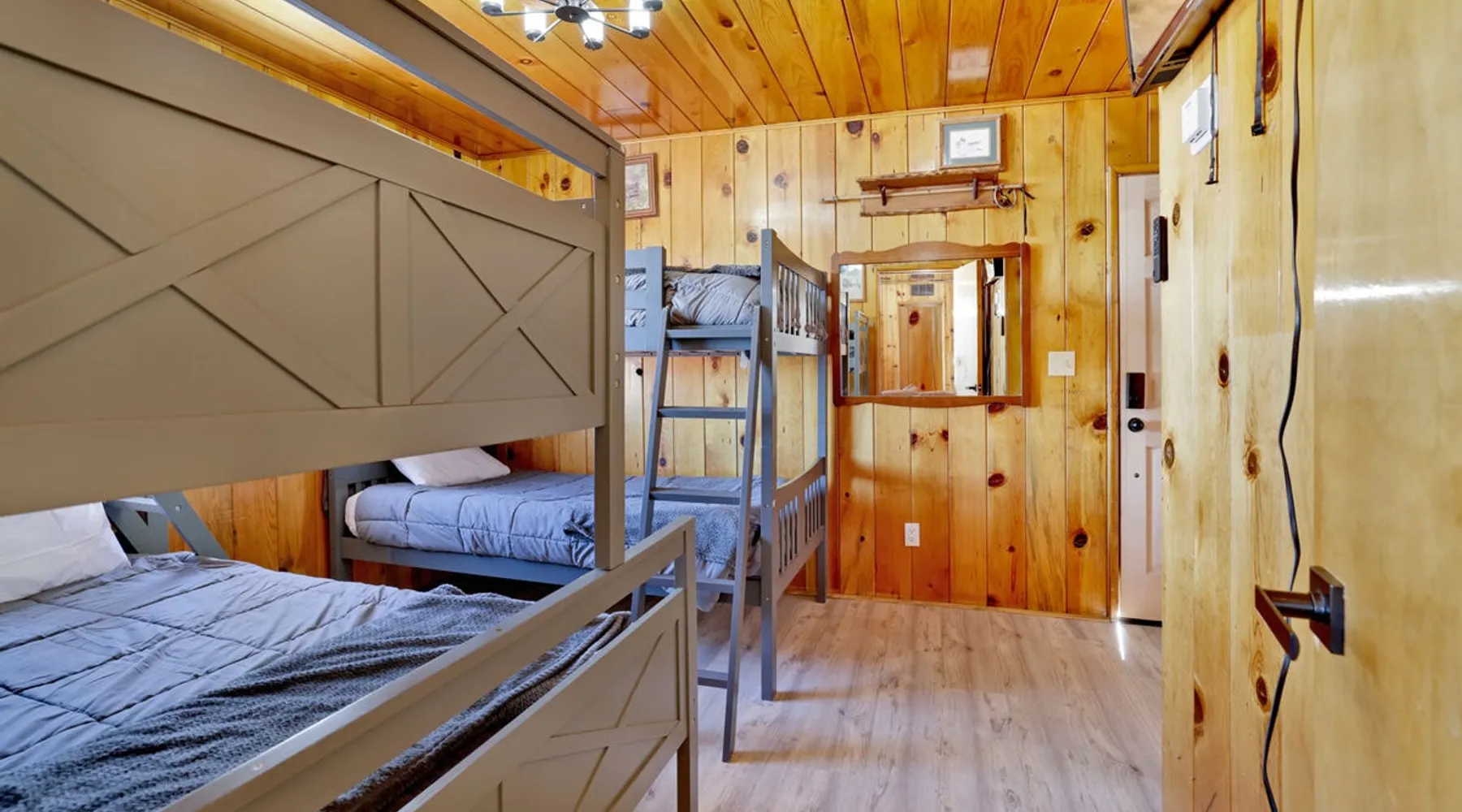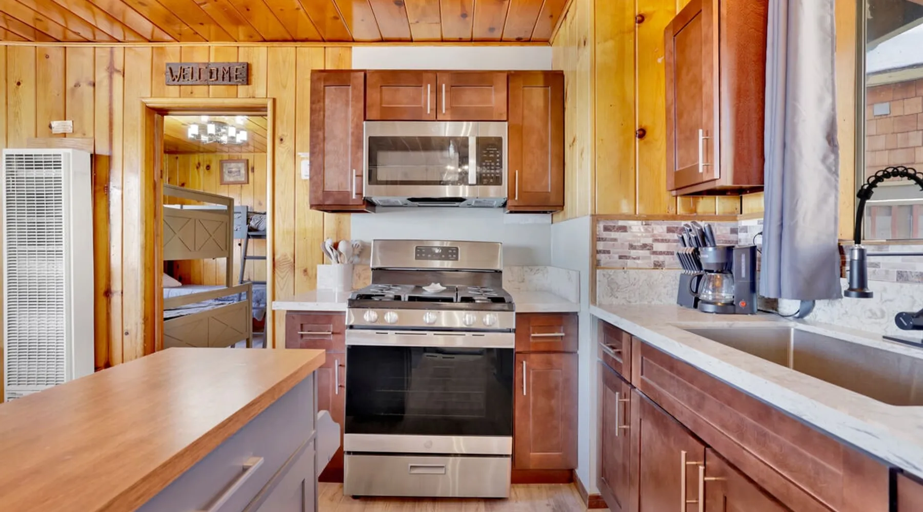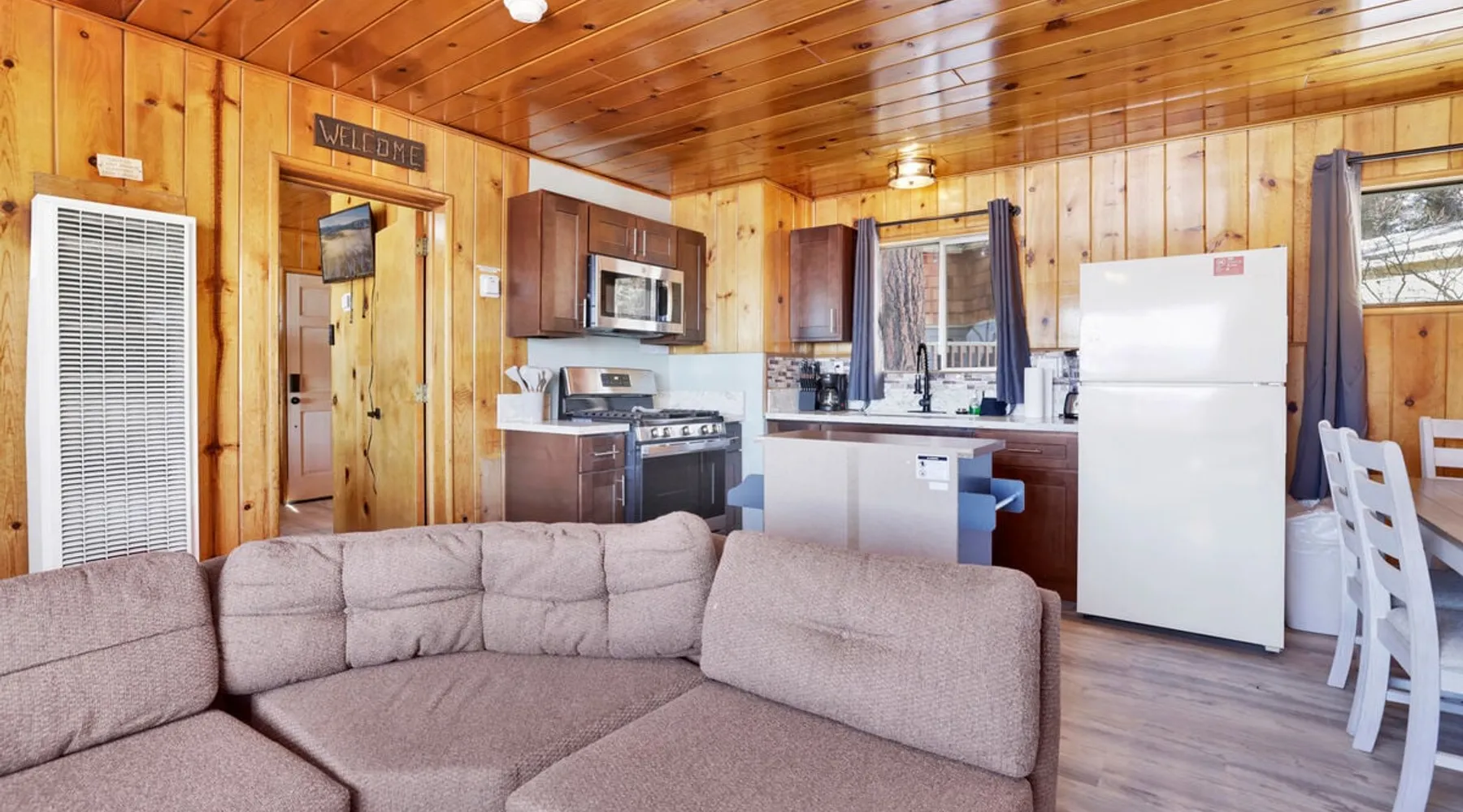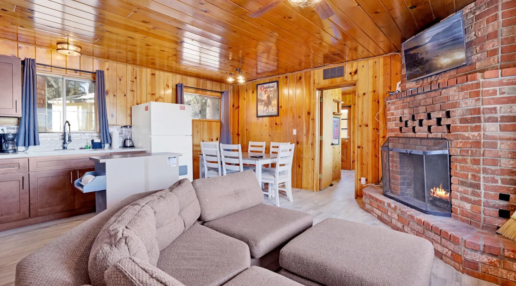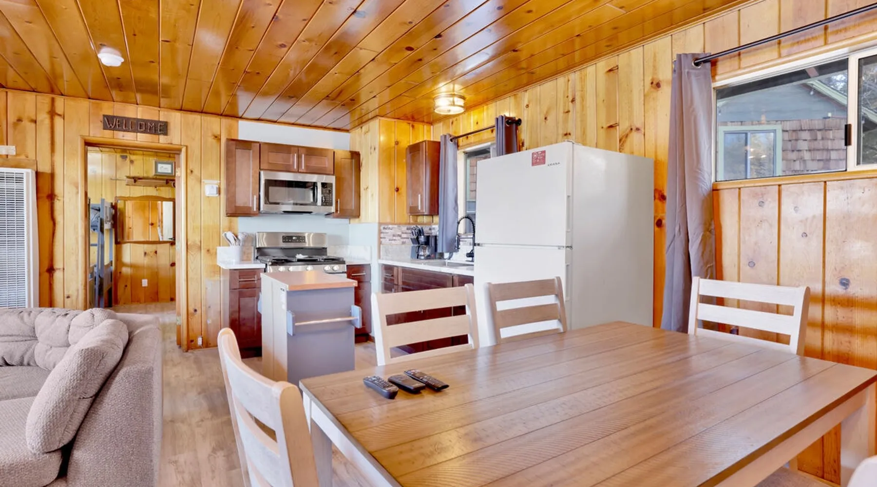 Discover the charm of Shore Acres Lodge, a relaxing rustic retreat with breathtaking views of Big Bear Lake and direct lake access. Managed by Big Bear Vacations, this historic site offers twelve mountain-style cabins on two acres of pine-shaded lakefront. Originally Potters Camp in the early 1900s, it now caters to all types of vacationers seeking a unique mountain experience, from couples and families to large groups for gatherings and events. The space Each cabin is ideal for an adventure in the mountains offering the comforts from home, modern essentials, and an unbeatable location in the mountains. Reserved individually or combined together these adorable cottages and the incredible location becomes the perfect year round destination for any season, sitting just steps away from the shoreline at Big Bear Lake and within a short walk to local marinas and the downtown Village area. Relax on lake-view decks, enjoy the group patio area, or use the provided Charcoal BBQ for grilling. Shore Acres Lodge boasts fantastic facilities: a lakefront location, seasonal shared boat dock, fishing area, summertime community swimming pool (weekends only, Memorial Day to Labor Day), outdoor horseshoe and volleyball pit, kids swing-set, large outdoor BBQ and picnic area, outdoor table tennis, onsite trash disposal, hi-speed WIFI access, flat screen streaming TVs, and a spacious pet-friendly property. (California Leash Law + Pet Fee Applies). Ample flat parking is available year round. Walking distance to the Big Bear Village and local marinas this is an ideal location any time of the year! Sleeping Arrangements: Bedroom 1: Full/Twin Bunk + Twin/Twin Bunk Bedroom 2: Queen Bed Sleeping Arrangements: Private Full Bath- Bedroom 1 Private Full Bath- Bedroom 2 -Sleeps 7 -2 Car Driveway Parking -2 Pets Welcome w/ Additional Fees -817 Square Feet Hotel Permit #: PR0013888 Registration Details Exempt