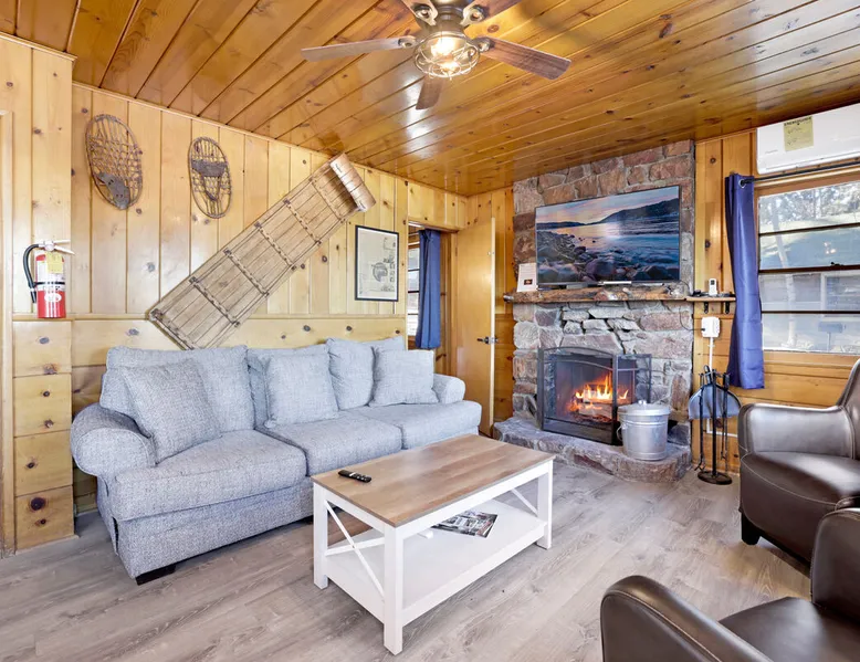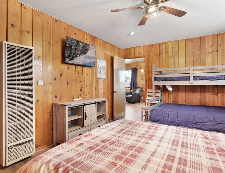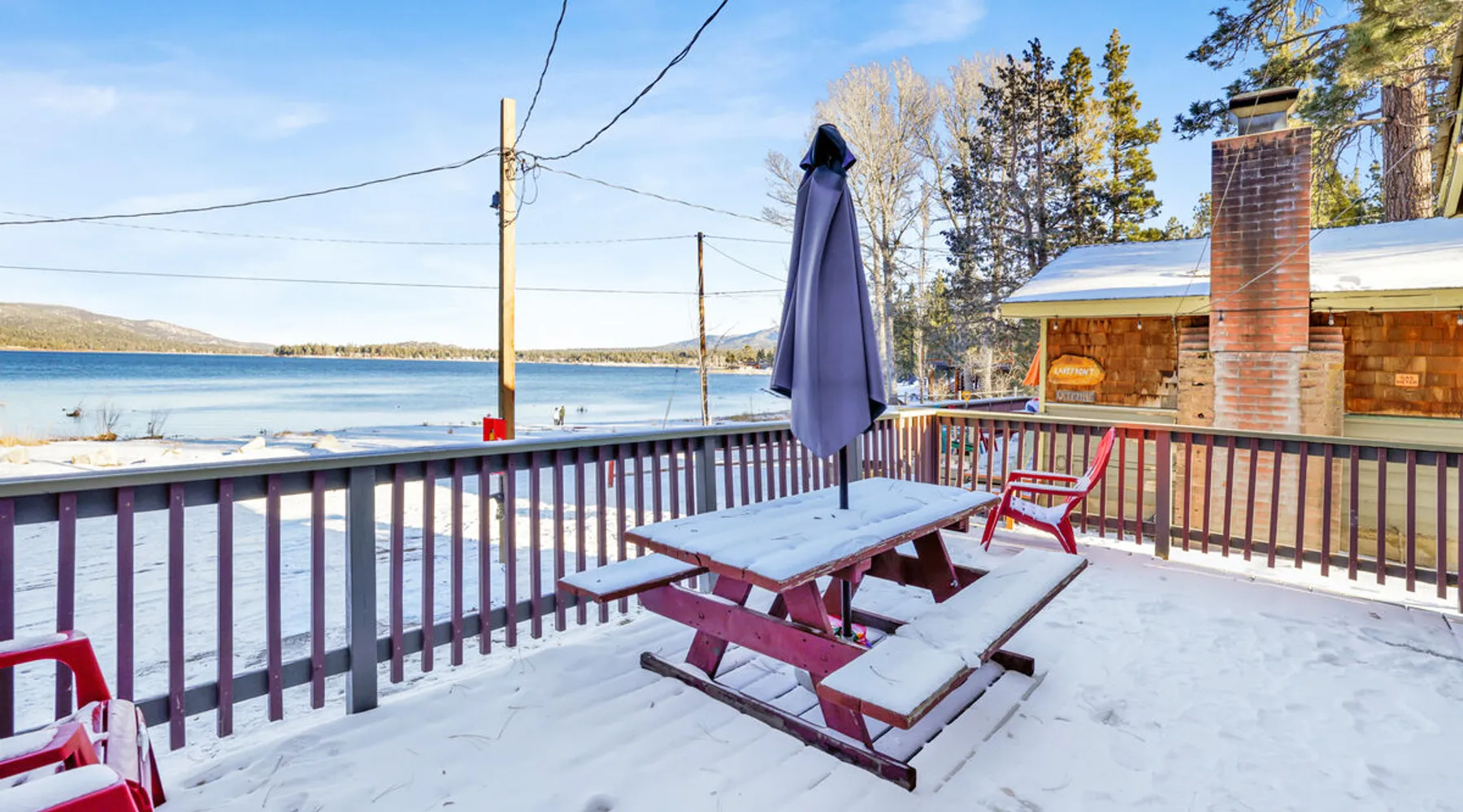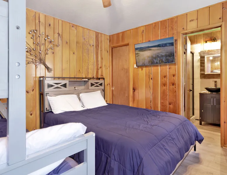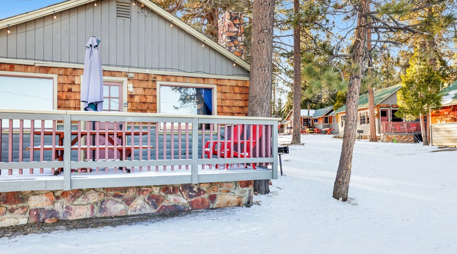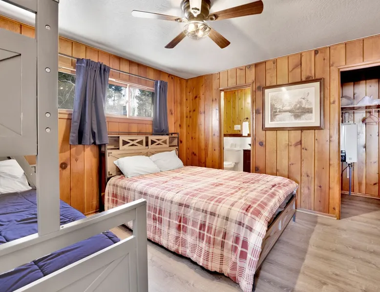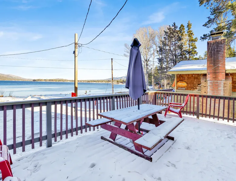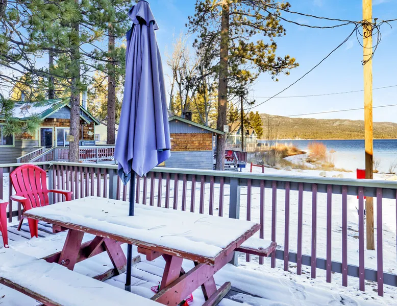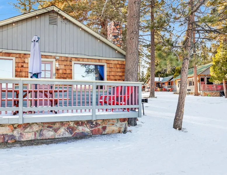 Lakeside is the perfect destination for a family or group retreat to the mountains together. Nestled on the shoreline of the lake just outside of the Village area you have the very best of Big Bear right at your fingertips from this wonderful lodge location. Kitchen and dining essentials along with a cozy living room ensure your stay is comfortable as you sit feet from the shore and within a short stroll to the marina and Village for shopping and dining, the possibilities are endless from here. The space Each cabin is ideal for an adventure in the mountains offering the comforts from home, modern essentials, and an unbeatable location in the mountains. Reserved individually or combined together these adorable cottages and the incredible location becomes the perfect year round destination for any season, sitting just steps away from the shoreline at Big Bear Lake and within a short walk to local marinas and the downtown Village area. Relax on lake-view decks, enjoy the group patio area, or use the provided Charcoal BBQ for grilling. Shore Acres Lodge boasts fantastic facilities: a lakefront location, seasonal shared boat dock, fishing area, summertime community swimming pool (weekends only, Memorial Day to Labor Day), outdoor horseshoe and volleyball pit, kids swing-set, large outdoor BBQ and picnic area, outdoor table tennis, onsite trash disposal, hi-speed WIFI access, flat screen streaming TVs, and a spacious pet-friendly property. (California Leash Law + Pet Fee Applies). Ample flat parking is available year round. Walking distance to the Big Bear Village and local marinas this is an ideal location any time of the year! Sleeping Arrangements: Bedroom 1: Queen Bed + Full/Twin Bunk, Streaming TV Bedroom 2: Queen Bed + Full/Twin Bunk, Streaming TV Bathroom Arrangements: Private 3/4 Bath- Bedroom 1 Private 3/4 Bath- Bedroom 2 -Sleeps 10 -2 Car Driveway Parking -2 Pets Welcome w/ Additional Fees -817 Square Feet Hotel Permit #: PR0013888 Registration Details Exempt