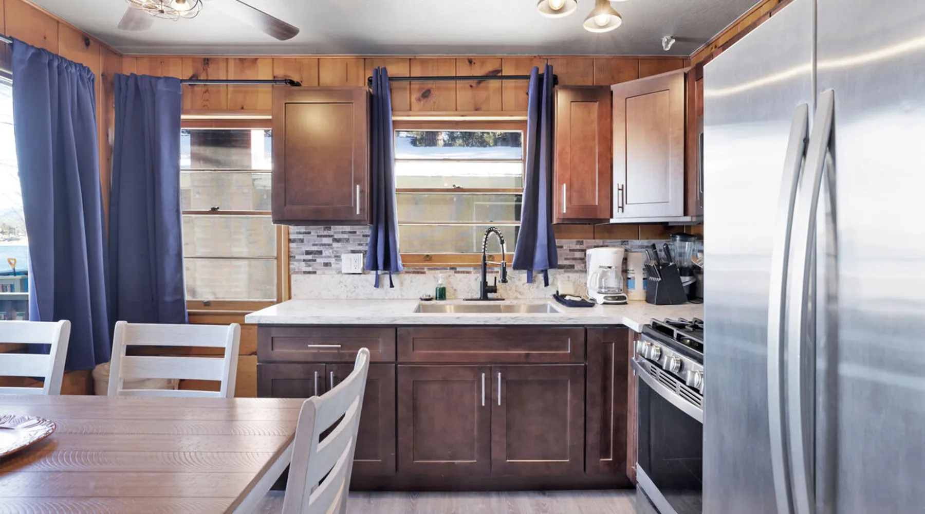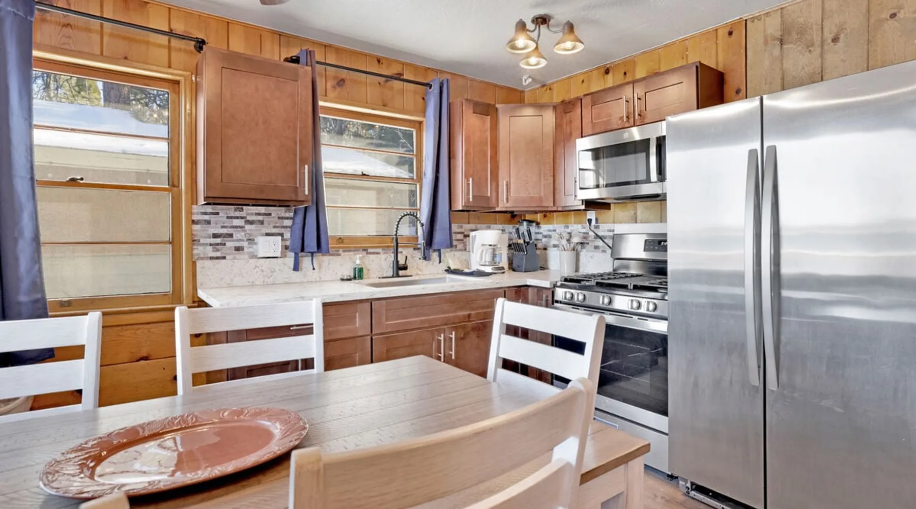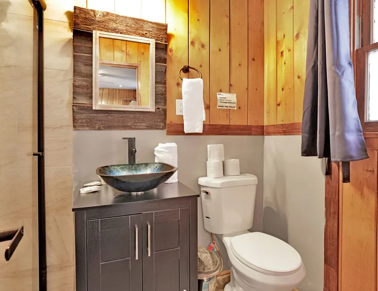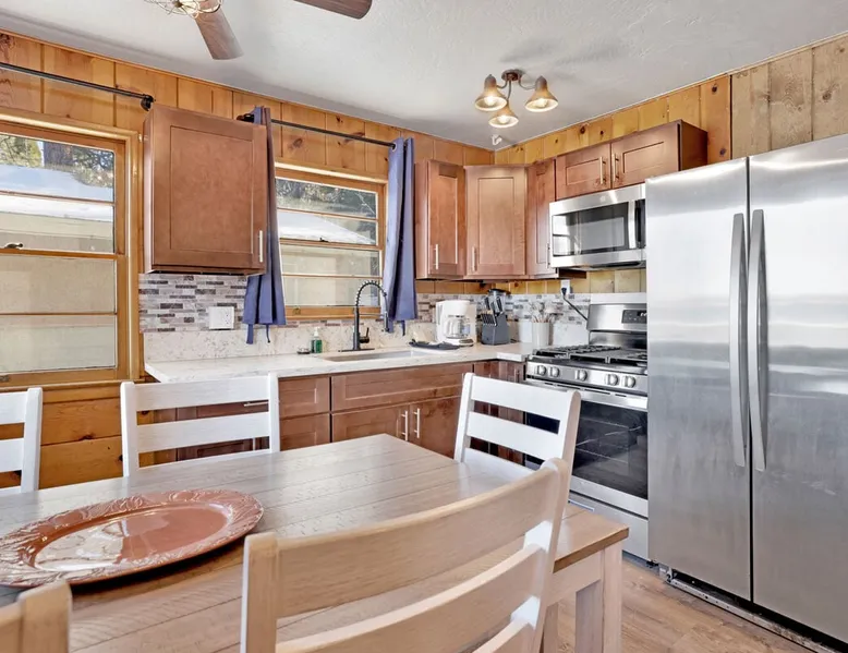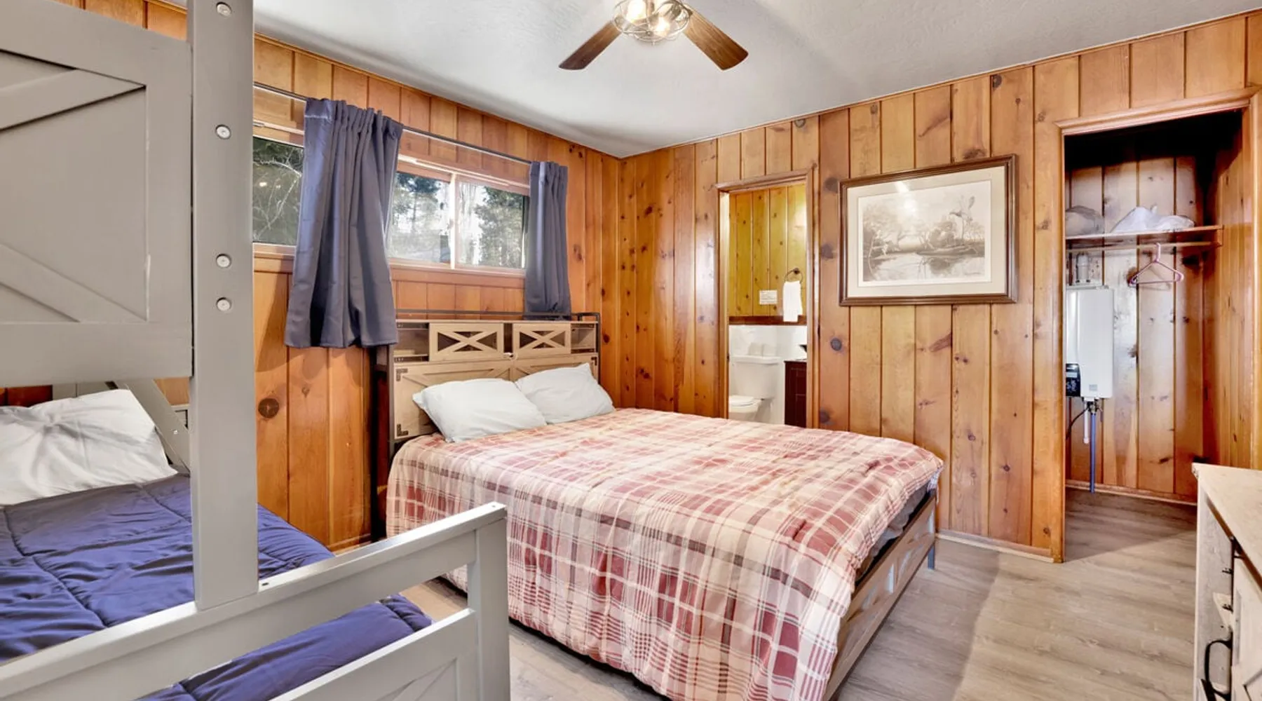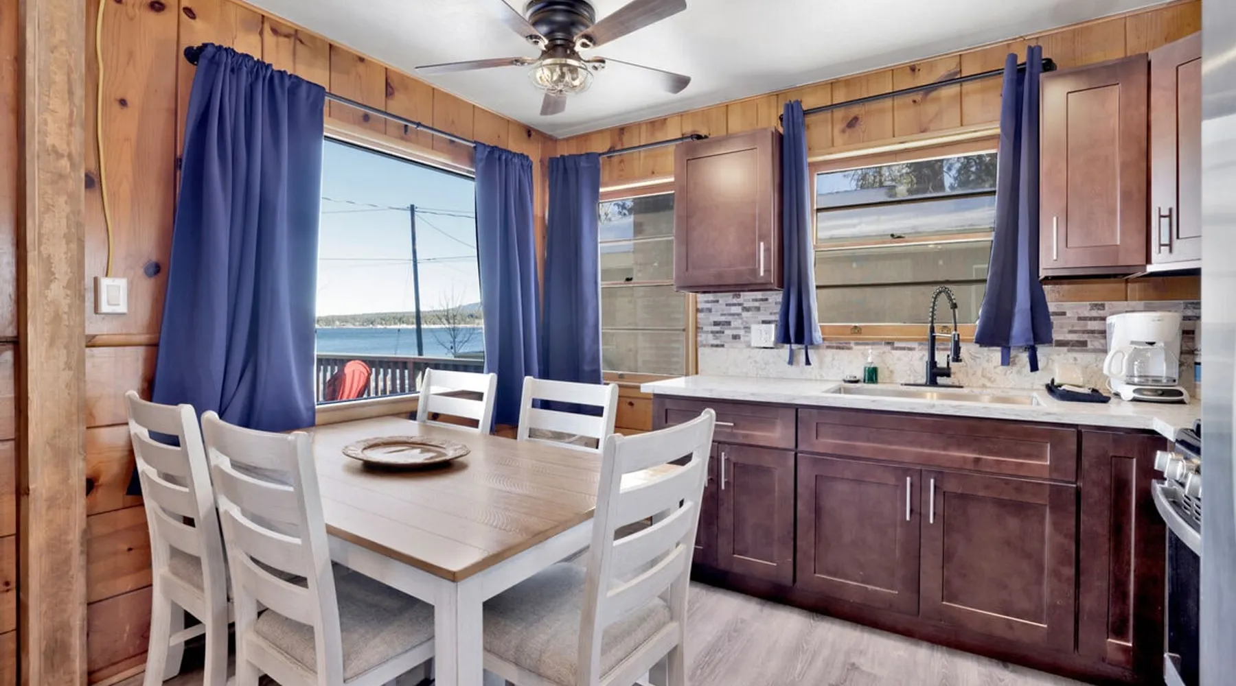 Lakeside is the perfect destination for a family or group retreat to the mountains together. Nestled on the shoreline of the lake just outside of the Village area you have the very best of Big Bear right at your fingertips from this wonderful lodge location. Kitchen and dining essentials along with a cozy living room ensure your stay is comfortable as you sit feet from the shore and within a short stroll to the marina and Village for shopping and dining, the possibilities are endless from here. The space Each cabin is ideal for an adventure in the mountains offering the comforts from home, modern essentials, and an unbeatable location in the mountains. Reserved individually or combined together these adorable cottages and the incredible location becomes the perfect year round destination for any season, sitting just steps away from the shoreline at Big Bear Lake and within a short walk to local marinas and the downtown Village area. Relax on lake-view decks, enjoy the group patio area, or use the provided Charcoal BBQ for grilling. Shore Acres Lodge boasts fantastic facilities: a lakefront location, seasonal shared boat dock, fishing area, summertime community swimming pool (weekends only, Memorial Day to Labor Day), outdoor horseshoe and volleyball pit, kids swing-set, large outdoor BBQ and picnic area, outdoor table tennis, onsite trash disposal, hi-speed WIFI access, flat screen streaming TVs, and a spacious pet-friendly property. (California Leash Law + Pet Fee Applies). Ample flat parking is available year round. Walking distance to the Big Bear Village and local marinas this is an ideal location any time of the year! Sleeping Arrangements: Bedroom 1: Queen Bed + Full/Twin Bunk, Streaming TV Bedroom 2: Queen Bed + Full/Twin Bunk, Streaming TV Bathroom Arrangements: Private 3/4 Bath- Bedroom 1 Private 3/4 Bath- Bedroom 2 -Sleeps 10 -2 Car Driveway Parking -2 Pets Welcome w/ Additional Fees -817 Square Feet Hotel Permit #: PR0013888 Registration Details Exempt