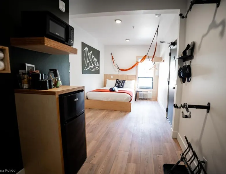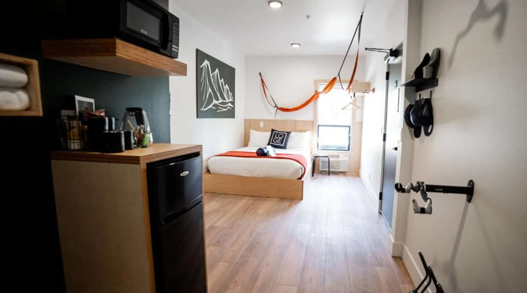 Comfortable Accommodations: LOGE Leavenworth - Downtown in Leavenworth offers family rooms with air-conditioning, private bathrooms, and modern amenities including tea and coffee makers, refrigerators, and TVs. Essential Facilities: Guests enjoy free WiFi, a bar, and a lounge. Additional facilities include an outdoor fireplace, outdoor seating area, minimarket, coffee shop, and bicycle parking. Convenient Location: Located 27 mi from Pangborn Memorial Airport and 22 mi from Wenatchee Convention Center, the hotel provides easy access to local attractions. Activities and Services: Activities available include yoga classes, skiing, and hiking. The property offers free on-site private parking, express check-in and check-out, bike hire, and luggage storage. Guest Satisfaction: Highly rated for its convenient location, attentive staff, and clean rooms. The double room provides a tea and coffee maker. The unit offers 1 bed.