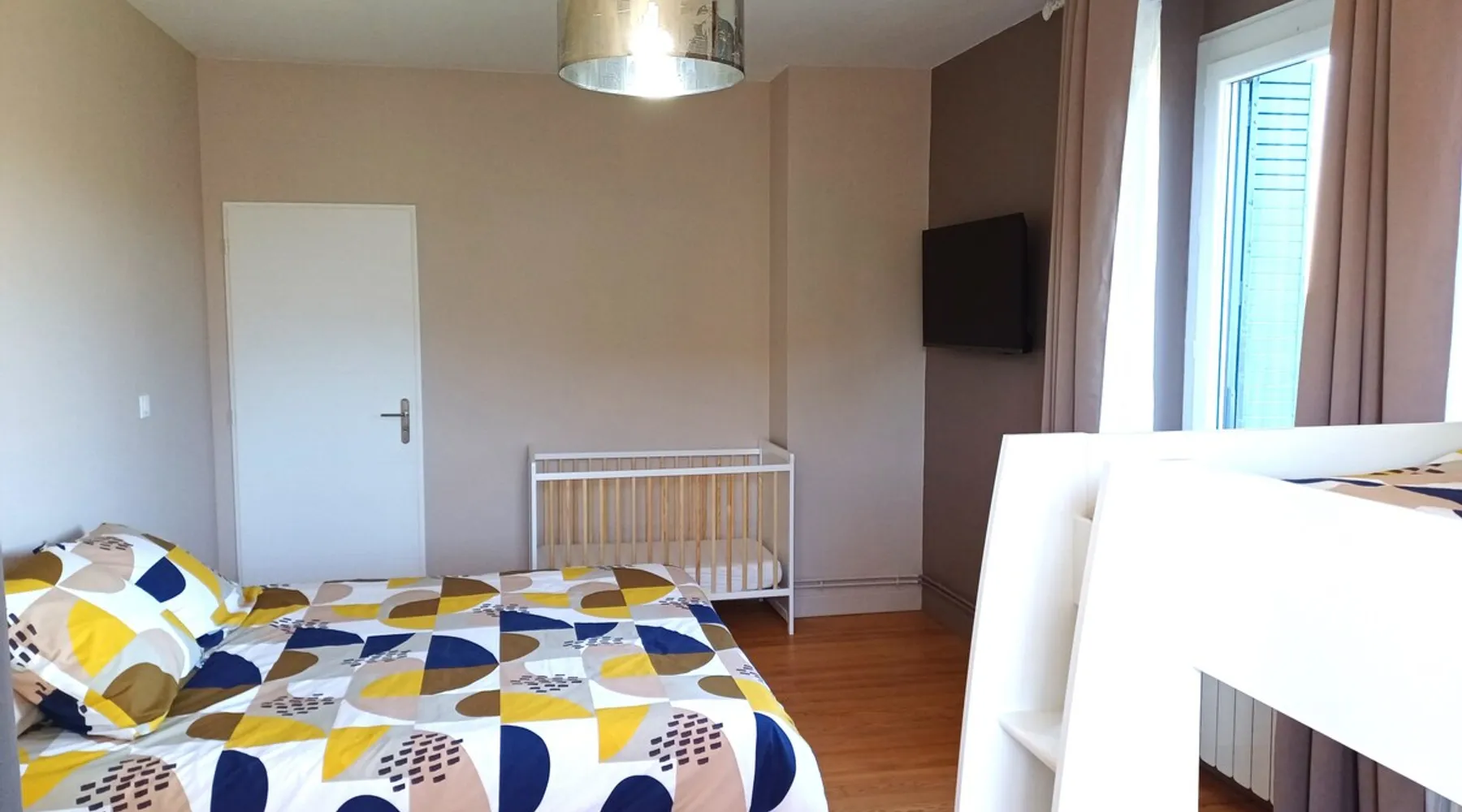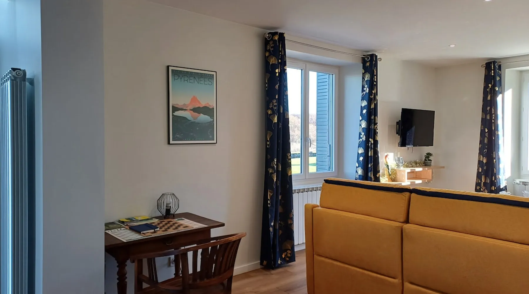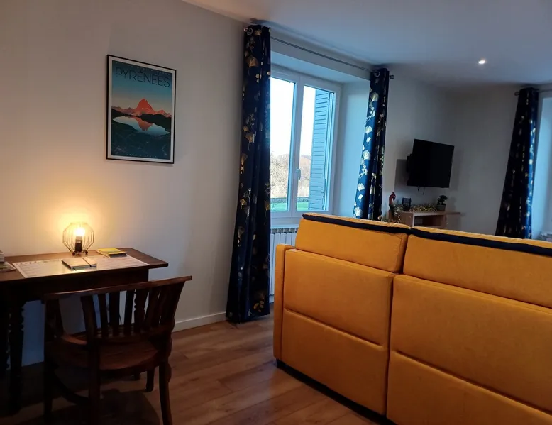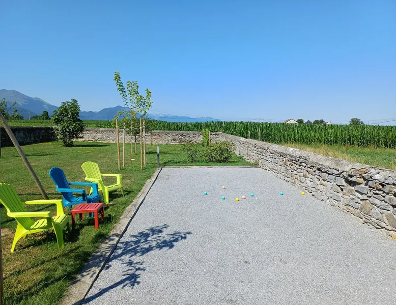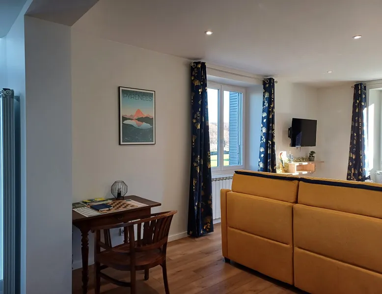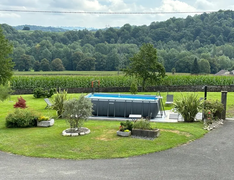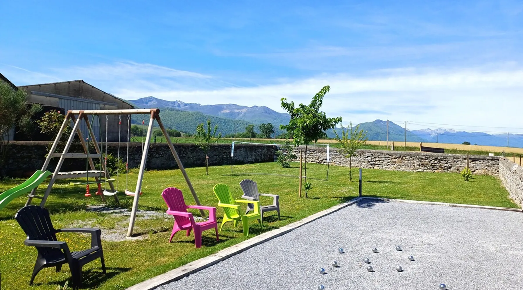 In ASSON, at the foot of the Pyrenees, come and discover our 120 m2 renovated house "Chez Hebus", classified as furnished tourism 3***, its terrace and its large park for playing soccer, rugby, badminton, volleyball, basketball. Swimming pool, bowling alley, swing and ping pong table are to be shared with the hosts. Between Pau and Lourdes, near the Chemin de St Jacques Compostelle, the Soulor road and the crossroads of the valleys: Ouzom, Aspe, Ossau. With family, friends, you will enjoy the calm, the countryside, the space. The space Ideally located in the Ouzom Valley, close to the center of Asson ((=2 km) and its many shops (bread depot, pizzeria), grocery store, butcher's shop, delicatessen...) our 120 m2 house "Chez Hebus" (dating from 1666) which was completely renovated (interior and exterior) in 2023. Our large house that can accommodate up to 9 people (including 3 babies) is located in the countryside, in a quiet area, waiting for you for your future vacation. It mixes the charm of the old with its exposed stones with that of the modern. From your terrace and large private park, you can admire the view of the village as well as the Pyrenean peaks. Its large outdoor space awaits you to rest, entertain you. Its outbuilding will allow you to store your bikes, motorcycles, fishing equipment, skis. Its large, enclosed and secure courtyard will allow you to park your vehicles. The "Chez Hebus" house is reserved for guests and cannot accommodate outsiders without the hosts' agreement. In the house, you'll find... On the ground floor: A large room: living room/kitchen of 50 m2. The living room with its TV, 2 sofas, - a sofa bed (160), - an umbrella bed, but also its 2 armchairs, its games to entertain you with family and/or friends and a desk area to work with the free Wi-Fi connection. Equipped kitchen (fridge, freezer, oven, microwave, dishwasher, Senseo coffee machine and filter coffee machine (= ground coffee), kettle, etc.), large table, high chair, booster. Finally, on the ground floor, you will find a bathroom and toilet as well as a laundry room (washing machine) and clothes drying rack. Upstairs: - 2 bedrooms, - a bathroom with bathtub and baby bath. - a toilet. Bedroom 1 with village and park views. The bedroom includes: 1 140 bed, 1 bed 90, 1 umbrella bed. Bedroom 2 with views of the park and the Pyrenean peaks. The bedroom includes: 1 queen bed, 1 bunk bed, 1 crib and 1 TV. Bed sheets, towels are provided free of charge and the beds will be made for your arrival. Do you have babies and/or children? A high chair, a booster, a changing table and a mattress, a small park (100x80cm), a bathtub, a toilet booster, a baby potty, are available to you free of charge. Outside you can enjoy your terrace for a drink, your park for eating in the shade on its wooden table, barbecuing, playing football, handball, rugby, basketball, volleyball, badminton... playing a game of petanque at the bowling alley... You and/or your children can have fun in your large private park and/or also enjoy the shared spaces. The spaces to share (only) with the hosts are the swimming pool, the bowling alley, the swing and the ping pong table. The pool is open from June 15 to September 15. For the little ones: - a small basketball hoop, ball... will allow them to have fun in the park. Our house is located on the route des cols: Col du Soulor, Col d 'Aubisque, offering many walks and sites to discover. The city of NAY with its 2 markets (Tuesday morning and Saturday morning), its many shops is only 7 km away (= 10 min drive). The city of PAU and the city of HEAVY are located 30 km away. Families, friends, cyclists, bikers, fishermen, hikers, skiers, athletes ... don't wait, come and discover our house and all the activities nearby. Guest access House with its terrace and large shaded park, its games. A garage to shelter your motorcycles, bikes, fishing equipment, skis... Its large enclosed and secure courtyard (electric gate). Other things to note The house in the heart of the Assonne countryside, is located in the Ouzom Valley and offers many walks. Hiking trails, road biking, mountain passes, sports and water activities. Nearby sightseeing and activities: - Asson Zoo, - Betharram's caves, - Lourdes: the Marial City, - Artouste (the highest train in Europe), - Pau: its castle, the Boulevard des Pyrénées, its bars and restaurants, - Le Pic du Midi de Bigorre - The Gavarnie cirque, classified as a UNESCO World Heritage Site, - The nautical base in Baudreix with its many activities and beach, - Canoe kayak and rafting, - The Greenway, - Fishing at Ouzom and Gave de Pau, - The Col d 'Aubisque, - The lakes of Ayous , - Laruns: festival of transhumance to celebrate the departure of the herds to the summer in early July - The Pont d 'Espagne, - Col du Somport - Tourmalet: paragliding over the Col du Tourmalet or the Pic du Midi de Bigorre, - The Neouvielle massif for walking from lake to lake, - The Troumouse Circus listed as a UNESCO World Heritage Site ... and many other sites to discover.