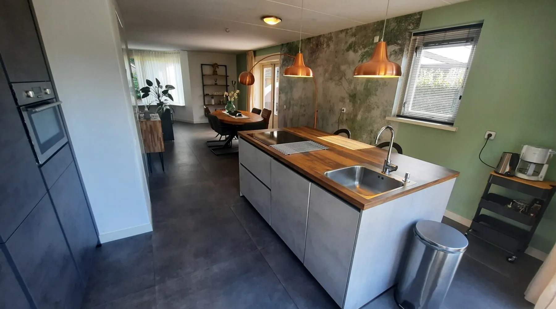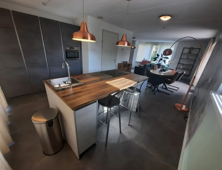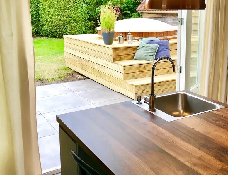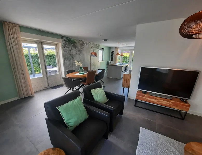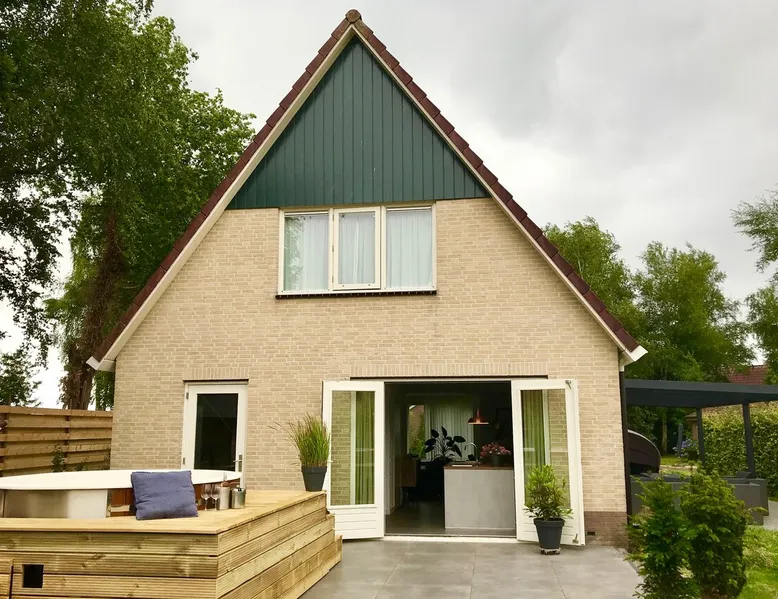 Don't forget your bathing suits! Because in the hot tub of this luxurious vacation home you can relax wonderfully regardless of the season. And maybe you'll be lucky and one of your fellow travelers will prepare dinner in the modern kitchen, which you can later enjoy together on the covered terrace...? The space The country house has three bedrooms. In the large bedroom there is a double bed (box spring bed), in the other two bedrooms there are two single beds each. The open kitchen/living room extends almost through the entire first floor. Two double doors connect the room to the garden. Here you will find the hot tub and a spacious lounge set. Guest access The entire accommodation including the associated garden is rented. There are also three free private parking spaces available at the house. Other things to note Up to two pets are allowed. There is an additional charge of €8/night per pet. Firewood for the hot tub/fire pit can be purchased from us (9 kg for €10). Towels, bed sheets, bathrobes and bicycles can be rented for a fee - please let us know if you are interested!