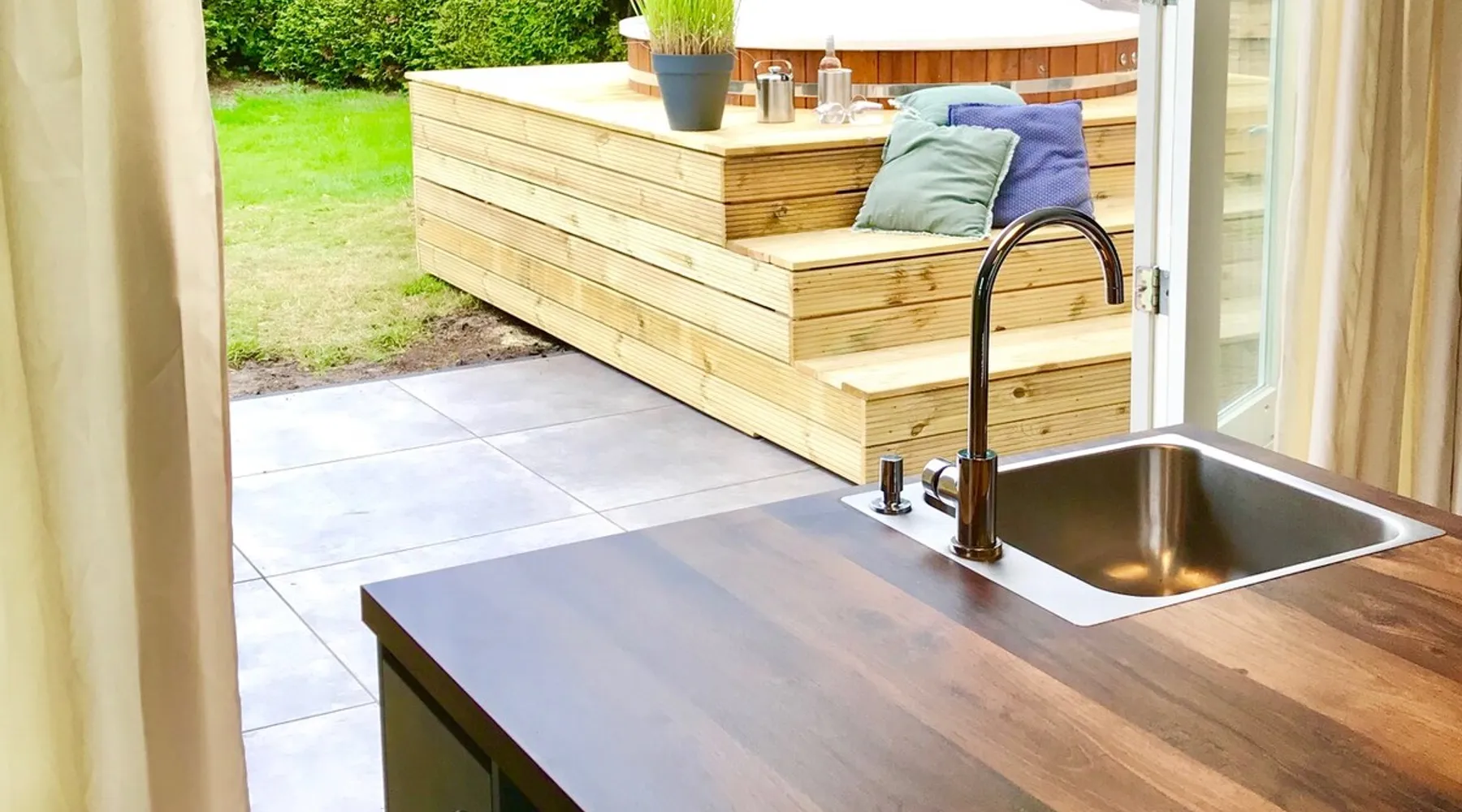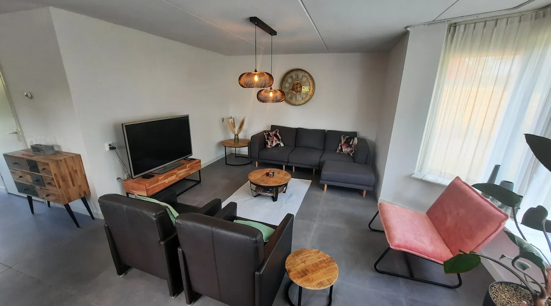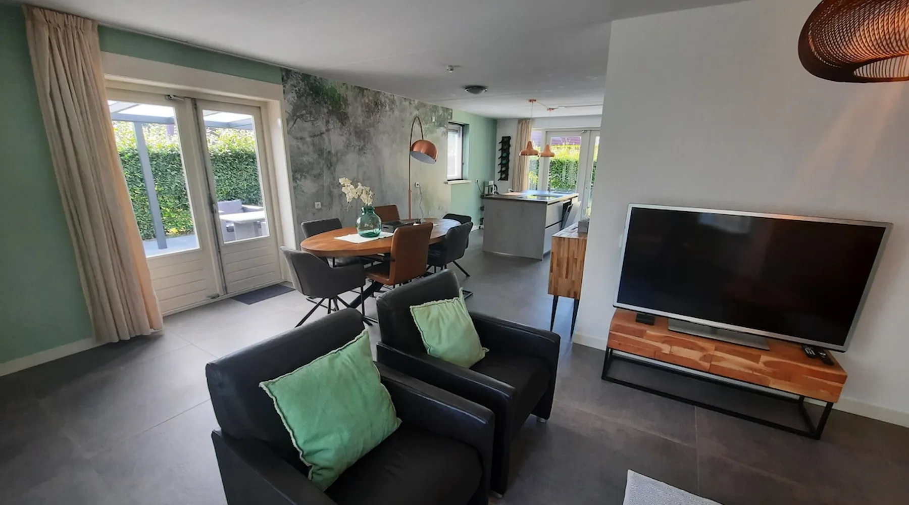 Don't forget your bathing suits! Because in the hot tub of this luxurious vacation home you can relax wonderfully regardless of the season. And maybe you'll be lucky and one of your fellow travelers will prepare dinner in the modern kitchen, which you can later enjoy together on the covered terrace...? The space The country house has three bedrooms. In the large bedroom there is a double bed (box spring bed), in the other two bedrooms there are two single beds each. The open kitchen/living room extends almost through the entire first floor. Two double doors connect the room to the garden. Here you will find the hot tub and a spacious lounge set. Guest access The entire accommodation including the associated garden is rented. There are also three free private parking spaces available at the house. Other things to note Up to two pets are allowed. There is an additional charge of €8/night per pet. Firewood for the hot tub/fire pit can be purchased from us (9 kg for €10). Towels, bed sheets, bathrobes and bicycles can be rented for a fee - please let us know if you are interested!