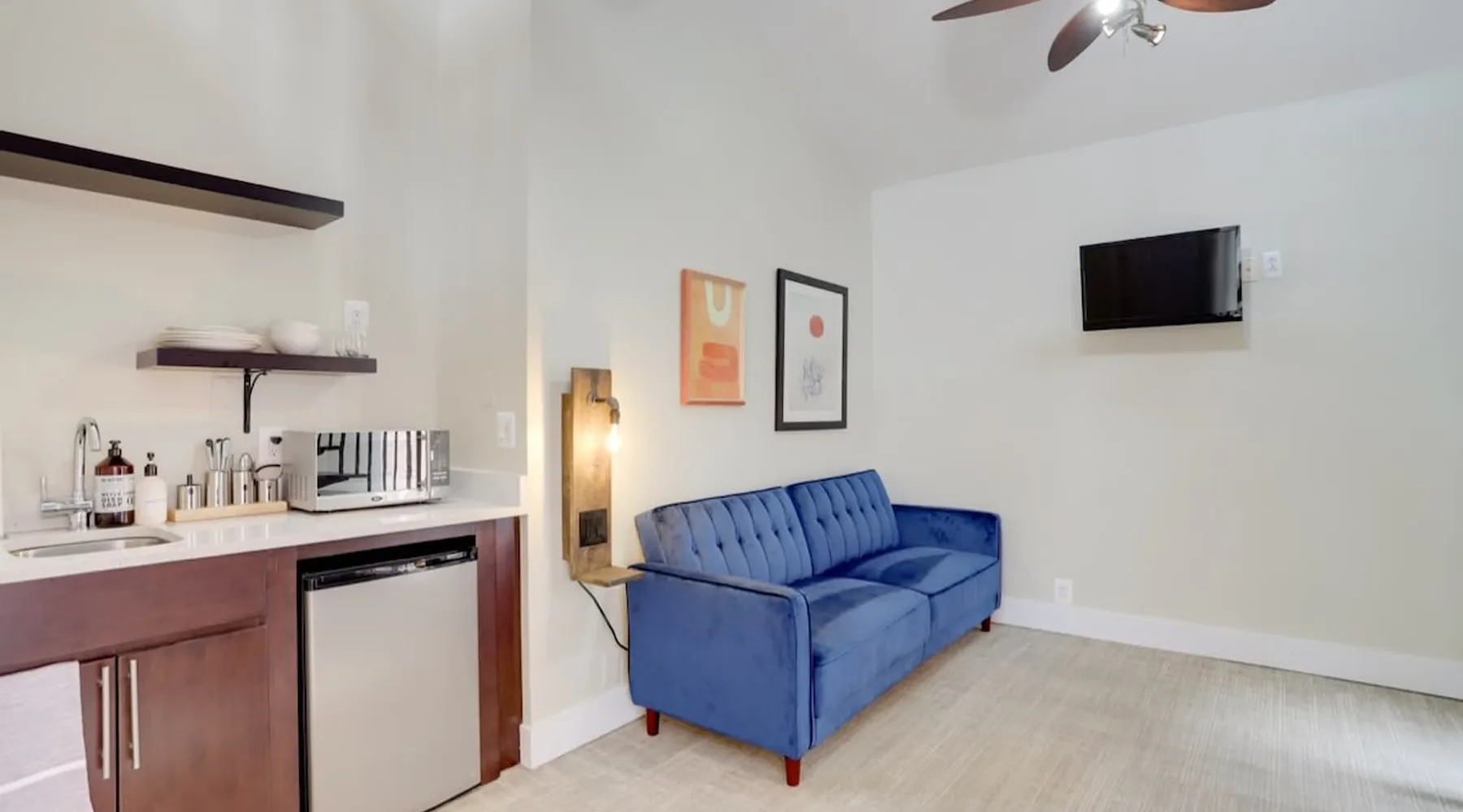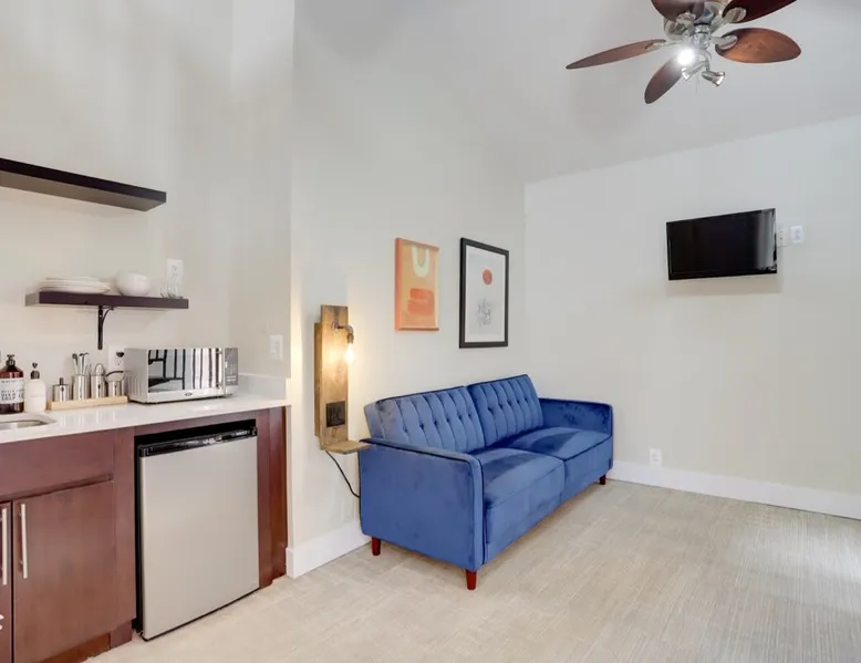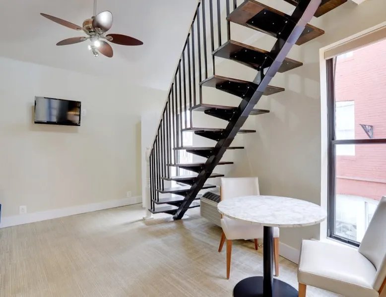 A Sanctuary in the heart of Dupont Circle, the Dupont Place hotel can serve as your refuge whether you are visiting DC or looking for a place to work. As your hosts, we are mindful of your needs and strive to provide you with a seamless experience. This boutique hotel offers large desks, business speed wifi, keyless check in & other thoughtful amenities. A perfect place to escape for work or rest, your surroundings even include an inviting outdoor patio. PLEASE NOTE THIS IS A 4th FLOOR WALK UP The space All Sojourn cleaners are certified in cleaning practices based on guidelines from The World Health Organization, Center for Disease Control and Prevention, US Occupational Safety and Health Administration, and the US Food and Drug Administration. Sojourn, A Turnkey Luxury Experience. We’ve hosted over 10,000 guests in 50+ spaces with an average rating of 4.8 stars. Each space is handpicked, in unbeatable locations and is designed and run by us. A Sojourn space is carefully curated, thoughtfully designed, complete with beautiful and comfortable furniture. Sojourn, at our core hospitality. All Sojourn homes come with: - 24/7 support via text, email, or phone - Fresh towels, and bathroom essentials provided - Immaculately clean homes - Self check-in - Superior quality mattresses - The most comfortable, welcoming linens you have ever slept on - Black out shades or curtains in every room - Giga Blast Business Speed WiFi Guest access Our home is contactless, seamless and easy self check in. A code will be set for you and shared before your arrival. At Sojourn we take your happiness and comfort seriously. No request is too big or too small for our team and we strive to make your stay as comfortable and memorable as possible. Other things to note At Sojourn, we’re committed to making your stay seamless, serene, and comfortable. Every one of our homes is thoughtfully appointed with everything you need to settle in and relax—from high-speed Wi-Fi and smart TVs to fully stocked kitchens and freshly laundered linens, Frette towels, hairdryers and luxurious Lather brand soaps. Our team is also just a message away, with thoughtful communication from the moment you book to the day you depart. Before your stay, we kindly ask you to review the following important information to ensure a smooth arrival and peaceful experience: Guest Verification with Truvi To protect our homes and enhance your peace of mind, Sojourn partners with Truvi, a third-party guest verification and damage assurance platform. You’ll receive a direct message from Truvi to complete your verification and purchase a damage waiver. Please complete this step before check-in. Visit Truvi’s website to learn more. Property Access & Maintenance From time to time, our homes may require preventative or emergency maintenance or during long term stays, a showing to prospective tenants. While we make every effort to avoid any interruptions to your stay, Sojourn reserves the right to access the property after providing 24 hours’ written notice. Your comfort is our priority, and we appreciate your understanding. Baby Gear (Optional Add-On) Traveling with little ones? We’re happy to offer Pack & Plays and high chairs for your convenience. These items must be reserved in advance and are available for a $25 rental fee per item. Parking Information Driving to your Sojourn? Please inquire with the Sojourn team to make a parking reservation to ensure your arrival is seamless and stress-free. Sojourn and the property owner are not responsible for loss, theft, damage, or injury involving your vehicle or its contents. We cannot guarantee the safety or security of any parking location and disclaim liability for any incidents. Thank you for your understanding. Pet Policy Most of our residences are pet friendly and welcome your four-legged companions. While most booking platforms include the pet fee upon reservation, any exclusions will be invoiced at $15 per night for stays up to 30 days and $450 total for stays 31 days or longer. Kindly inform us of any pets joining your stay so we may update your reservation accordingly. We do love furry companions, but we do have some properties that are not pet-friendly. If you’re traveling with a pet please ensure this is a pet-welcoming home. If it is not, we’d be happy to recommend one of our many pet-friendly stays. Fireplace (If Applicable) The fireplace is a charming decorative feature, meant to add ambiance rather than be used. All of the Dupont Place homes come with a Keurig and K-Cups. Let us know if you have any questions—we’re here to help make your stay serene & unforgettable. Registration Details Exempt