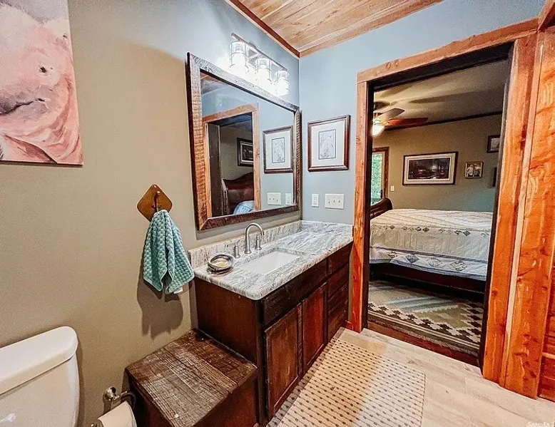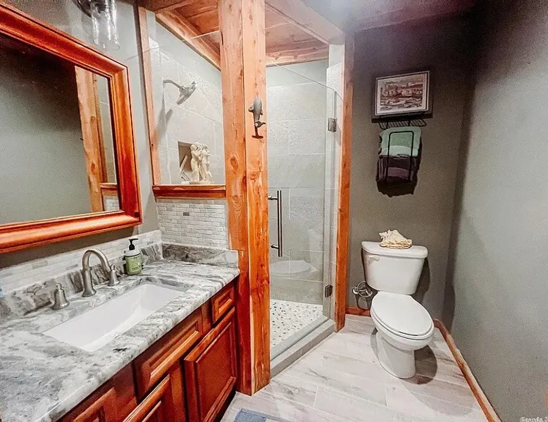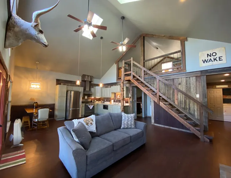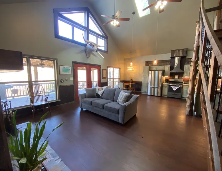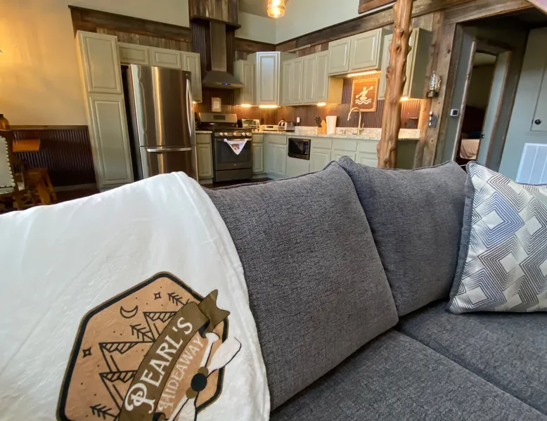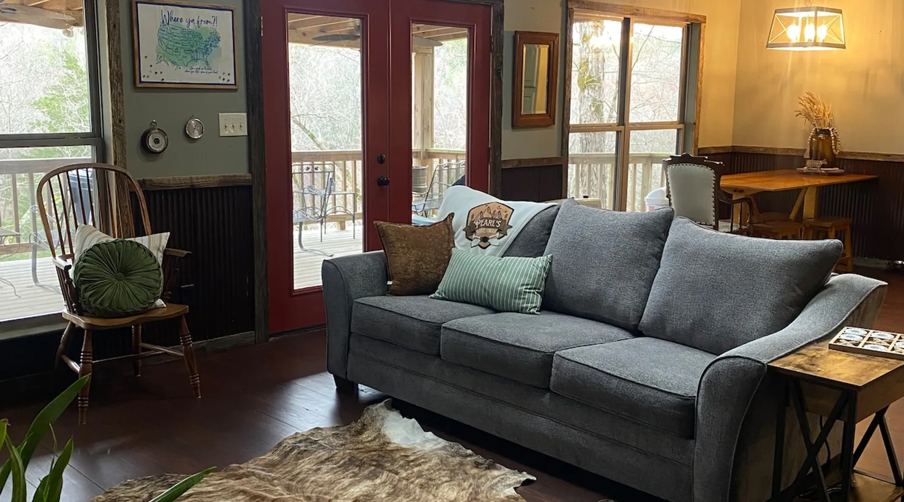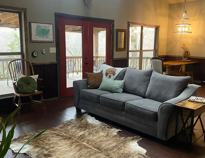 Take it easy at this unique, private getaway. This FABULOUS cabin on the Cadron Creek is 20 min to Greers Ferry Lake, and great if you are headed to Branson. It is tucked away, yet 20 minutes to Conway! The main level has a spacious bedroom, attached bathroom with walk in shower. The upstairs loft has space for an extra guests (4) to sleep. (One full size bed and a bunk bed.) Cuddle up with the wood burning fireplace, huge TV, and enjoy nature with the large deck that overlooks the Cadron Creek. The space Bring your kayak and canoes for a quick excursion for the weekend or use the two on the property. Both bathrooms have walk in showers. Pullout couch also converts into a bed if needed. Make sure you bring your fishing poles and cast a line off the bank into the Cadron Creek. Guest access You'll have the whole house to yourself! Other things to note The Pearl's Hideaway Cabin is approx 1,160 Square Feet and located 14 minutes from Woolly Hollow State Park, 8 minutes to Greenbrier's Matthews Park which is home to 55 acres of fun complete with a walking trail, skate park and inclusive playground. Enjoy Greenbrier's array of antique stores, retail and dining options. Enjoy our premium COZY EARTH linens. PH is proud to offer premium sheets for our guests that are 100% premium viscose from bamboo. PH is pet friendly, with a small pet fee. We just ask that you take full responsibility cleaning up after your pet (sweep, clean up excessive hair) and agree to cover any damage they might cause.