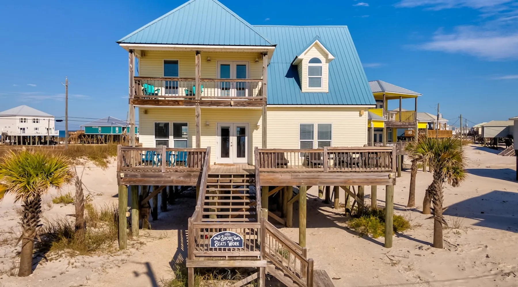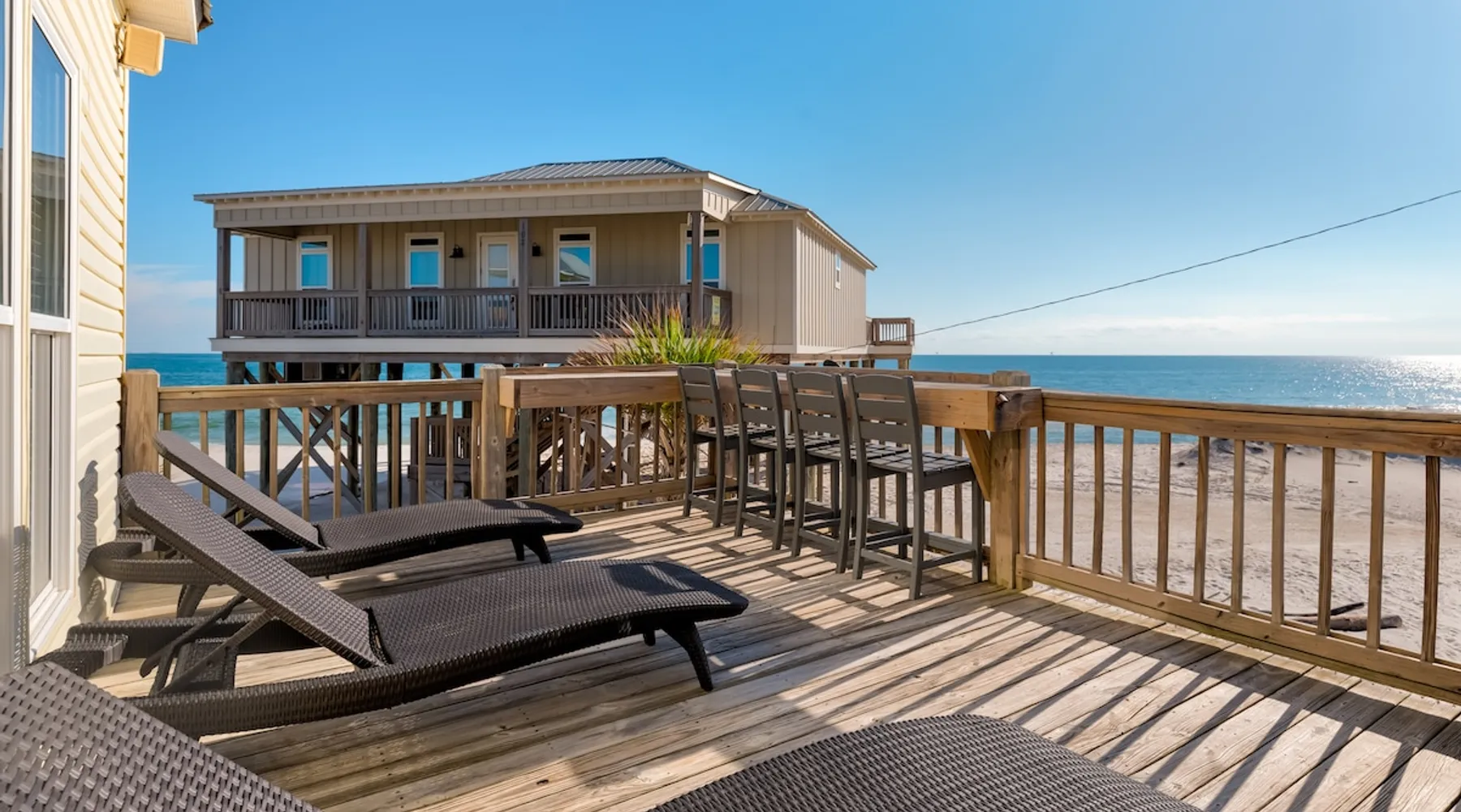 This adorable beach house sits on the Gulf of Mexico with fabulous views anyone would enjoy! The home, built in 2010, is well-furnished and nicely finished with tile floors, crown molding, and stone countertops. The four bedrooms are spacious, and 3 of them enjoy ocean views. The home has 3 porches, a place for everyone to hang out, and one exclusive to the upstairs king suite. The 2nd-floor king suite includes a private coffee bar and private ocean view deck. The house is on the beach, and Other things to note As with all of our Dauphin Island Beach Rentals, all linens, towels and beach towels are provided, WIFI, along with a fully-outfitted kitchen. There will be a starter pack of toilet paper, paper towels, and trash bags; please plan on bringing more for day 2 ;). A great beach vacation is waiting on you! Please note the following: 1. Minimum Age for the Primary Renter is 25, and Primary Renter must be present for the entire stay. 2. Maximum Occupancy numbers include Children 3 and over and cannot be exceeded at any time. 3. All of our Homes are Non-Smoking. 4. A signed Rental Agreement is Required, which contains additional Rules and Guidance. 5. This property does not allow weddings or parties. 6. Check-in time is 3 pm, and check-out time is 10 am. 7. Start dishes and linens before departure. 8. Take the trash can to the street on Tuesday night and Friday night. 9. This home is pet-friendly, dogs only, 2-Pet Maximum Limit - $100 pet fee per pet plus tax applies. Pet Fee is NOT included in Airbnb quote and will result in additional charge.