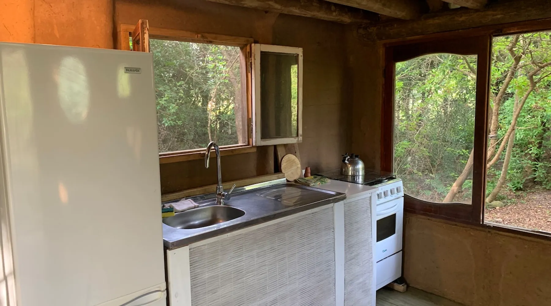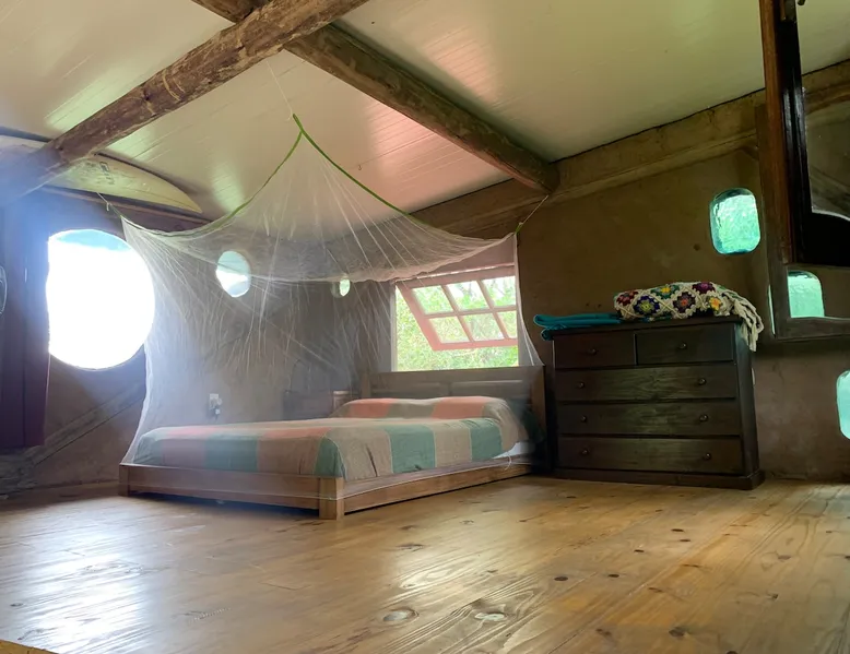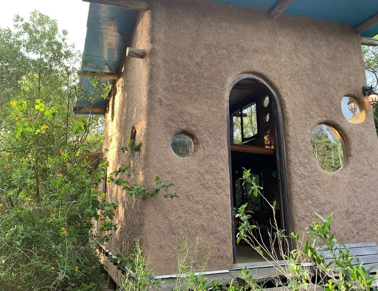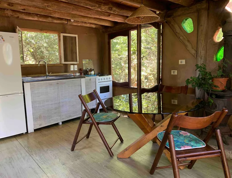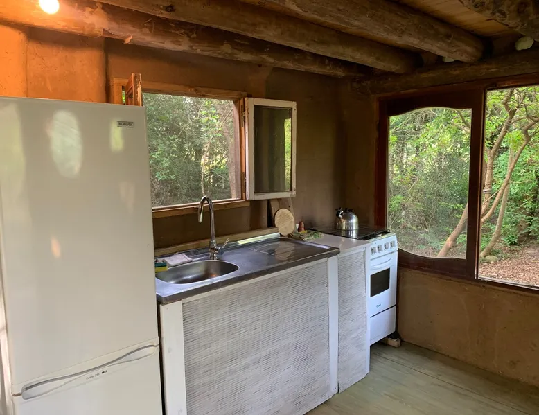 Welcome to our mud home in Punta Negra. Our cozy home invites you to immerse yourself in the serenity of nature. Surrounded by trees that provide shade and fill the air with the song of birds, it is the perfect getaway to rest. With the convenience of being 2 blocks from shops and the bus stop and only 5 blocks from the beach. This beautiful house with a spacious atmosphere, mezzanine and equipped kitchen, is the ideal place to enjoy a beautiful experience. The space 45 square meter mud and wood cabin. The house has a living room, dining room, and kitchen. The room is on a mezzanine floor accessed by stairs. A patio with plenty of shade from native trees, a space with a table, chairs, and a half-tank grill. Parking for cars on the property under the shade of trees. Guest access Access to the entire house and garden
