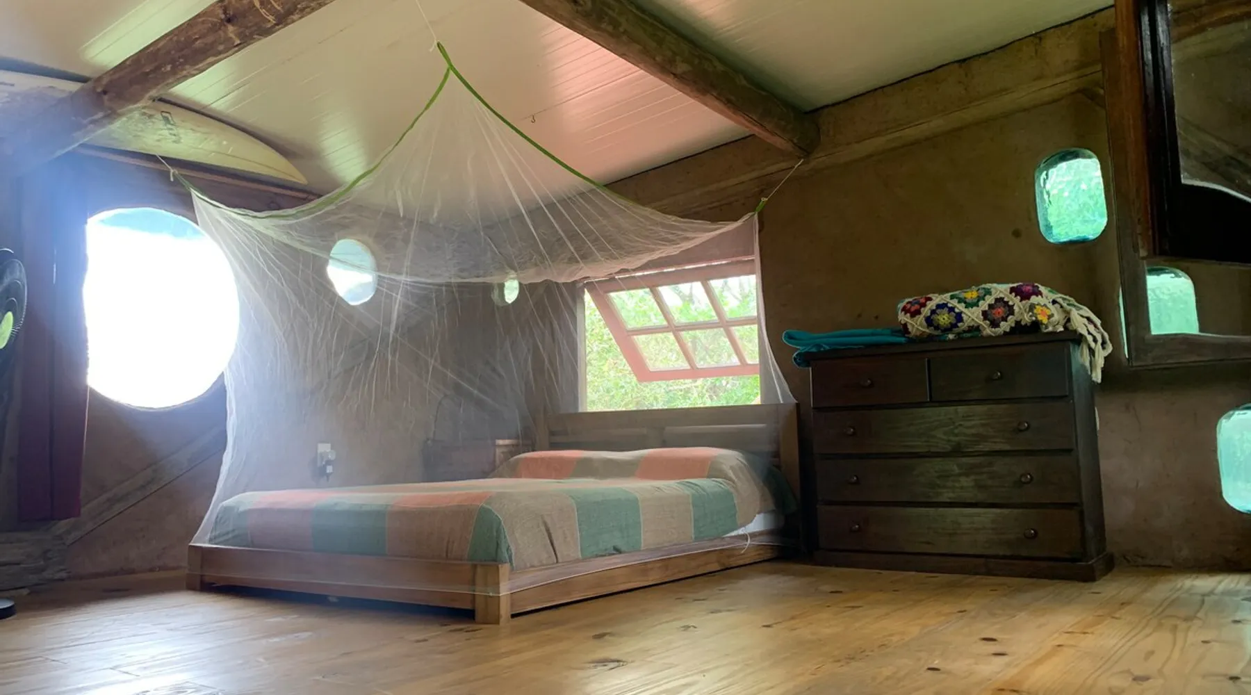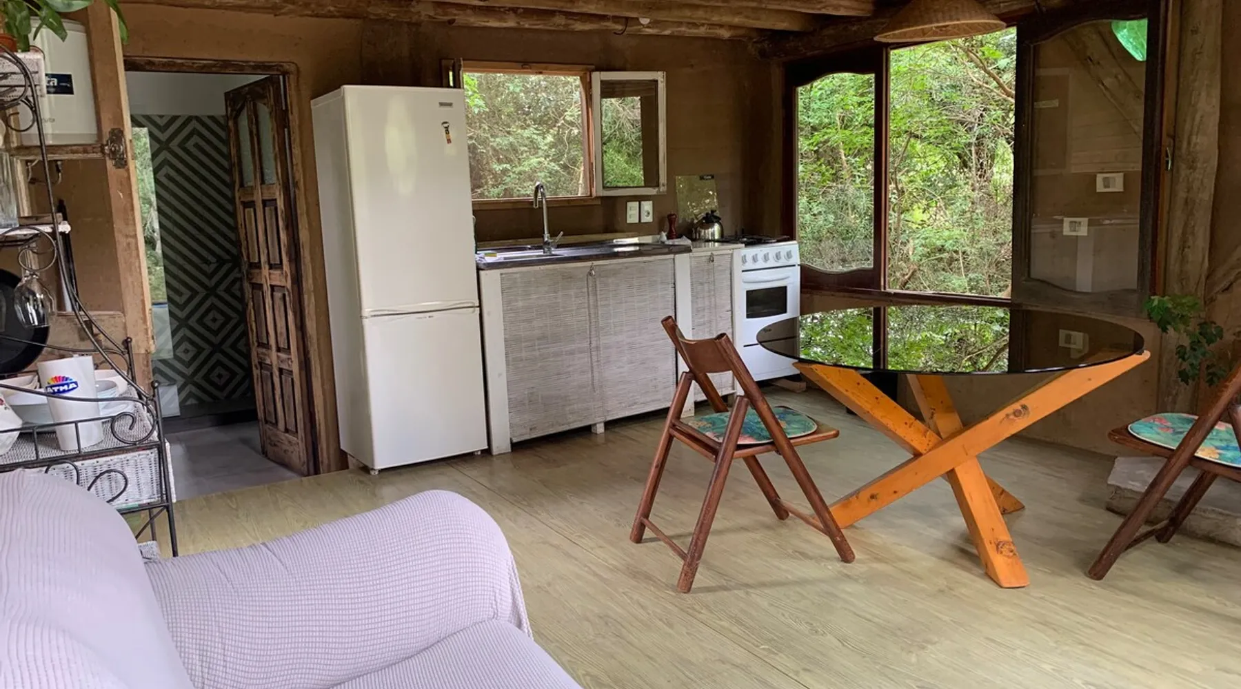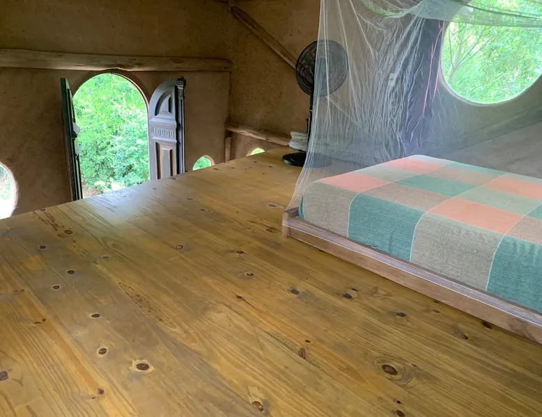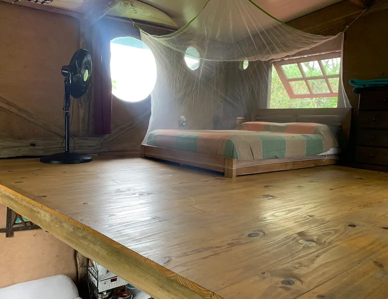 Welcome to our mud home in Punta Negra. Our cozy home invites you to immerse yourself in the serenity of nature. Surrounded by trees that provide shade and fill the air with the song of birds, it is the perfect getaway to rest. With the convenience of being 2 blocks from shops and the bus stop and only 5 blocks from the beach. This beautiful house with a spacious atmosphere, mezzanine and equipped kitchen, is the ideal place to enjoy a beautiful experience. The space 45 square meter mud and wood cabin. The house has a living room, dining room, and kitchen. The room is on a mezzanine floor accessed by stairs. A patio with plenty of shade from native trees, a space with a table, chairs, and a half-tank grill. Parking for cars on the property under the shade of trees. Guest access Access to the entire house and garden