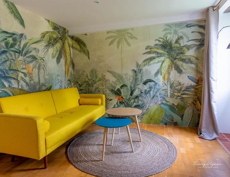 Comfortable Accommodations: Le Truc Bidule in Murs offers family rooms with private bathrooms, garden views, and modern amenities. Each room includes a sofa bed, TV, and soundproofing for a relaxing stay. Exceptional Facilities: Guests enjoy a swimming pool with a view, sun terrace, and lush garden. Free WiFi is available throughout the property, ensuring connectivity. Additional facilities include an outdoor play area, games room, and bicycle parking. Delicious Breakfast: A continental breakfast is served daily, featuring fresh pastries, cheese, and juice. The on-site coffee shop provides a cozy spot to unwind. Convenient Location: Located 48 mi from Tours Val de Loire Airport, the guest house is near attractions such as Château d'Azay-le-Ferron (8.7 mi) and Beauval Zoo (27 mi). Free on-site private parking is available. This holiday home's standout feature is the pool with a view. Boasting a private entrance, this holiday home includes 1 living room, 2 separate bedrooms and 1 bathroom with a shower and a hairdryer. Guests will find a stovetop, a refrigerator, a dishwasher and kitchenware in the kitchen. The holiday home also features a barbecue. The holiday home offers a washing machine, soundproof walls, a tea and coffee maker, a flat-screen TV with cable channels, as well as garden views. The unit has 6 beds.