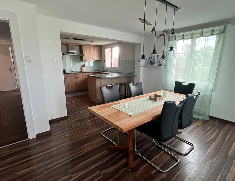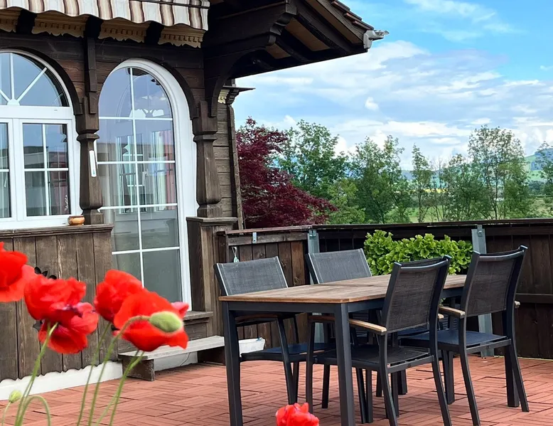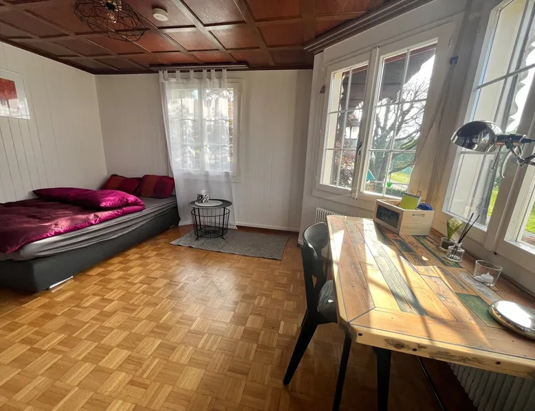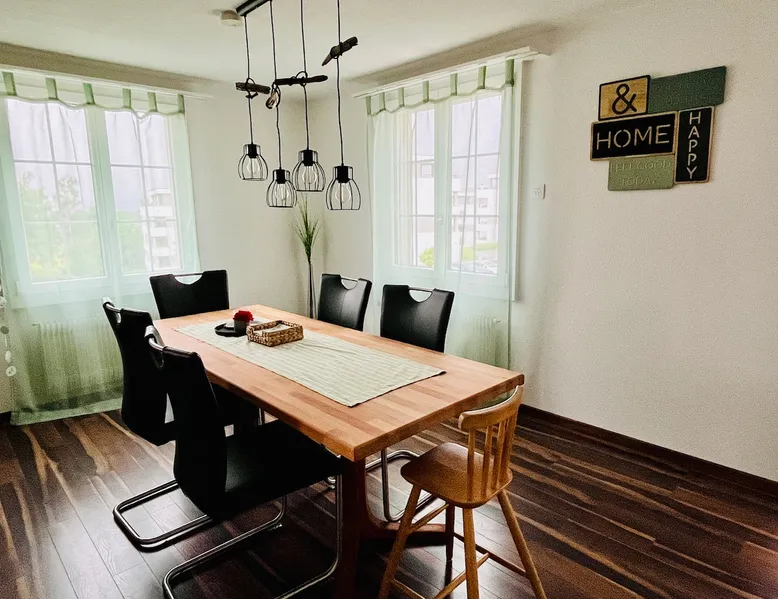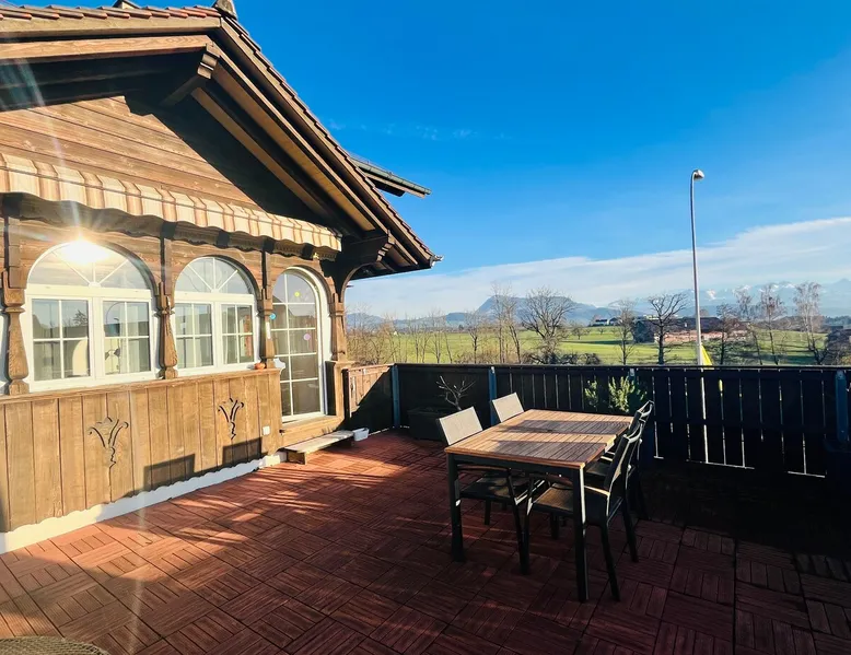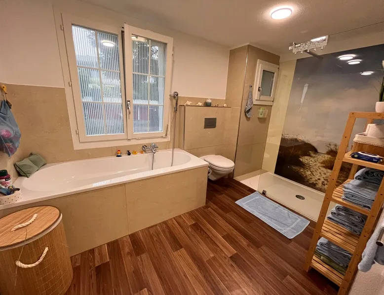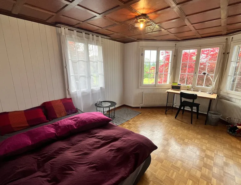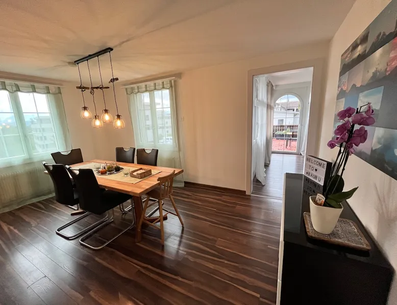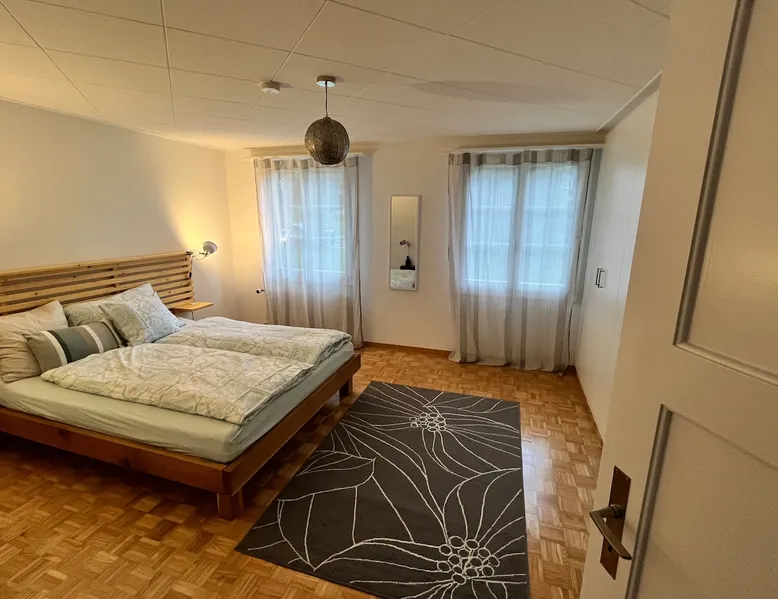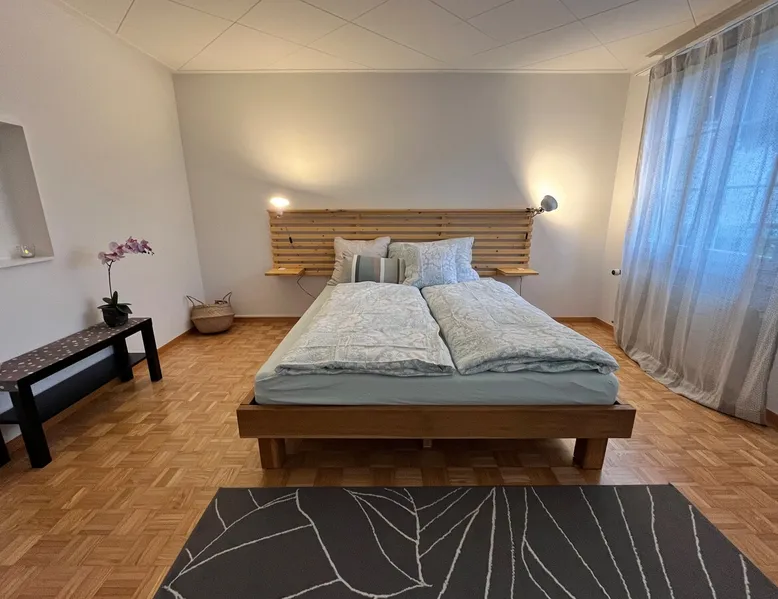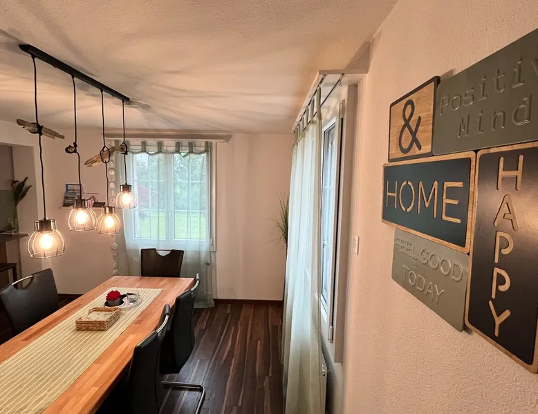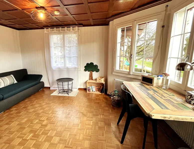 Our apartment on the upper ground floor of our chalet in the Lucerne Seetal offers plenty of space, relaxation and peace with the best view of the Alps, making it ideal for families, friends or business travelers. Look forward to a homely charm, modern amenities and friendly hosts (family.) The spacious kitchen-diner, the cozy living room and a bright, spacious bathroom are just as impressive as the central location with quick connections to Lucerne, Zurich and the surrounding Alpine region. The space Our recently (2023) renovated and newly furnished apartment on the upper ground floor of our family home has 1 large (master) bedroom with lots of storage space/built-in closets and a bay window room (in rustic original condition) with a sofa bed (145x195) and a small work desk. A highlight of the apartment is the open space, fully equipped kitchen with modern appliances (i.e steamer, induction stove) and dining area. The spacious bathroom with plenty of natural light impresses with a large shower, bathtub and double sink. In the elegant, light-filled living room and on the adjacent terrace with garden furniture, cozy moments of relaxation (including sunset) are guaranteed. Guest access The large children's playground (climbing tower with slide and swings) on the hosts property can be used and the vegetable garden next door invites you to harvest depending on the season. A classic BBQ smoker or outdoor grill station is available and can be booked with a pitmaster if required and desired. Other things to note The apartment is about 12 minutes (900m) walk from public transport (Ballwil train station). The entrance to the house is only accessible via stairs and is therefore not or only partially suitable for people with walking difficulties. We are a pet-free and non-smoking household and would like our guests to do the same indoors. The laundry room with washing machine and dryer can be used after consulting the owner's family.