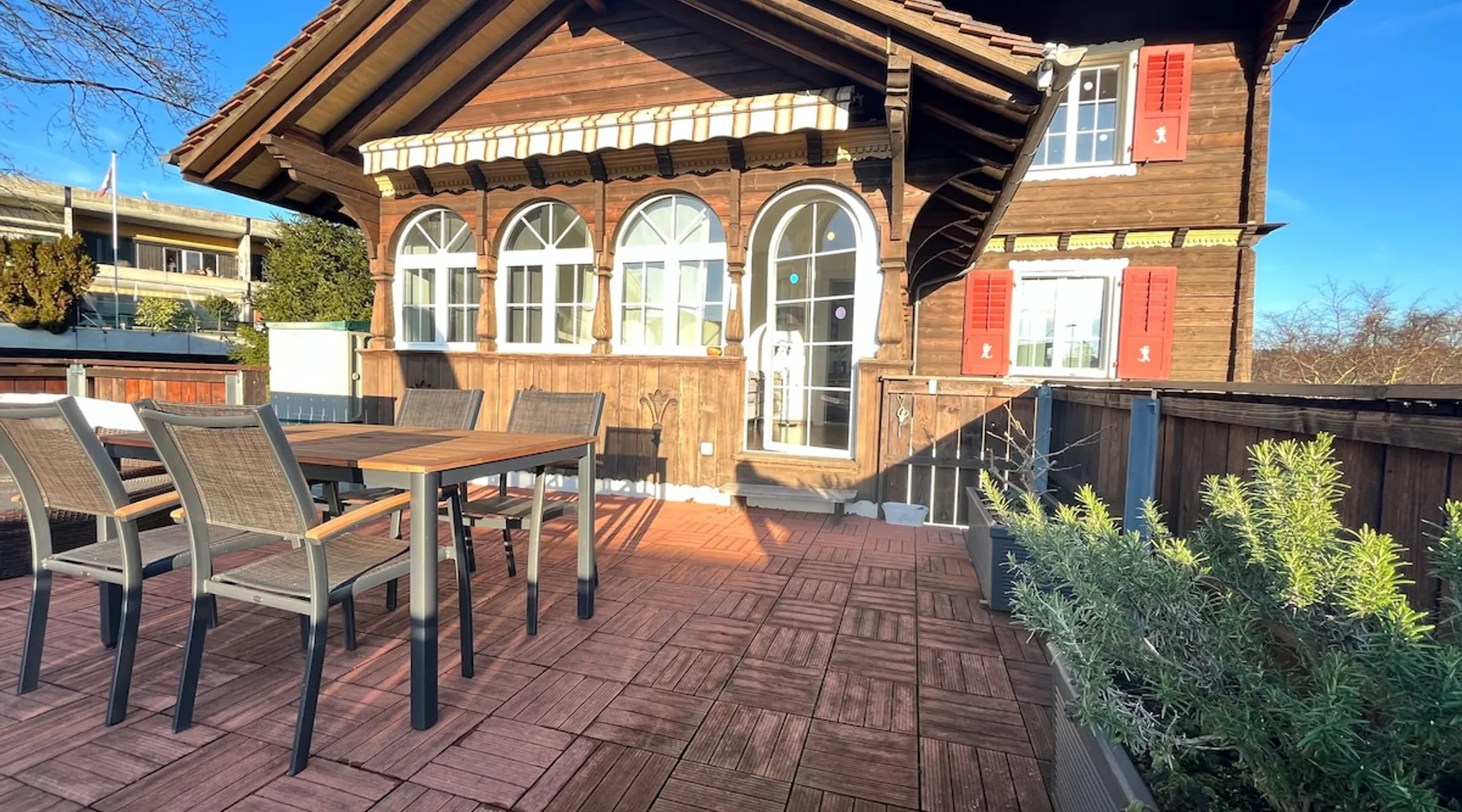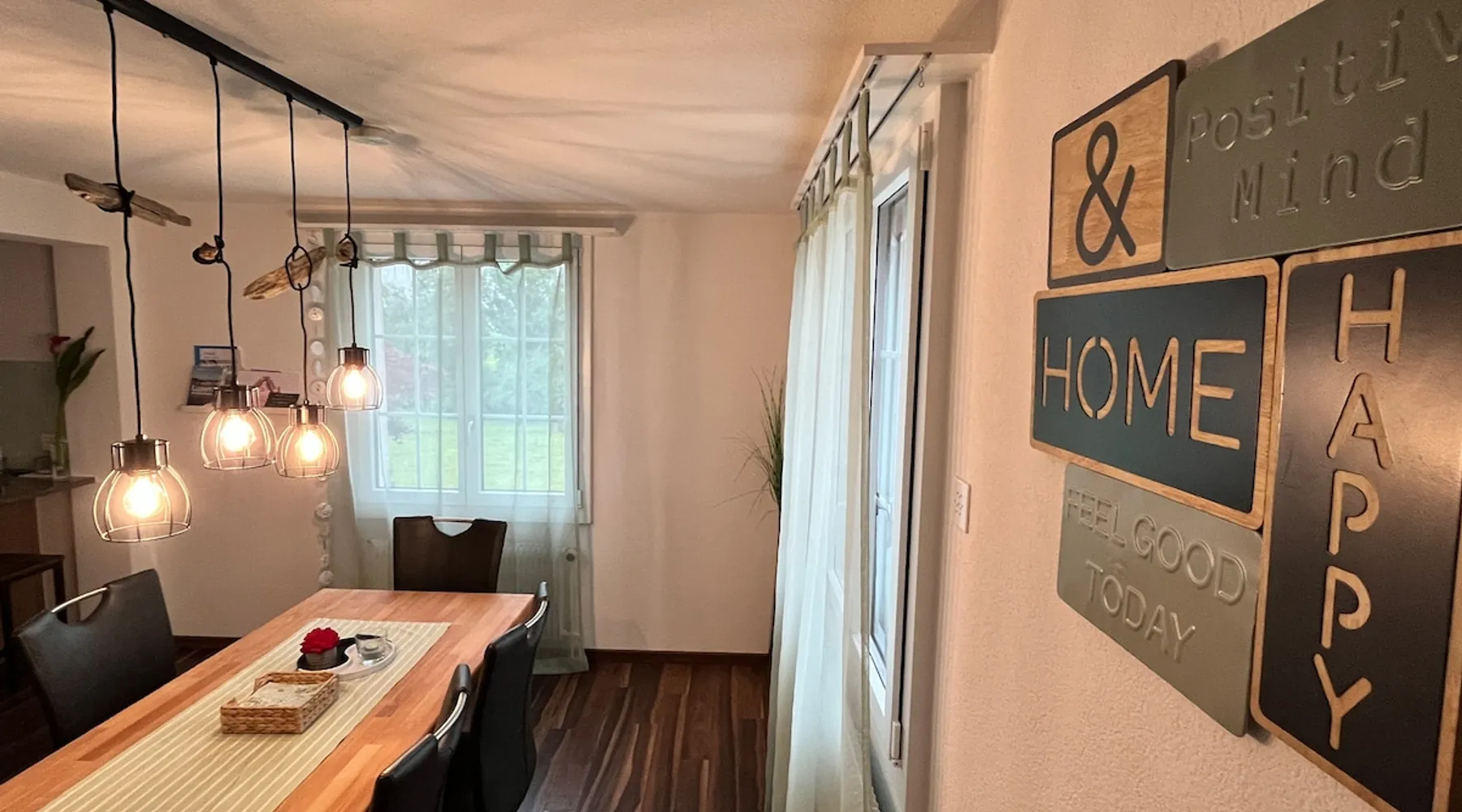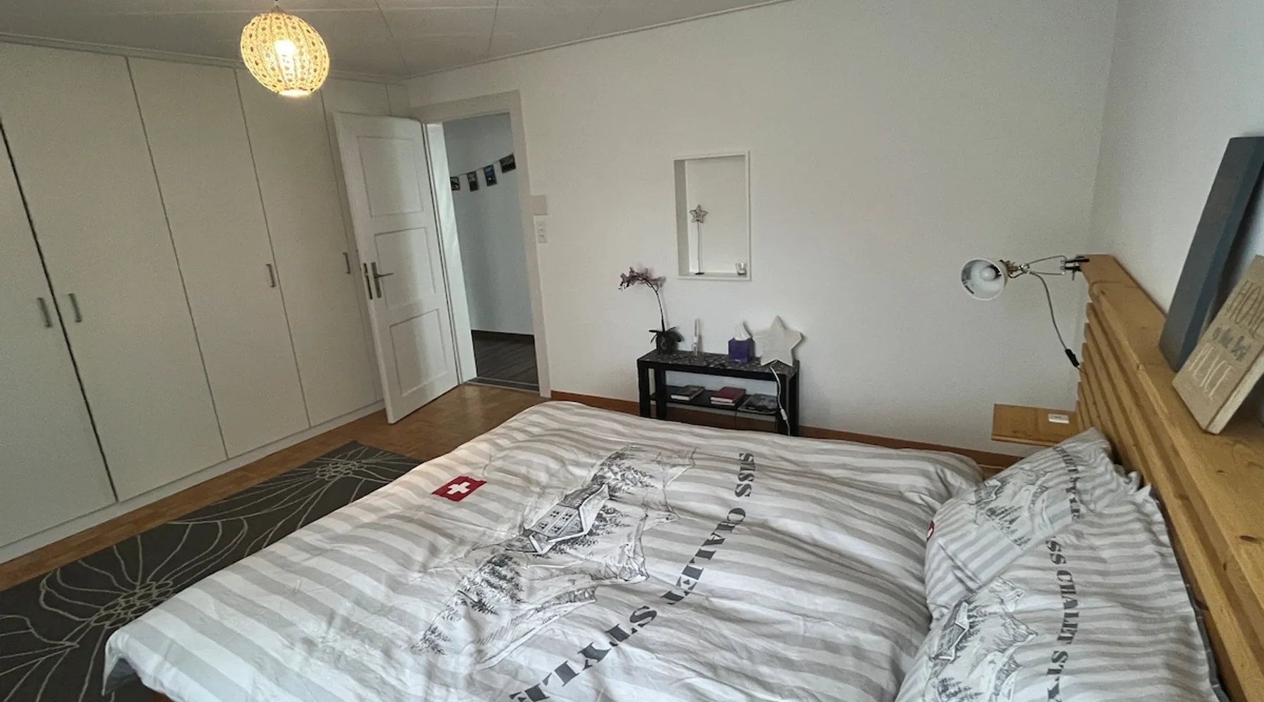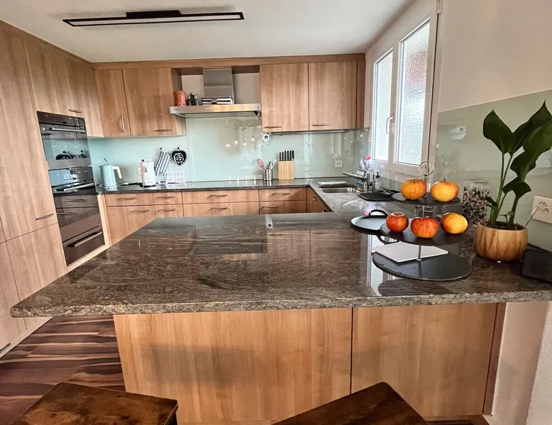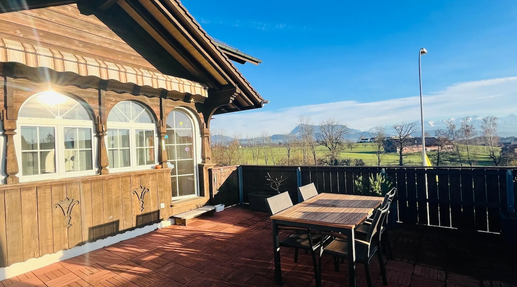 Our apartment on the upper ground floor of our chalet in the Lucerne Seetal offers plenty of space, relaxation and peace with the best view of the Alps, making it ideal for families, friends or business travelers. Look forward to a homely charm, modern amenities and friendly hosts (family.) The spacious kitchen-diner, the cozy living room and a bright, spacious bathroom are just as impressive as the central location with quick connections to Lucerne, Zurich and the surrounding Alpine region. The space Our recently (2023) renovated and newly furnished apartment on the upper ground floor of our family home has 1 large (master) bedroom with lots of storage space/built-in closets and a bay window room (in rustic original condition) with a sofa bed (145x195) and a small work desk. A highlight of the apartment is the open space, fully equipped kitchen with modern appliances (i.e steamer, induction stove) and dining area. The spacious bathroom with plenty of natural light impresses with a large shower, bathtub and double sink. In the elegant, light-filled living room and on the adjacent terrace with garden furniture, cozy moments of relaxation (including sunset) are guaranteed. Guest access The large children's playground (climbing tower with slide and swings) on the hosts property can be used and the vegetable garden next door invites you to harvest depending on the season. A classic BBQ smoker or outdoor grill station is available and can be booked with a pitmaster if required and desired. Other things to note The apartment is about 12 minutes (900m) walk from public transport (Ballwil train station). The entrance to the house is only accessible via stairs and is therefore not or only partially suitable for people with walking difficulties. We are a pet-free and non-smoking household and would like our guests to do the same indoors. The laundry room with washing machine and dryer can be used after consulting the owner's family.