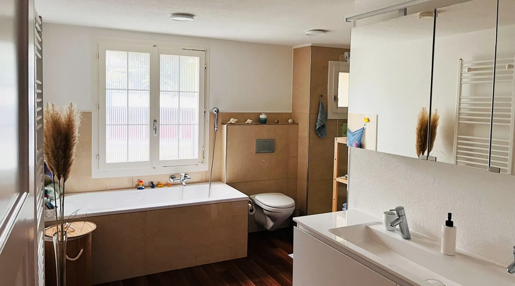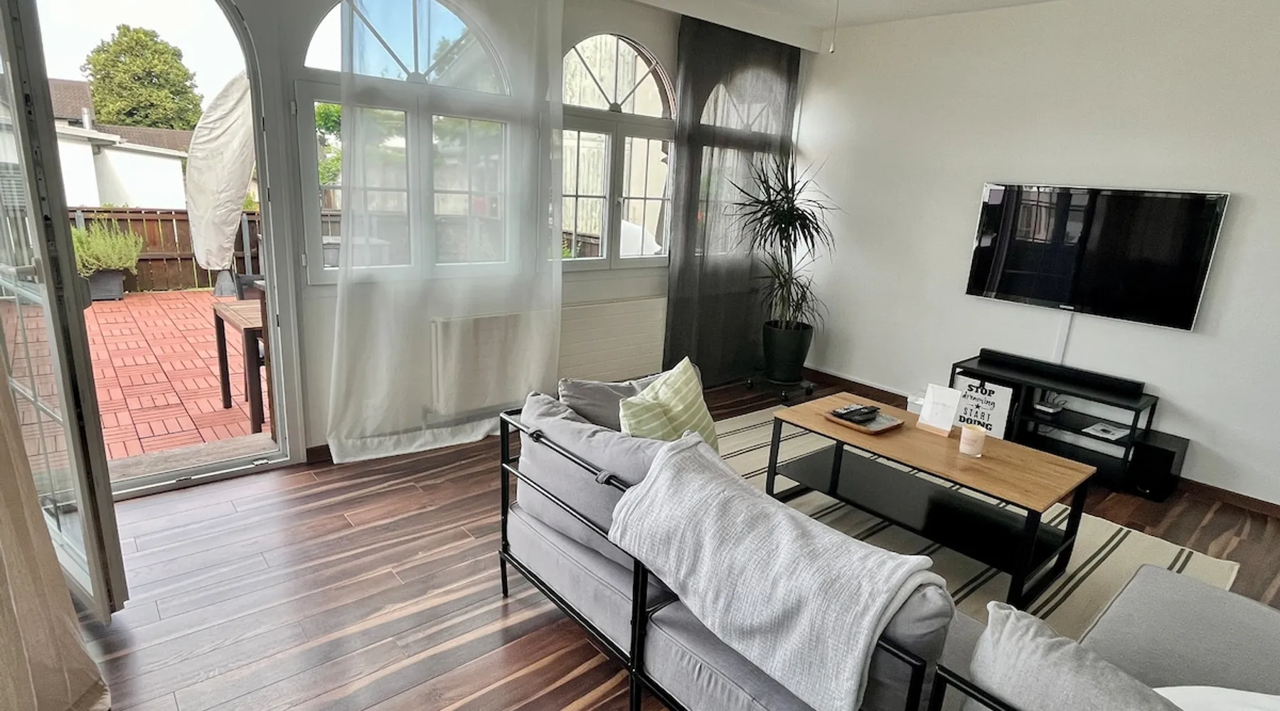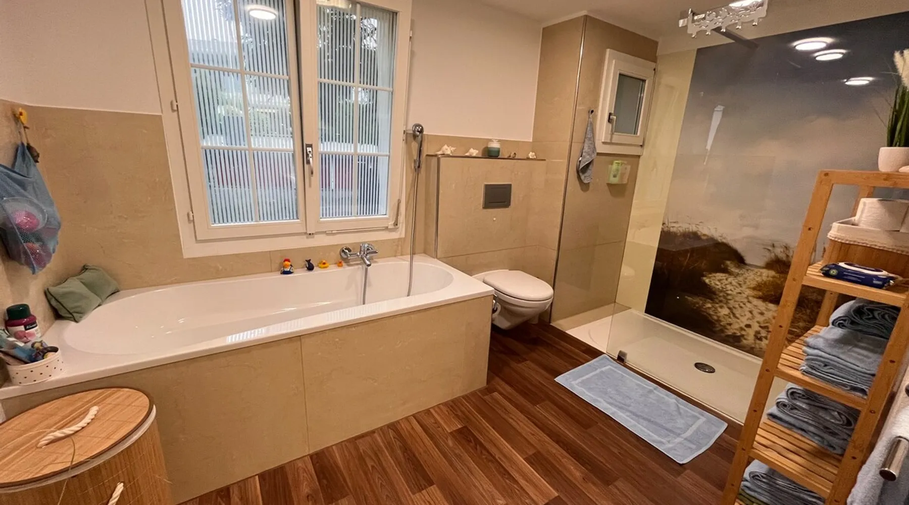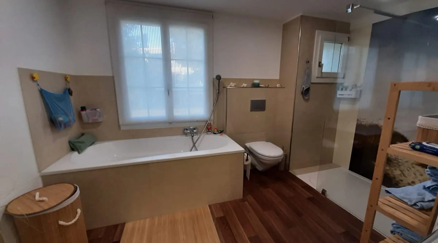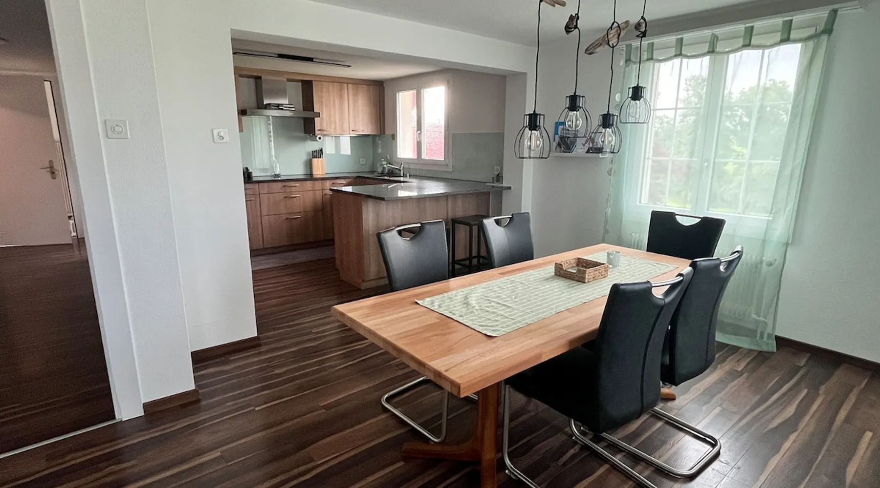 Our apartment on the upper ground floor of our chalet in the Lucerne Seetal offers plenty of space, relaxation and peace with the best view of the Alps, making it ideal for families, friends or business travelers. Look forward to a homely charm, modern amenities and friendly hosts (family.) The spacious kitchen-diner, the cozy living room and a bright, spacious bathroom are just as impressive as the central location with quick connections to Lucerne, Zurich and the surrounding Alpine region. The space Our recently (2023) renovated and newly furnished apartment on the upper ground floor of our family home has 1 large (master) bedroom with lots of storage space/built-in closets and a bay window room (in rustic original condition) with a sofa bed (145x195) and a small work desk. A highlight of the apartment is the open space, fully equipped kitchen with modern appliances (i.e steamer, induction stove) and dining area. The spacious bathroom with plenty of natural light impresses with a large shower, bathtub and double sink. In the elegant, light-filled living room and on the adjacent terrace with garden furniture, cozy moments of relaxation (including sunset) are guaranteed. Guest access The large children's playground (climbing tower with slide and swings) on the hosts property can be used and the vegetable garden next door invites you to harvest depending on the season. A classic BBQ smoker or outdoor grill station is available and can be booked with a pitmaster if required and desired. Other things to note The apartment is about 12 minutes (900m) walk from public transport (Ballwil train station). The entrance to the house is only accessible via stairs and is therefore not or only partially suitable for people with walking difficulties. We are a pet-free and non-smoking household and would like our guests to do the same indoors. The laundry room with washing machine and dryer can be used after consulting the owner's family.