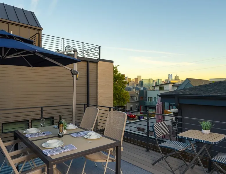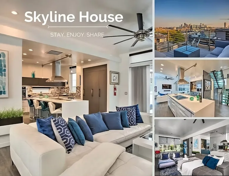 The Skyline House is a beautiful home just outside of downtown Denver in the heart of Lohi - one of the trendiest neighborhoods in Denver. We are focused on bringing together groups who stay there through a quality space, good conversation, and all the city has to offer. The kitchen is fully stocked, there is more than enough room for everyone, brand new appliances, and every room was designed to make your stay as fun as it is comfortable. Fun, privacy, comfort, and space are what you will find The space ☆☆ BEDROOMS ☆☆ This home has 2 bedrooms and can accommodate up to 8 guests comfortably. There are a total of 1 King Bed, 1 Queen, 1 Queen Sofa Bed, and 2 foldable style twin size couches for sleeping. Bedroom 1 - Indulge in the spacious luxury of the master bedroom, featuring a California King bed. The modern design blends comfort and style seamlessly, offering a serene retreat with privacy and beautiful views Bedroom 2 - This modern bedroom boasts a Queen bed, creating a perfect blend of comfort and sophistication. Sleek furnishings and elegant decor make it a cozy yet stylish haven. Living Room - With a Queen Sized sofa perfect for 2 and an additional 2 separate twin pull out sofas for 2 more individuals. The living room can have up to 4 people each sleeping in their own fully stretched out spot. ☆☆2.5 BATHROOMS☆☆ All bathrooms feature premium shampoo, conditioner, body wash, brand new hair dryers + plush towels. - Bathroom 1: FULL BATH w/ tub & shower - Bathroom 2: FULL BATH w/ walk-in shower - Bathroom 3: HALF BATH ☆☆LIVING ROOM 1☆☆ A stylish and luxurious lounge with a large TV and open layout. Put on some tunes, kick back and relax in oversized couch and a leather individual sofa chairs… this room has all the vibes! ☆☆CHEF'S KITCHEN☆☆ Freshly remodeled, open-concept kitchen has plenty of space to prep those big group meals. You’ll find brand new cooking essentials from premium non-stick pans and bakeware to sets of plates, bowls and drink-ware for 10+ guests. Coffee maker, double toaster, seasoning, olive oil, coffee and teas, linen napkins and more. ☆☆DINING ROOM☆☆ Gather friends & family around a stunning table with enough seating for 8. ☆☆PRIVATE OUTDOOR SPACE☆☆ Enjoy a fully enclosed, private backyard featuring: ✔ Grill ✔ Outdoor sectional sofa ✔ Large Umbrella ✔ Patio dining table ✔ Rooftop Terrace with the best view in Denver ✔ Multiple Outdoor Terraces ☆☆AMPLE PARKING☆☆ ✔ 1 Car Garage ✔ 1 Car Driveway ✔ Free street parking on select days Guest access You’ll have access to every room and feature of this home except the owner's closet. Make yourself at home; your hosts are just a phone call or text away if you have any questions or want recommendations for things to do nearby. There is a keypad on the front door for easy and secure access to the home. Other things to note This home is in a residential area and being respectful to the neighbors is very important. Parties that are excessively noisy will be shut down, and possibly be threatened with civil prosecution. If you are unsure if your group fits this description, please reach out to ask and we will be happy to help. Several days prior to check-in I will send you a link that contains an e-manual. In this manual, you will find all the necessary and relevant information relating to your stay. I have also included my suggestions for the best things to do around Denver, my favorite restaurants, hikes, nightlife, and much more! Please note that smoking of any kind is forbidden inside and will result in a minimum fine of $1000. You are welcome to step onto the back patio and enjoy. Important: We are committed to protecting our properties which is why we've partnered with Know Your Guest, the leading vacation rental guest-screening provider. Please note that before your booking begins, you will need to verify your details through Know Your Guest. You will also be given the choice between paying a refundable deposit or buying a non-refundable damage waiver. We suggest you buy the damage waiver as this protects you in case you cause accidental damage during a booking. Reservations may be subject to extra guest fees, as well as additional charges for optional services such as adding pets or requesting early check-ins. Registration details 2020-BFN-0003979