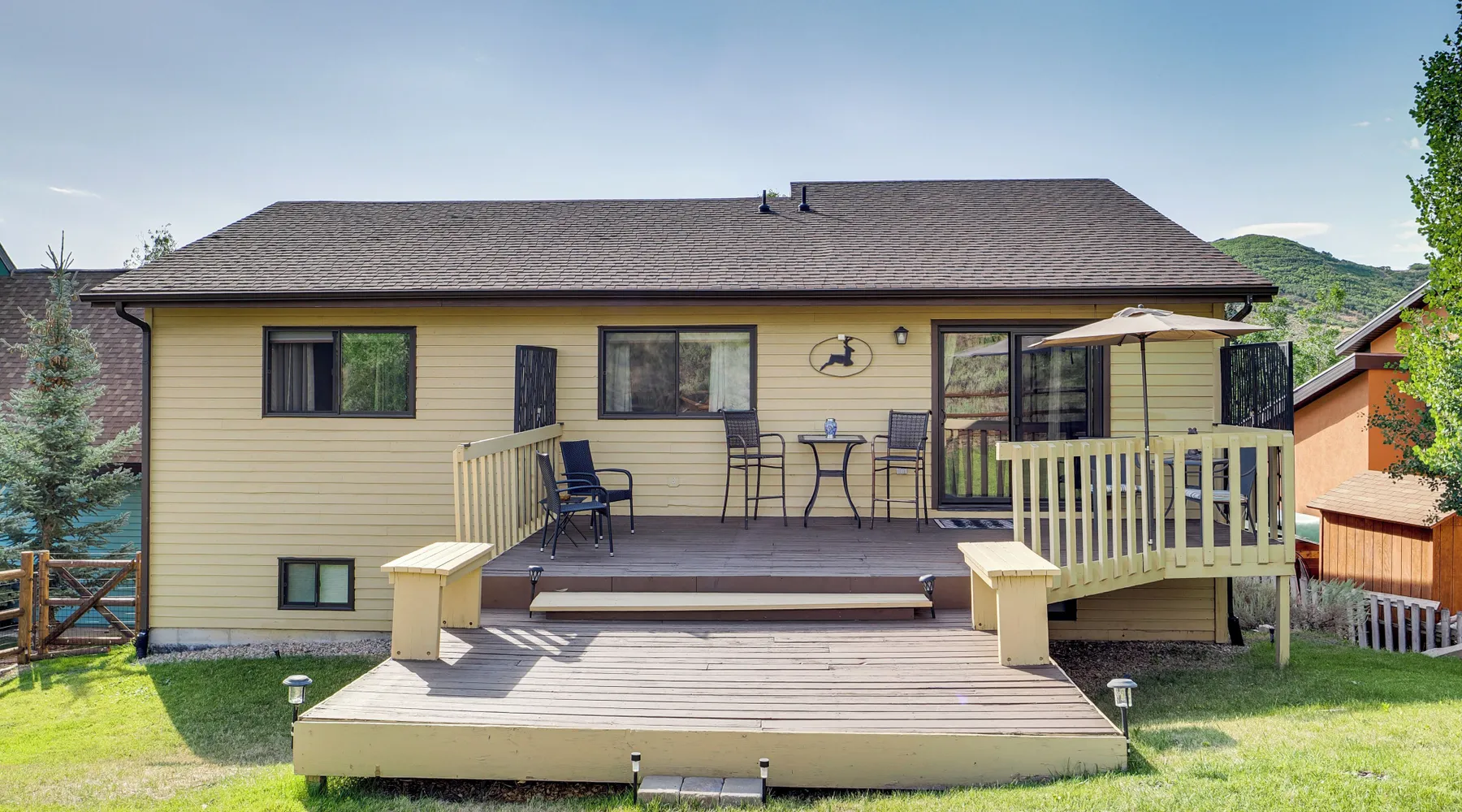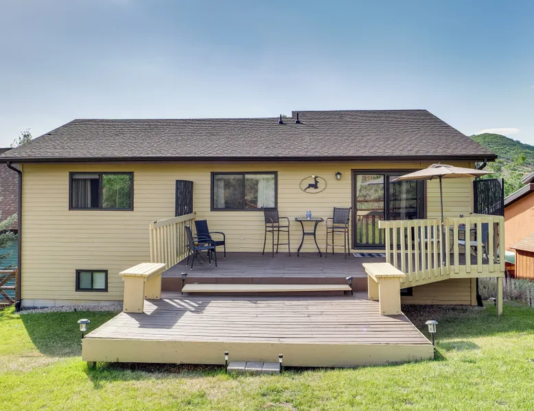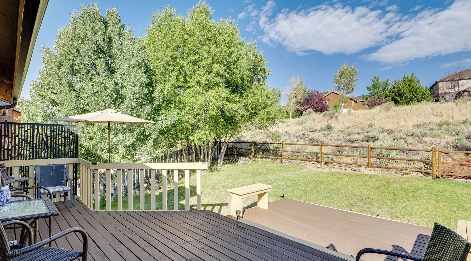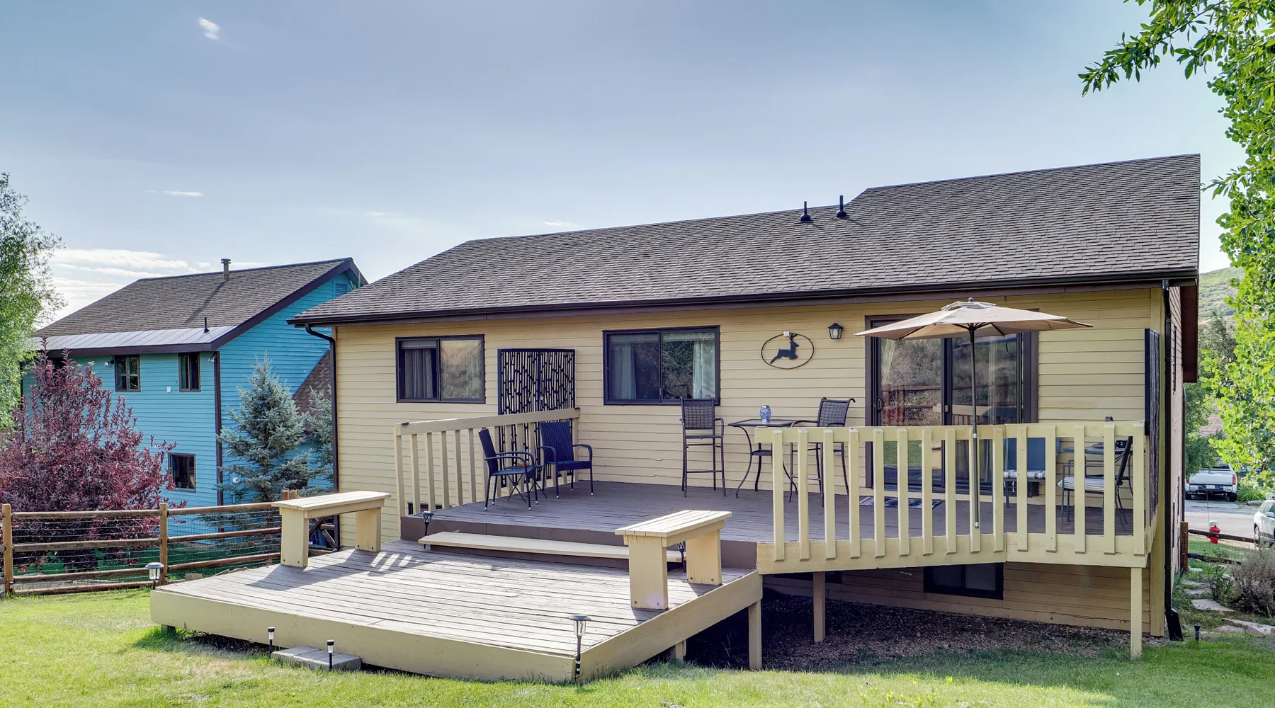 Nestled near world-class ski resorts and scenic hiking trails, this 4-bedroom, 3-bathroom Park City home is the perfect base for your Utah adventure! This vacation rental offers a gas grill for cookouts, a deck for enjoying the fresh mountain air, a fully equipped kitchen, and a cozy fireplace for chilly nights. Explore attractions, like Park City Mountain for ski days, Main Street for shops and restaurants, or Trailside Park for outdoor bliss, before returning to this home to unwind in style. -- THE PROPERTY -- Hiking + Biking Trails Nearby | Washer + Dryer | Dedicated Workspace | 8 Mi to Deer Valley Resort Bedroom 1: King Bed | Bedroom 2: Queen Bed | Bedroom 3: King Bed | Bedroom 4: Queen Bed | Additional Sleeping: Pack 'n Play OUTDOOR LIVING: Gas grill, deck, mountain view, updated outdoor furniture, fenced yard INDOOR LIVING: Flat-screen Smart TVs, ceiling fans, renovated en-suite bathroom, 2 gas fireplaces, walk-in closet, bonus room w/ bean bag chairs, laptop friendly KITCHEN: Dishwasher, microwave, stove/oven, Keurig coffee maker, toaster, dishware & flatware, pots, pans, refrigerator, slow cooker, air fryer, cooking basics GENERAL: Linens, towels, central heating, complimentary toiletries, keyless entry, free WiFi ACCESSIBILITY: 2-story home, 4 steps required for entry, bedrooms + bathrooms on 1st floor FAQ: No A/C PARKING: Driveway (4 vehicles) -- THE LOCATION -- POWDER FUN: Park City Mountain (7 miles), Deer Valley Resort (8 miles), Solitude Mountain Resort (40 miles), Alta Ski Area (41 miles), Brighton Resort (42 miles) OUTDOOR ADVENTURE: North Round Valley Trailhead (walking distance), Trailside Park (0.7 miles), Round Valley Quinn's Trailhead (4 miles), Empire Pass View Area (7 miles), Woodward Park City (8 miles), Sunny Slopes Trailhead (8 miles), Guardsmans Pass Overlook (13 miles), Bear Ridge Adventures (Dog Sledding) (16 miles) AREA ATTRACTIONS: Park City Ice Arena (4 miles), Utah Olympic Park (6 miles), The Alf Engen Ski Museum (6 miles), Park City Museum (7 miles), Main Street (7 miles), Ice Castles (21 miles) AIRPORT: Salt Lake City International Airport (35 miles) -- REST EASY WITH US -- Evolve makes it easy to find and book properties you'll never want to leave. You can relax knowing that our properties will always be ready for you and that we'll answer the phone 24/7. Even better, if anything is off about your stay, we'll make it right. You can count on our homes and our people to make you feel welcome — because we know what vacation means to you. -- POLICIES -- - No smoking - No pets allowed - No events, parties, or large gatherings - Additional fees and taxes may apply - Photo ID may be required upon check-in - NOTE: This 2-story home requires 4 external steps for entry, but there are bedrooms and bathrooms on the 1st floor - NOTE: The property does not offer air conditioning