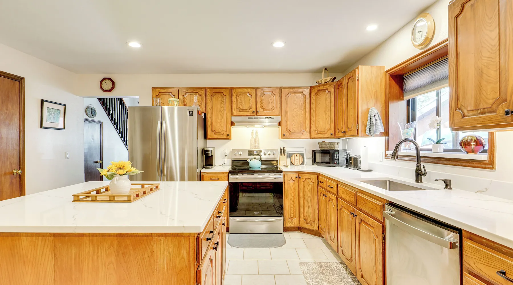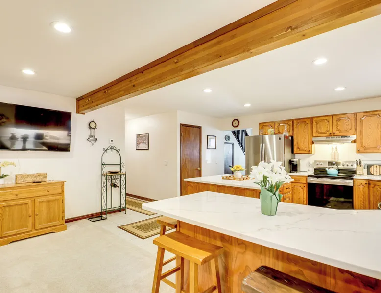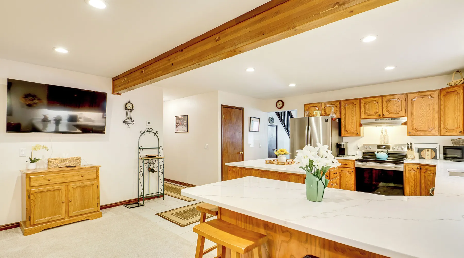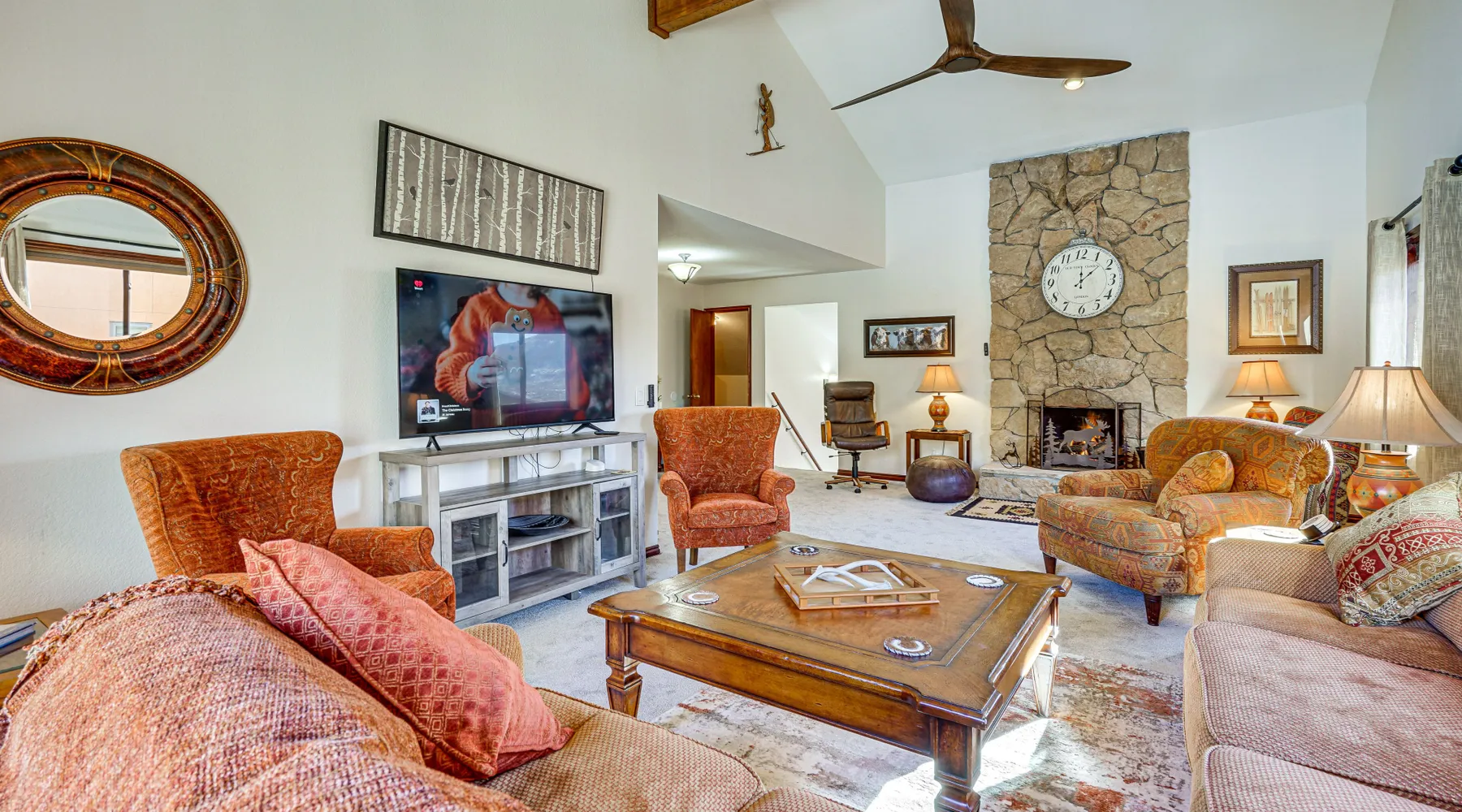 Nestled near world-class ski resorts and scenic hiking trails, this 4-bedroom, 3-bathroom Park City home is the perfect base for your Utah adventure! This vacation rental offers a gas grill for cookouts, a deck for enjoying the fresh mountain air, a fully equipped kitchen, and a cozy fireplace for chilly nights. Explore attractions, like Park City Mountain for ski days, Main Street for shops and restaurants, or Trailside Park for outdoor bliss, before returning to this home to unwind in style. -- THE PROPERTY -- Hiking + Biking Trails Nearby | Washer + Dryer | Dedicated Workspace | 8 Mi to Deer Valley Resort Bedroom 1: King Bed | Bedroom 2: Queen Bed | Bedroom 3: King Bed | Bedroom 4: Queen Bed | Additional Sleeping: Pack 'n Play OUTDOOR LIVING: Gas grill, deck, mountain view, updated outdoor furniture, fenced yard INDOOR LIVING: Flat-screen Smart TVs, ceiling fans, renovated en-suite bathroom, 2 gas fireplaces, walk-in closet, bonus room w/ bean bag chairs, laptop friendly KITCHEN: Dishwasher, microwave, stove/oven, Keurig coffee maker, toaster, dishware & flatware, pots, pans, refrigerator, slow cooker, air fryer, cooking basics GENERAL: Linens, towels, central heating, complimentary toiletries, keyless entry, free WiFi ACCESSIBILITY: 2-story home, 4 steps required for entry, bedrooms + bathrooms on 1st floor FAQ: No A/C PARKING: Driveway (4 vehicles) -- THE LOCATION -- POWDER FUN: Park City Mountain (7 miles), Deer Valley Resort (8 miles), Solitude Mountain Resort (40 miles), Alta Ski Area (41 miles), Brighton Resort (42 miles) OUTDOOR ADVENTURE: North Round Valley Trailhead (walking distance), Trailside Park (0.7 miles), Round Valley Quinn's Trailhead (4 miles), Empire Pass View Area (7 miles), Woodward Park City (8 miles), Sunny Slopes Trailhead (8 miles), Guardsmans Pass Overlook (13 miles), Bear Ridge Adventures (Dog Sledding) (16 miles) AREA ATTRACTIONS: Park City Ice Arena (4 miles), Utah Olympic Park (6 miles), The Alf Engen Ski Museum (6 miles), Park City Museum (7 miles), Main Street (7 miles), Ice Castles (21 miles) AIRPORT: Salt Lake City International Airport (35 miles) -- REST EASY WITH US -- Evolve makes it easy to find and book properties you'll never want to leave. You can relax knowing that our properties will always be ready for you and that we'll answer the phone 24/7. Even better, if anything is off about your stay, we'll make it right. You can count on our homes and our people to make you feel welcome — because we know what vacation means to you. -- POLICIES -- - No smoking - No pets allowed - No events, parties, or large gatherings - Additional fees and taxes may apply - Photo ID may be required upon check-in - NOTE: This 2-story home requires 4 external steps for entry, but there are bedrooms and bathrooms on the 1st floor - NOTE: The property does not offer air conditioning