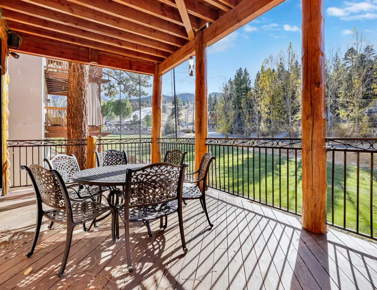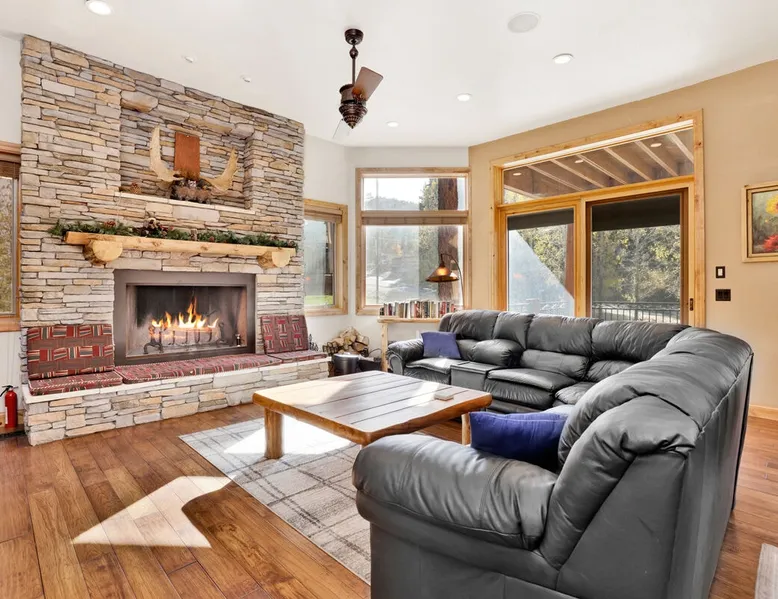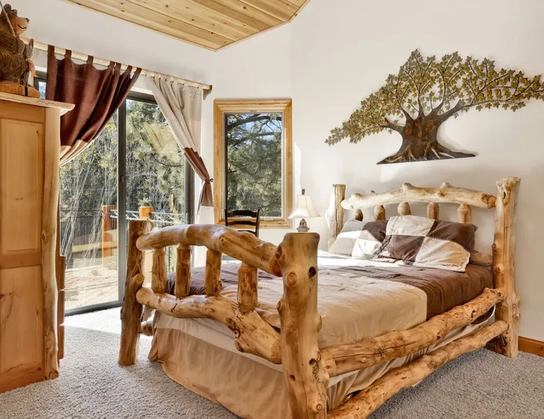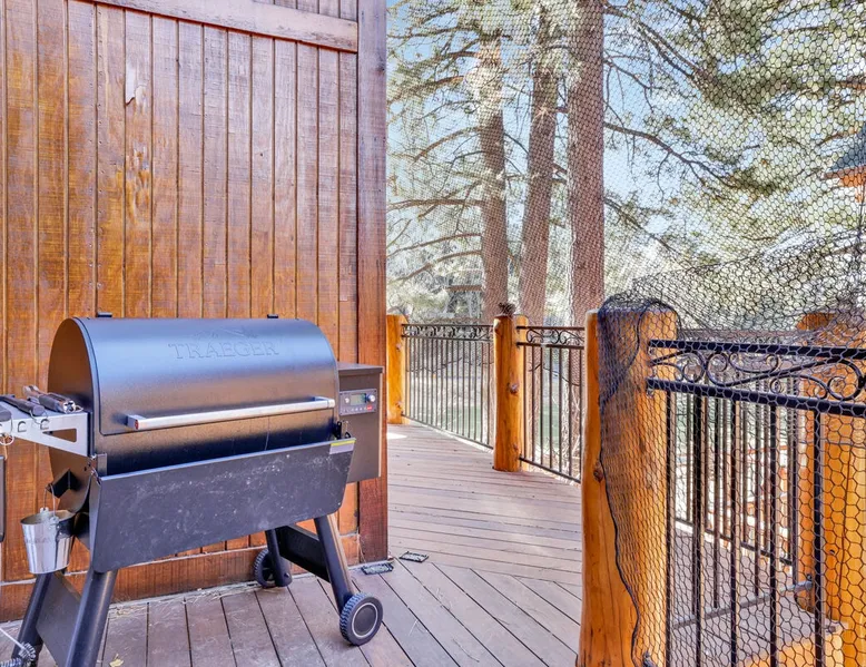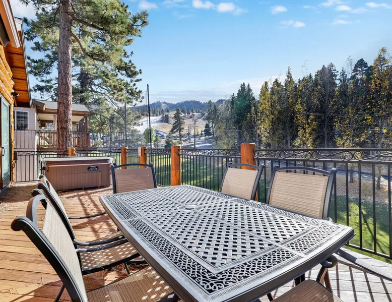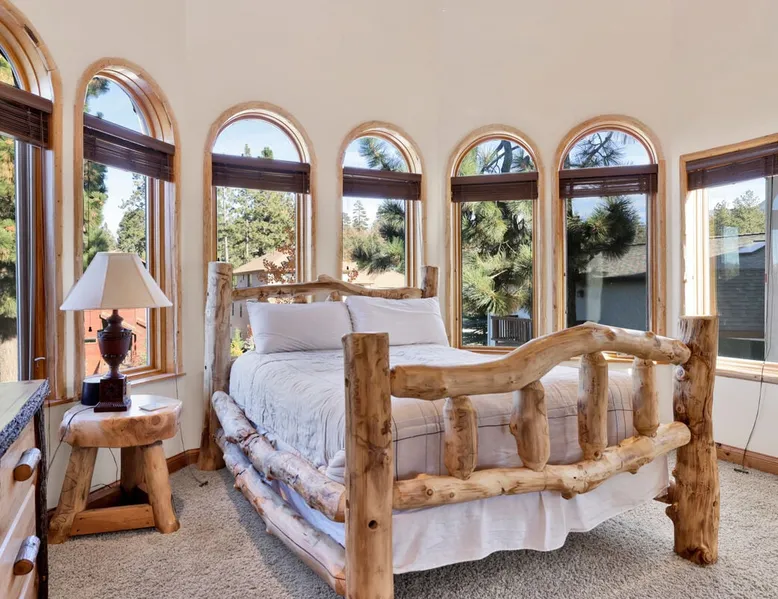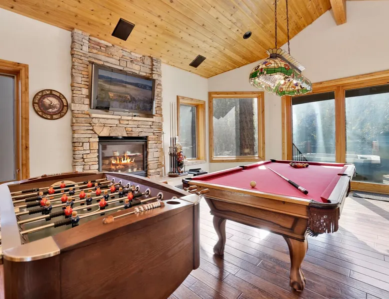 Wolf Creek Castle truly lives up to it's name offering guests an exceptional Big Bear vacation experience with awesome views of Bear Mountain's golf course or ski slopes from your own private gated community, this one-of-a-kind mountain castle is an entertainers dream. Sprawling with luxury spaces for your group to spread out you will have everything you need right on site to make the most of your next trip to the mountains. Come experience this incredible chalet for your next vacation today!! The space The open floor plan seamlessly connects the living area to the expansive kitchen and dining spaces, fostering an ideal environment for entertaining. The chef in your group will appreciate the well-equipped kitchen, featuring beautiful oak cabinets, high-end appliances, and a built-in beverage cooler. The custom log table furnishings in the formal dining room complement the breakfast bar, ensuring ample seating for your group. Discover the delights of the game room loft upstairs, this is where entertainment reigns supreme. Engage in friendly competition with pool or Foosball or unwind by the wood-burning fireplace and streaming TV. Access the upper-level sun deck, where a private hot tub awaits, offering a perfect retreat under the stars. For added convenience, a separate storage room accommodates snow gear or lake toys, while a laundry room with a washer and dryer is on hand for your convenience. With heated bathroom floors and double tankless water heaters, Wolf Creek Castle is designed for the utmost comfort during your mountain escape. This chalet caters to large groups, ensuring that all rooms are meticulously prepared with warm linens, blankets, pillows, and fresh shower towels upon your arrival. Grill up a delicious dinner on the provided propane BBQ or unwind in the hot tub, soaking in the serenity of the surroundings. From top to bottom, Wolf Creek Castle is meticulously furnished with your vacation experience in mind, offering true rustic mountain elegance. Spoil yourselves with an unforgettable retreat in the lap of luxury at Wolf Creek Castle! Sleeping Arrangements: Bedroom 1: Queen Bed, Private 3/4 Bath (Shower Only)- Upstairs 2nd Level Bedroom 2: Full/Twin Bunk- Upstairs 2nd Level Bedroom 3: Full Bed, Balcony Access- Upstairs 2nd Level Bedroom 4: Queen Bed, Private Bath w/ Jetted Tub- Downstairs Entry Level Open Loft: Full Futon + Twin Roll Away- Upstairs 2nd Level Living Room: Full Sleeper Sofa- Downstairs Entry Level Bathroom Arrangements: Hallway Full Bath- Downstairs Entry Level Private 3/4 Bath (Shower Only)- Bedroom 1- Upstairs 2nd Level Hallway Full Bath- Upstairs 2nd Level Private Full Bath w/ Jetted Spa Tub- Bedroom 4- Downstairs Entry Level -Sleeps 15 | 10 Adults Max + 5 Kids -4 Cars Driveway Parking -NO PETS ALLOWED- Fines Imposed for Pets Found on Property -2,760 Total Square Feet Registration Details 2023-2571