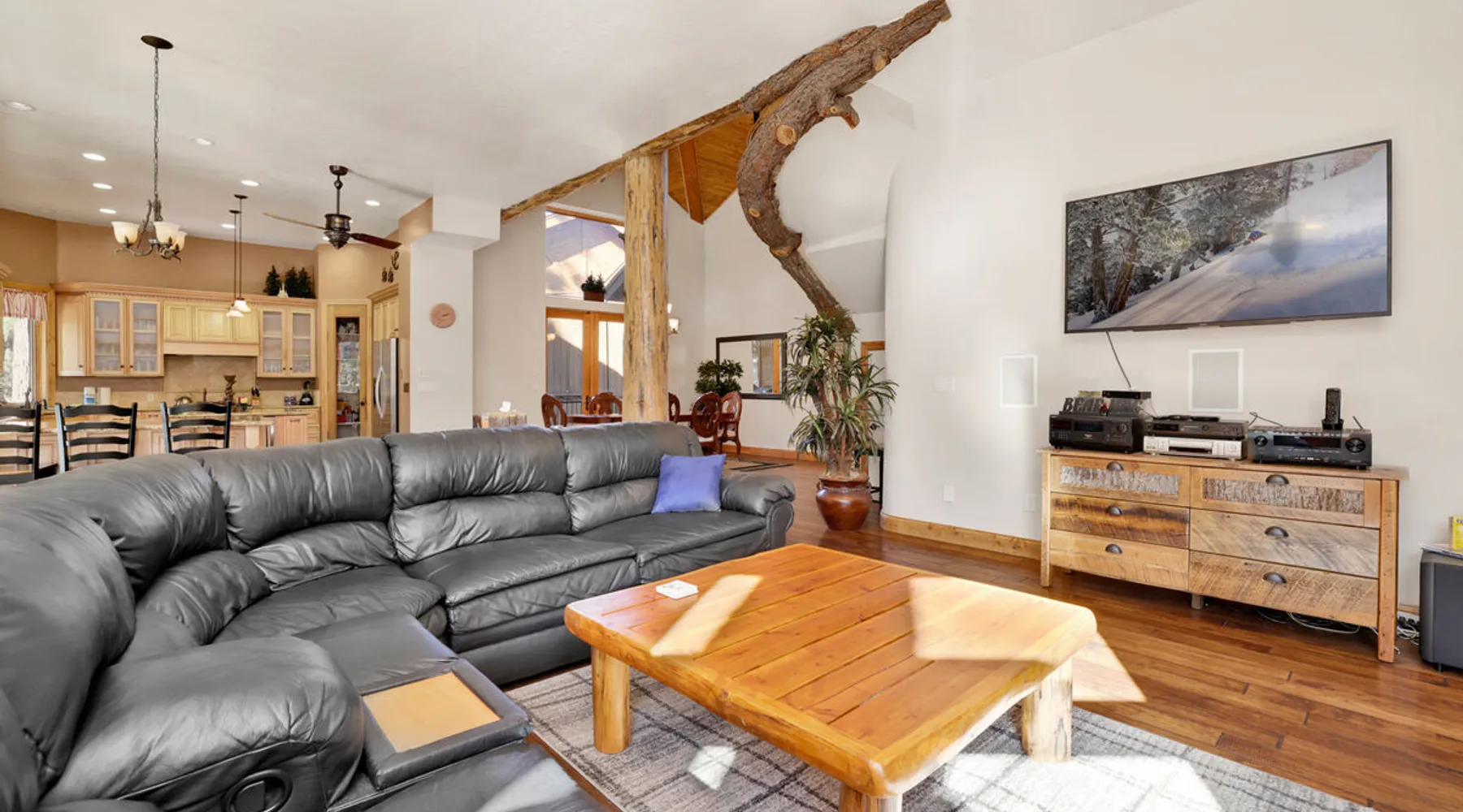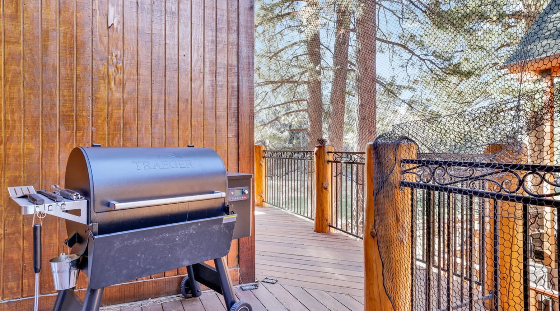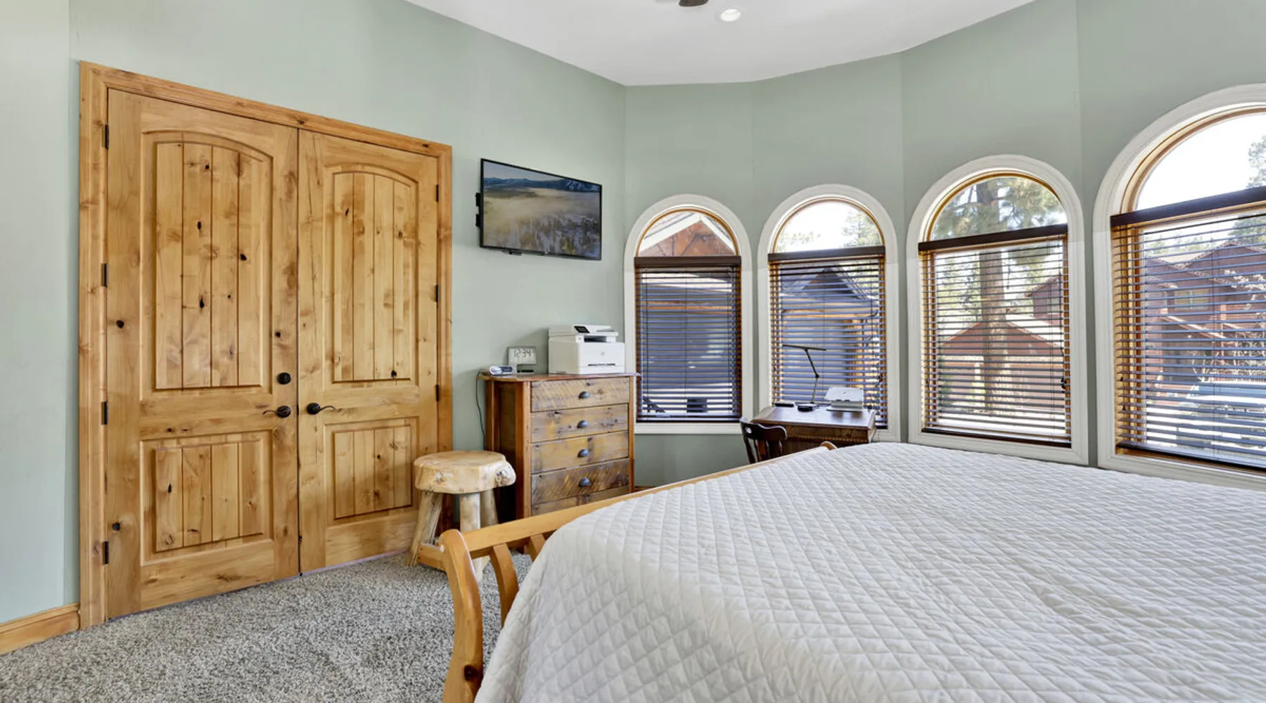 Wolf Creek Castle truly lives up to it's name offering guests an exceptional Big Bear vacation experience with awesome views of Bear Mountain's golf course or ski slopes from your own private gated community, this one-of-a-kind mountain castle is an entertainers dream. Sprawling with luxury spaces for your group to spread out you will have everything you need right on site to make the most of your next trip to the mountains. Come experience this incredible chalet for your next vacation today!! The space The open floor plan seamlessly connects the living area to the expansive kitchen and dining spaces, fostering an ideal environment for entertaining. The chef in your group will appreciate the well-equipped kitchen, featuring beautiful oak cabinets, high-end appliances, and a built-in beverage cooler. The custom log table furnishings in the formal dining room complement the breakfast bar, ensuring ample seating for your group. Discover the delights of the game room loft upstairs, this is where entertainment reigns supreme. Engage in friendly competition with pool or Foosball or unwind by the wood-burning fireplace and streaming TV. Access the upper-level sun deck, where a private hot tub awaits, offering a perfect retreat under the stars. For added convenience, a separate storage room accommodates snow gear or lake toys, while a laundry room with a washer and dryer is on hand for your convenience. With heated bathroom floors and double tankless water heaters, Wolf Creek Castle is designed for the utmost comfort during your mountain escape. This chalet caters to large groups, ensuring that all rooms are meticulously prepared with warm linens, blankets, pillows, and fresh shower towels upon your arrival. Grill up a delicious dinner on the provided propane BBQ or unwind in the hot tub, soaking in the serenity of the surroundings. From top to bottom, Wolf Creek Castle is meticulously furnished with your vacation experience in mind, offering true rustic mountain elegance. Spoil yourselves with an unforgettable retreat in the lap of luxury at Wolf Creek Castle! Sleeping Arrangements: Bedroom 1: Queen Bed, Private 3/4 Bath (Shower Only)- Upstairs 2nd Level Bedroom 2: Full/Twin Bunk- Upstairs 2nd Level Bedroom 3: Full Bed, Balcony Access- Upstairs 2nd Level Bedroom 4: Queen Bed, Private Bath w/ Jetted Tub- Downstairs Entry Level Open Loft: Full Futon + Twin Roll Away- Upstairs 2nd Level Living Room: Full Sleeper Sofa- Downstairs Entry Level Bathroom Arrangements: Hallway Full Bath- Downstairs Entry Level Private 3/4 Bath (Shower Only)- Bedroom 1- Upstairs 2nd Level Hallway Full Bath- Upstairs 2nd Level Private Full Bath w/ Jetted Spa Tub- Bedroom 4- Downstairs Entry Level -Sleeps 15 | 10 Adults Max + 5 Kids -4 Cars Driveway Parking -NO PETS ALLOWED- Fines Imposed for Pets Found on Property -2,760 Total Square Feet Registration Details 2023-2571