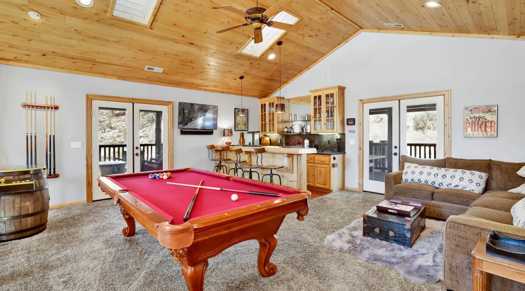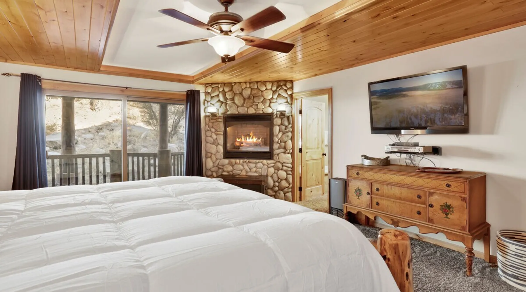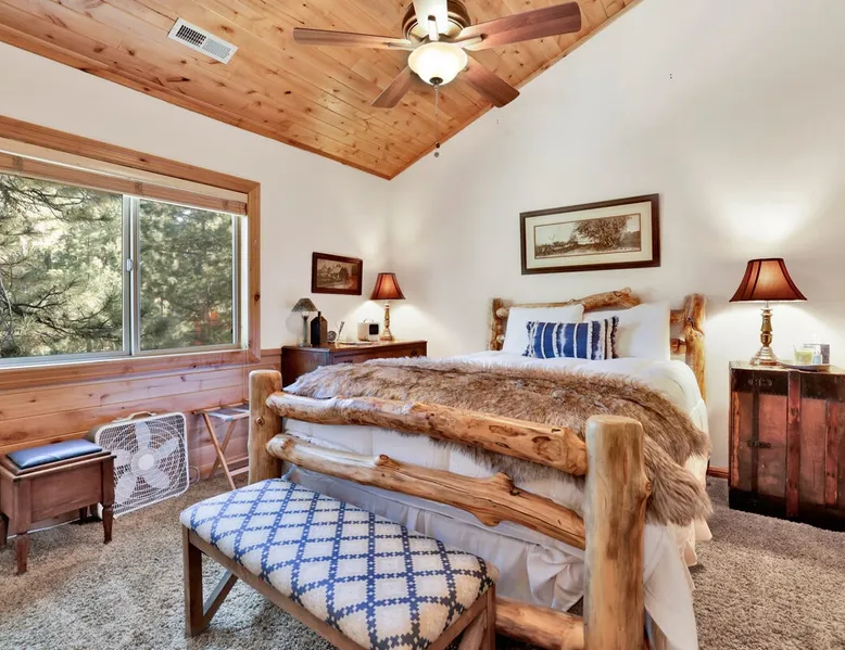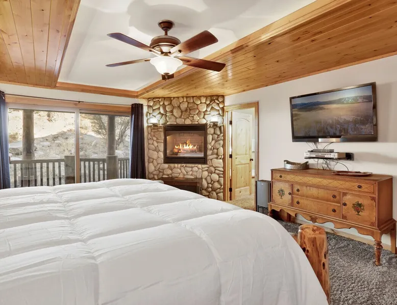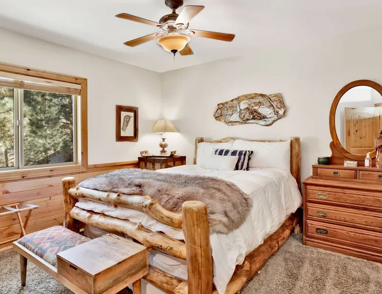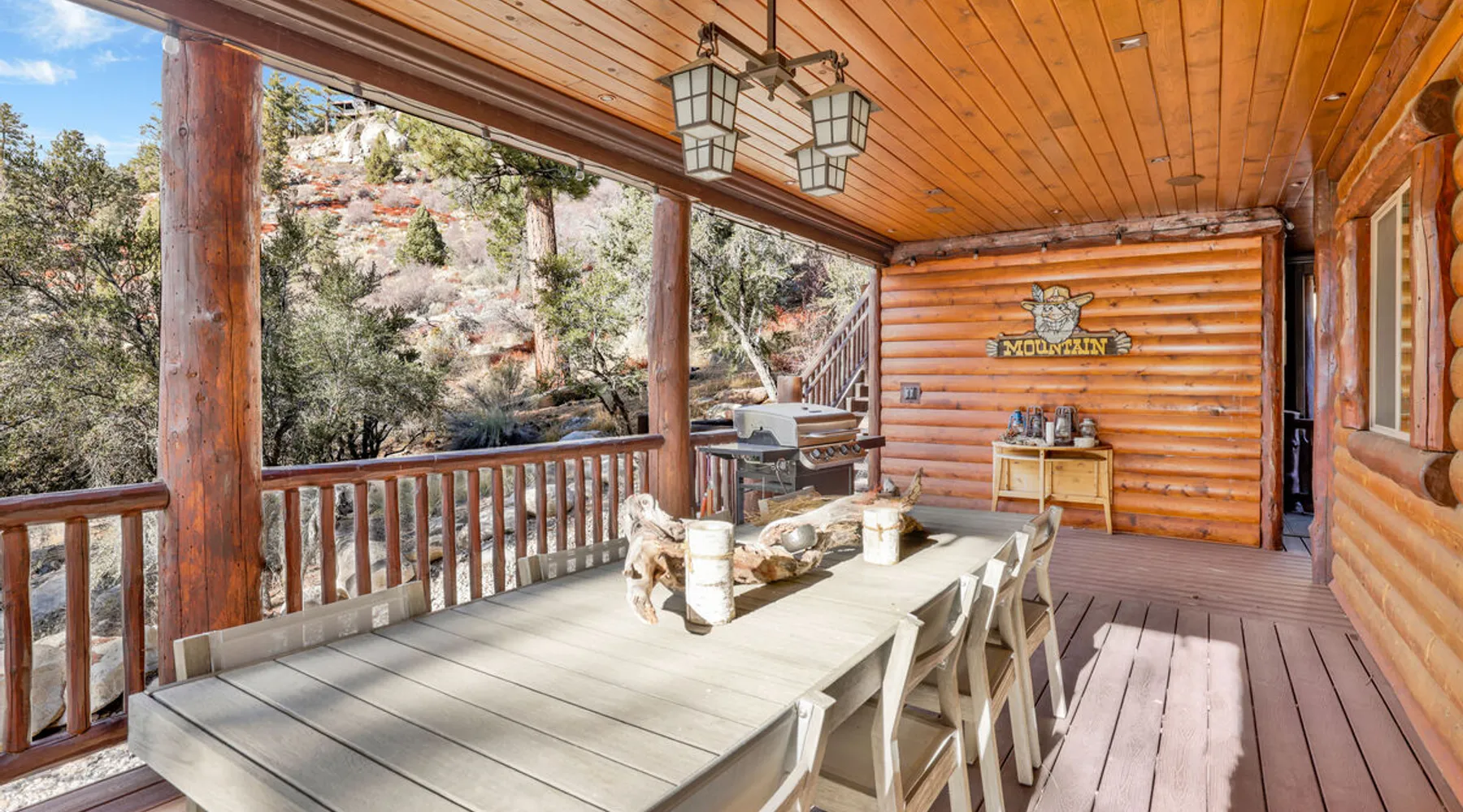 Our luxury log cabin is a haven for those seeking an unforgettable mountain escape. It seamlessly combines the charm of a classic log cabin with modern amenities, creating an oasis of relaxation and entertainment. Whether you're celebrating with family and friends or simply indulging in a serene getaway, this cabin promises an experience like no other. Book your stay today and start creating cherished memories in this mountain paradise. The space Gold Rush Lodge Big Bear | Hot Tub | Games Welcome to Gold Rush Lodge, an enchanting retreat where the allure of rustic elegance harmonizes effortlessly with contemporary comfort. Nestled in the heart of the mountains, this extraordinary 6-bedroom haven is meticulously designed to deliver an unforgettable experience for those in search of the perfect fusion of relaxation and entertainment. Approach the residence via a unique driveway doubling as a picturesque bridge, guiding you to the grand entrance of our opulent log cabin. The exterior proudly displays the timeless craftsmanship of a classic log cabin, while the interior beckons you into a realm of luxury and amusement. Featuring six meticulously appointed bedrooms, there is abundant space for everyone in your party. Each room seamlessly blends comfort and style, promising a tranquil night's sleep amidst the mountain's breathtaking beauty. The whimsical bunk room, offering direct access to the outdoor spa, invites both the young and the young at heart to unwind. Complete with a ping pong table, it ensures continuous entertainment for all ages. The focal point of Gold Rush Lodge is its welcoming living room, anchored by a majestic fireplace radiating warmth and charm. Immerse yourself in your favorite shows and movies on the surround sound TV, or simply bask in the glow of the crackling fire. The cabin's game room is a true delight, boasting a handsomely adorned bear-themed bar, a pool table, and a dartboard, providing limitless options for enjoyment and relaxation. For the culinary enthusiasts, the well-appointed kitchen is a chef's haven, equipped with modern appliances and everything necessary to craft gourmet meals. Whether you're whipping up culinary masterpieces or brewing a cup of coffee, the exquisite log dining table sets the perfect stage. Step outside and embrace the natural beauty that envelops Gold Rush Lodge. Whether you're indulging in the spa, challenging companions to a ping pong match, or simply lounging on the deck, the serene mountain environment seamlessly becomes an integral part of your experience. Our luxury log cabin guarantees an unforgettable mountain escape, skillfully blending the charm of a traditional log cabin with modern amenities. Whether you're celebrating with family and friends or seeking a tranquil getaway, Gold Rush Lodge offers an unparalleled experience. Secure your stay today and embark on a journey to create cherished memories in this mountain paradise. Sleeping Arrangements: Bedroom 1: King Bed, Streaming TV/Cable, Gas Fireplace, Deck Access, Private Full Bath- Downstairs Entry Level Bedroom 2: Queen Bed- Downstairs Entry Level Bedroom 3: Queen Bed- Downstairs Entry Level Bedroom 4: Queen Bed- Upstairs 2nd level, Private 3/4 bath Bedroom 5: Queen Bed- Upstairs 2nd Level, Private 3/4 bath Bedroom 6: Full/Full Bunk + Two Twin/Twin Bunks, Streaming TV, Deck Access, Private 3/4 Bath- Upstairs 2nd Level Bathroom Arrangements: Private Full Bath- Bedroom 1- Downstairs Entry Level Half Bath- Downstairs Entry Level Full Bath- Downstairs Entry Level Full Bath w/ Soaker Tub- Upstairs 2nd Level Full Bath- Upstairs 2nd level Private 3/4 Bath- (Shower Only)- Bedroom 6- Upstairs 2nd Level -Sleeps 16 Max | 12 Adults & 4 Children -5 Cars Driveway Parking -NO PETS ALLOWED- Fines Imposed For Pets Found On Premises -4,493 Total Square Feet City Permit #:VRR-2023-2330 Registration Details 2023-2330
