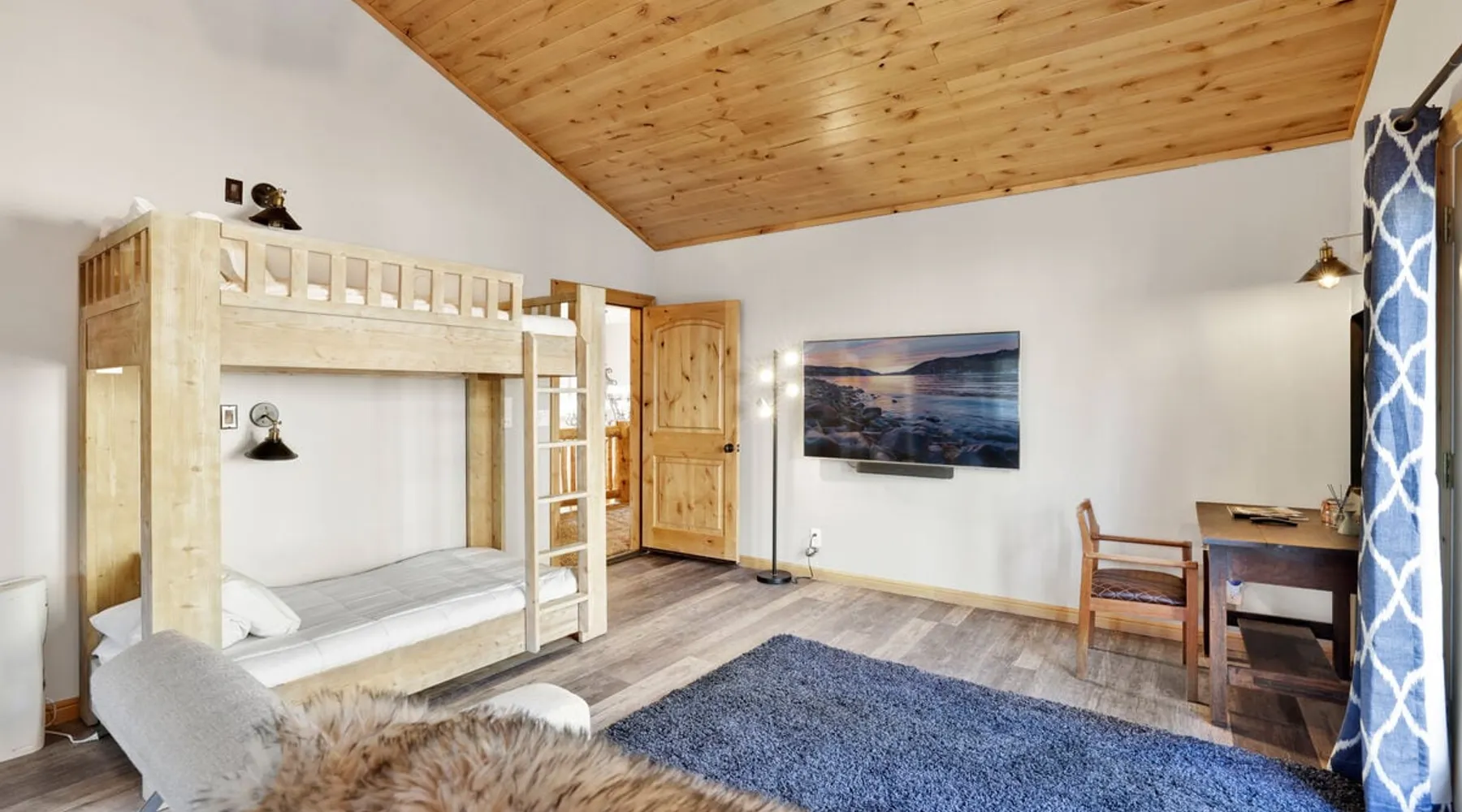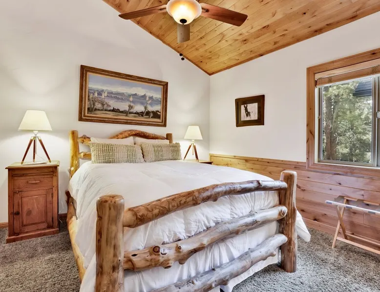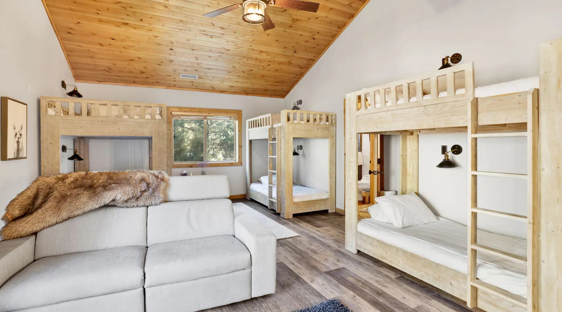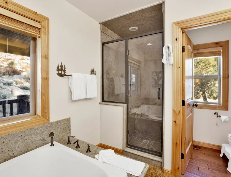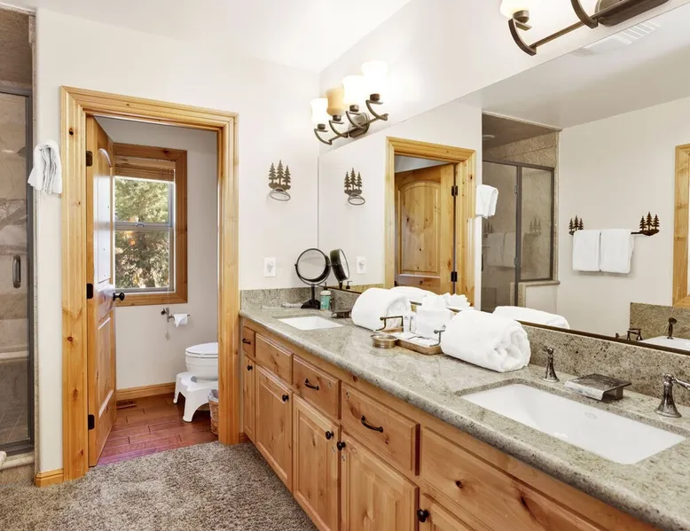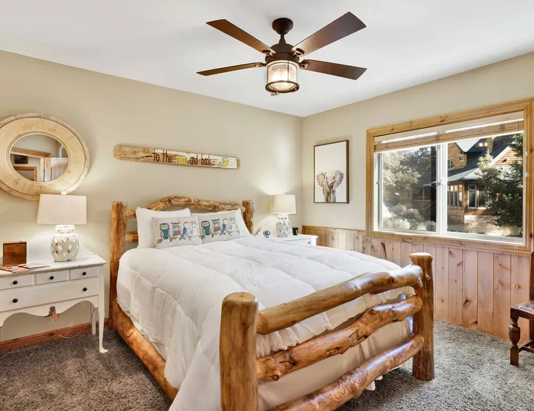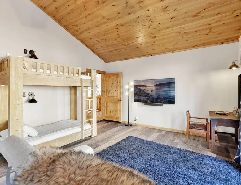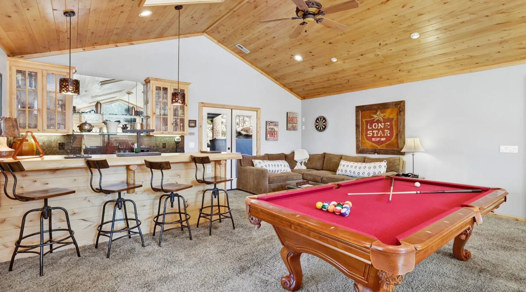 Our luxury log cabin is a haven for those seeking an unforgettable mountain escape. It seamlessly combines the charm of a classic log cabin with modern amenities, creating an oasis of relaxation and entertainment. Whether you're celebrating with family and friends or simply indulging in a serene getaway, this cabin promises an experience like no other. Book your stay today and start creating cherished memories in this mountain paradise. The space Gold Rush Lodge Big Bear | Hot Tub | Games Welcome to Gold Rush Lodge, an enchanting retreat where the allure of rustic elegance harmonizes effortlessly with contemporary comfort. Nestled in the heart of the mountains, this extraordinary 6-bedroom haven is meticulously designed to deliver an unforgettable experience for those in search of the perfect fusion of relaxation and entertainment. Approach the residence via a unique driveway doubling as a picturesque bridge, guiding you to the grand entrance of our opulent log cabin. The exterior proudly displays the timeless craftsmanship of a classic log cabin, while the interior beckons you into a realm of luxury and amusement. Featuring six meticulously appointed bedrooms, there is abundant space for everyone in your party. Each room seamlessly blends comfort and style, promising a tranquil night's sleep amidst the mountain's breathtaking beauty. The whimsical bunk room, offering direct access to the outdoor spa, invites both the young and the young at heart to unwind. Complete with a ping pong table, it ensures continuous entertainment for all ages. The focal point of Gold Rush Lodge is its welcoming living room, anchored by a majestic fireplace radiating warmth and charm. Immerse yourself in your favorite shows and movies on the surround sound TV, or simply bask in the glow of the crackling fire. The cabin's game room is a true delight, boasting a handsomely adorned bear-themed bar, a pool table, and a dartboard, providing limitless options for enjoyment and relaxation. For the culinary enthusiasts, the well-appointed kitchen is a chef's haven, equipped with modern appliances and everything necessary to craft gourmet meals. Whether you're whipping up culinary masterpieces or brewing a cup of coffee, the exquisite log dining table sets the perfect stage. Step outside and embrace the natural beauty that envelops Gold Rush Lodge. Whether you're indulging in the spa, challenging companions to a ping pong match, or simply lounging on the deck, the serene mountain environment seamlessly becomes an integral part of your experience. Our luxury log cabin guarantees an unforgettable mountain escape, skillfully blending the charm of a traditional log cabin with modern amenities. Whether you're celebrating with family and friends or seeking a tranquil getaway, Gold Rush Lodge offers an unparalleled experience. Secure your stay today and embark on a journey to create cherished memories in this mountain paradise. Sleeping Arrangements: Bedroom 1: King Bed, Streaming TV/Cable, Gas Fireplace, Deck Access, Private Full Bath- Downstairs Entry Level Bedroom 2: Queen Bed- Downstairs Entry Level Bedroom 3: Queen Bed- Downstairs Entry Level Bedroom 4: Queen Bed- Upstairs 2nd level, Private 3/4 bath Bedroom 5: Queen Bed- Upstairs 2nd Level, Private 3/4 bath Bedroom 6: Full/Full Bunk + Two Twin/Twin Bunks, Streaming TV, Deck Access, Private 3/4 Bath- Upstairs 2nd Level Bathroom Arrangements: Private Full Bath- Bedroom 1- Downstairs Entry Level Half Bath- Downstairs Entry Level Full Bath- Downstairs Entry Level Full Bath w/ Soaker Tub- Upstairs 2nd Level Full Bath- Upstairs 2nd level Private 3/4 Bath- (Shower Only)- Bedroom 6- Upstairs 2nd Level -Sleeps 16 Max | 12 Adults & 4 Children -5 Cars Driveway Parking -NO PETS ALLOWED- Fines Imposed For Pets Found On Premises -4,493 Total Square Feet City Permit #:VRR-2023-2330 Registration Details 2023-2330