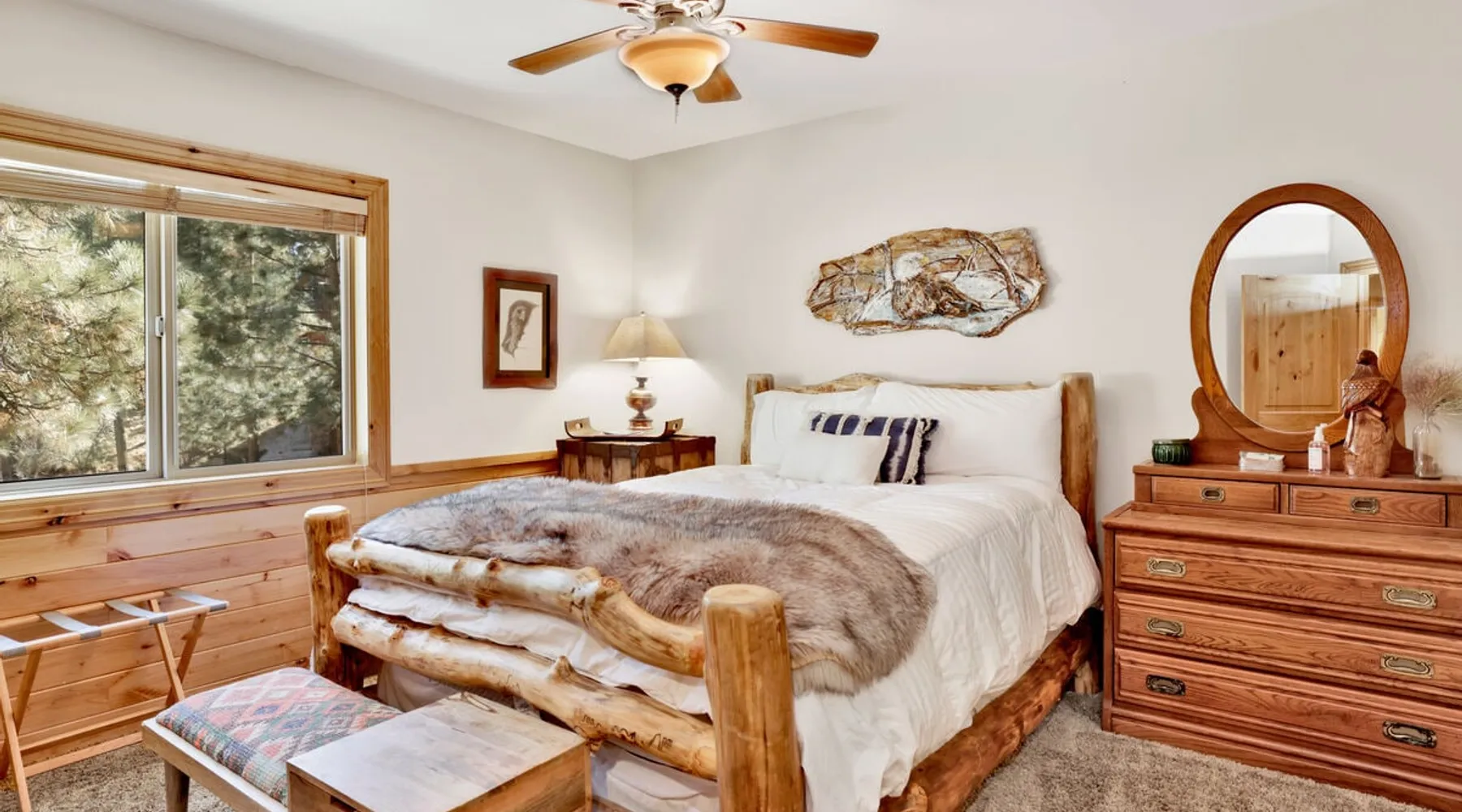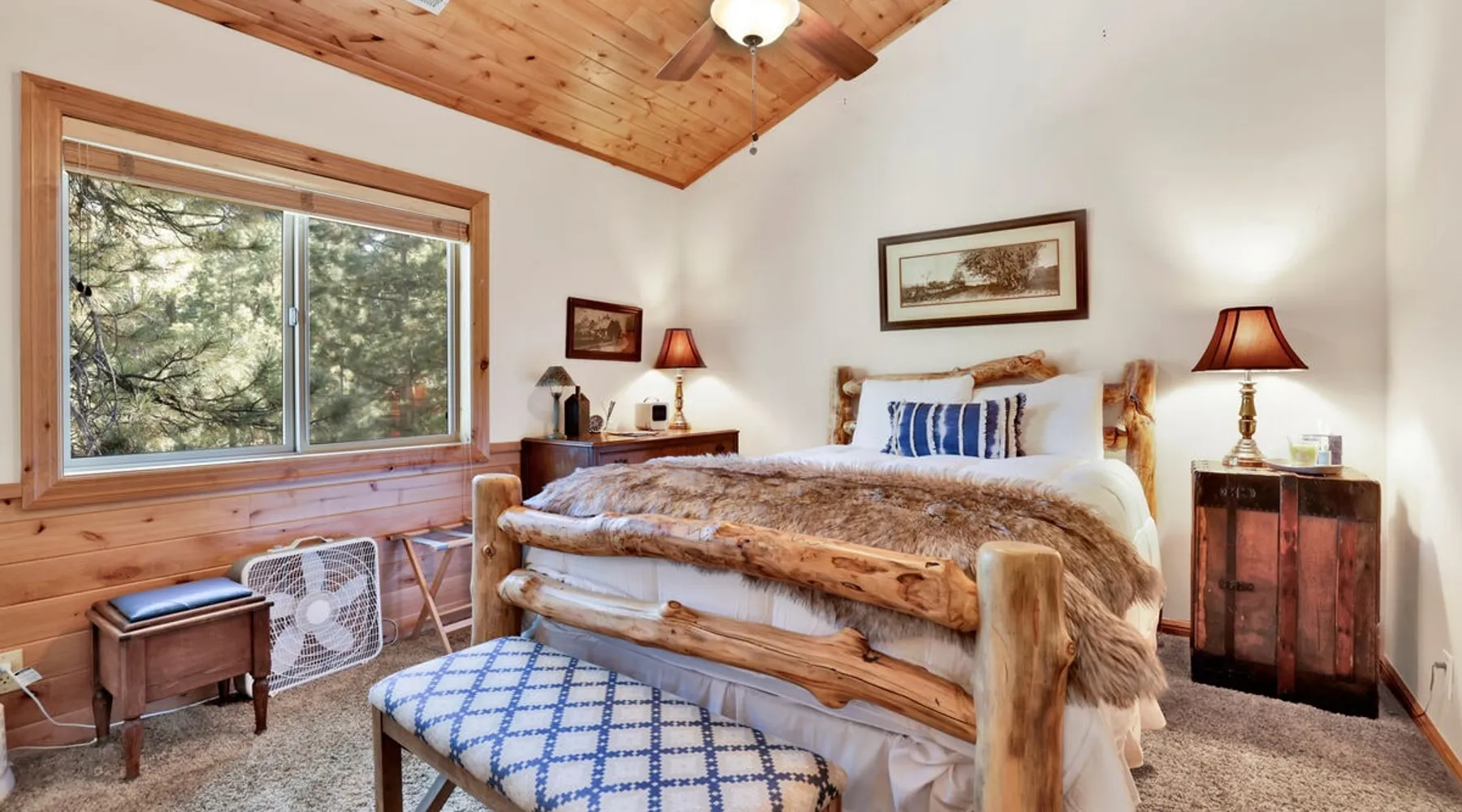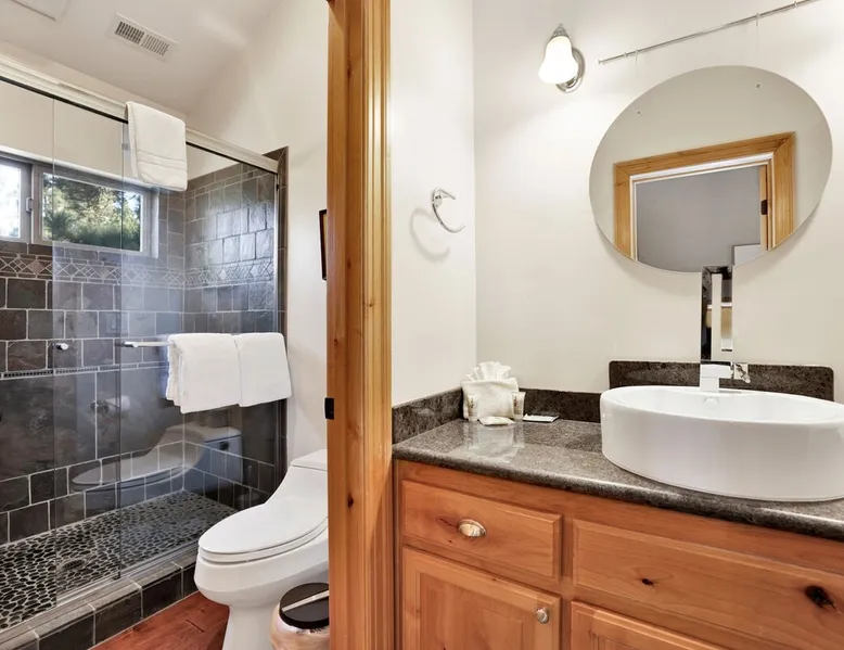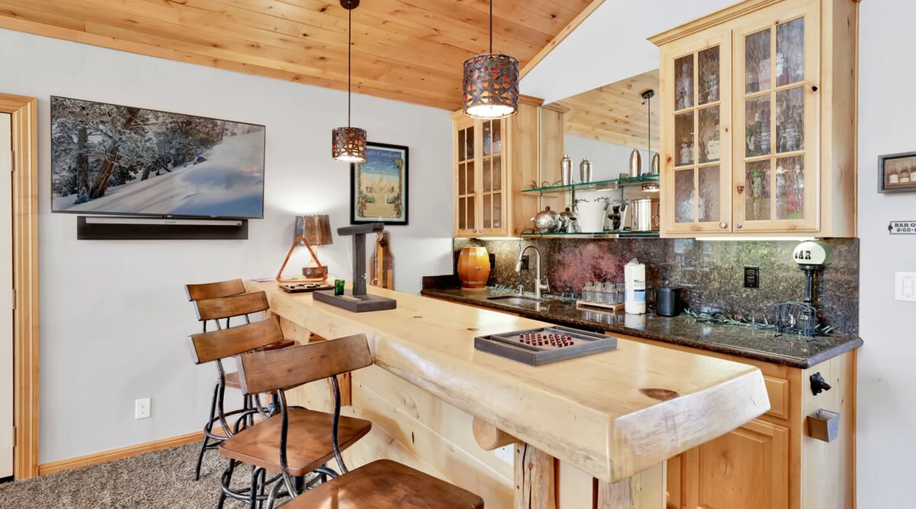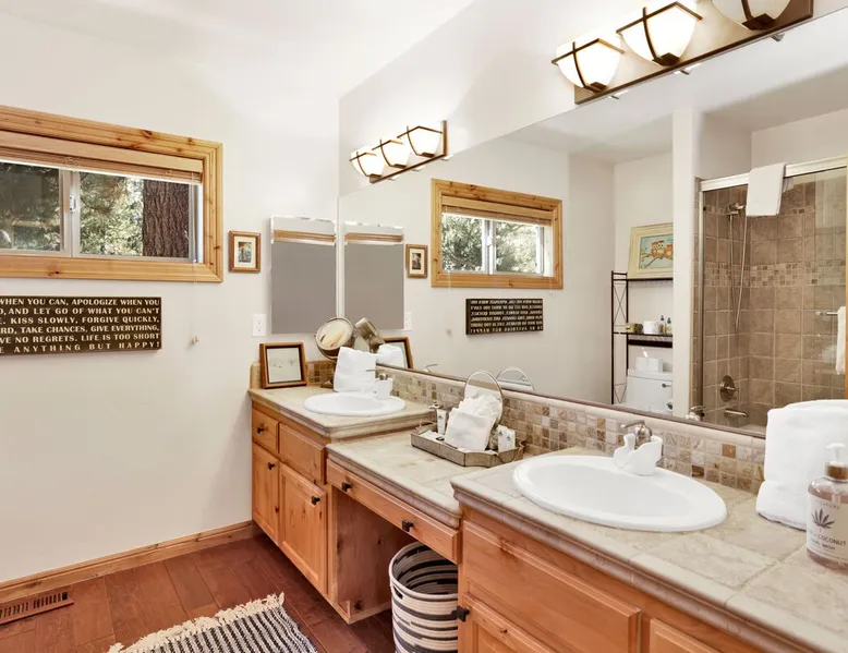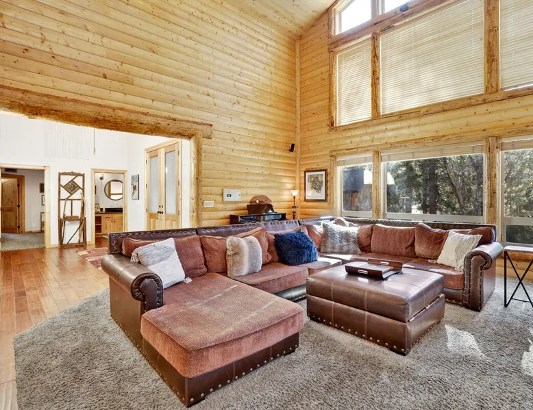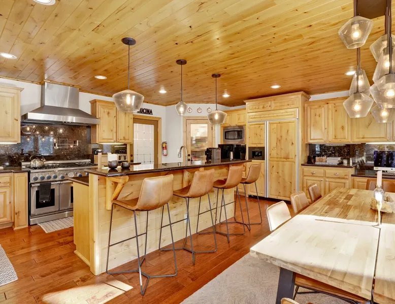 Our luxury log cabin is a haven for those seeking an unforgettable mountain escape. It seamlessly combines the charm of a classic log cabin with modern amenities, creating an oasis of relaxation and entertainment. Whether you're celebrating with family and friends or simply indulging in a serene getaway, this cabin promises an experience like no other. Book your stay today and start creating cherished memories in this mountain paradise. The space Gold Rush Lodge Big Bear | Hot Tub | Games Welcome to Gold Rush Lodge, an enchanting retreat where the allure of rustic elegance harmonizes effortlessly with contemporary comfort. Nestled in the heart of the mountains, this extraordinary 6-bedroom haven is meticulously designed to deliver an unforgettable experience for those in search of the perfect fusion of relaxation and entertainment. Approach the residence via a unique driveway doubling as a picturesque bridge, guiding you to the grand entrance of our opulent log cabin. The exterior proudly displays the timeless craftsmanship of a classic log cabin, while the interior beckons you into a realm of luxury and amusement. Featuring six meticulously appointed bedrooms, there is abundant space for everyone in your party. Each room seamlessly blends comfort and style, promising a tranquil night's sleep amidst the mountain's breathtaking beauty. The whimsical bunk room, offering direct access to the outdoor spa, invites both the young and the young at heart to unwind. Complete with a ping pong table, it ensures continuous entertainment for all ages. The focal point of Gold Rush Lodge is its welcoming living room, anchored by a majestic fireplace radiating warmth and charm. Immerse yourself in your favorite shows and movies on the surround sound TV, or simply bask in the glow of the crackling fire. The cabin's game room is a true delight, boasting a handsomely adorned bear-themed bar, a pool table, and a dartboard, providing limitless options for enjoyment and relaxation. For the culinary enthusiasts, the well-appointed kitchen is a chef's haven, equipped with modern appliances and everything necessary to craft gourmet meals. Whether you're whipping up culinary masterpieces or brewing a cup of coffee, the exquisite log dining table sets the perfect stage. Step outside and embrace the natural beauty that envelops Gold Rush Lodge. Whether you're indulging in the spa, challenging companions to a ping pong match, or simply lounging on the deck, the serene mountain environment seamlessly becomes an integral part of your experience. Our luxury log cabin guarantees an unforgettable mountain escape, skillfully blending the charm of a traditional log cabin with modern amenities. Whether you're celebrating with family and friends or seeking a tranquil getaway, Gold Rush Lodge offers an unparalleled experience. Secure your stay today and embark on a journey to create cherished memories in this mountain paradise. Sleeping Arrangements: Bedroom 1: King Bed, Streaming TV/Cable, Gas Fireplace, Deck Access, Private Full Bath- Downstairs Entry Level Bedroom 2: Queen Bed- Downstairs Entry Level Bedroom 3: Queen Bed- Downstairs Entry Level Bedroom 4: Queen Bed- Upstairs 2nd level, Private 3/4 bath Bedroom 5: Queen Bed- Upstairs 2nd Level, Private 3/4 bath Bedroom 6: Full/Full Bunk + Two Twin/Twin Bunks, Streaming TV, Deck Access, Private 3/4 Bath- Upstairs 2nd Level Bathroom Arrangements: Private Full Bath- Bedroom 1- Downstairs Entry Level Half Bath- Downstairs Entry Level Full Bath- Downstairs Entry Level Full Bath w/ Soaker Tub- Upstairs 2nd Level Full Bath- Upstairs 2nd level Private 3/4 Bath- (Shower Only)- Bedroom 6- Upstairs 2nd Level -Sleeps 16 Max | 12 Adults & 4 Children -5 Cars Driveway Parking -NO PETS ALLOWED- Fines Imposed For Pets Found On Premises -4,493 Total Square Feet City Permit #:VRR-2023-2330 Registration Details 2023-2330