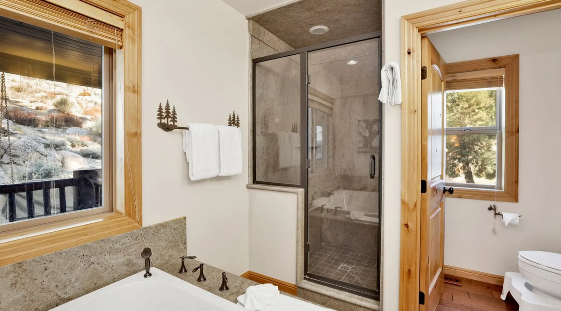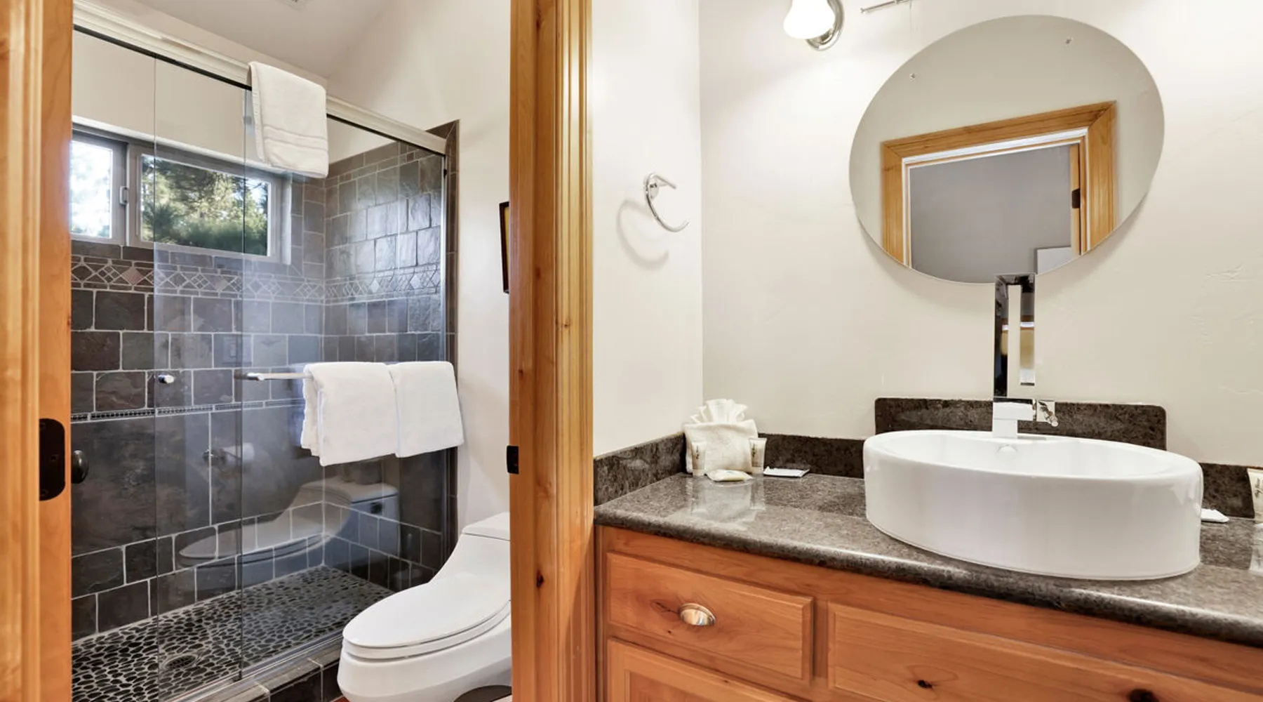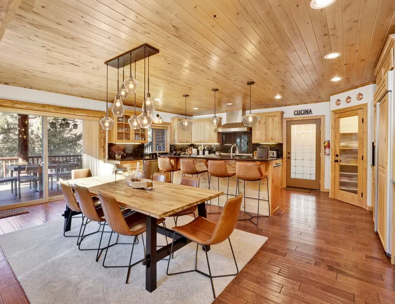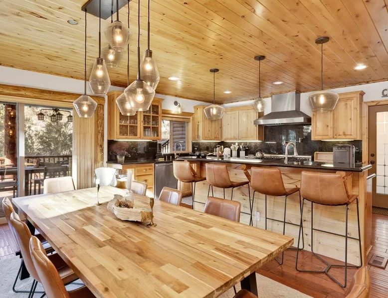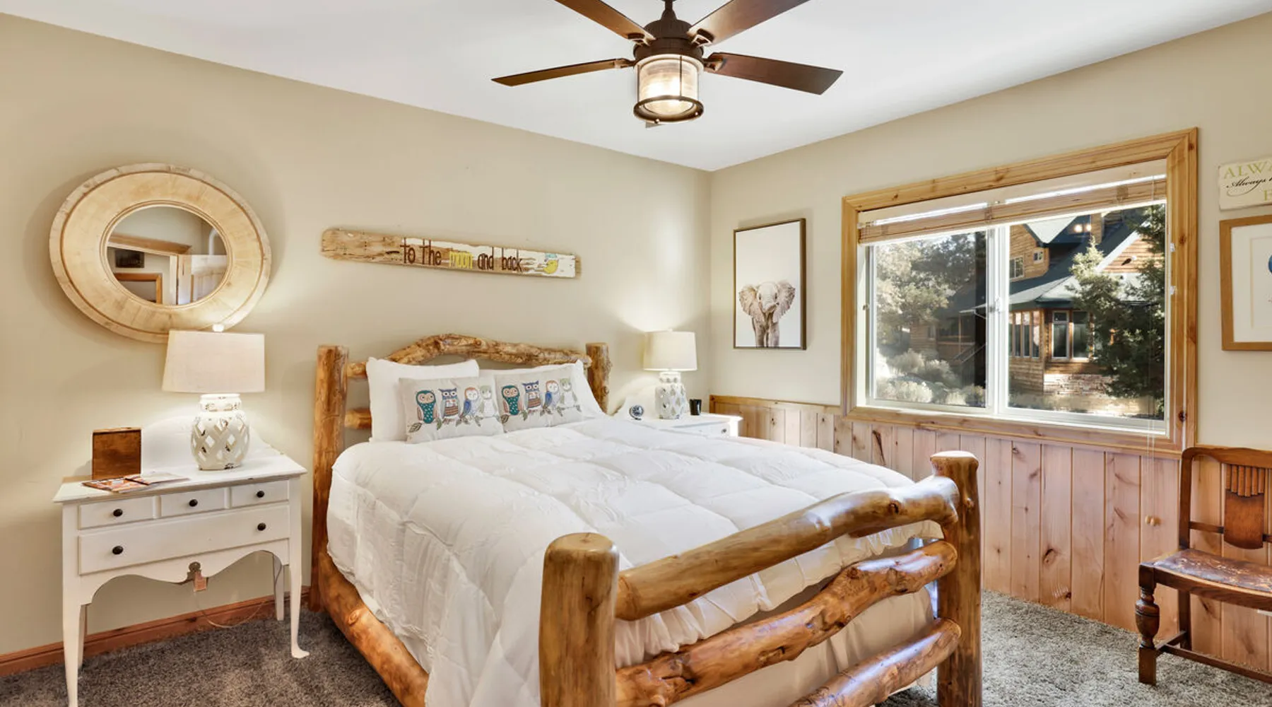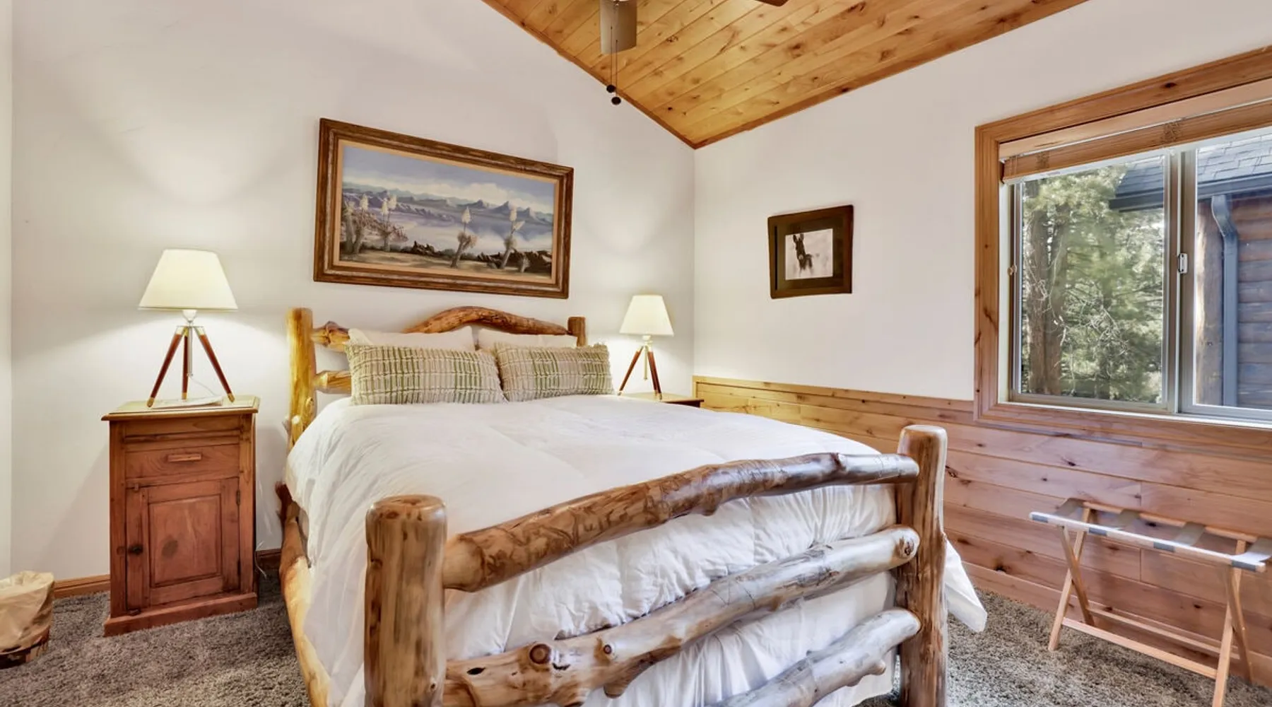 Our luxury log cabin is a haven for those seeking an unforgettable mountain escape. It seamlessly combines the charm of a classic log cabin with modern amenities, creating an oasis of relaxation and entertainment. Whether you're celebrating with family and friends or simply indulging in a serene getaway, this cabin promises an experience like no other. Book your stay today and start creating cherished memories in this mountain paradise. The space Gold Rush Lodge Big Bear | Hot Tub | Games Welcome to Gold Rush Lodge, an enchanting retreat where the allure of rustic elegance harmonizes effortlessly with contemporary comfort. Nestled in the heart of the mountains, this extraordinary 6-bedroom haven is meticulously designed to deliver an unforgettable experience for those in search of the perfect fusion of relaxation and entertainment. Approach the residence via a unique driveway doubling as a picturesque bridge, guiding you to the grand entrance of our opulent log cabin. The exterior proudly displays the timeless craftsmanship of a classic log cabin, while the interior beckons you into a realm of luxury and amusement. Featuring six meticulously appointed bedrooms, there is abundant space for everyone in your party. Each room seamlessly blends comfort and style, promising a tranquil night's sleep amidst the mountain's breathtaking beauty. The whimsical bunk room, offering direct access to the outdoor spa, invites both the young and the young at heart to unwind. Complete with a ping pong table, it ensures continuous entertainment for all ages. The focal point of Gold Rush Lodge is its welcoming living room, anchored by a majestic fireplace radiating warmth and charm. Immerse yourself in your favorite shows and movies on the surround sound TV, or simply bask in the glow of the crackling fire. The cabin's game room is a true delight, boasting a handsomely adorned bear-themed bar, a pool table, and a dartboard, providing limitless options for enjoyment and relaxation. For the culinary enthusiasts, the well-appointed kitchen is a chef's haven, equipped with modern appliances and everything necessary to craft gourmet meals. Whether you're whipping up culinary masterpieces or brewing a cup of coffee, the exquisite log dining table sets the perfect stage. Step outside and embrace the natural beauty that envelops Gold Rush Lodge. Whether you're indulging in the spa, challenging companions to a ping pong match, or simply lounging on the deck, the serene mountain environment seamlessly becomes an integral part of your experience. Our luxury log cabin guarantees an unforgettable mountain escape, skillfully blending the charm of a traditional log cabin with modern amenities. Whether you're celebrating with family and friends or seeking a tranquil getaway, Gold Rush Lodge offers an unparalleled experience. Secure your stay today and embark on a journey to create cherished memories in this mountain paradise. Sleeping Arrangements: Bedroom 1: King Bed, Streaming TV/Cable, Gas Fireplace, Deck Access, Private Full Bath- Downstairs Entry Level Bedroom 2: Queen Bed- Downstairs Entry Level Bedroom 3: Queen Bed- Downstairs Entry Level Bedroom 4: Queen Bed- Upstairs 2nd level, Private 3/4 bath Bedroom 5: Queen Bed- Upstairs 2nd Level, Private 3/4 bath Bedroom 6: Full/Full Bunk + Two Twin/Twin Bunks, Streaming TV, Deck Access, Private 3/4 Bath- Upstairs 2nd Level Bathroom Arrangements: Private Full Bath- Bedroom 1- Downstairs Entry Level Half Bath- Downstairs Entry Level Full Bath- Downstairs Entry Level Full Bath w/ Soaker Tub- Upstairs 2nd Level Full Bath- Upstairs 2nd level Private 3/4 Bath- (Shower Only)- Bedroom 6- Upstairs 2nd Level -Sleeps 16 Max | 12 Adults & 4 Children -5 Cars Driveway Parking -NO PETS ALLOWED- Fines Imposed For Pets Found On Premises -4,493 Total Square Feet City Permit #:VRR-2023-2330 Registration Details 2023-2330