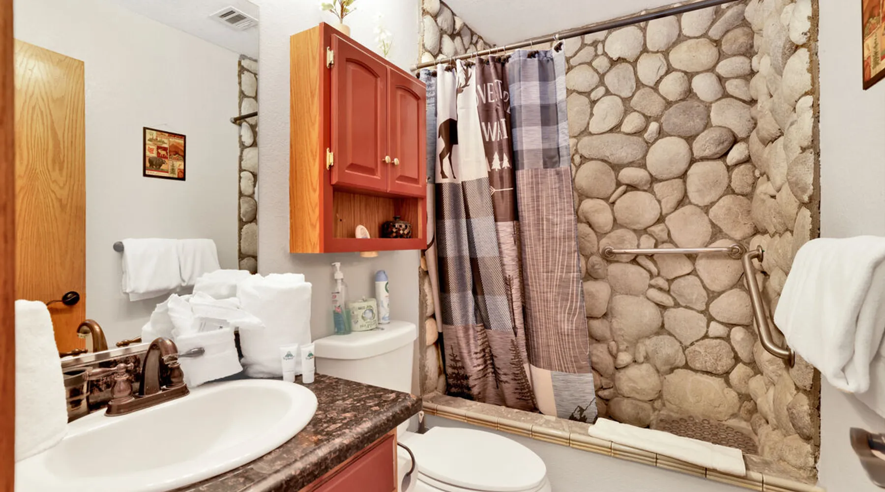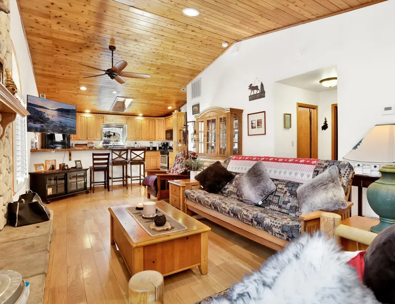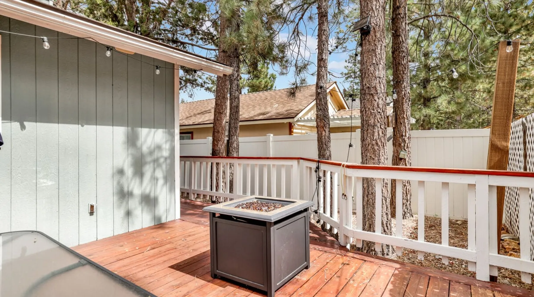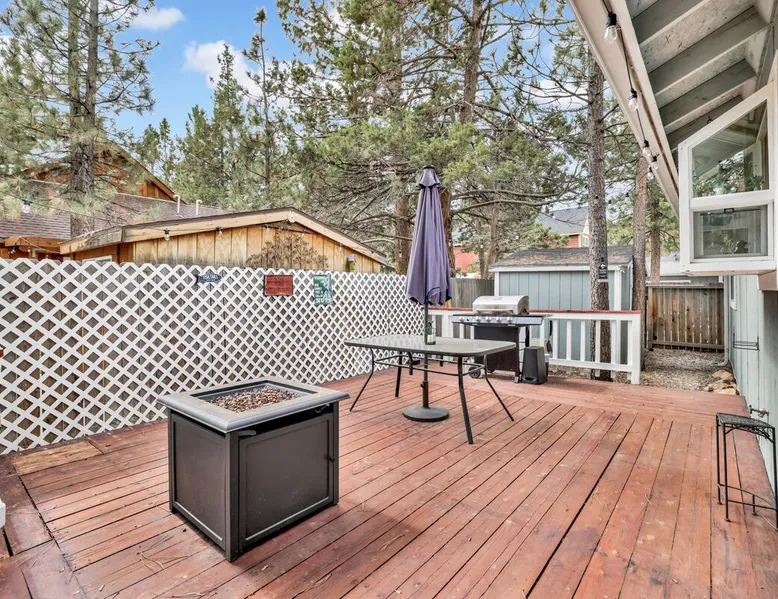 Perfect for any season your group retreat or family vacation is sure to include relaxation and serenity here at our Bearadise cabin, nestled in a quiet Bear City neighborhood this single level mountain retreat has all that you need to create memories under the pine trees. Stroll the neighborhood or hop in the car and you are just ten minutes to local activities including grocery stores, the marina, and both ski resorts, this is truly an unbeatable location for any group! The space Bearadise Cabin | Adorable Single Level Retreat Perfect for any season your group retreat or family vacation is sure to include relaxation and serenity here at our Bearadise cabin, nestled in a quiet Bear City neighborhood this single level mountain retreat has all that you need to create memories under the pine trees. Stroll the neighborhood or hop in the car and you are just ten minutes to local activities including grocery stores, the marina, and both ski resorts, this is truly an unbeatable location for any group! Enjoy soaring knotty pine ceilings and big open windows which provide the perfect balance of natural lighting and views of the forested neighborhood as you snuggle up together on the comfy couch and enjoy a movie on the mounted Streaming TV. You will love warming your toes together here in front of the toasty wood burning fireplace as you watch the snow falling outside. The equipped kitchen and dining area has all that the chef of your group will need to prepare your home cooked meals, holiday feasts, and slope side snacks right here at the cabin including cookware, appliances, and even a dishwasher for a breezy cleanup. A separate laundry room offers a washer and dryer for those wet snow clothes and extended visits to the mountains any time of the year. Three spacious bedrooms and two modern bathrooms are easily accessible here within your single level chalet including a primary suite which offers its own private full bathroom, each room is made up for your visit with Streaming TVs, new comfortable beds, and warm linens, blankets, pillows, and fresh bath towels for your vacation stay. Step outside to enjoy a private fenced backyard area which is full of soaring pine trees and offers a great space to unwind and relax as you grill up your freshly caught dinner from the lake on the propane BBQ. Bearadise cabin has all that you need to enjoy a relaxing and memorable vacation with your group in comfort and style under soaring pine trees and shooting stars- come experience this adorable chalet for your next vacation today! Sleeping Arrangements: Bedroom 1: King Bed, Streaming TV, Private Full Bath Bedroom 2: Queen Bed. Streaming TV Bedroom 3: Twin/Full Bunk Bed, Streaming TV Bathroom Arrangements: Hallway 3/4 Bath (Shower Only) Private Full Bath- Bedroom 1 -Sleeps 8 -3 Cars Driveway Parking -NO PETS ALLOWED- Fines Imposed For Pets Found On Premises -1,220 Total Square Feet Other things to note Big Bear Vacations & Cabins House Rules and Policy Information *Please read all rules and policies completely- Your booking/request to book constitutes your understanding and agreement of the below Policies & Information* **Reservation Holder Must Be 21+** **Electronic Rental Agreement & Good Neighbor Policy Required** **Guests must provide ID for Cabin Access** Our Big Bear Vacations team is looking forward to hosting you here in the mountains! We are your longest standing local vacation experts with years of dedicated experience and knowledge brought forth within our exceptional customer service and support staff to ensure a 5 star experience for every guest. Our team offers 24/7 support along with local on site offices and experience packages. Big Bear GOOD NEIGHBOR POLICY is enforced at all times during your stay and includes removing trash from the property to local trash sites, washing dishes to alleviate wild animals being attracted to neighborhoods. NO PARTIES OR EVENTS, No Over Occupancy, No Loud Music, and No Street Parking is allowed in Big Bear homes at any time. This policy along with a rental agreement will be emailed to you immediately after booking and is REQUIRED by the City of Big Bear Lake for all rentals in Big Bear. If found in violation of these policies guests will be visited by staff and Code Enforcement officers who may or may not issue fines or evictions to the violating party members. No Smoking is allowed in any Big Bear homes. Check-in time is 4:00 pm Check-out time is 10:00 am There is no early arrival or later departure availability during peak season and holidays. Contact our office the morning of arrival or departure to confirm early arrival or later departure availability for your stay. (Fee Applies) Winter Snow & Parking- During winter months the driveways, steps, porches, decks, and other outdoor areas at your property may not be accessible due to snow or ice. Our teams are on fixed routes for snow and work alongside city and county resources to clear roads, driveways, walkways etc. Guests should be prepared in winter months to shovel themselves in or out of the property and off of the street in these snowstorm events. As there is no street parking allowed in Big Bear it is extremely important that guests make every attempt to get vehicles off the street for the snowplows. California Law requires that vehicles traveling to Big Bear from November thru April have snow chains in their vehicles however we also recommend proper footwear, an emergency kit, and an extra snow shovel. Pet Policy- Pet Friendly Homes ONLY Pet Fees $35/Pet Nightly Fee + Tax Pet Policy ~All dogs on the property must be registered and acknowledges with the front desk ~Dogs may not be left unattended in the home at any time ~Pet owners are responsible for cleanup of pets or are subject to an added cleaning fee Service Animals Are Welcome! California Penal Code: (a) Any person who knowingly and fraudulently represents himself or herself, through verbal or written notice, to be the owner or trainer of any canin