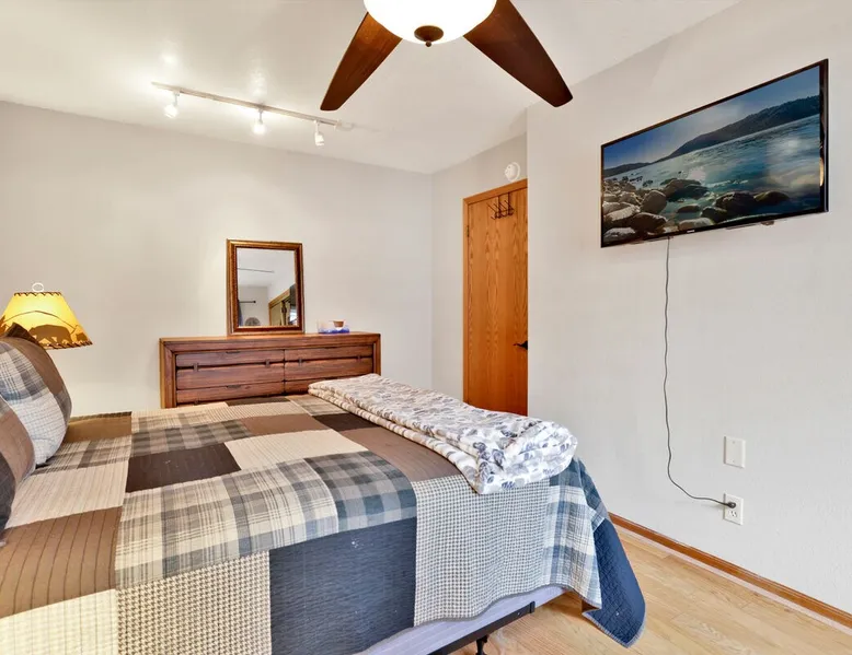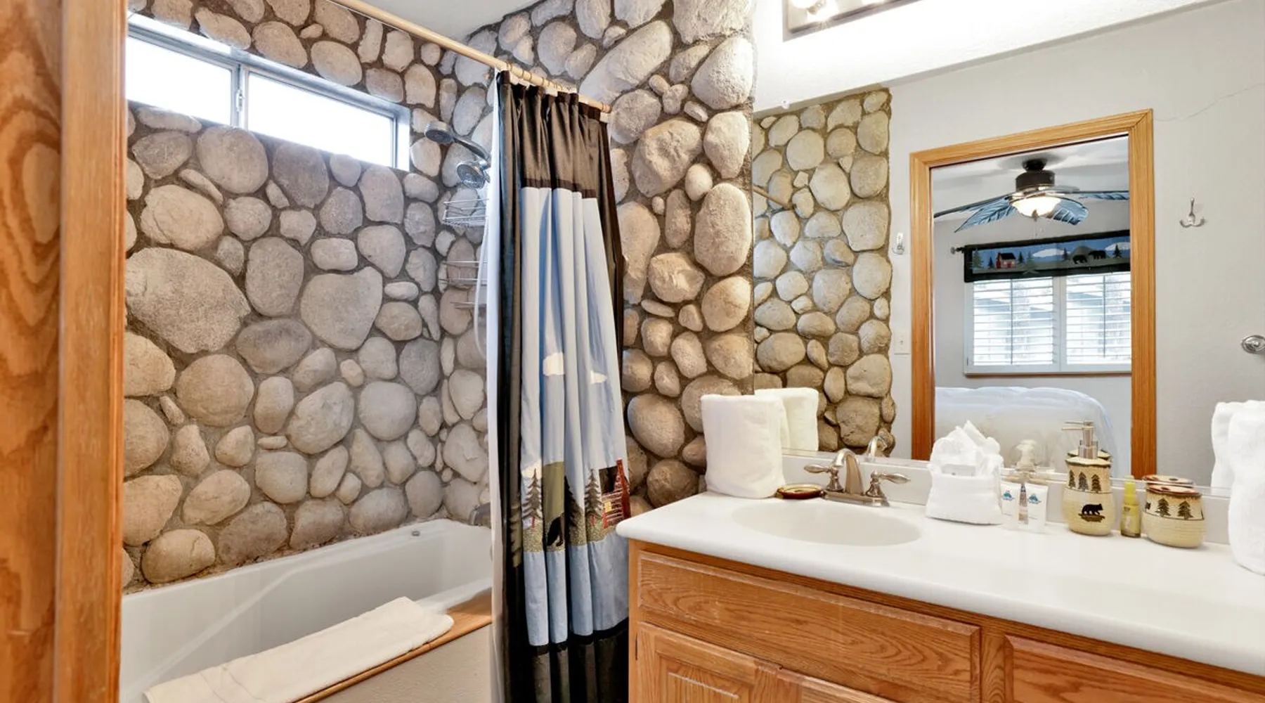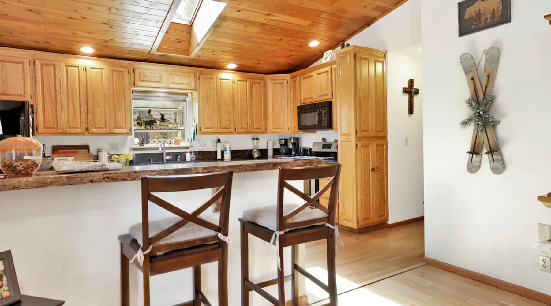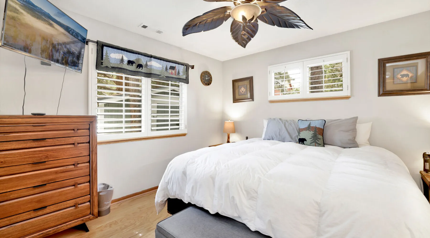 Perfect for any season your group retreat or family vacation is sure to include relaxation and serenity here at our Bearadise cabin, nestled in a quiet Bear City neighborhood this single level mountain retreat has all that you need to create memories under the pine trees. Stroll the neighborhood or hop in the car and you are just ten minutes to local activities including grocery stores, the marina, and both ski resorts, this is truly an unbeatable location for any group! The space Bearadise Cabin | Adorable Single Level Retreat Perfect for any season your group retreat or family vacation is sure to include relaxation and serenity here at our Bearadise cabin, nestled in a quiet Bear City neighborhood this single level mountain retreat has all that you need to create memories under the pine trees. Stroll the neighborhood or hop in the car and you are just ten minutes to local activities including grocery stores, the marina, and both ski resorts, this is truly an unbeatable location for any group! Enjoy soaring knotty pine ceilings and big open windows which provide the perfect balance of natural lighting and views of the forested neighborhood as you snuggle up together on the comfy couch and enjoy a movie on the mounted Streaming TV. You will love warming your toes together here in front of the toasty wood burning fireplace as you watch the snow falling outside. The equipped kitchen and dining area has all that the chef of your group will need to prepare your home cooked meals, holiday feasts, and slope side snacks right here at the cabin including cookware, appliances, and even a dishwasher for a breezy cleanup. A separate laundry room offers a washer and dryer for those wet snow clothes and extended visits to the mountains any time of the year. Three spacious bedrooms and two modern bathrooms are easily accessible here within your single level chalet including a primary suite which offers its own private full bathroom, each room is made up for your visit with Streaming TVs, new comfortable beds, and warm linens, blankets, pillows, and fresh bath towels for your vacation stay. Step outside to enjoy a private fenced backyard area which is full of soaring pine trees and offers a great space to unwind and relax as you grill up your freshly caught dinner from the lake on the propane BBQ. Bearadise cabin has all that you need to enjoy a relaxing and memorable vacation with your group in comfort and style under soaring pine trees and shooting stars- come experience this adorable chalet for your next vacation today! Sleeping Arrangements: Bedroom 1: King Bed, Streaming TV, Private Full Bath Bedroom 2: Queen Bed. Streaming TV Bedroom 3: Twin/Full Bunk Bed, Streaming TV Bathroom Arrangements: Hallway 3/4 Bath (Shower Only) Private Full Bath- Bedroom 1 -Sleeps 8 -3 Cars Driveway Parking -NO PETS ALLOWED- Fines Imposed For Pets Found On Premises -1,220 Total Square Feet Other things to note Big Bear Vacations & Cabins House Rules and Policy Information *Please read all rules and policies completely- Your booking/request to book constitutes your understanding and agreement of the below Policies & Information* **Reservation Holder Must Be 21+** **Electronic Rental Agreement & Good Neighbor Policy Required** **Guests must provide ID for Cabin Access** Our Big Bear Vacations team is looking forward to hosting you here in the mountains! We are your longest standing local vacation experts with years of dedicated experience and knowledge brought forth within our exceptional customer service and support staff to ensure a 5 star experience for every guest. Our team offers 24/7 support along with local on site offices and experience packages. Big Bear GOOD NEIGHBOR POLICY is enforced at all times during your stay and includes removing trash from the property to local trash sites, washing dishes to alleviate wild animals being attracted to neighborhoods. NO PARTIES OR EVENTS, No Over Occupancy, No Loud Music, and No Street Parking is allowed in Big Bear homes at any time. This policy along with a rental agreement will be emailed to you immediately after booking and is REQUIRED by the City of Big Bear Lake for all rentals in Big Bear. If found in violation of these policies guests will be visited by staff and Code Enforcement officers who may or may not issue fines or evictions to the violating party members. No Smoking is allowed in any Big Bear homes. Check-in time is 4:00 pm Check-out time is 10:00 am There is no early arrival or later departure availability during peak season and holidays. Contact our office the morning of arrival or departure to confirm early arrival or later departure availability for your stay. (Fee Applies) Winter Snow & Parking- During winter months the driveways, steps, porches, decks, and other outdoor areas at your property may not be accessible due to snow or ice. Our teams are on fixed routes for snow and work alongside city and county resources to clear roads, driveways, walkways etc. Guests should be prepared in winter months to shovel themselves in or out of the property and off of the street in these snowstorm events. As there is no street parking allowed in Big Bear it is extremely important that guests make every attempt to get vehicles off the street for the snowplows. California Law requires that vehicles traveling to Big Bear from November thru April have snow chains in their vehicles however we also recommend proper footwear, an emergency kit, and an extra snow shovel. Pet Policy- Pet Friendly Homes ONLY Pet Fees $35/Pet Nightly Fee + Tax Pet Policy ~All dogs on the property must be registered and acknowledges with the front desk ~Dogs may not be left unattended in the home at any time ~Pet owners are responsible for cleanup of pets or are subject to an added cleaning fee Service Animals Are Welcome! California Penal Code: (a) Any person who knowingly and fraudulently represents himself or herself, through verbal or written notice, to be the owner or trainer of any canin