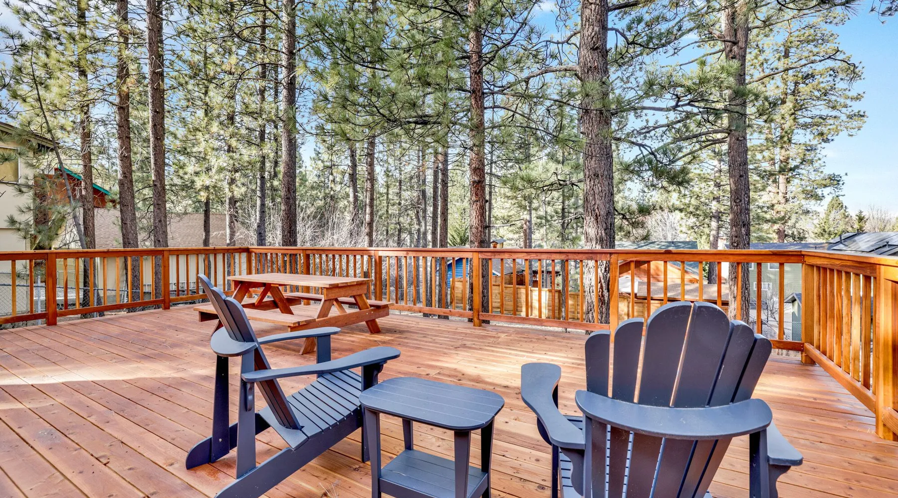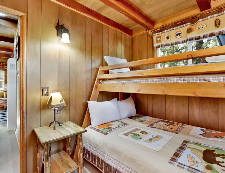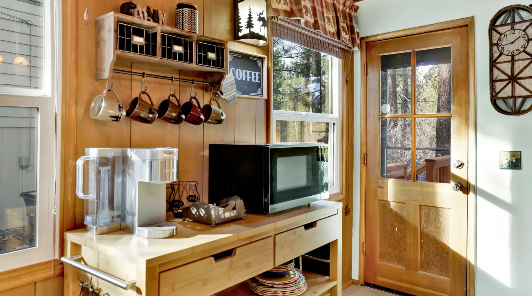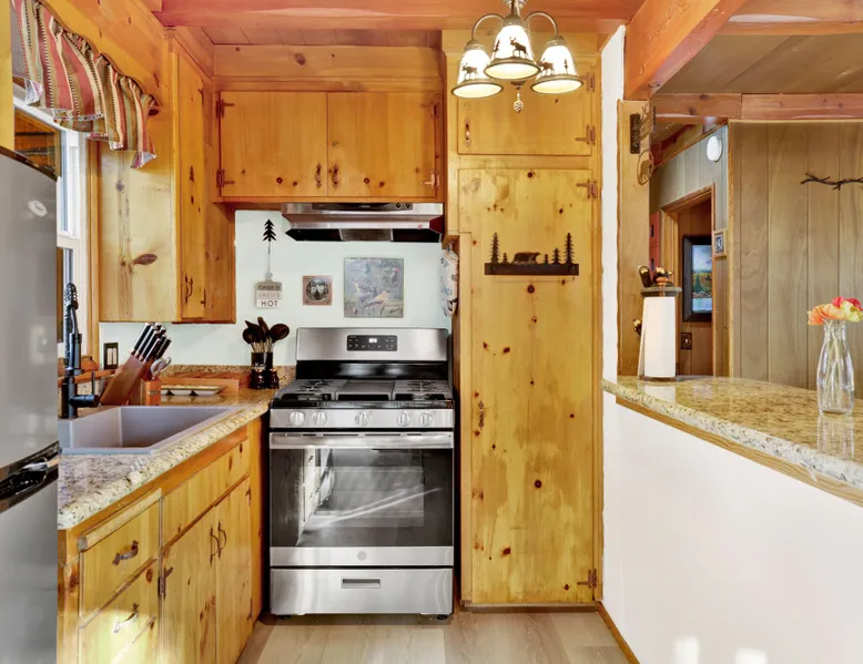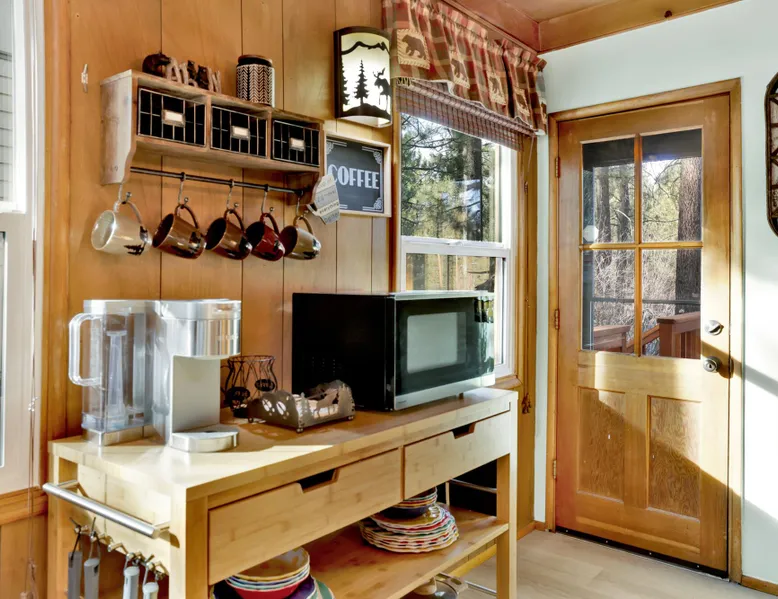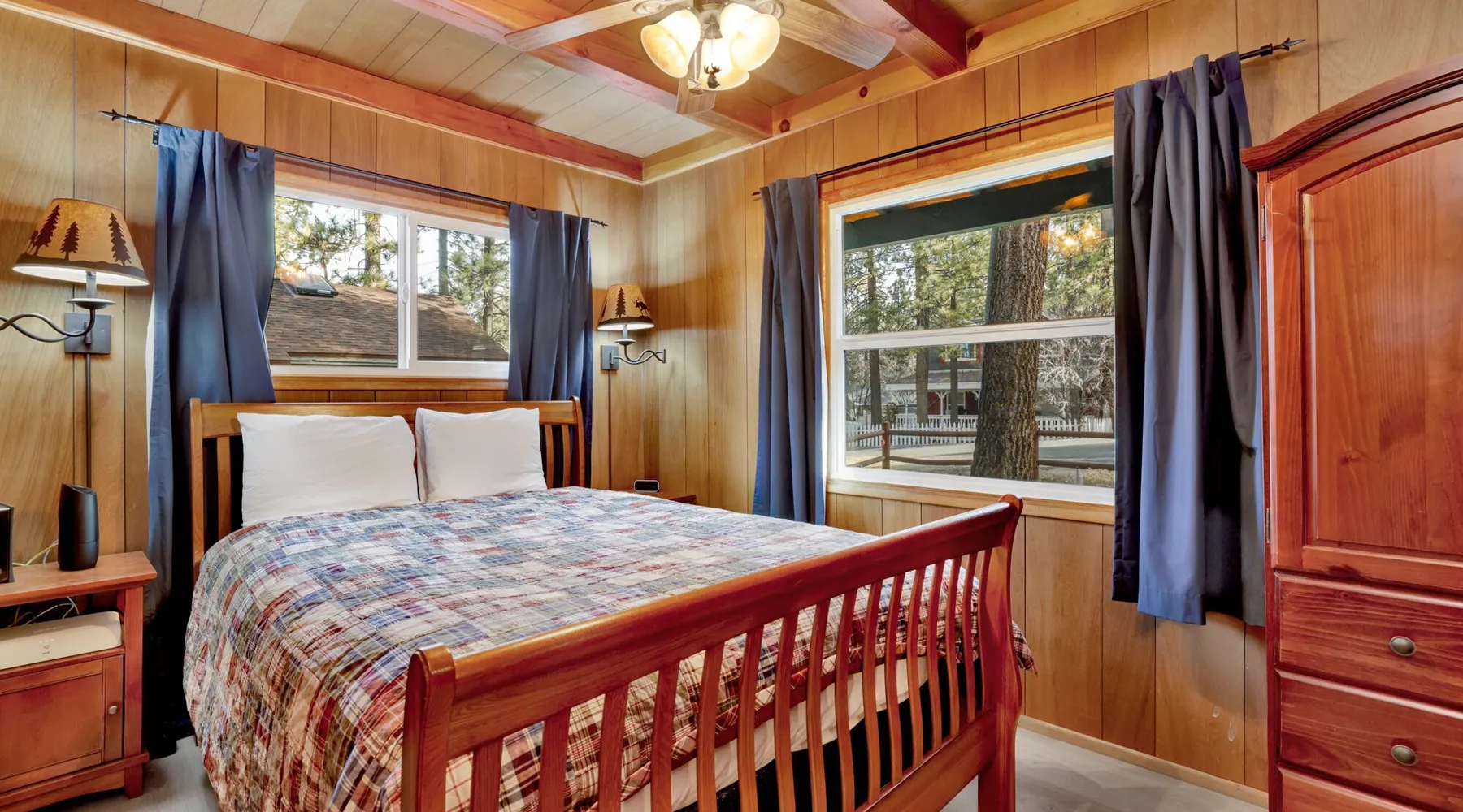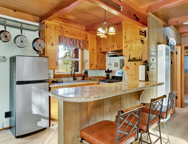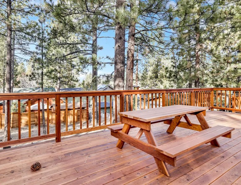 Kozy Cabin Big Bear | Walk to Village & Lake Cabin Nestled amidst the serene beauty of the mountains, Kozy Cabin offers you the perfect escape from the hustle and bustle of everyday life. This charming single level Sierra-style vintage cottage promises a cozy mountain cabin feel that will soothe your soul and provide a memorable getaway. Centrally located within a short walk to local activities and the lake you have the best of Big Bear right at your fingertips from this base camp cottage. Come see for yourselves! As you step inside your Kozy Cabin you'll be greeted with a warm and inviting interior, exposed wooden beams, and a toasty wood-burning fireplace where you can snuggle up together and warm your toes as you watch the snow falling from the big open windows. The ambiance is quintessentially rustic, allowing you to unwind and disconnect from the chaos of the modern world while enjoying a spacious open floor plan which leads seamlessly into the equipped chef's kitchen. Cookware and utensils along with general appliances and an adorable breakfast bar ensure that you have all that you need to whip up your home cooked holiday meals and slope side snacks for your adventures out on the mountain. Enjoy a great night of rest within two thoughtfully decorated bedrooms each offering charming furnishings, cozy bedding, and ample natural lighting from the big open windows which adds to the cabin's inviting atmosphere. Head out back to enjoy your natural surroundings including the spacious sun deck and forested back yard. You will love sipping your first cup of coffee in the mornings among the birds here or grilling up your freshly caught dinner from the lake on the BBQ as you unwind in the evenings. Located within a short walk to the shoreline, Village shops, or the ski resort this incredible location can't be beat no matter the season you choose to visit Big Bear. Come experience your new home away from home in the mountains today! Sleeping Arrangements: Bedroom 1: Queen Bed Bedroom 2: Full/Twin Bunk Set Bathroom Arrangements: Hallway Full Bath -Sleeps 3 -2 Cars Driveway Parking -2 Pets Welcome w/ Additional Fee -638 Total Square Feet City Permit #: VRR-2024-2172