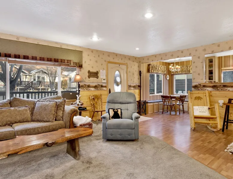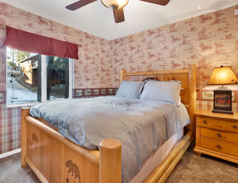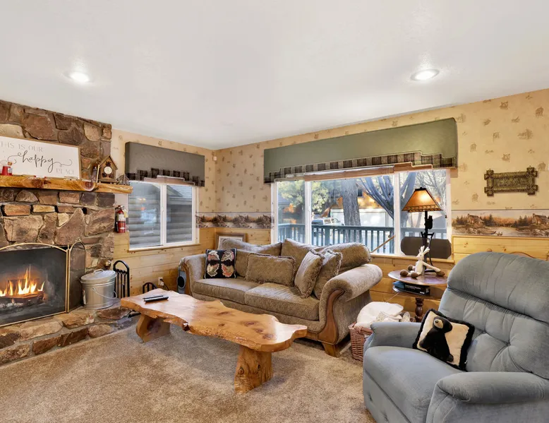 Welcome to Big Bear Happy Place! Perfect for a family vacation or group of friends to enjoy a relaxing, comfortable, and memorable vacation in the mountains at Big Bear you will love this fully furnished single level central retreat. Furnished from head to toe with your vacation stay in mind you will have all that you need right at your fingertips and include a private hot tub, games, and the essentials for a great stay here in the mountains! The space This spacious single level chalet offers cozy mountain furnishings and décor to enhance your stay along with modern touches and bonus amenities that will make you feel right at home. Snuggle up on the couch and warm your toes in front of the toasty wood burning fireplace as you pop on a movie on the flat screen Streaming TV as you watch the snow falling outside with complimentary hi speed WIFI internet available. (Guests must have their own accounts to enjoy Streaming Services.) The chef of your group will love the equipped kitchen and great dining essentials to ensure your group can dine comfortably together or you can entertain a dinner party or host your next family holiday together. Being a single level you will have quick and easy access to your three bedrooms and the hallway bathroom- each room is made up for your visit when you arrive. Head outside to enjoy a spacious sun deck and your own private hot tub under the stars- you will love soaking your muscles here after a fun day out on the mountain. Centrally located within minutes to local activities you truly have the best of Big Bear right at your fingertips from here. Big Bear Happy Place has it all- come experience your new home away from home in the mountains today! Sleeping Arrangements: Bedroom 1: Queen Bed Bedroom 2: Queen Bed Bedroom 3: Two Twin Beds + Full Sleeper Sofa Bathroom Arrangements: Hallway Full Bath -Sleeps 6 -3 Cars Driveway Parking -NO PETS ALLOWED- Fines Imposed for Pets Found on Property -1,220 Total Square Feet City Permit #: VRR-2024-2652 Other things to note Big Bear Vacations & Cabins House Rules and Policy Information *Please read all rules and policies completely- Your booking/request to book constitutes your understanding and agreement of the below Policies & Information* **Reservation Holder Must Be 21+** **Electronic Rental Agreement & Good Neighbor Policy Required** **Guests must provide ID for Cabin Access** Our Big Bear Vacations team is looking forward to hosting you here in the mountains! We are your longest standing local vacation experts with years of dedicated experience and knowledge brought forth within our exceptional customer service and support staff to ensure a 5 star experience for every guest. Our team offers 24/7 support along with local on site offices and experience packages. Big Bear GOOD NEIGHBOR POLICY is enforced at all times during your stay and includes removing trash from the property to local trash sites, washing dishes to alleviate wild animals being attracted to neighborhoods. NO PARTIES OR EVENTS, No Over Occupancy, No Loud Music, and No Street Parking is allowed in Big Bear homes at any time. This policy along with a rental agreement will be emailed to you immediately after booking and is REQUIRED by the City of Big Bear Lake for all rentals in Big Bear. If found in violation of these policies guests will be visited by staff and Code Enforcement officers who may or may not issue fines or evictions to the violating party members. No Smoking is allowed in any Big Bear homes. Check-in time is 4:00 pm Check-out time is 10:00 am There is no early arrival or later departure availability during peak season and holidays. Contact our office the morning of arrival or departure to confirm early arrival or later departure availability for your stay. (Fee Applies) Winter Snow & Parking- During winter months the driveways, steps, porches, decks, and other outdoor areas at your property may not be accessible due to snow or ice. Our teams are on fixed routes for snow and work alongside city and county resources to clear roads, driveways, walkways etc. Guests should be prepared in winter months to shovel themselves in or out of the property and off of the street in these snowstorm events. As there is no street parking allowed in Big Bear it is extremely important that guests make every attempt to get vehicles off the street for the snowplows. California Law requires that vehicles traveling to Big Bear from November thru April have snow chains in their vehicles however we also recommend proper footwear, an emergency kit, and an extra snow shovel. Pet Policy- Pet Friendly Homes ONLY Pet Fees $35/Pet Nightly Fee + Tax Pet Policy ~All dogs on the property must be registered and acknowledges with the front desk ~Dogs may not be left unattended in the home at any time ~Pet owners are responsible for cleanup of pets or are subject to an added cleaning fee Service Animals Are Welcome! California Penal Code: (a) Any person who knowingly and fraudulently represents himself or herself, through verbal or written notice, to be the owner or trainer of any canine licensed as, to be qualified as, or identified as, a guide, signal, or service dog, shall be guilty of a misdemeanor punishable by imprisonment in the county jail not exceeding six month, by a fine not exceeding one thousand dollars ($1,000), or by both that fine and imprisonment. Emotional support animals, comfort animals, and therapy dogs are not service animals under Title II and Title III of the ADA. Though individually owned and decorated all homes will be equipped with clean linens, blankets, pillows, and fresh bath towels for the occupancy of your property. Each home has a full kitchen with basic pots, pans, dishes, and a small starter amount of dish soap, toilet paper, and trash bags will be supplied. Your home will not be supplied with paper towels, coffee filters or coffee, specialty kitchen items or appliances, condiments or oils, bathrooms soaps or lotions and hair dryers. There i